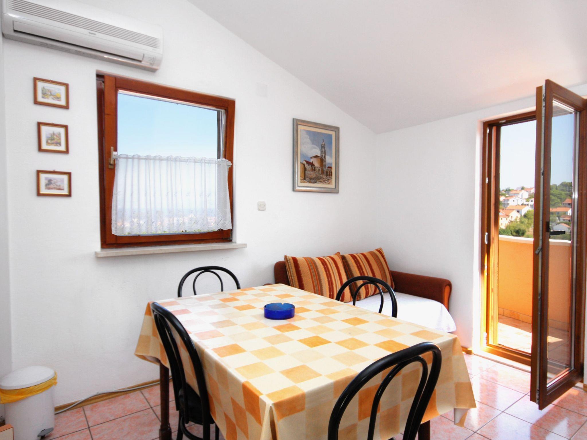 Ferienwohnung bietet Platz für 4 Gäste. Die Betten sind in Schlafzimmern, die es 2 gibt, innerhalb einer Gesamtfläche von 46m2, angeordnet. Die Gäste haben eine eigene Terrasse zur Verfügung, auf der sie in warmen Sommernächten genießen können. Das Apartment bietet Meerblick. Für vollen Genuss und Entspannung gibt es einen privaten Grill für Gäste dieser Unterkunft. Unterkunftseinheit hat Räume, die von dem Rest der Einheit abgetrennt werden. IM PREIS INBEGRIFFEN: Kurtaxe, Endreinigung, Klimatisierung, Parkplatz, Internet, Kinderbett, Bügeleisen, Bügelbrett, Föhn, Sonnenschirm. VERBINDLICHE ZUSÄTZLICHE KOSTEN: Aufzahlung für Kurzaufenthalte (prozentualer Zuschlag pro Nächtigungsanzahl: 30% - 1, 20% - 2, 10% - 3). Die Verfügbarkeit zusätzlicher Dienstleistungen in Ihrem reservierten Termin und die Preise derselben (falls nicht aufgeführt) müssen im Voraus überprüft werden. Zusätzliche Dienstleistungen die in der Zahlungsaufforderung nicht aufgeführt sind werden direkt beim Vermieter bezahlt, angenommen der Gast nutzt auch diese.