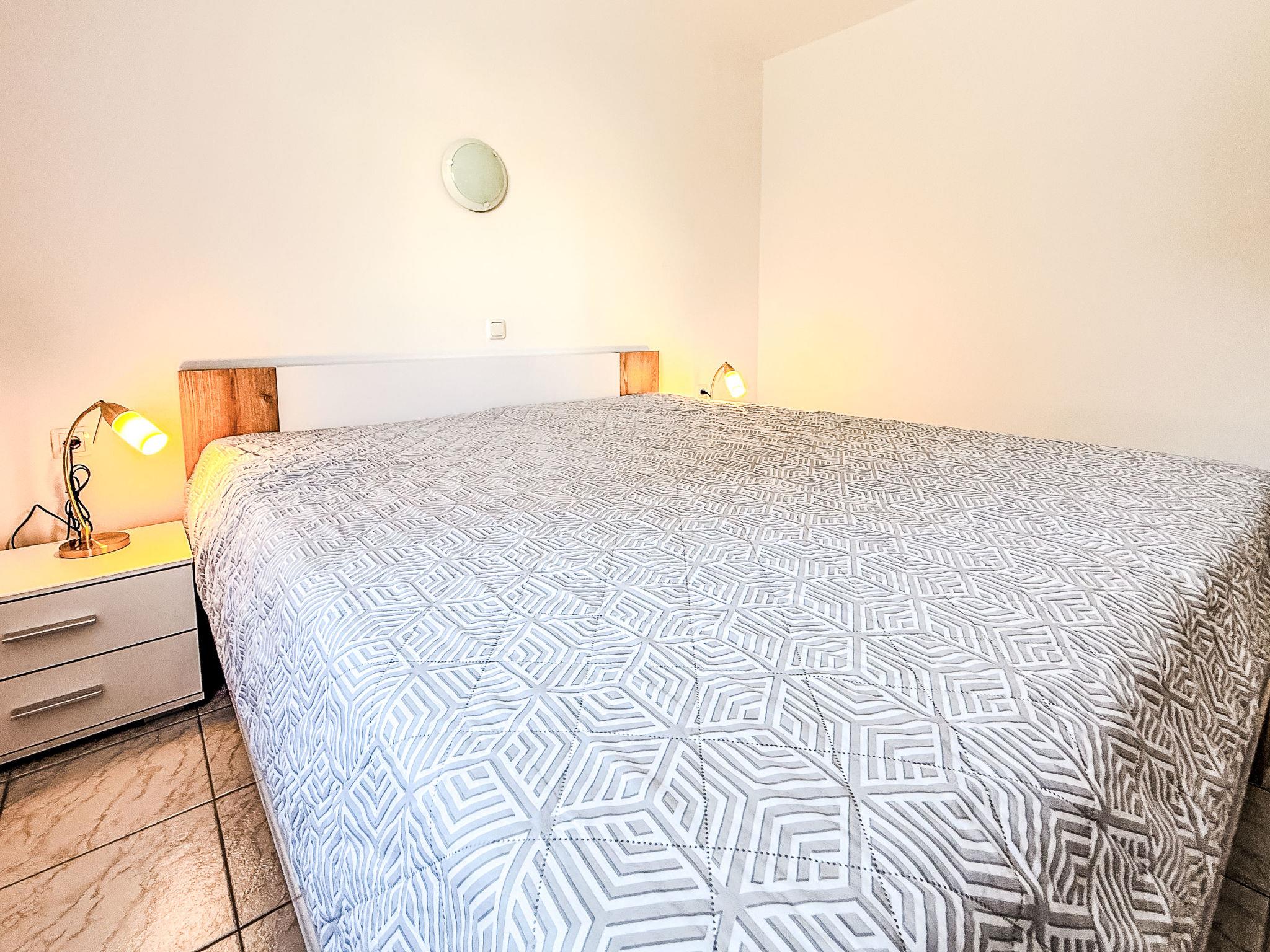 3-room apartment 90 m2, on the upper floor, south-west facing position. Living/dining room 40 m2 with satellite TV (flat screen), air conditioning. Exit to the terrace. 2 rooms, each room with 1 french bed (180 cm, length 200 cm), fan. Open kitchen (oven, dishwasher, 4 ceramic glass hob hotplates, microwave, freezer, electric coffee machine). Shower/WC. No heating option. Terrace 15 m2. Terrace furniture. View of the sea. Facilities: Internet (WiFi, free).