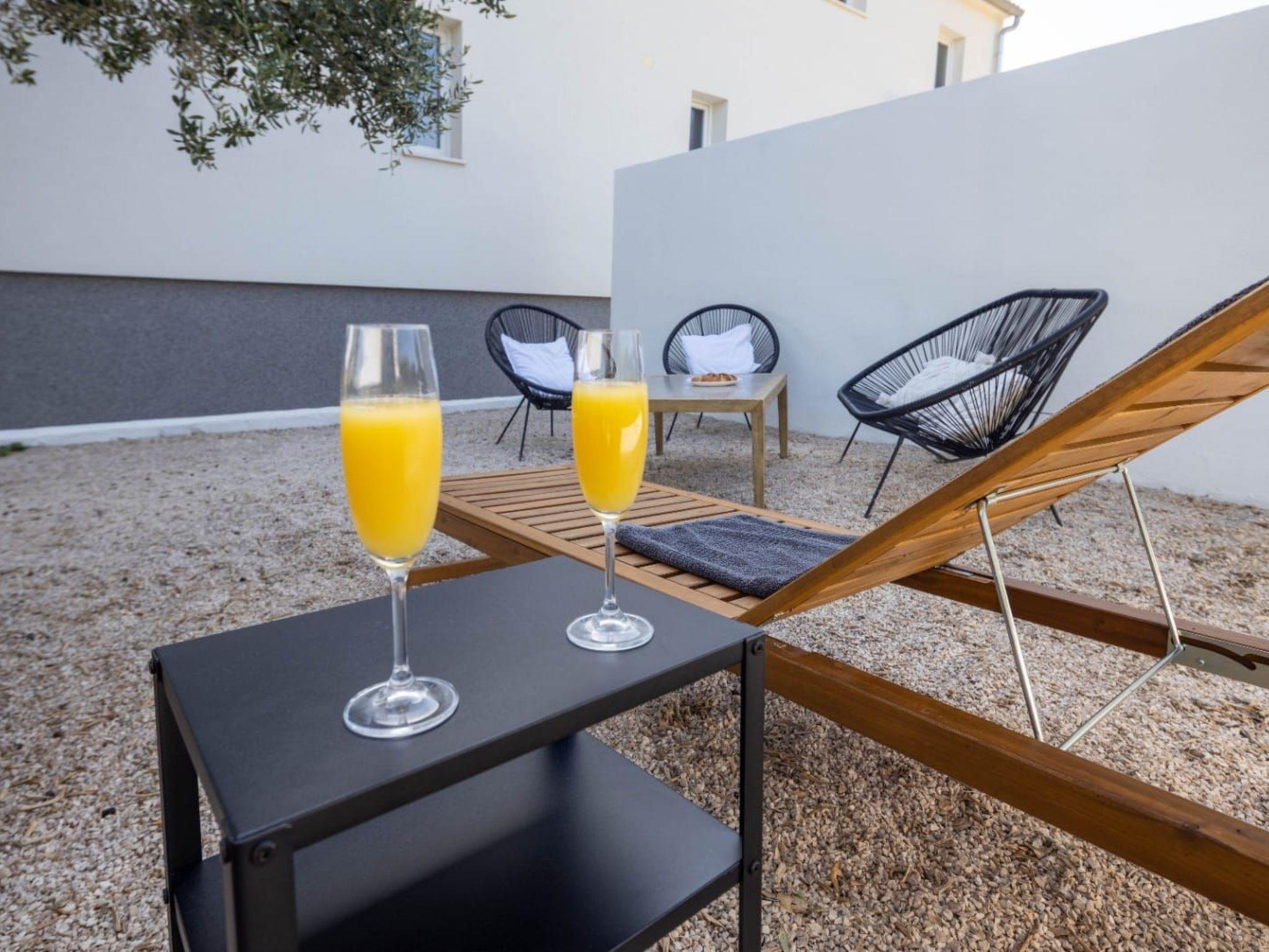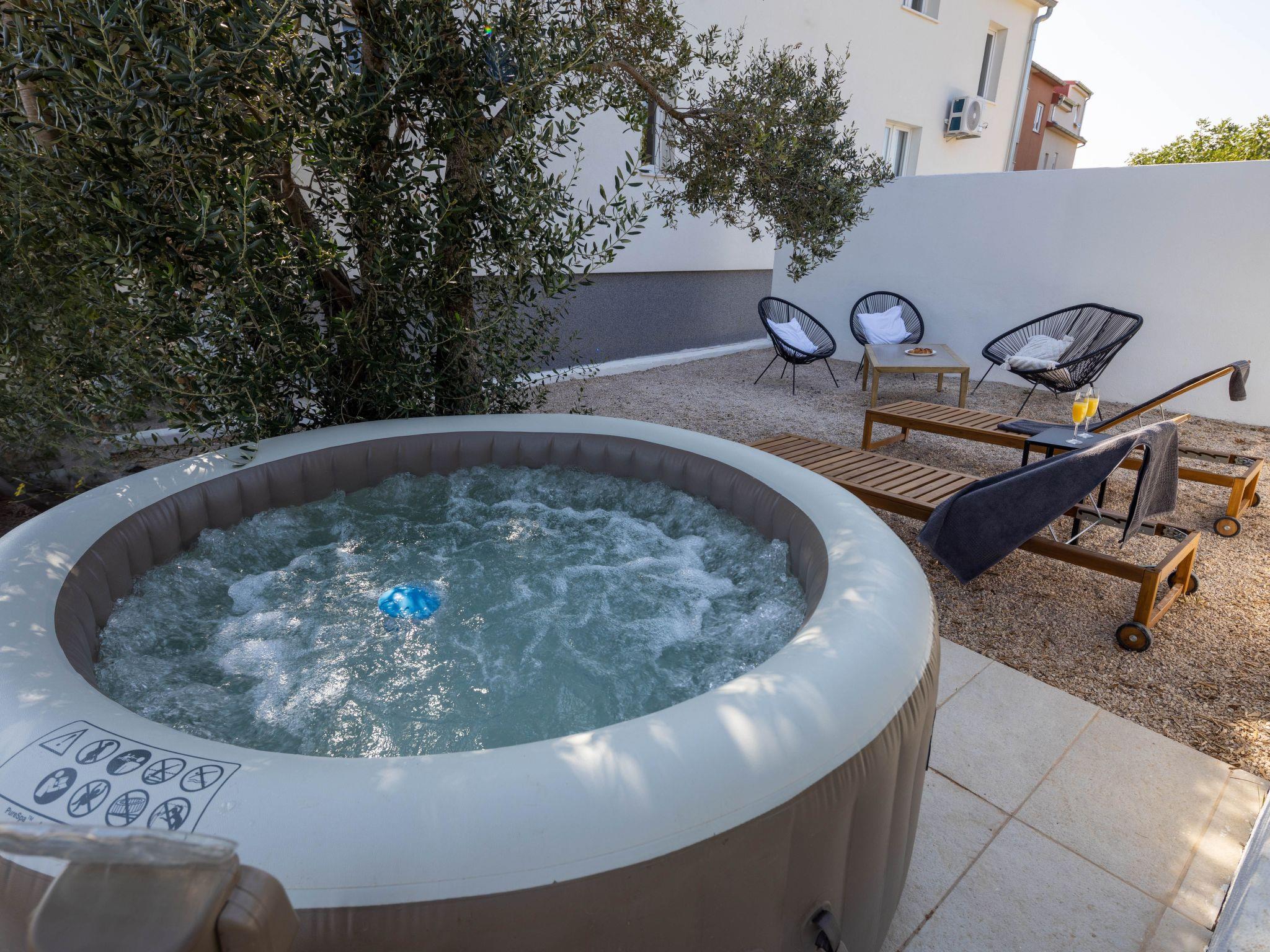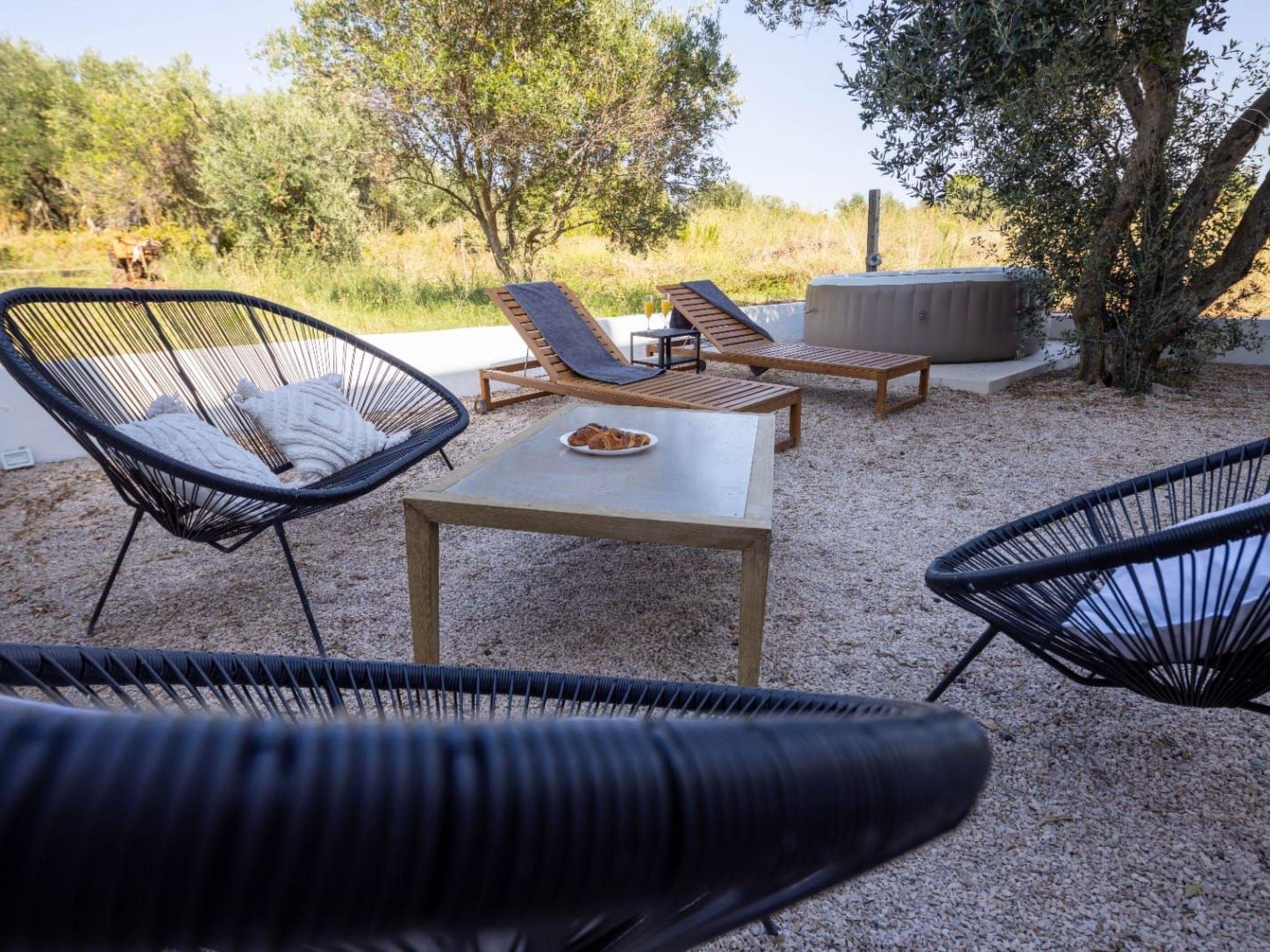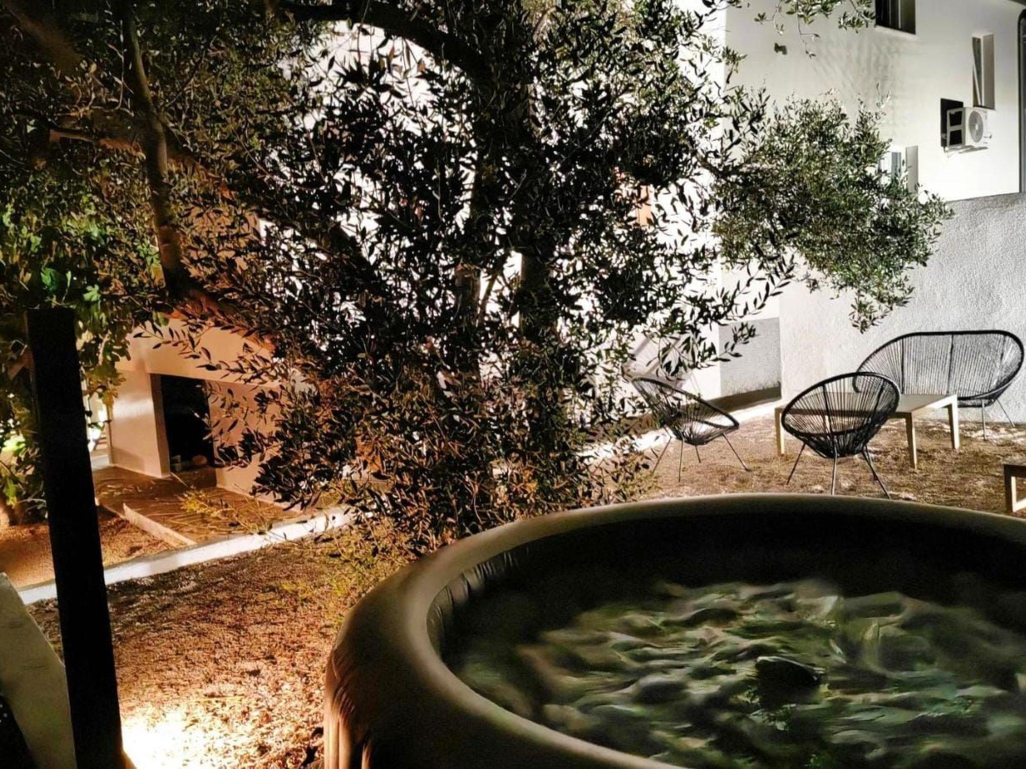 Private garden with olive tree; hot tube, sunbeds and lounge set is waiting for you.