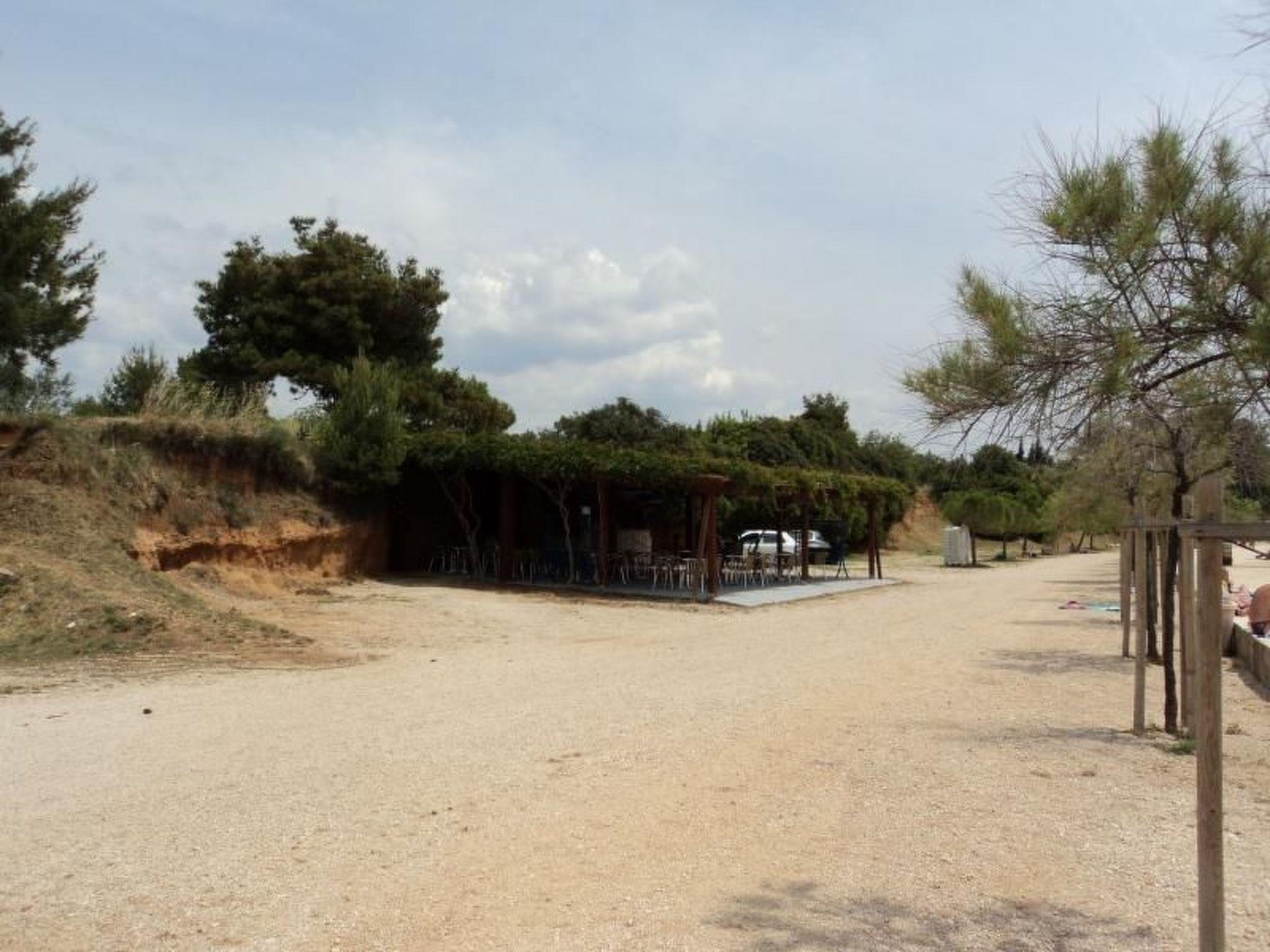 this sandy beach for some 50m is a beach-bar selling food, drinks, ice-cream etc., as well as beach chair rental.