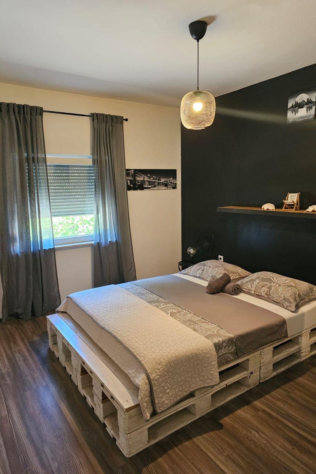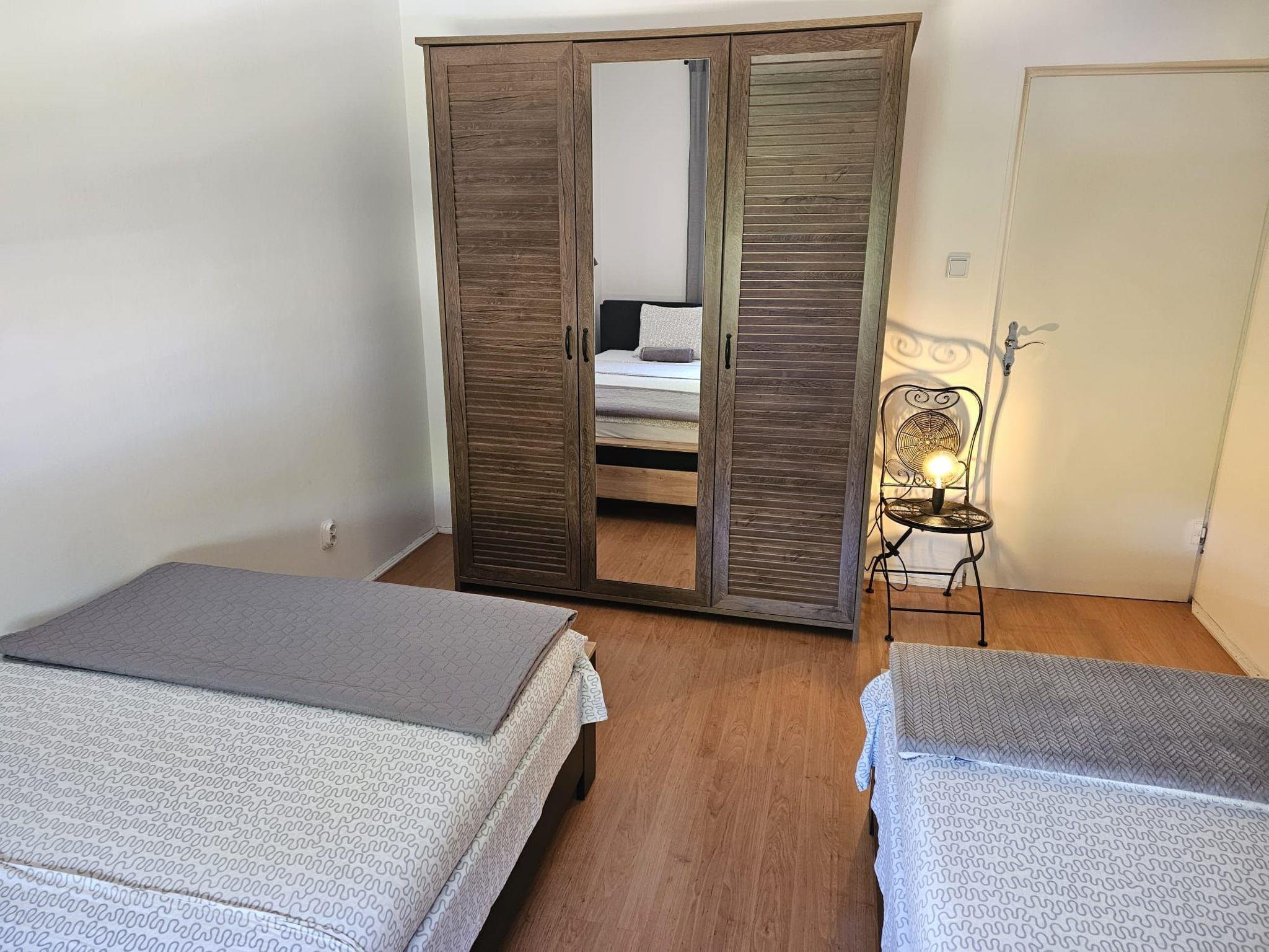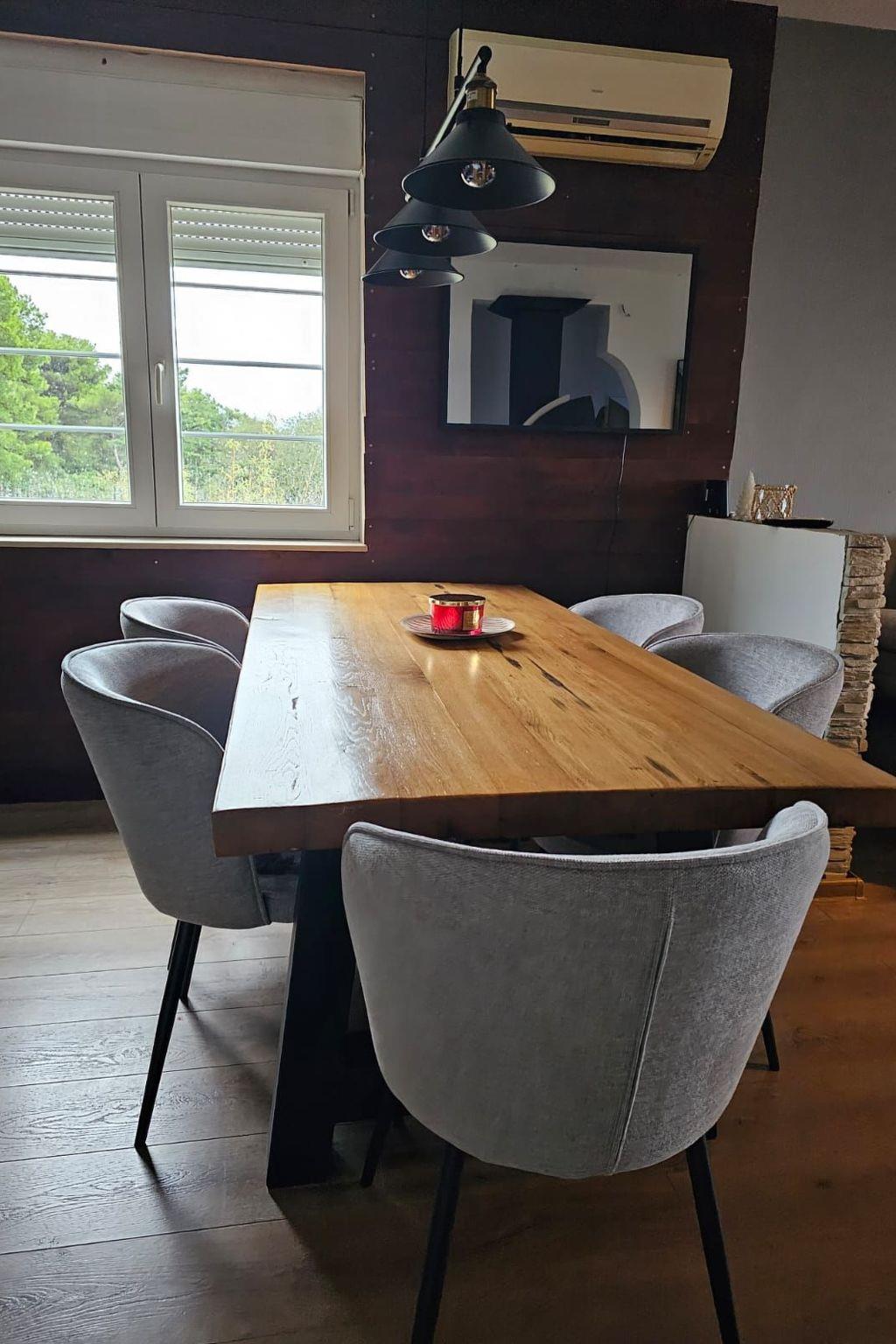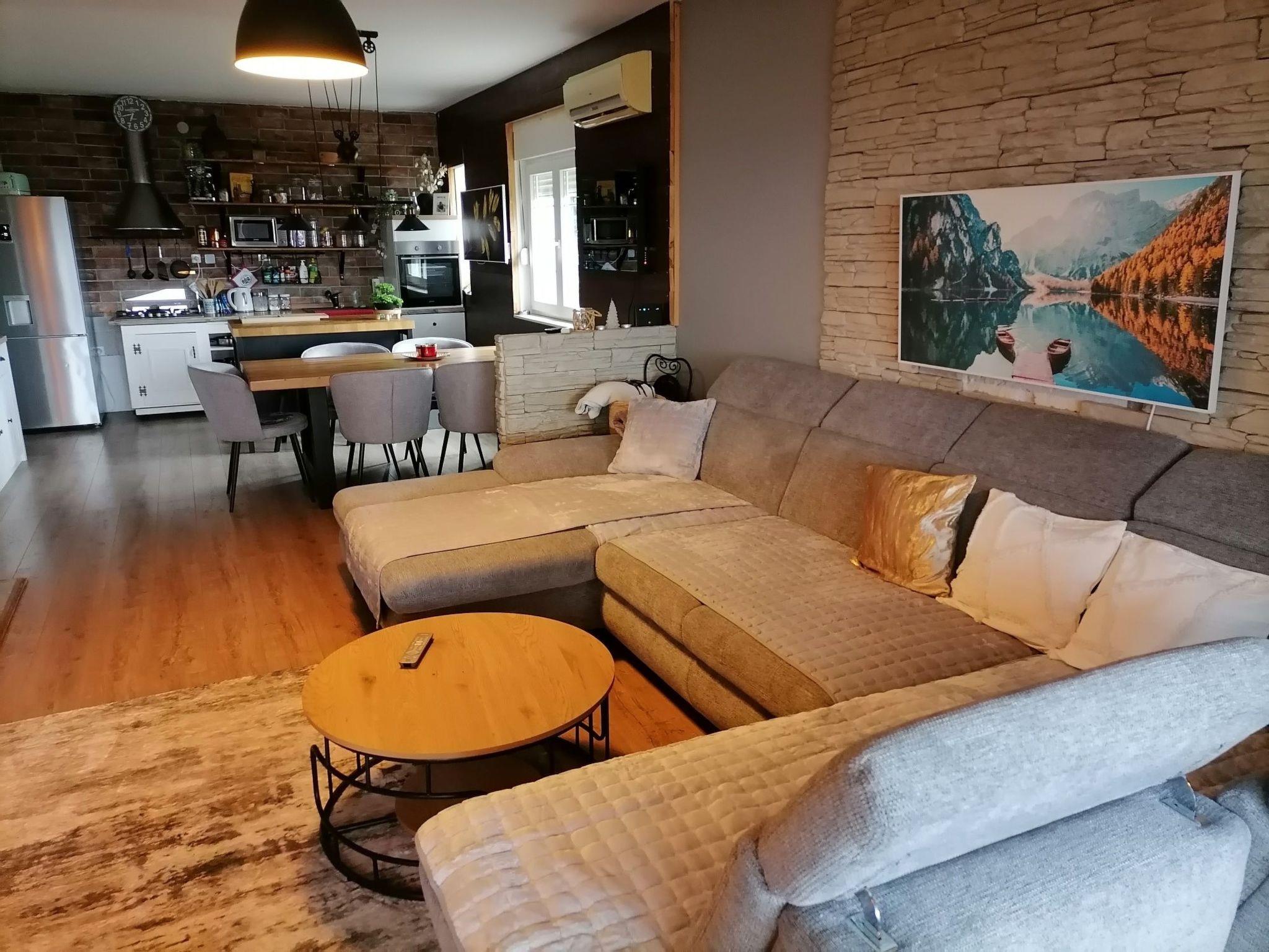From the terrace of the house you can enjoy a wonderful all-round view of the sea with its small islands, the village and the surrounding area. 3 bedrooms, a bathroom with bath/shower and WC, 1 guest WC and a large central lounge with fitted kitchen including fridge, electric gas cooker, sink and microwave. From this lounge, a balcony door leads onto our approx. 50 square metre balcony. further facilities include:The flat is fully equipped with 120 square metres. German/Croatian/English TV programmes, WLAN, air conditioning.