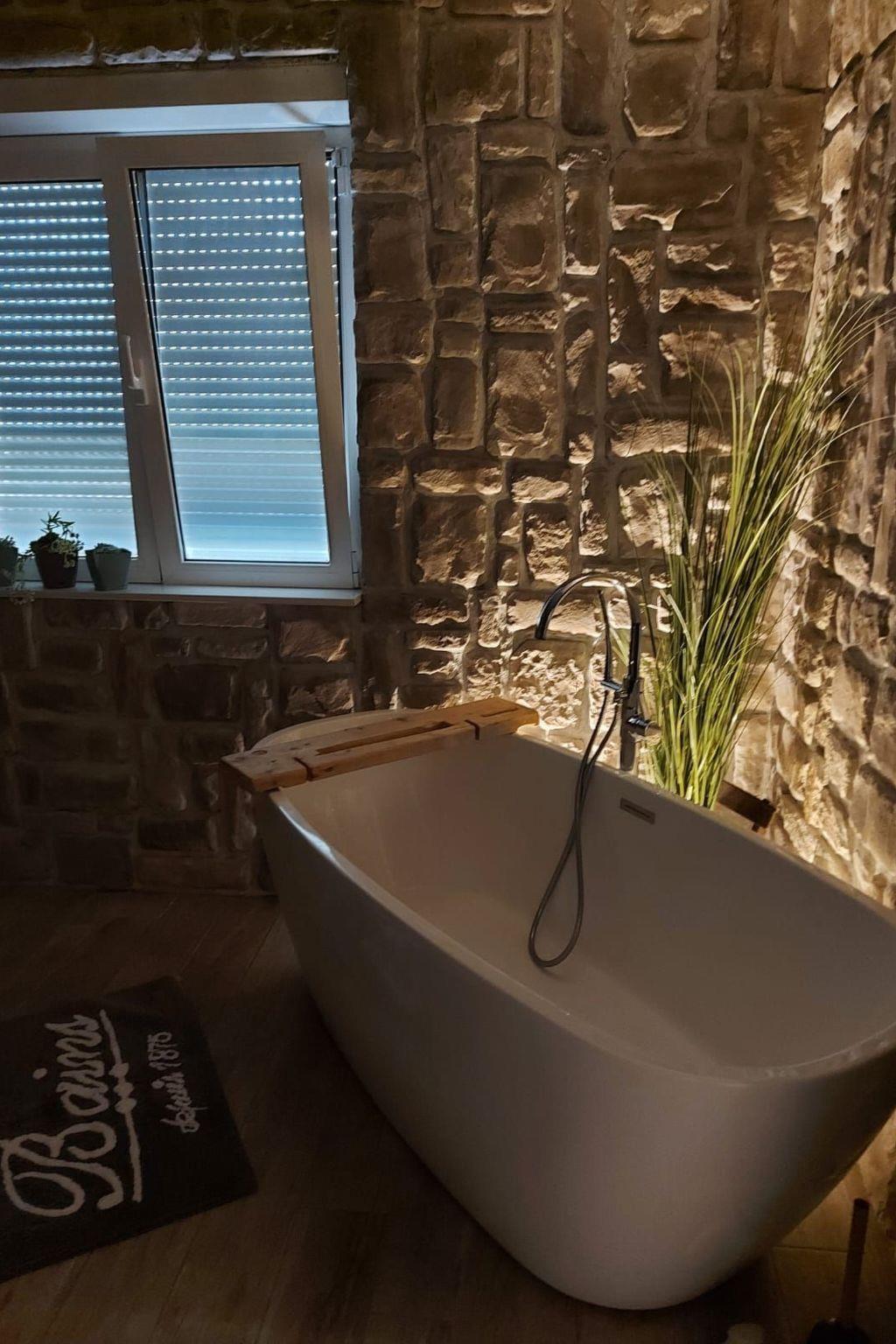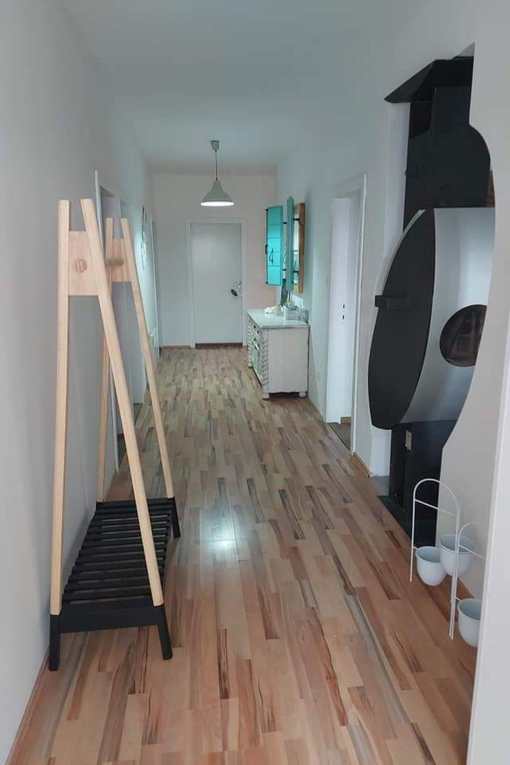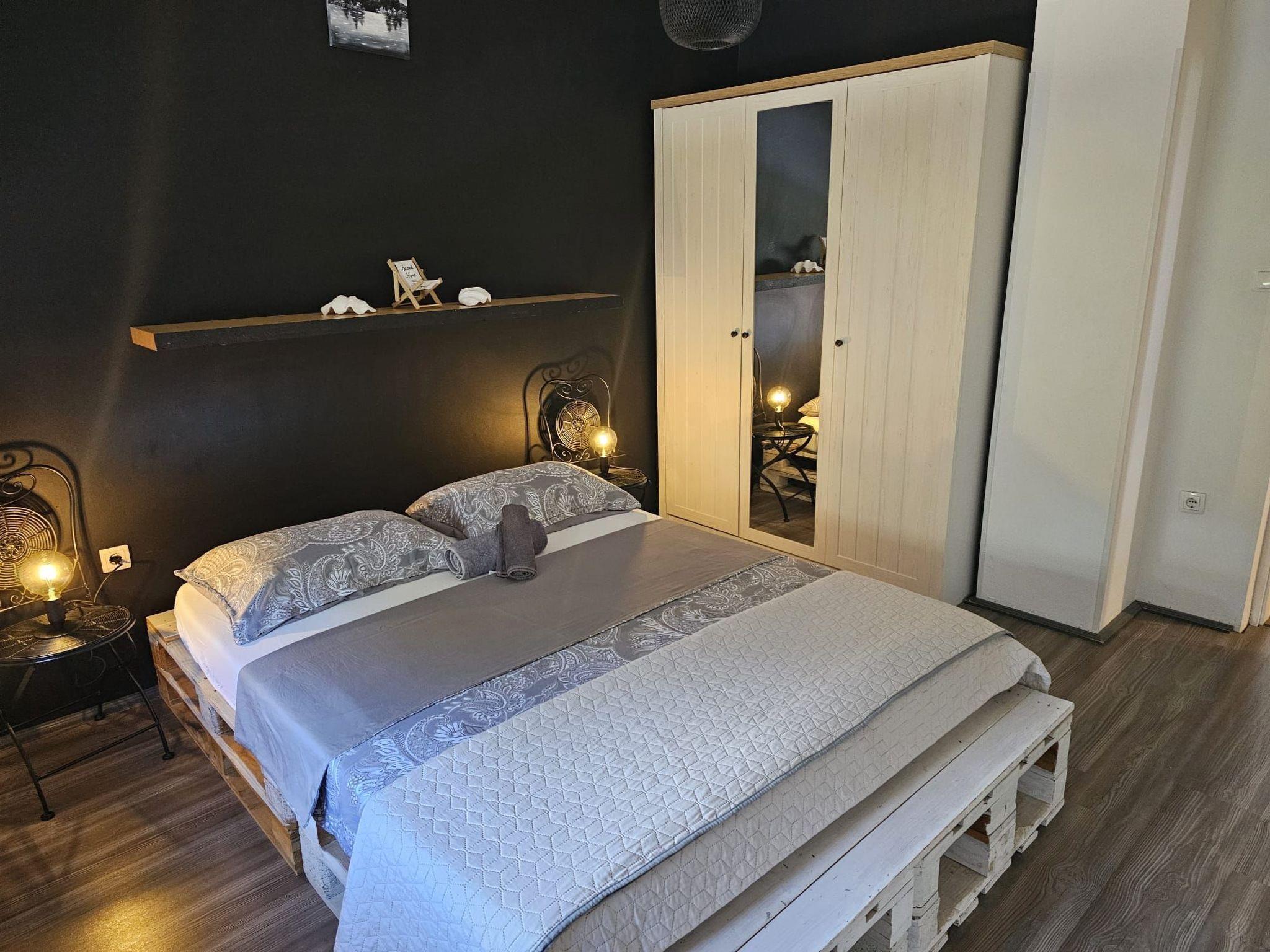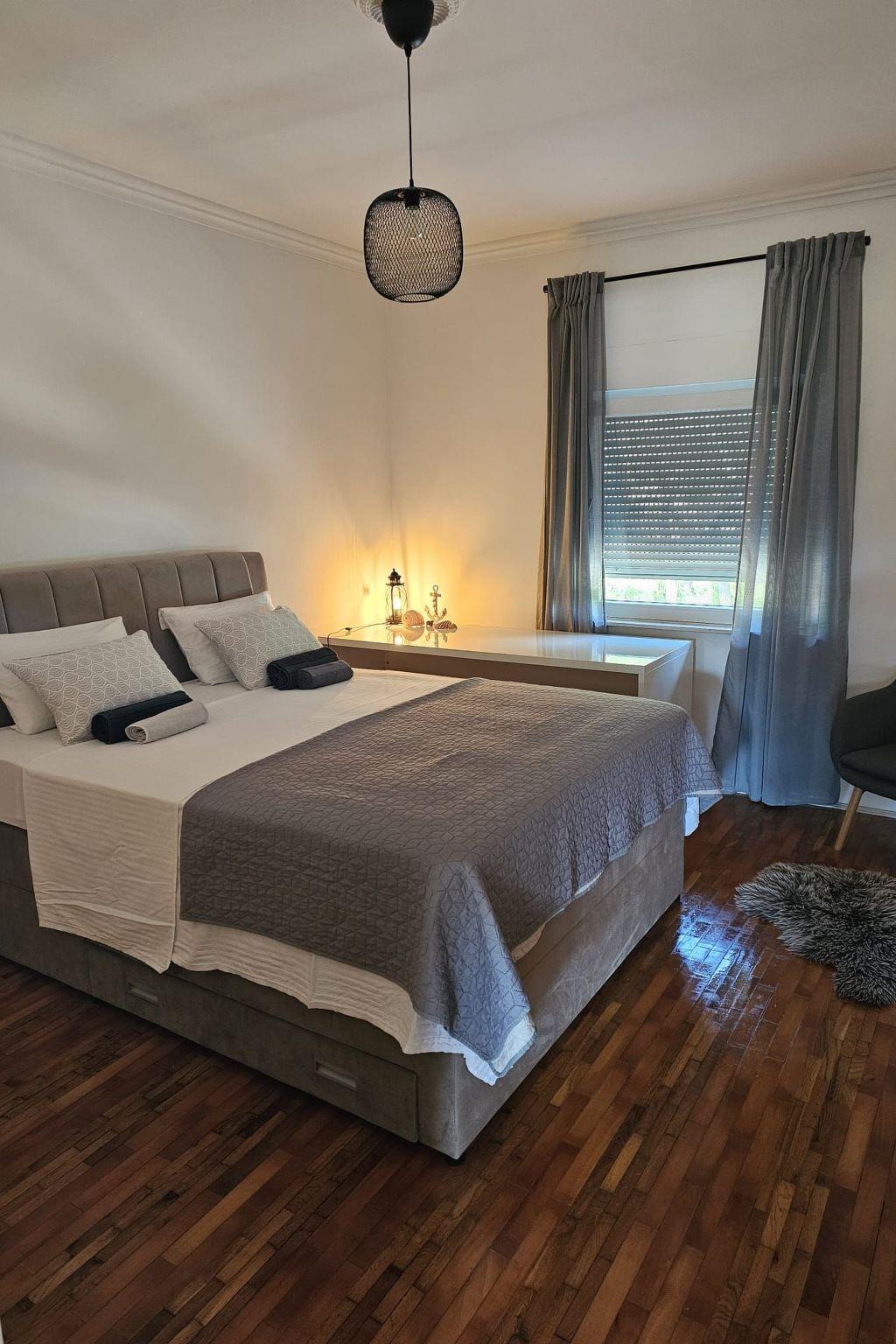 From the terrace of the house you can enjoy a wonderful all-round view of the sea with its small islands, the village and the surrounding area. 3 bedrooms, a bathroom with bath/shower and WC, 1 guest WC and a large central lounge with fitted kitchen including fridge, electric gas cooker, sink and microwave. From this lounge, a balcony door leads onto our approx. 50 square metre balcony. further facilities include:The flat is fully equipped with 120 square metres. German/Croatian/English TV programmes, WLAN, air conditioning.