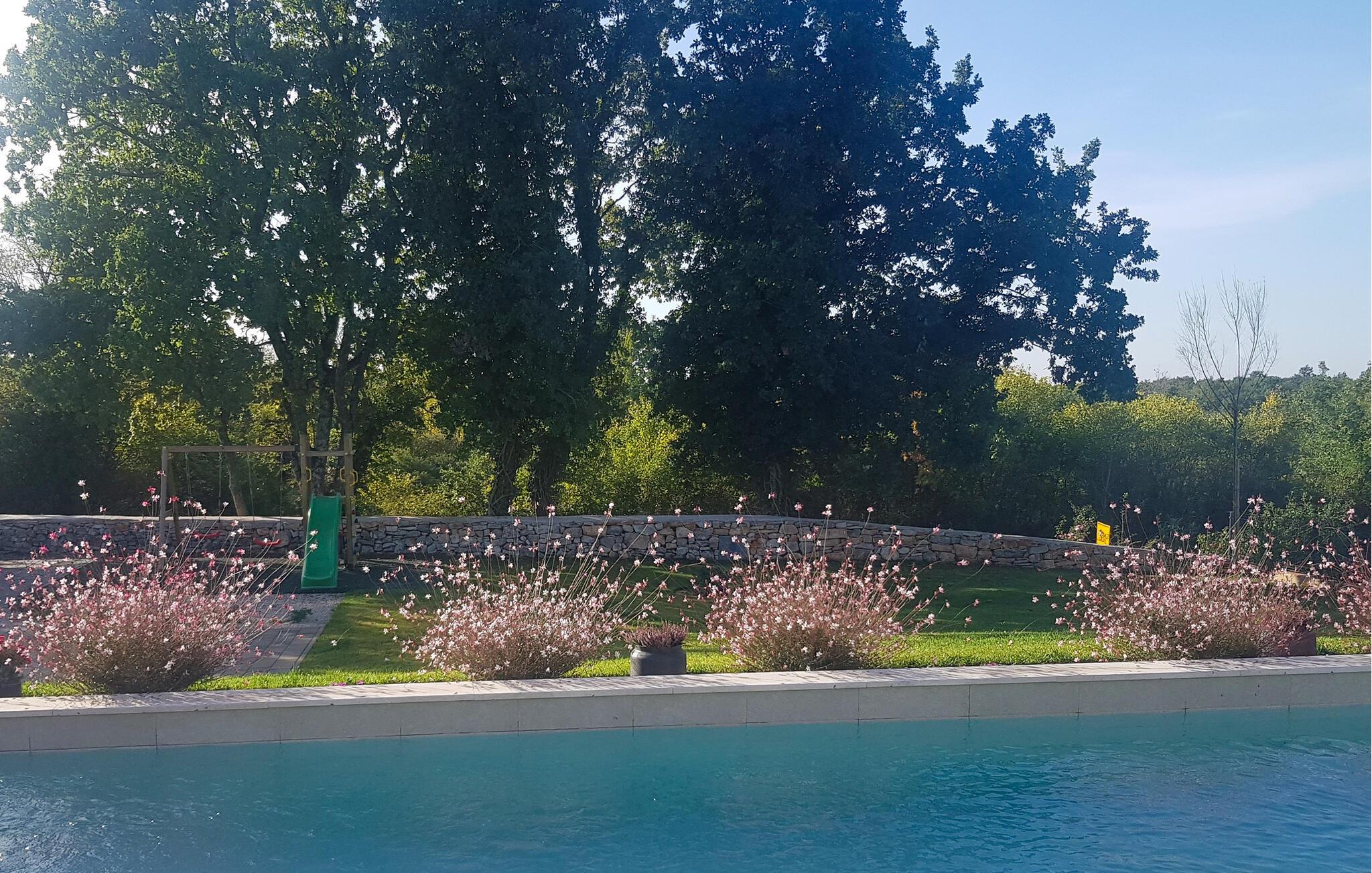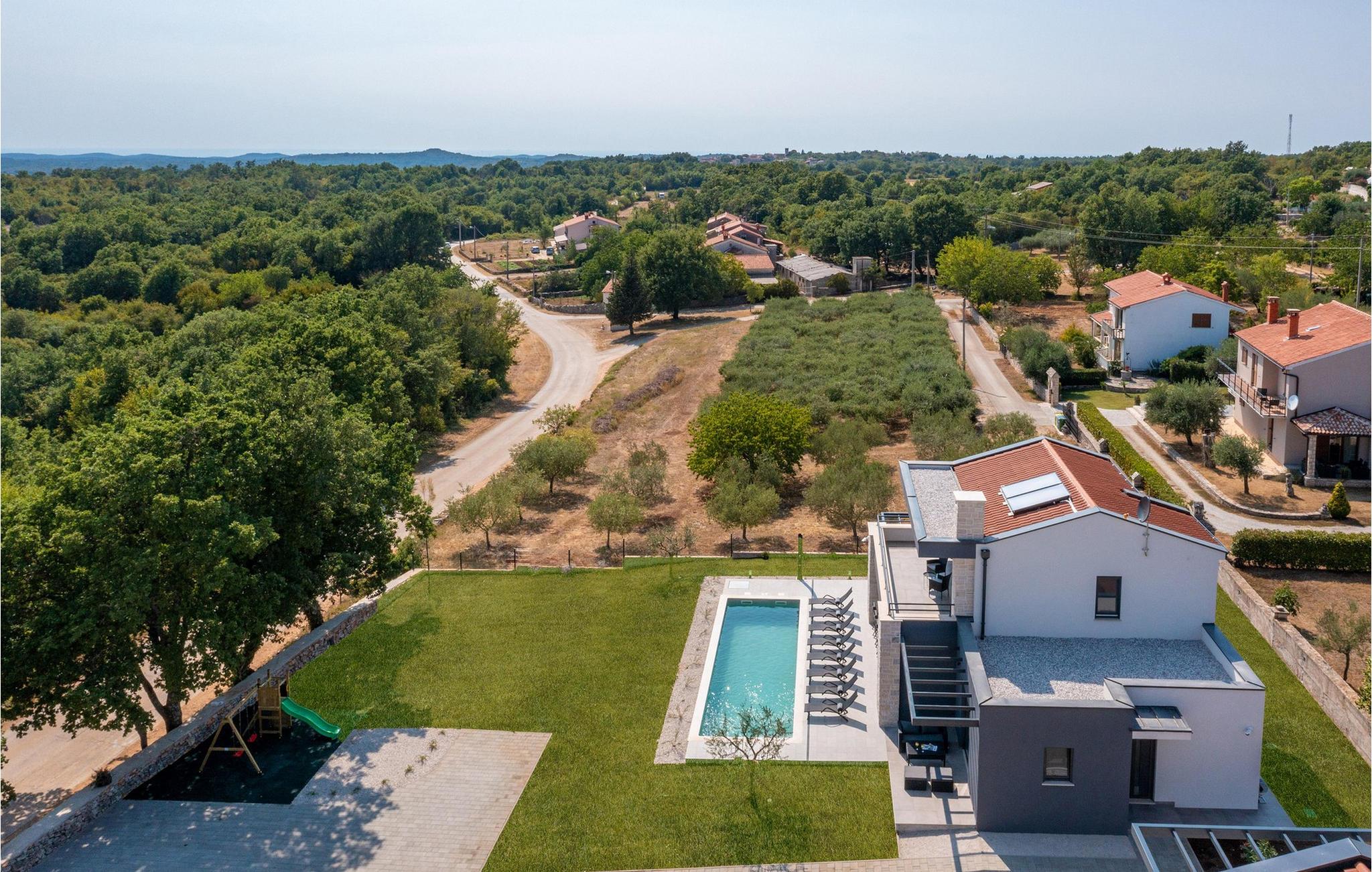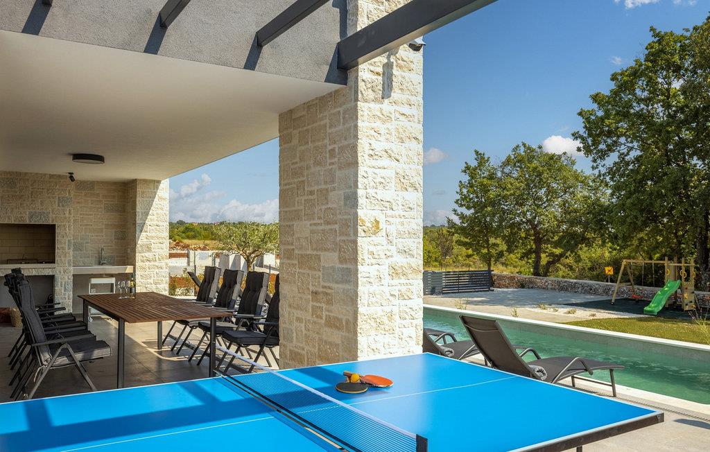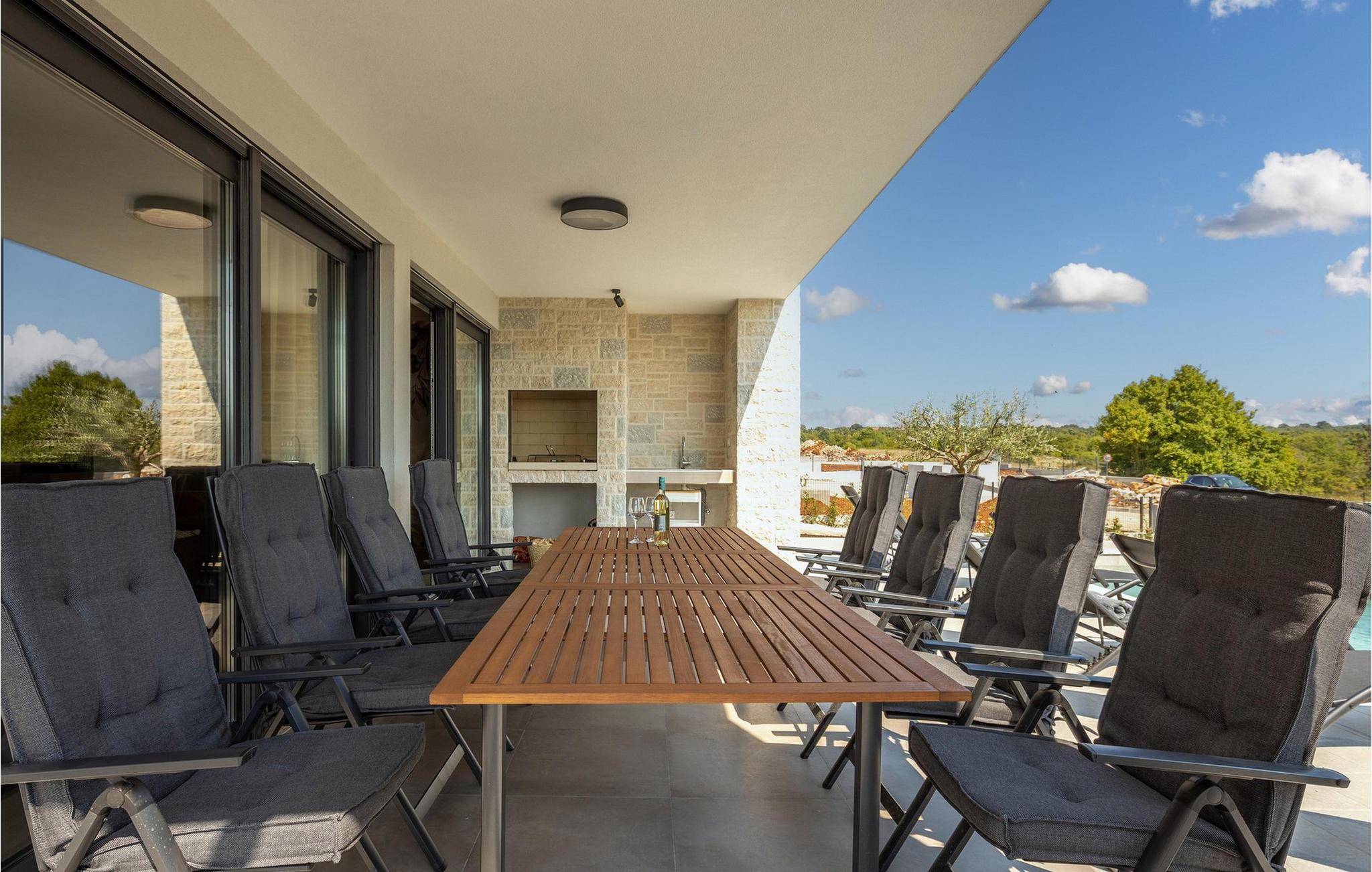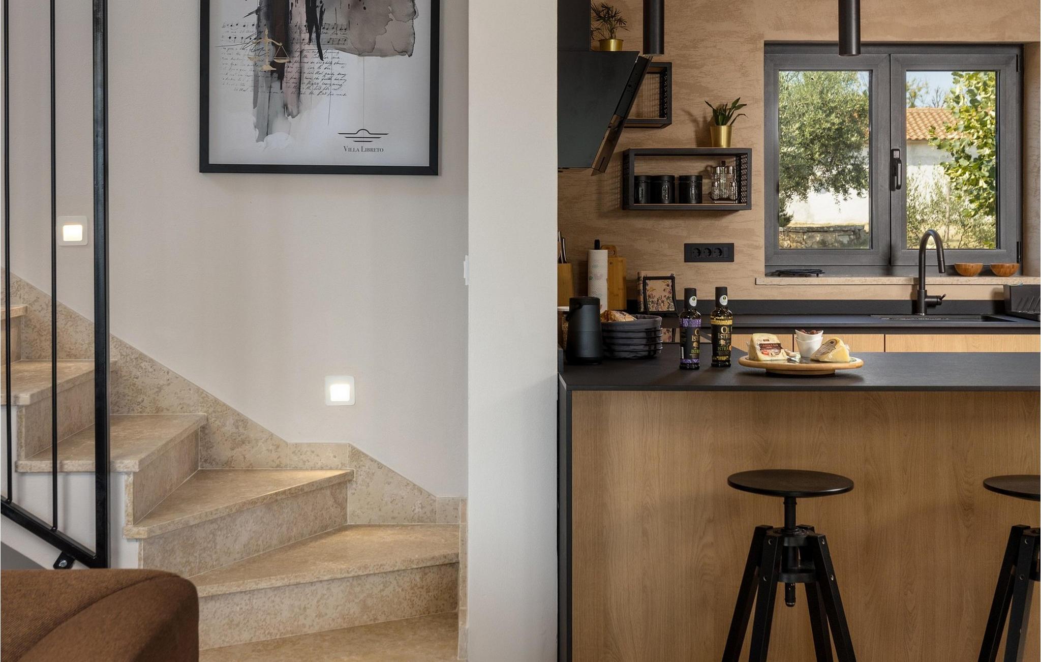 Villa Libreto ligger i Istrien, i Sveti Lovrec Pazenaticki, hvor alt er tæt på og let tilgængeligt. Denne moderne skønhed vil give jer den luksuriøse ferie, I længe har drømt om, og I vil føle jer som en kongelig under jeres ophold! Med sit moderne interiør og sans for detaljer fortjener den at blive vist i sektionen "Designer Spaces" i det berømte kroatiske tv-program "InDizajn" i foråret 2023. Og nu nogle grundlæggende og nyttige oplysninger: Ejendommens samlede areal er 992 m². Villaens gård er indhegnet med en minimumshøjde på 70-80 cm. Der er også et udendørs legeområde for børn med to gynger og en rutsjebane. I kan også spille bordtennis eller blot slappe af på havemøblerne i skyggen, mens I lytter til fuglesang eller jeres yndlingsmusik. Villaen blev bygget i 2021 og tilbyder sine gæster 190 m² boligareal. Villaen har plads til maksimalt 8 personer, selvom det optimale antal er 6. Gæsterne indkvarteres i tre soveværelser med dobbeltsenge og har også adgang til tre badeværelser med bruser. Stuen har en hjørnesofa, to små borde, en sofa og et tv. Ved siden af ??hjørnesofaen er der en spisestue med et spisebord til 8 personer og et moderne og fuldt udstyret køkken med to barstole til at tilberede lækre måltider. Vi har omhyggeligt designet køkkenet med alle detaljer, inklusive service, apparater og udstyr, for at få jer til at føle jer så hjemme som muligt. For bogelskere har vi skabt et læsehjørne med et bibliotek med nogle aktuelle hits og nogle andre klassikere. Der er også et separat toilet og en sovesofa (150x200) til to ekstra personer i spillerummet. Spillerummet har bordfodbold, dart og en Xbox-spillekonsol med tv. Andre faciliteter, der vil være nyttige under jeres ophold, inkluderer en vaskemaskine, tørretumbler, strygejern, maddispenser og en babyseng. På den udendørs terrasse er der en 31 m² stor pool med en dybde på 1,5 meter. Yderligere faciliteter inkluderer trapper og to spabade. Den kan opvarmes mod et gebyr. I kan solbade på 8 liggestole, mens I læser en god bog. Terrassen har også en udendørs kul-/brændefyret grill og et udendørs spisebord. Villaen tilbyder 2-3 parkeringspladser. Nærliggende attraktioner og lokale aktiviteter inkluderer vinture, vandsport, et vandland, der især vil glæde de små, Porec-skiliften, cykling og meget mere! St. Lovrec er en skjult perle og en af ??de bedst bevarede middelalderlige befæstede byer i Istrien. Overgiv jer til Istriens charme, smag lækre gastronomiske retter og vine, og føl jer som en kongelig på Villa Libreto! Velkommen! Kæledyr er tilladt på denne ejendom efter ejerens skøn eller mod et gebyr. Bemærk venligst, at denne ejendom ikke accepterer ungdomsgrupper eller polterabender. En ungdomsgruppe på denne ejendom består af personer under 30 år. Book venligst ikke denne ejendom, hvis I er en ungdomsgruppe eller en polterabend, da jeres booking vil blive afvist efter booking, hvilket også kan ske ved ankomst til ejendommen eller under jeres ophold, og I vil ikke blive refunderet.