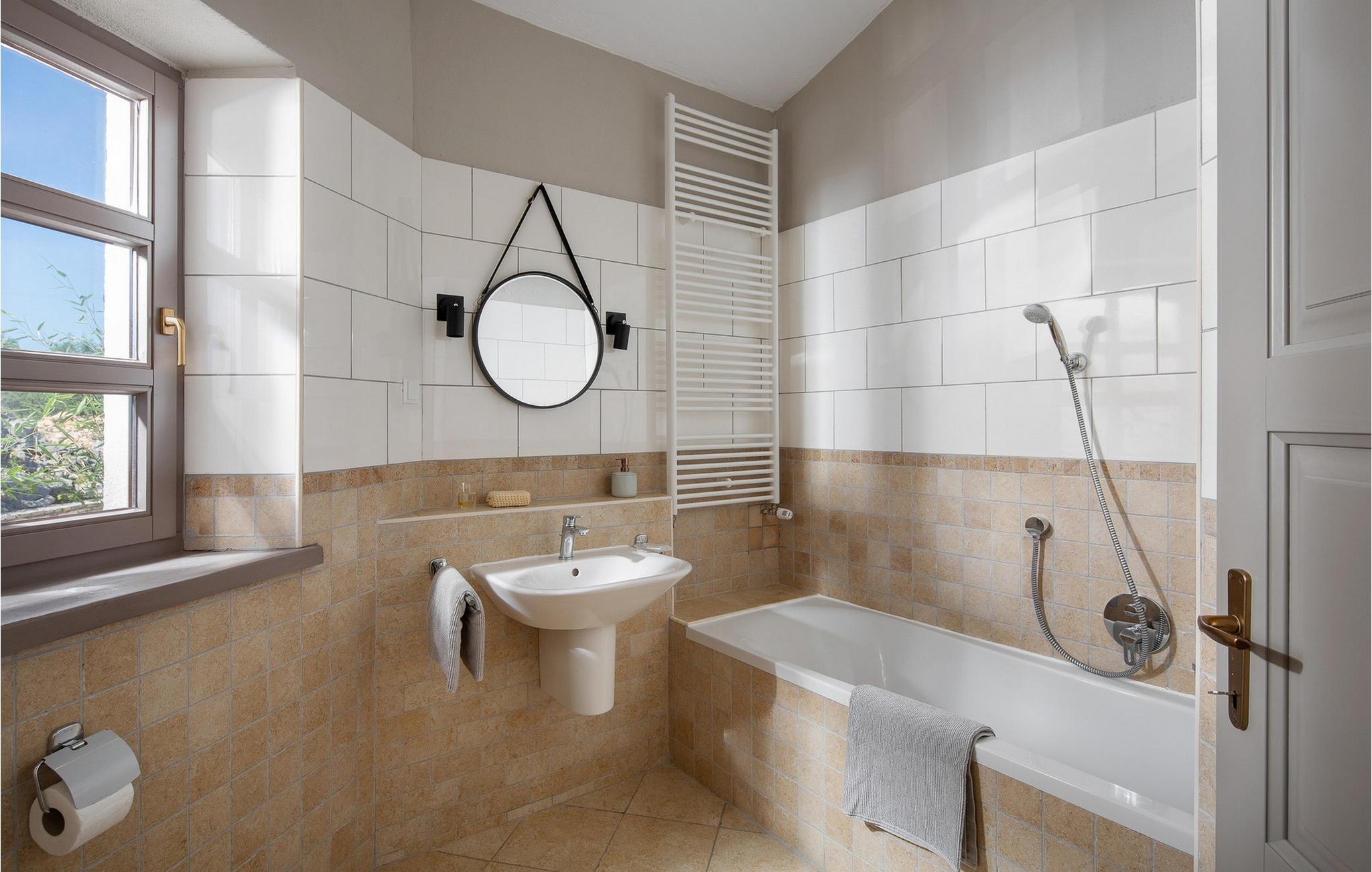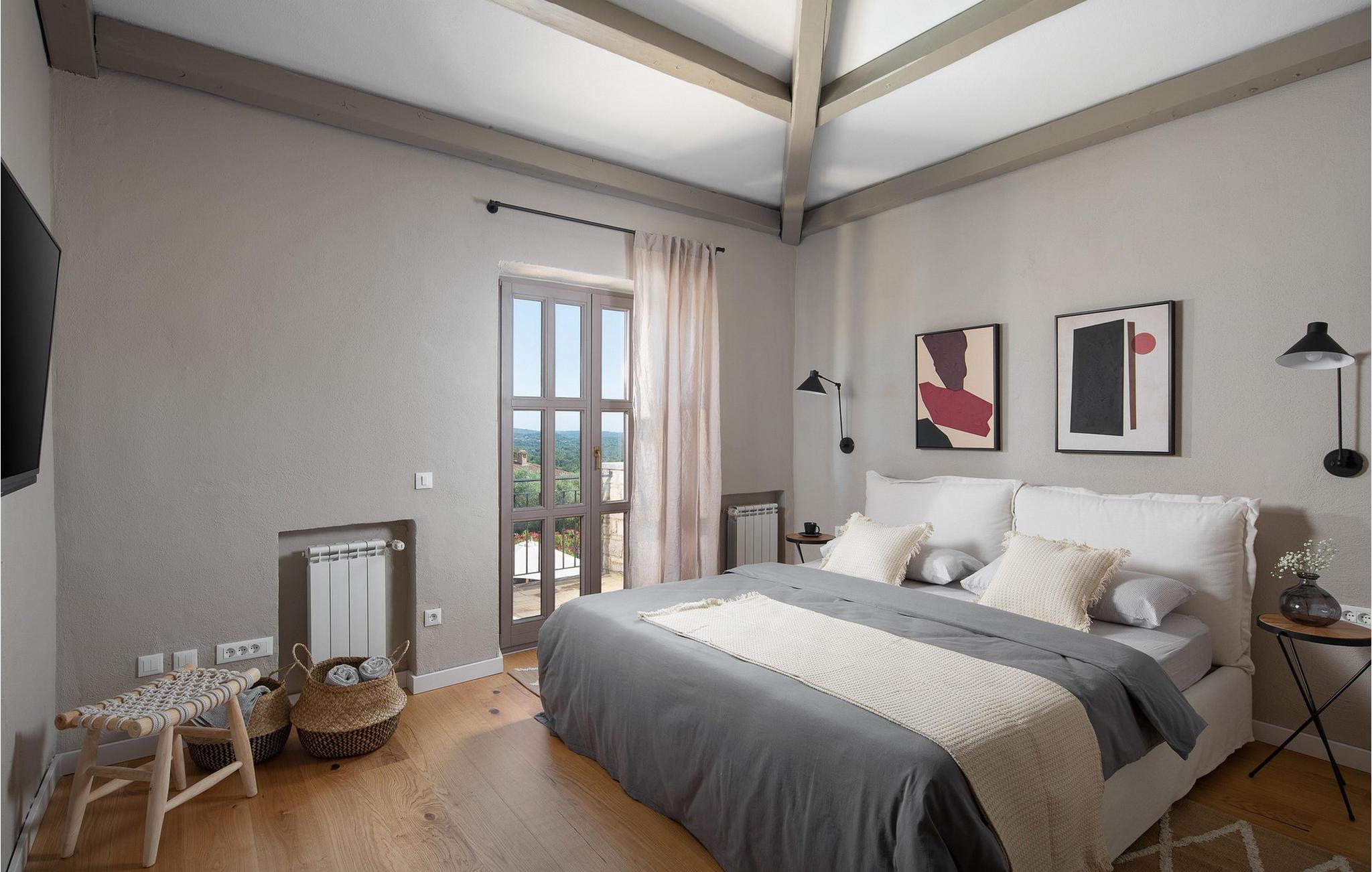 Villa Megi ligger i byen Sv. Lovrec, i smukke Istrien. Dette smukke autoktone istriske stenhus er ideelt for alle natur- og grønne elskere og for alle, der ønsker at tilbringe en fredelig og afslappende ferie. Hvis du er en af dem, så forkæl dig selv og din familie med en uforglemmelig ferie på Villa Megi! Villaen blev bygget i 2009, men gennemgik en komplet renovering i 2022, og dens rustikke arkitektoniske stil, smukke interiør og attraktive ydre vil ikke efterlade dig ligeglad! Gæsterne råder over 206 m2 boligareal, det samlede areal af ejendommen er 1059 m2. Det er fuldt airconditioneret og kan rumme maksimalt 8 personer, hvor 6 personer er ideelt. Du vil blive komfortabelt indkvarteret i 4 soveværelser: To værelser har en dobbeltseng, et værelse har 2 enkeltsenge og et værelse har en sovesofa. To badeværelser har både bruser og badekar, det ene har kun badekar. Villaen har et moderne udstyret køkken, hvor du kan tilberede lækre måltider til hele familien og venner, der er også en spisestue med et 8-personers spisebord. Inde i villaen kan du nyde udsigten over Adriaterhavet, mens du nipper til din morgenkaffe på balkonen, hvor der er en sofa. I stuen kan hele familien samles på to sofaer. Der er også et sofabord, et tv og stole. På den udendørs terrasse er der en swimmingpool med en størrelse på 32 m2 og en dybde på 1,5 m. Ved siden af er der en solterrasse med 8 liggestole og til terrassens indhold hører også en udendørs kul- eller trægrill, en overdækket udendørs spisebord til 8 personer og en smukt anlagt have. som er rig på grønt og farverige blomster. Andre faciliteter på Villa Megi omfatter 1 separat toilet, vaskemaskine og strygejern. Derudover kan du bruge en foderautomat og en tremmeseng. Gården til Villa Megi er fuldstændig indhegnet, så børn kan lege og have det sjovt ubekymret. Indenfor er der 3 private parkeringspladser. Overgiv dig til Istriens charme, smag lækre gastronomiske retter og vine og føl dig som kongelige i Villa Megi! Kæledyr er tilladt på denne ejendom efter ejerens skøn eller mod et gebyr.