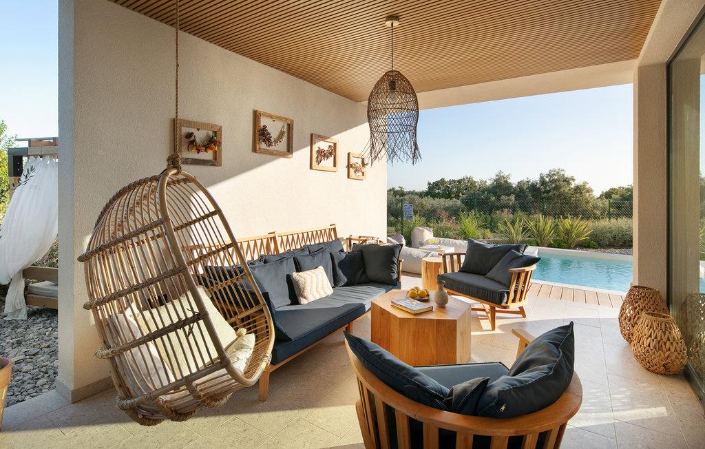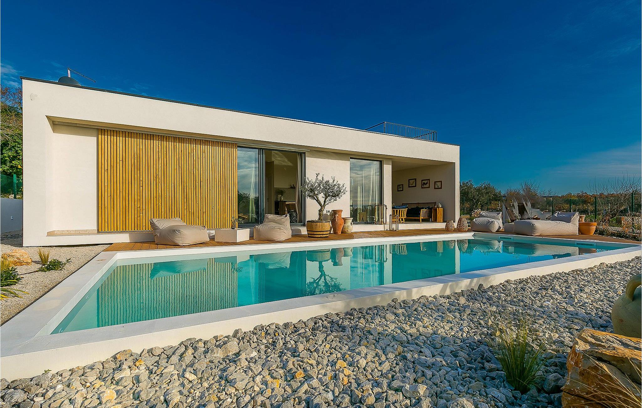 Forestiller du dig en perfekt ferie i rolige omgivelser og fuldstændig privatliv? Hvis dit svar er ja, så er Villa Eco noget for dig! Villaen ligger i byen Sv. Lovrec, som ligger i hjertet af Istrien, er kendt som en af de vigtigste turistdestinationer, der fuldstændig vil forbløffe dig. Forkæl dig selv med en pause fra den hektiske hverdag og tilbring den med familie og venner i den smukke Villa Eco! Villaen, bygget i 2023 i en moderne arkitektonisk stil, tilbyder sine gæster 100 m2 boligareal, mens grundens samlede areal er 800 m2. Villaen har plads til maksimalt 5 personer, hvor det optimale antal gæster er 4. Den er fuldt klimatiseret og gæsterne er komfortabelt indkvarteret i de 2 soveværelser i stueetagen. Det ene soveværelse har en dobbeltseng (160 x 200), mens det andet værelse har 2 enkeltsenge (90 x 200). Villaen har eget badeværelse med bruser og et andet almindeligt badeværelse, også med bruser. En femte person kan sove på sofaen i stuen. I den smukt møblerede stue kan du slappe af på sofaen ved siden af, hvor der er et sofabord, en stol og et tv. Ikke langt fra stuen ligger naturligvis spisestuen med spisebord til 4 personer. Lige ved spisestuen er et moderne køkken med alt hvad du behøver for kærligt at tilberede måltider til hele familien. I stuen finder du pladespiller, bøger og kikkerter samt brætspil og Xbox. Fra stue og spisestue har du direkte udgang til den udendørs terrasse omgivet af en smukt anlagt have og masser af grønt, som du vil nyde. Svømning i den 50m2 store swimmingpool er blot en af fordelene ved Villa Eco. Poolen er 1,3 meter dyb og ved siden af er der et solbadeområde med 4 liggestole, hvor man kan solbade og læse bøger. Der er også et opholdsområde på terrassen, hvor du kan få din morgenkaffe, og der er også en udendørs gasgrill. Du kan smage de tilberedte retter på det udendørs spisebord. På øverste etage af Villa Eco har du mulighed for at hygge dig på tagterrassen med havudsigt, i forhaven er der også en pejs med liggestole. Det er et ideelt sted at tilbringe tid med dine kære om aftenen til langt ud på natten. Andre faciliteter, som du kan bruge under dit ophold i villaen, omfatter en vaskemaskine og et strygejern. Villa Eco er helt indhegnet og tilbyder 2 parkeringspladser udenfor gården. Børn vil nyde rutsjebanen og gynge i haven foran villaen. Voksne har mulighed for at spille bordtennis. Der er også et yogadæk og grønne kasser med grøntsager. Nogle af de interessante ting, der vil gøre Villa Eco endnu bedre for dig, er, at dets koncept holder filosofien om at leve i harmoni med naturen, hvilket ville betyde, at huset er omgivet af oliventræer og i en stille landsby ligger. Villaen følger også plastfri reglen og undgår brug af plast i enhver form. Det, der måske vil glæde dig mest, er, at der er etableret et særligt partnerskab med firmaet "Grow my tree", og ved hver reservation plantes et træ med det formål at reducere CO2, som gæsterne får et særligt certifikat for. * Mulighed for at købe lokal vin og lokal olivenolie fra naboerne, produceret af de samme oliventræer, som pryder haven og omgiver Villa Eco! St. Lovrec ligger på den vestlige del af halvøen Istrien og betragtes som en skjult perle og en af de bedst bevarede middelalderbyer i Istrien. Istrien byder på smukke solnedgange, mange muligheder for dagsture og nærhed til byer, hvor du kan gå eller cykle. Ligeledes kan du i forskellige taverner eller restauranter smage det perfekte gastronomiske udbud af fremragende delikatesser, der vil glæde enhver gane! Velkommen til Villa Eco!
