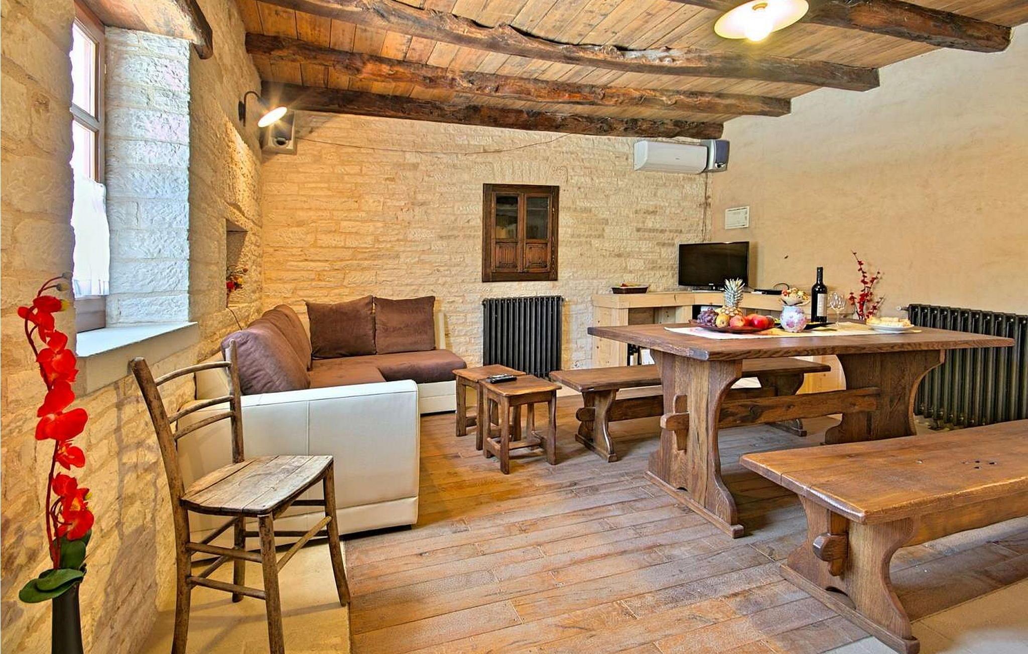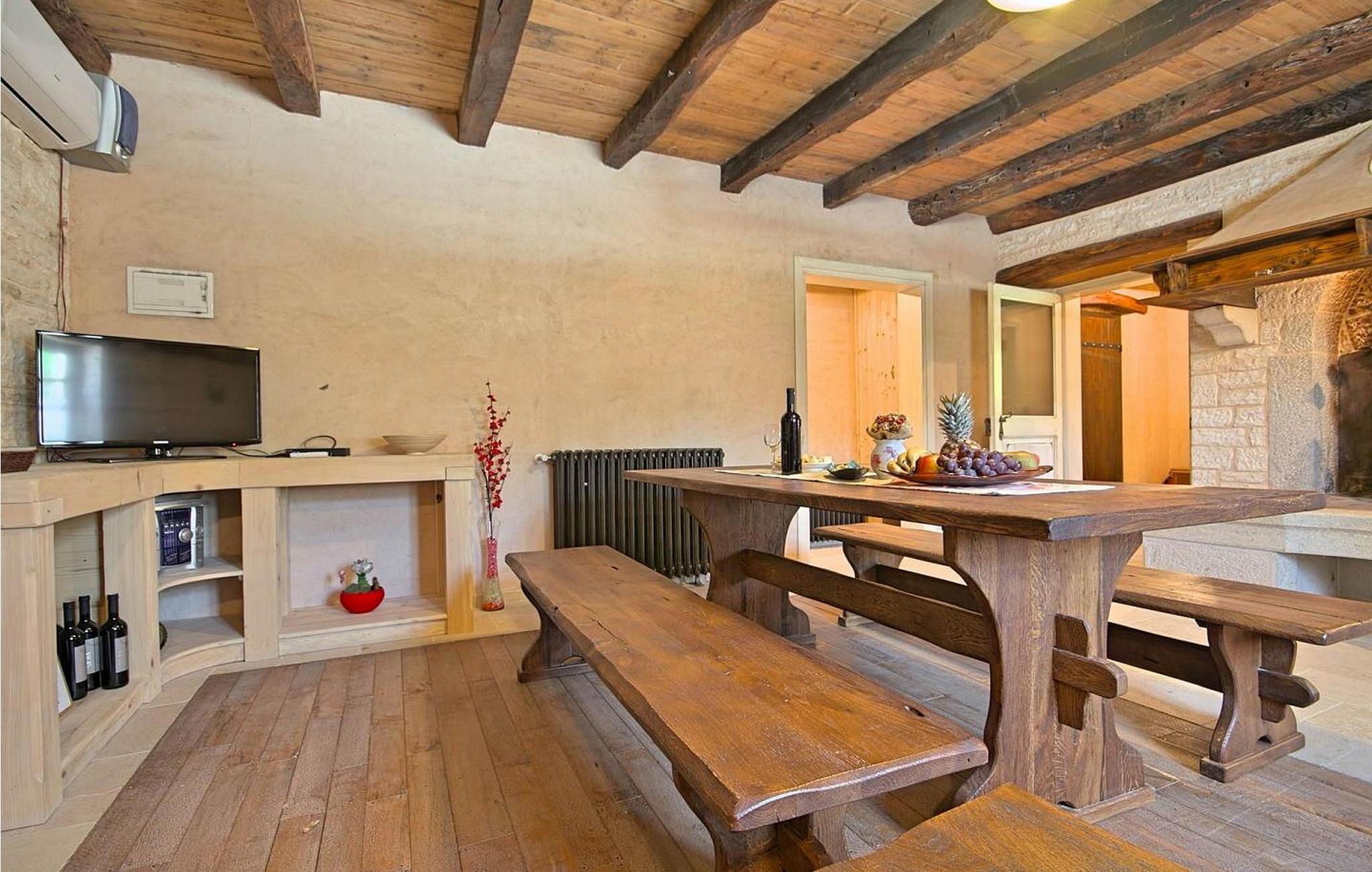 Villa Kovac er smukt møbleret stueetage, dobbelthus, beliggende i landsbyen Turcinovici nær Sv. Petar u Sumi i det centrale Istrien. Huset er smagfuldt indrettet med rustikke møbler og på grund af dens meget gode isolering er det behageligt at opholde sig i huset i sommervarmen. Det særlige ved huset er en meget stor overdækket terrasse på 40 kvm med udekøkken og loungehjørne beliggende ved siden af poolen og haven med udsigt til skoven. Den samme terrasse er placeret på bagsiden af huset, som kun er til rådighed for villa Kovacs gæster. Venlige ejere, der bor i den anden halvdel af dobbelthuset, har ingen visuel eller anden kontakt med denne del af huset. Udekøkkenet er fuldt udstyret og har en pejs til grillning, kogeplader, opvaskemaskine og alle andre køkkenfaciliteter. På loungeområdet til gæsternes rådighed forbliver også et stort tv. Huset er til 4-6 gæster med samlet boligareal på 85 kvm. Den består af en stue med aircondition med tekøkken, spisebord og sovesofa til to, to soveværelser med dobbeltsenge, et med eget bad/toilet og et separat bruser/toilet. Bemærk venligst, at denne ejendom ikke accepterer ungdomsgrupper eller polterabends. En ungdomsgruppe på denne ejendom er en gruppe bestående af personer på 26 år eller derunder. Book ikke denne ejendom, hvis du er en ungdomsgruppe eller et polterabend, da din reservation vil blive afvist efter booking, hvilket kan omfatte ved ankomst til ejendommen eller under dit ophold, og du vil ikke blive refunderet.