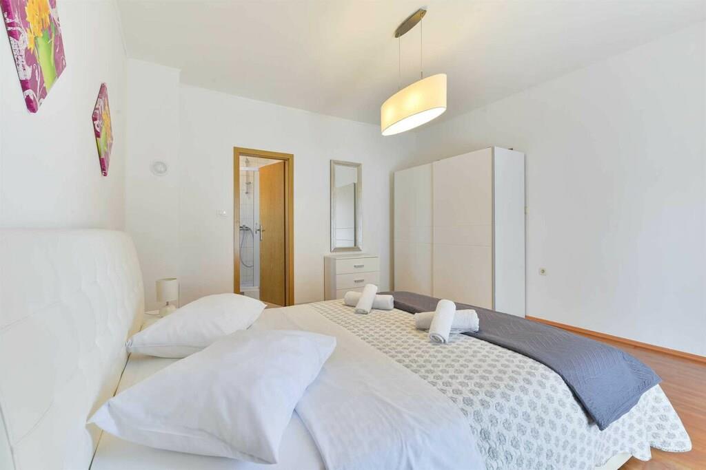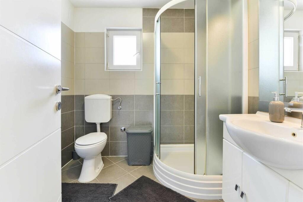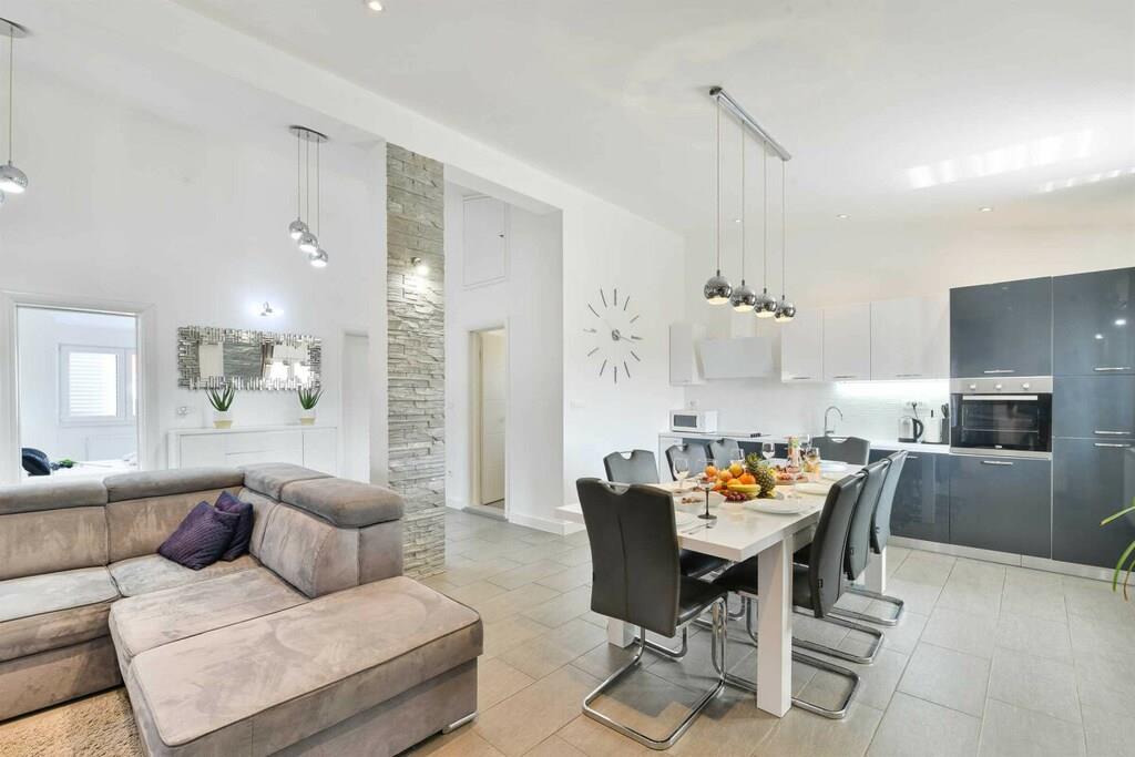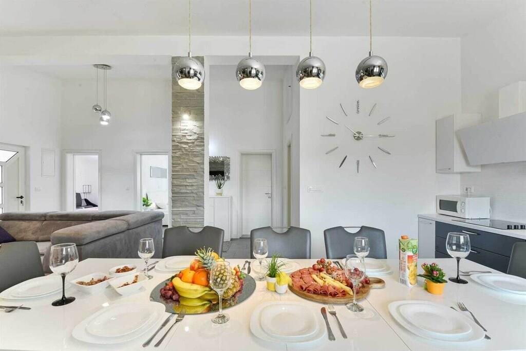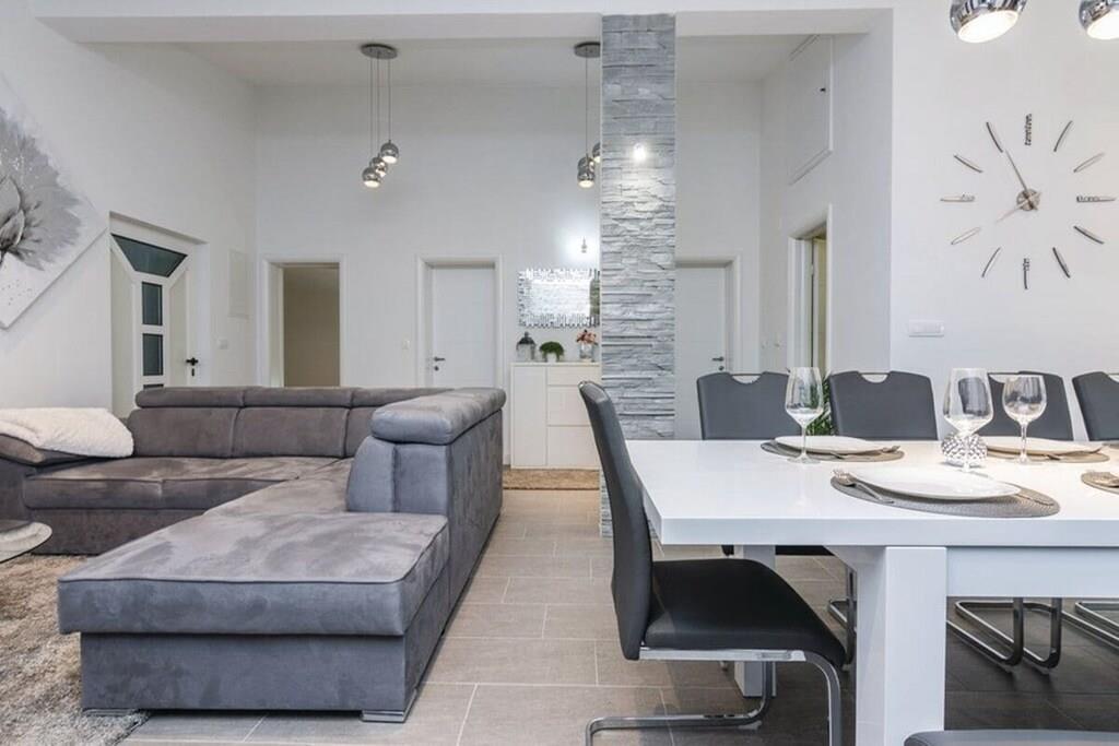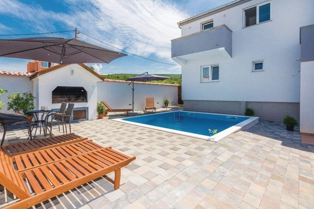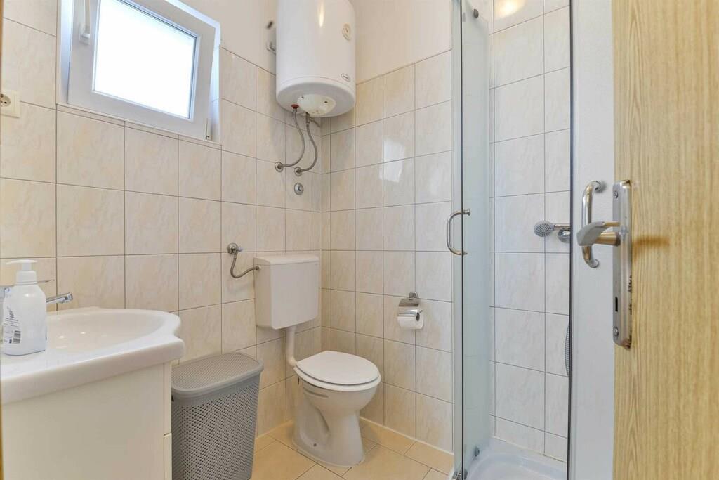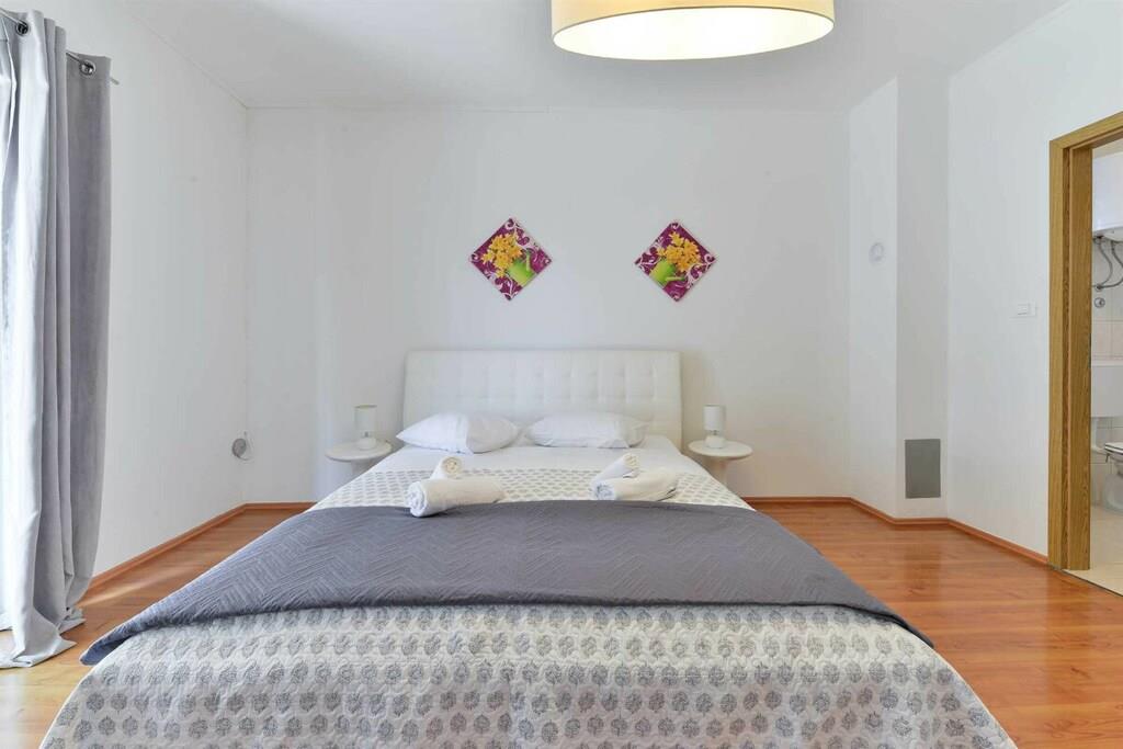 Entspannen Sie im komfortablen Ferienhaus mit Pool und Freizeitraum und genießen Sie die schöne Aussicht auf das kristallklare Adriameer von der Terrasse im Obergeschoss. Die Etagen sind mit Außentreppen verbunden und die Küstenstraße ist etwa 50 m weit entfernt. Auf der teilweise überdachten Terrasse können Sie im Schatten Ihren Morgenkaffee genießen und auf Anfrage ist es möglich, Massagen gegen Aufpreis zu vereinbaren.