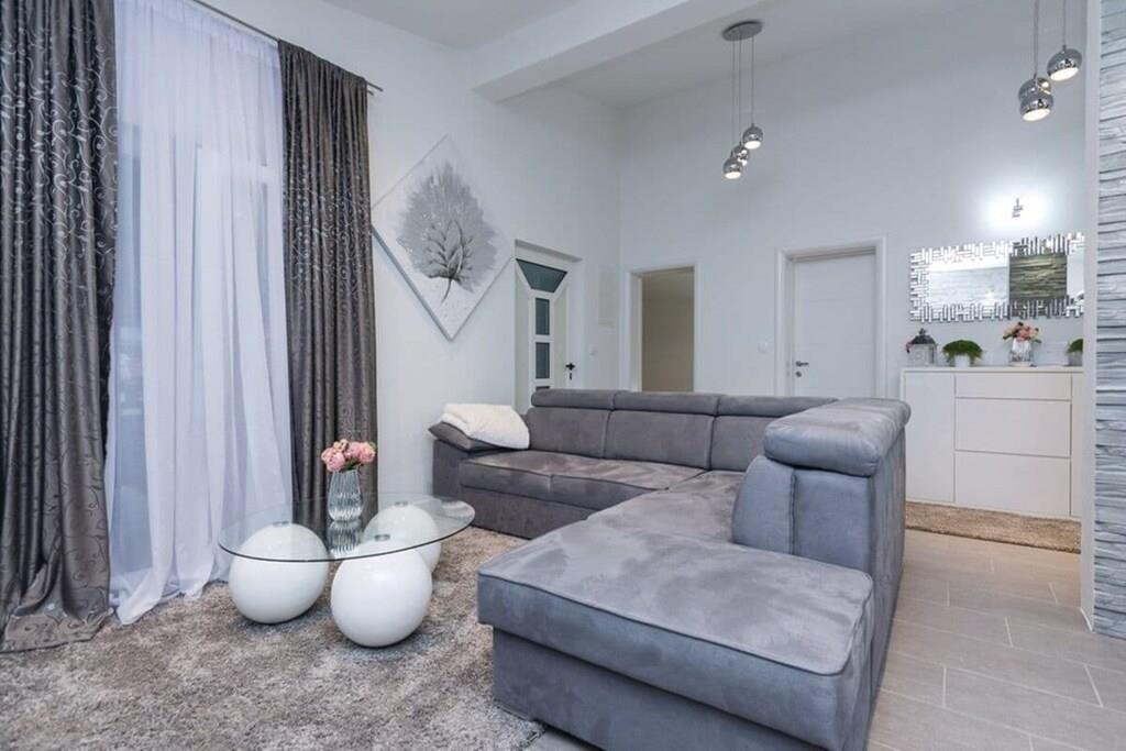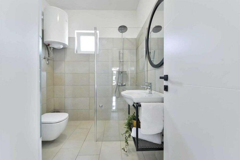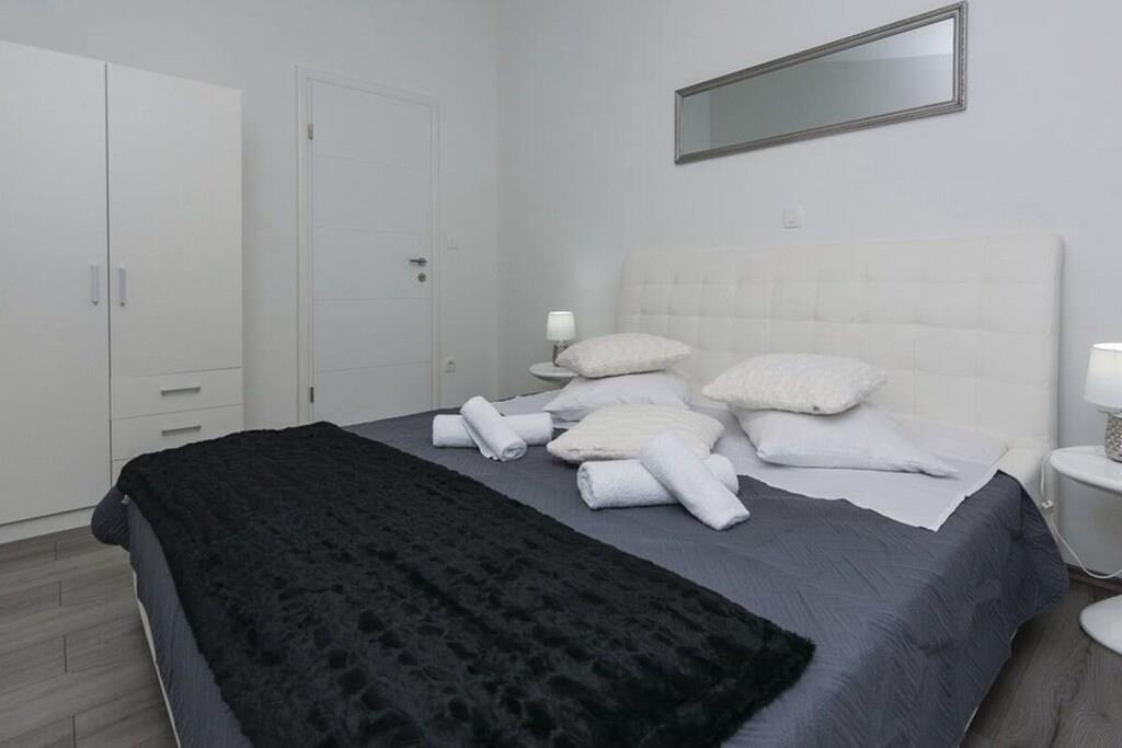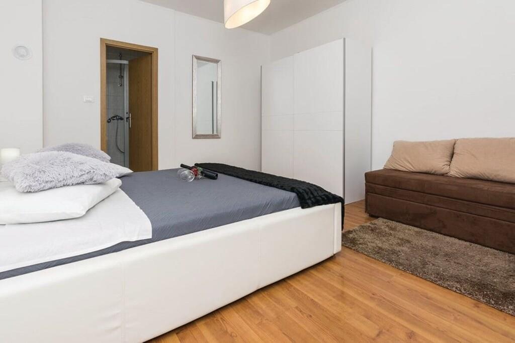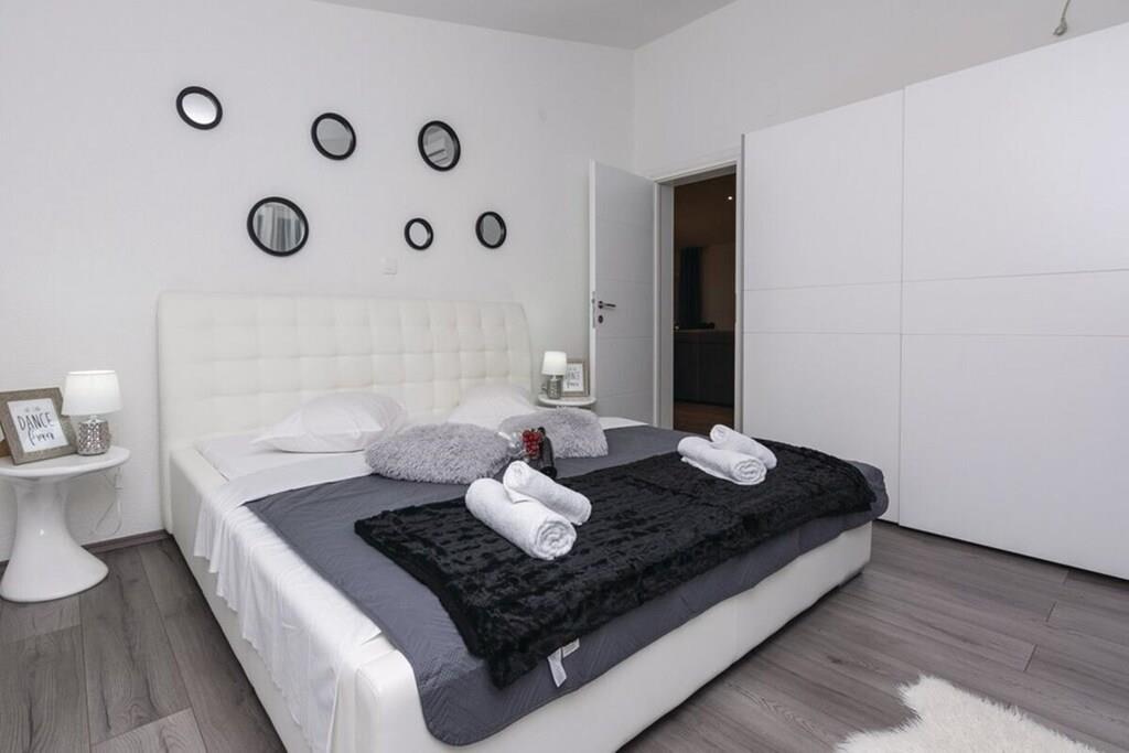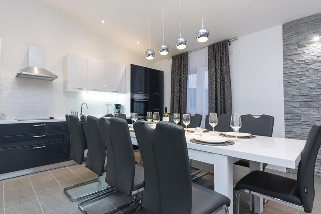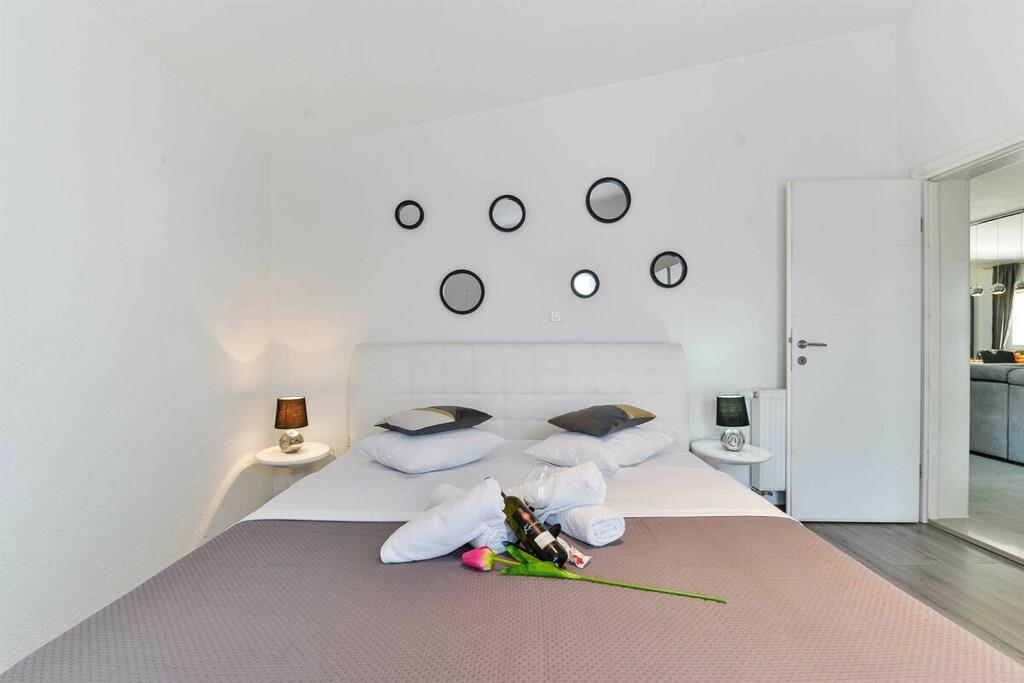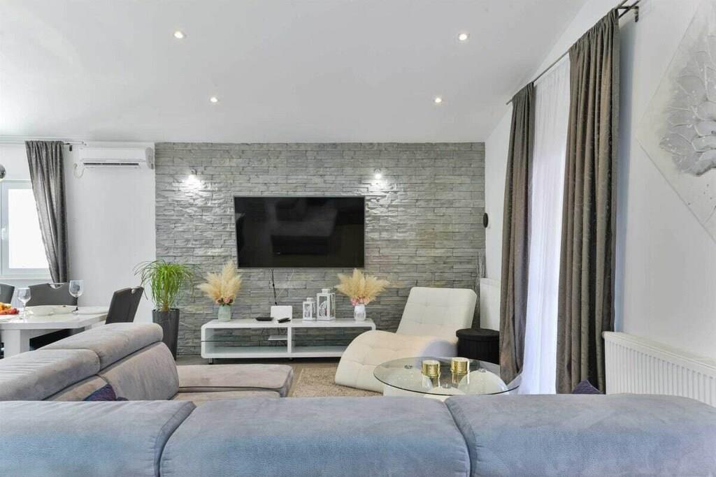 Entspannen Sie im komfortablen Ferienhaus mit Pool und Freizeitraum und genießen Sie die schöne Aussicht auf das kristallklare Adriameer von der Terrasse im Obergeschoss. Die Etagen sind mit Außentreppen verbunden und die Küstenstraße ist etwa 50 m weit entfernt. Auf der teilweise überdachten Terrasse können Sie im Schatten Ihren Morgenkaffee genießen und auf Anfrage ist es möglich, Massagen gegen Aufpreis zu vereinbaren.