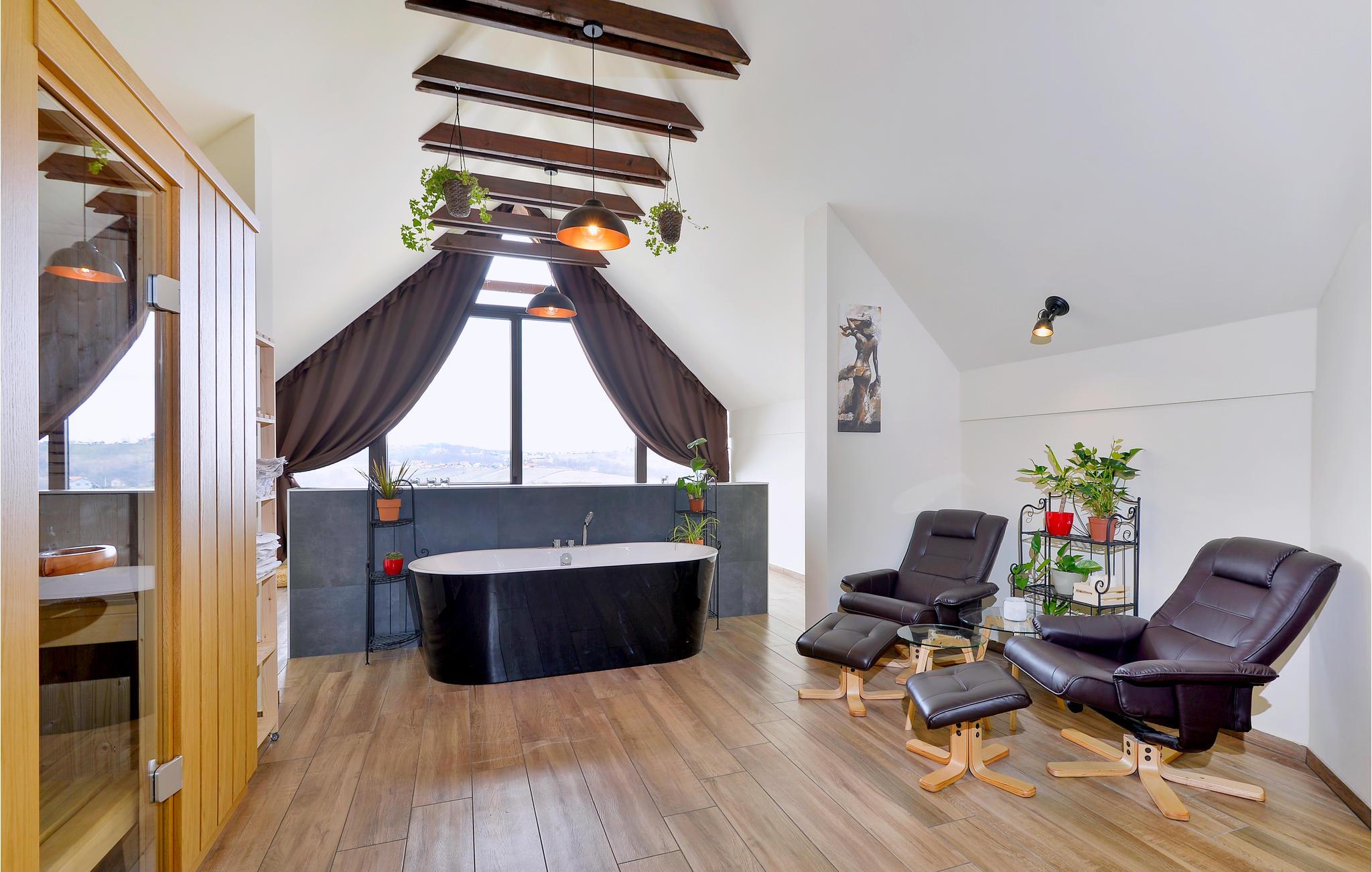 Huset ligger på en bakke, i rolige naturomgivelser. I er omgivet af frugtplantager og marker, og har kig til de flotte bjerge. Omegnen har et væld af aktivitetsmuligheder, herunder ridning, lystfiskeri, paintball, golf- og tennisbaner. Her findes også mange restauranter og vingårde, der tilbyder et stort udvalg af lækre retter og gode vine. De nærliggende termalbade har flere sportsfaciliteter, indendørs og udendørs swimmingpool såvel som et badeland til børn.