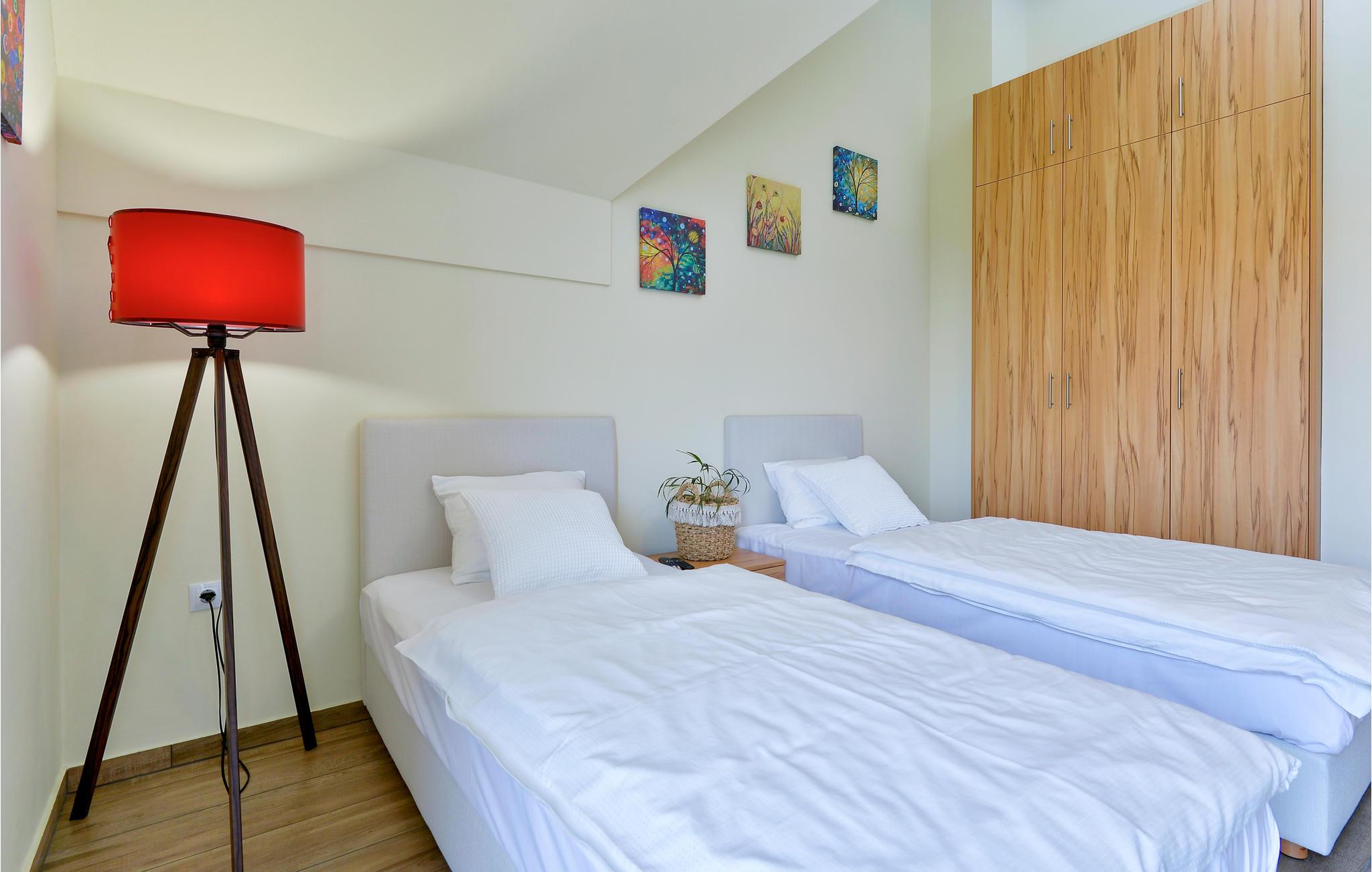 I nærheden af Sveri Martin na Muri's termalbade ligger dette feriehus. Det er smagfuldt indrettet og indeholder alt til en dejlig ferie. Huset er i 2 etager: Stueplan med åbent køkken, opholdsstue og spiseplads samt et toilet. Førstesalen har 2 soveværelser samt et badeværelse. I det ene soveværelse findes en sauna og et hydromassage badekar, der byder på afslapning for både krop og sjæl. Nyd at lave mad og spise udendørs ved sommerkøkkenet. Foran huset ligger den opvarmede swimmingpool med tilhørende solterrasse og liggestole.
