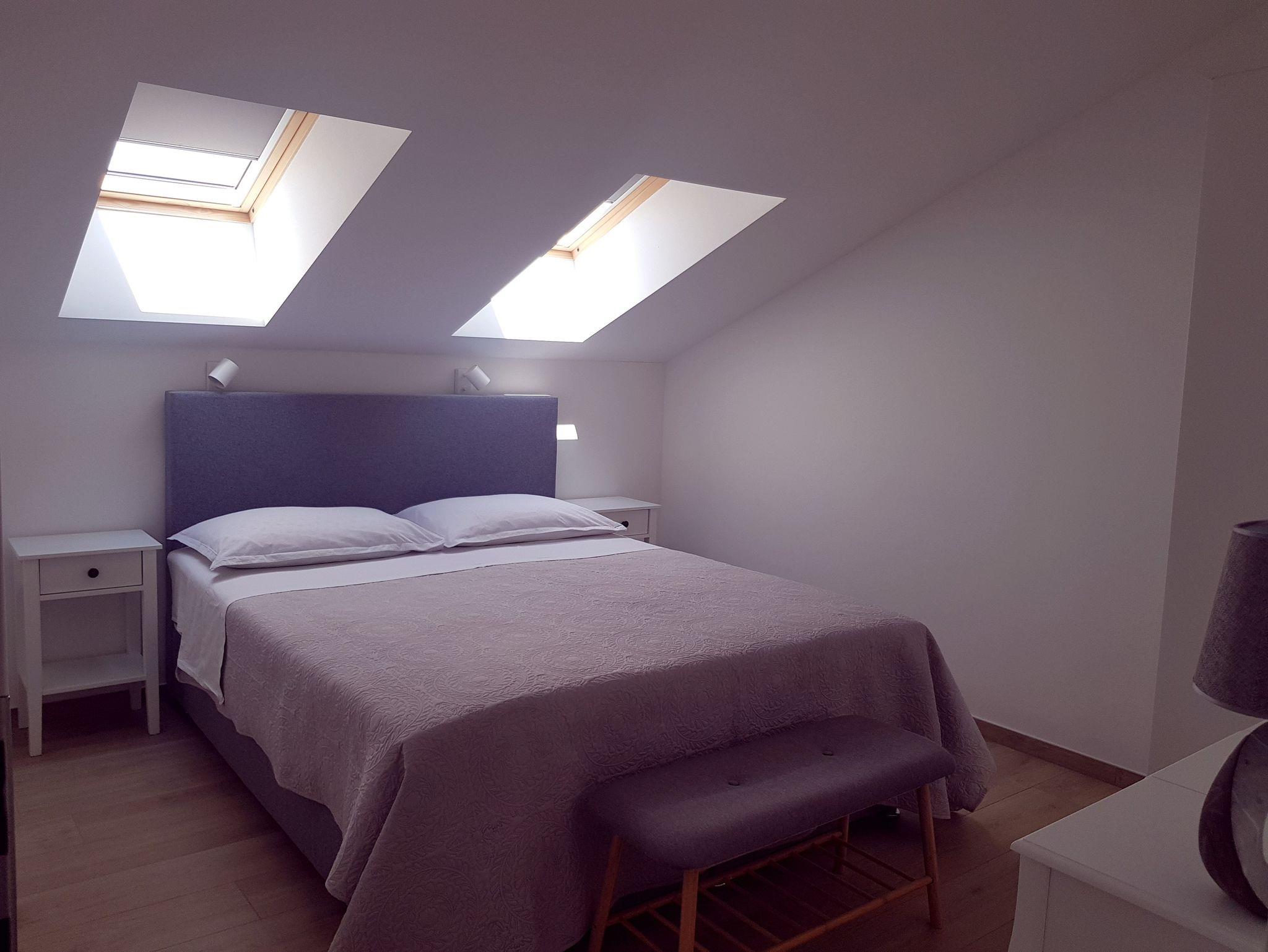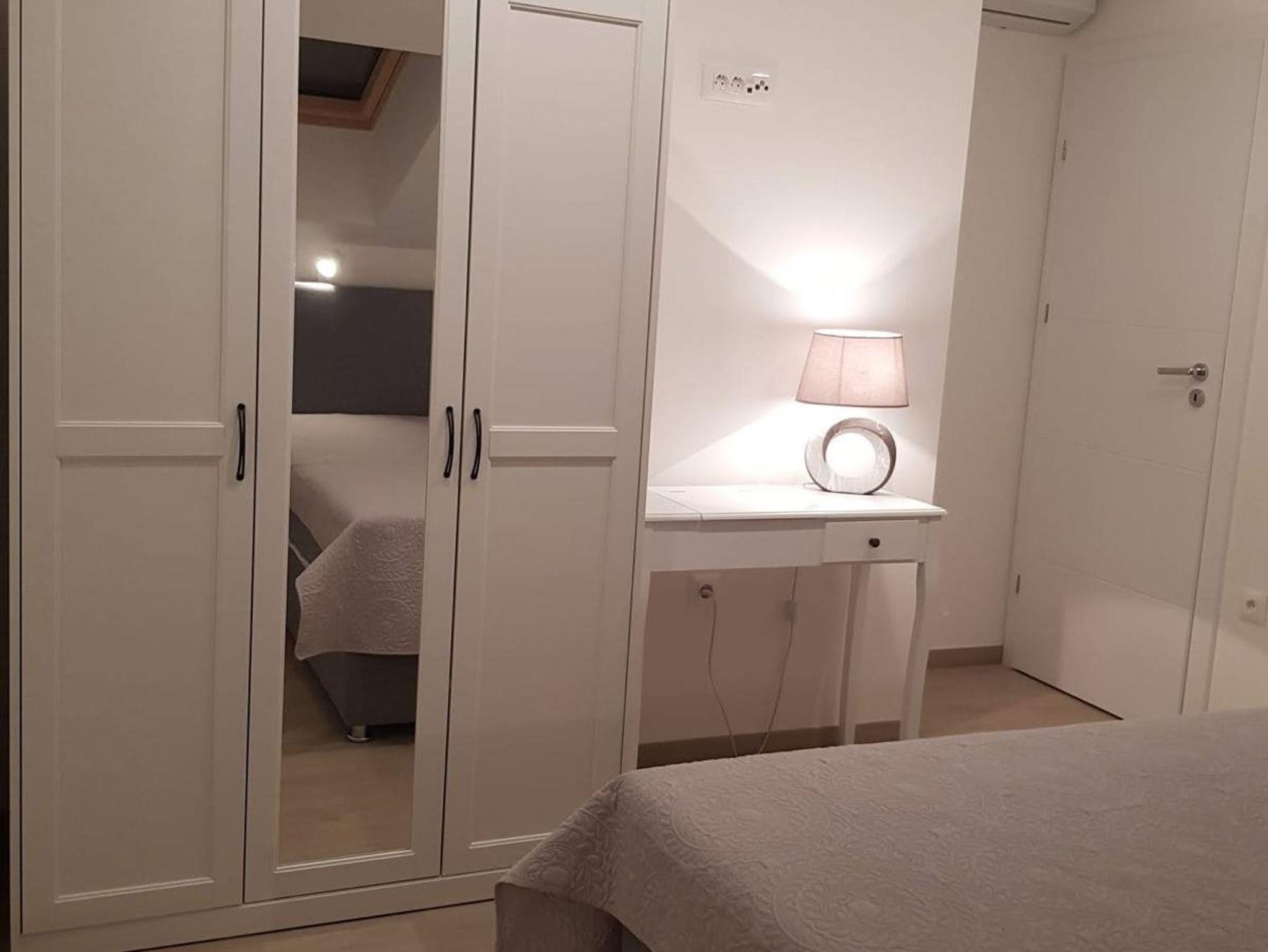 Ferienwohnung bietet Platz für 4 Gäste. Die Betten sind in Schlafzimmern, die es 2 gibt, innerhalb einer Gesamtfläche von 45m2, angeordnet. Die Gäste haben eine eigene Terrasse zur Verfügung, auf der sie in warmen Sommernächten genießen können. Das Apartment bietet Meerblick. Es ist erlaubt, Speisen auf dem Gemeinschafts-Grill vorzubereiten. IM PREIS INBEGRIFFEN: Kurtaxe, Endreinigung, Klimatisierung, Parkplatz, Internet, Bügeleisen, Bügelbrett, Föhn. VERBINDLICHE ZUSÄTZLICHE KOSTEN: Aufzahlung für Kurzaufenthalte (prozentualer Zuschlag pro Nächtigungsanzahl: 30% - 1, 20% - 2, 10% - 3). Die Verfügbarkeit zusätzlicher Dienstleistungen in Ihrem reservierten Termin und die Preise derselben (falls nicht aufgeführt) müssen im Voraus überprüft werden. Zusätzliche Dienstleistungen die in der Zahlungsaufforderung nicht aufgeführt sind werden direkt beim Vermieter bezahlt, angenommen der Gast nutzt auch diese.