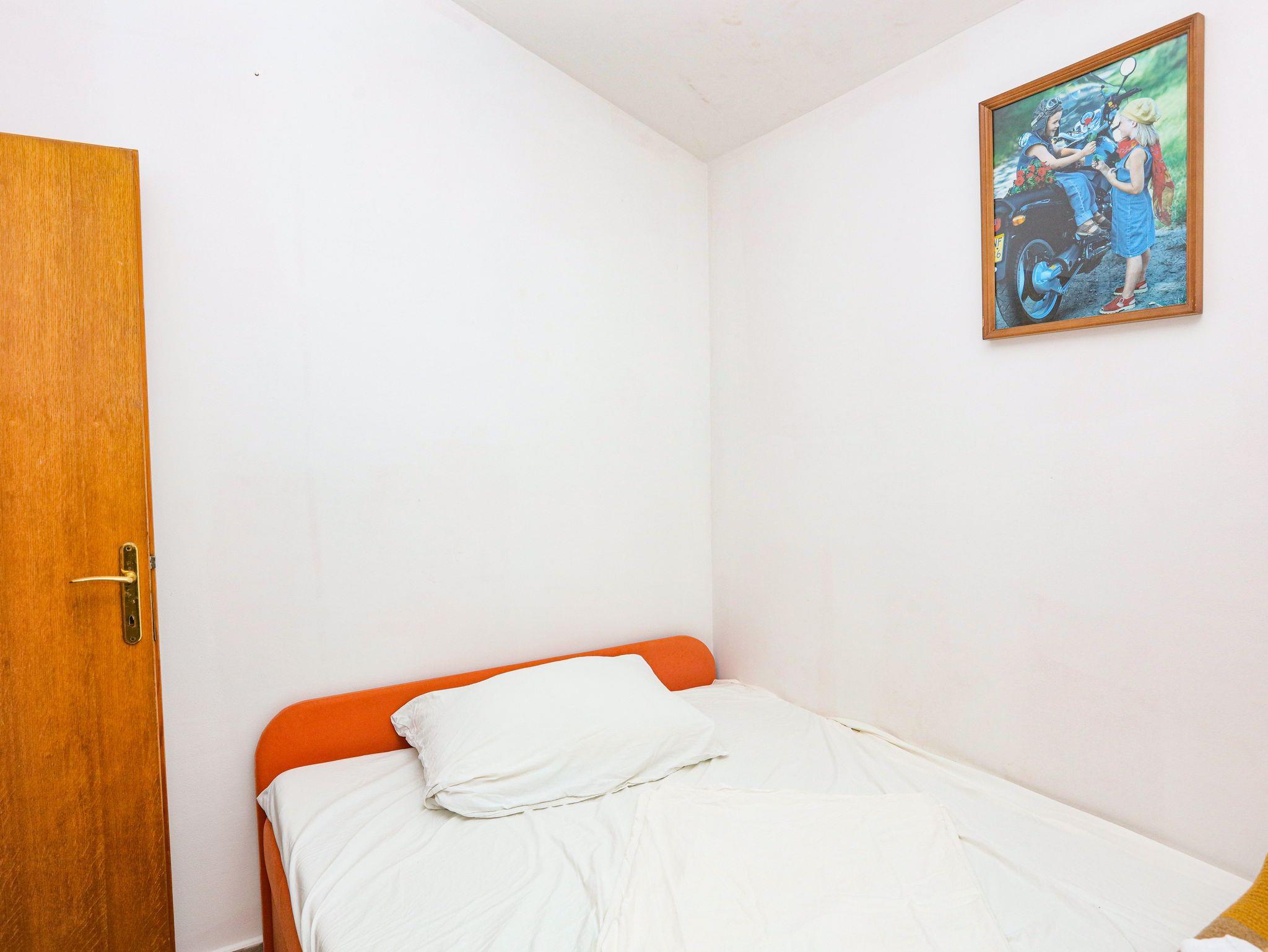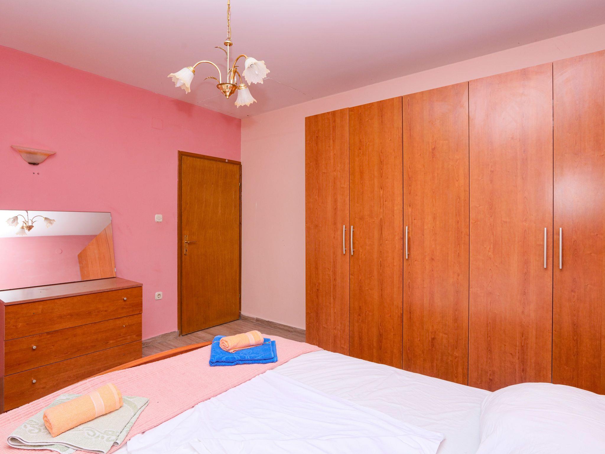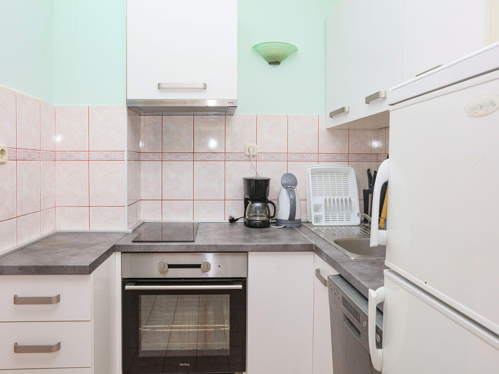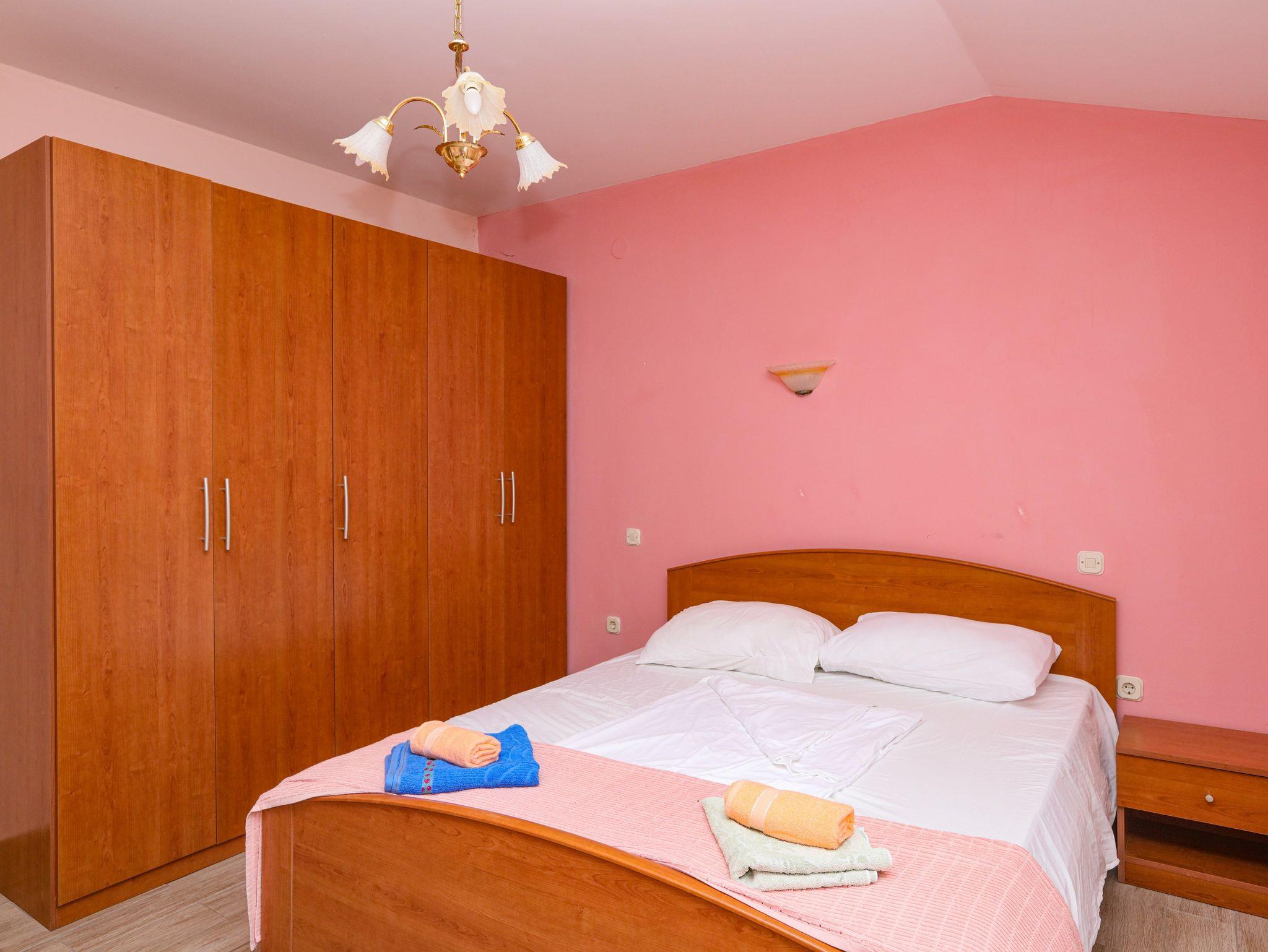 Ferienwohnung bietet Platz für 8 Gäste. Die Betten sind in Schlafzimmern, die es 2 gibt, und in Wohnzimmer, innerhalb einer Gesamtfläche von 65m2, angeordnet. Die Gäste haben eine eigene Terrasse zur Verfügung, auf der sie in warmen Sommernächten genießen können. Das Apartment bietet Meerblick. Es ist erlaubt, Speisen auf dem Gemeinschafts-Grill vorzubereiten. In der Unterkunftseinheit besteht die Möglichkeit des Mitbringens von Haustieren gegen Aufpreis. IM PREIS INBEGRIFFEN: Kurtaxe, Endreinigung, Klimatisierung, Parkplatz, Internet, Wäschewaschen, Bügeleisen, Bügelbrett, Föhn. VERBINDLICHE ZUSÄTZLICHE KOSTEN: Aufzahlung für Kurzaufenthalte (prozentualer Zuschlag pro Nächtigungsanzahl: 30% - 1, 20% - 2, 10% - 3). UNVERBINDLICHE ZUSÄTZLICHE KOSTEN: Bootsanlegeplatz (7,00 € pro Nacht), Haustiere (7,00 € pro Nacht). Die Verfügbarkeit zusätzlicher Dienstleistungen in Ihrem reservierten Termin und die Preise derselben (falls nicht aufgeführt) müssen im Voraus überprüft werden. Zusätzliche Dienstleistungen die in der Zahlungsaufforderung nicht aufgeführt sind werden direkt beim Vermieter bezahlt, angenommen der Gast nutzt auch diese. Ermäßigung auf den Grundpreis: Gratistag 14=13 (bei einem Aufenthalt von 14 Tagen oder mehr erhalten Sie einen Gratistag für den Aufenthalt bis 31.12.26).