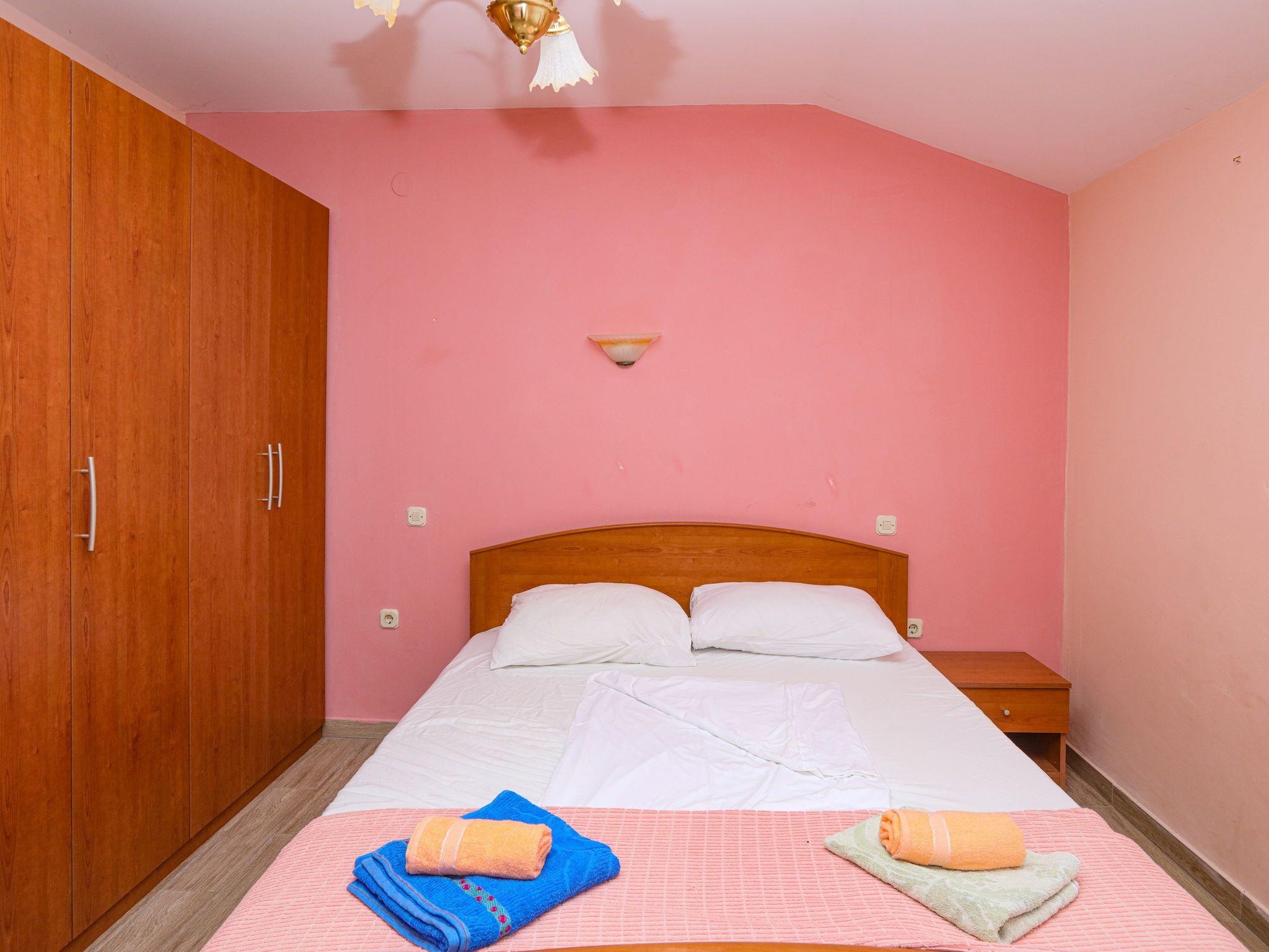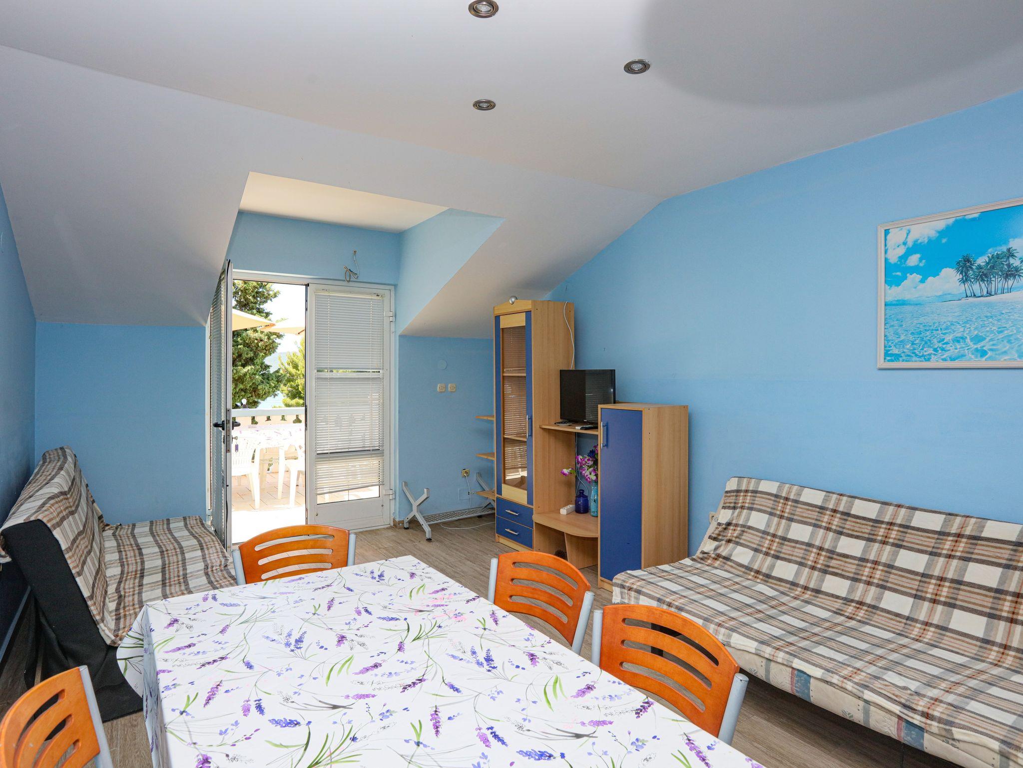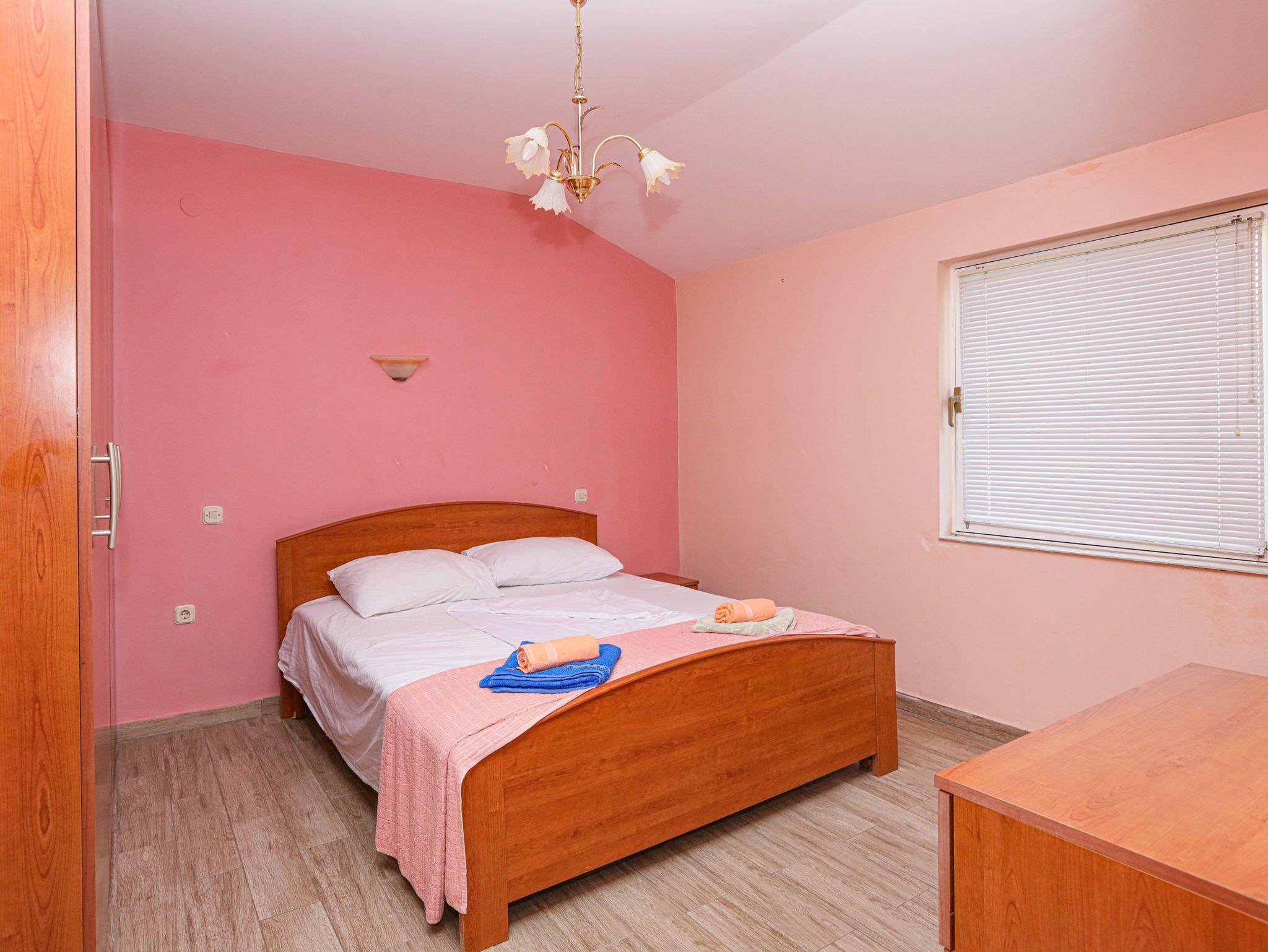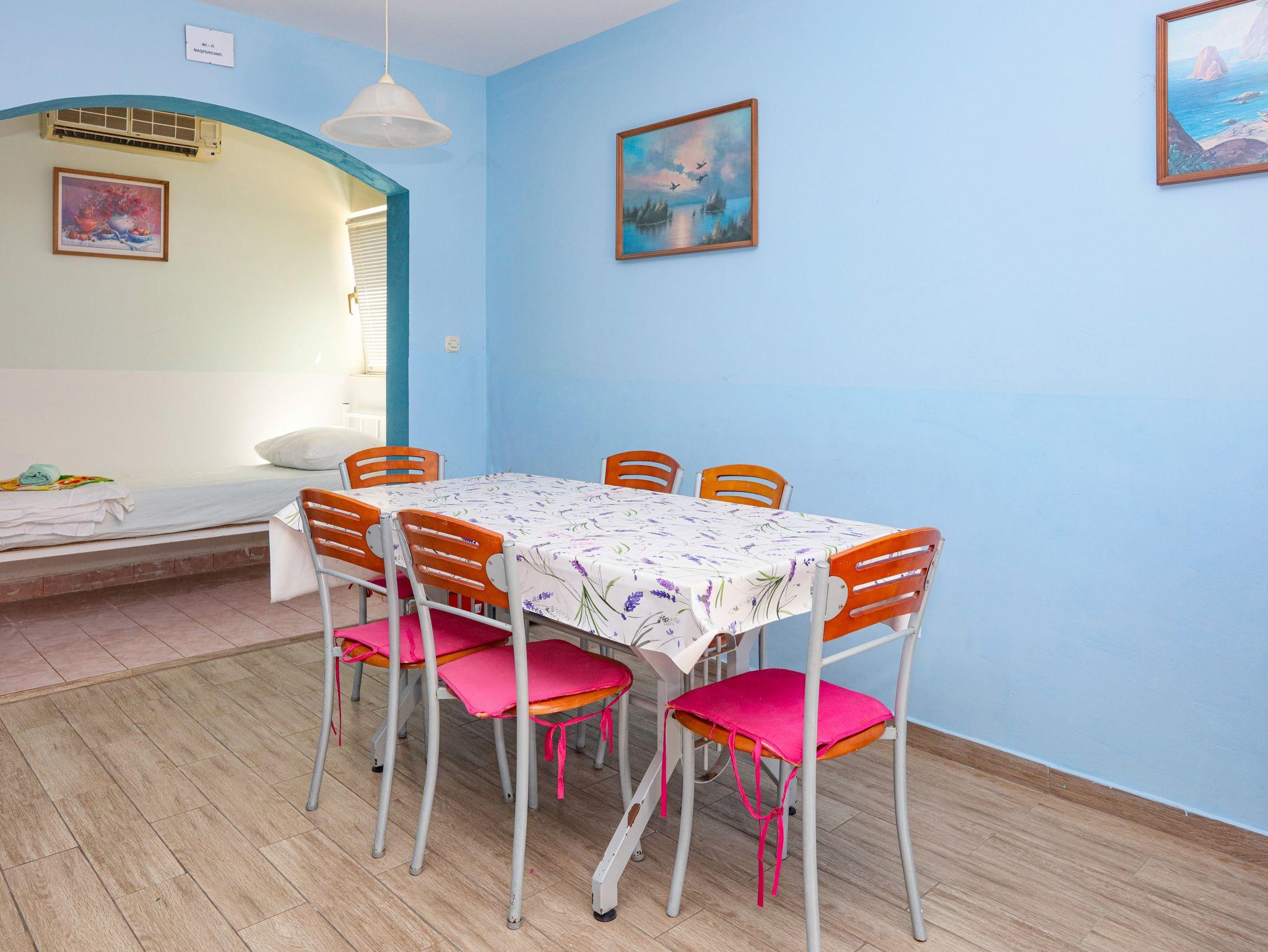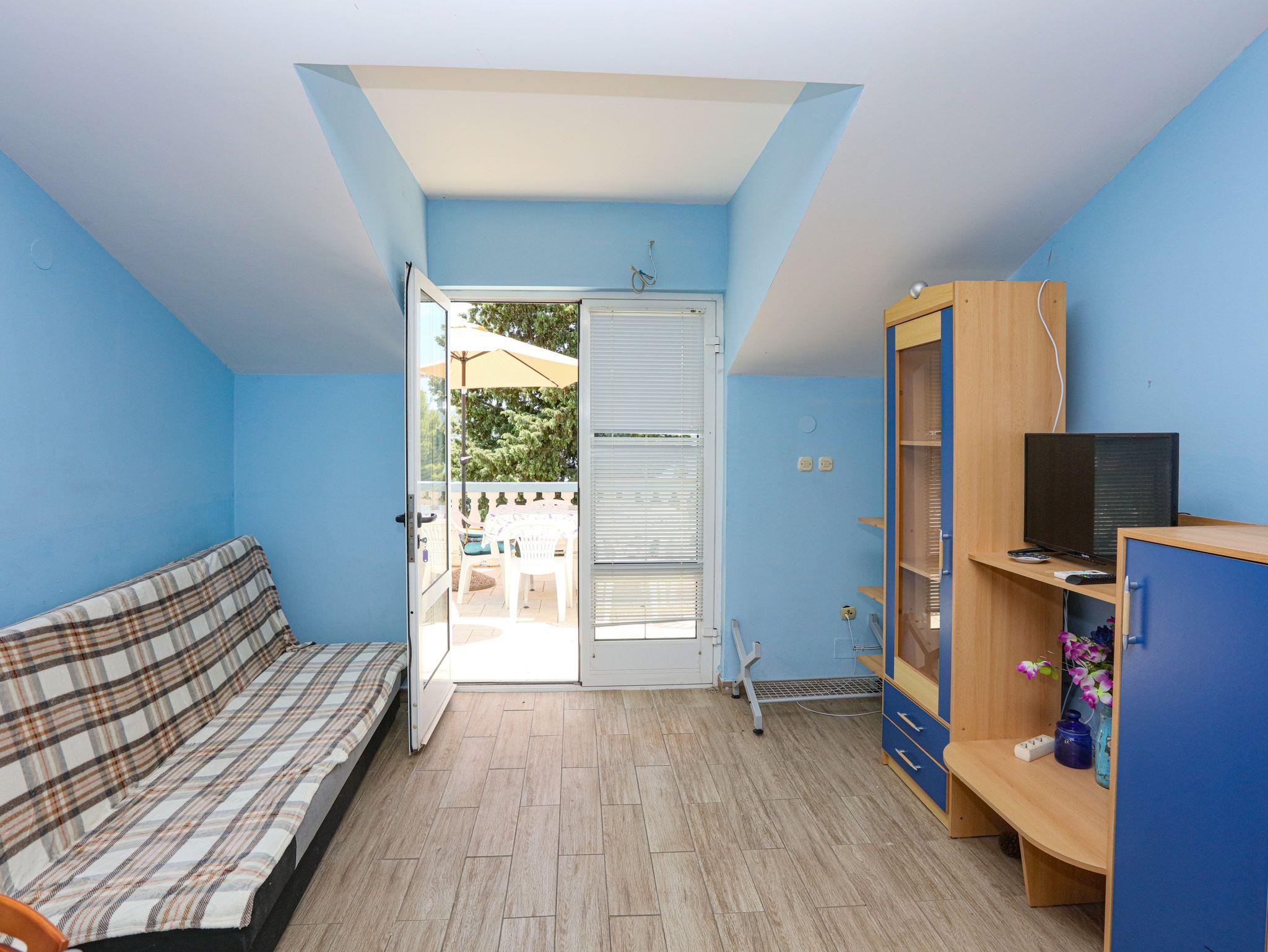 Ferienwohnung bietet Platz für 8 Gäste. Die Betten sind in Schlafzimmern, die es 2 gibt, und in Wohnzimmer, innerhalb einer Gesamtfläche von 65m2, angeordnet. Die Gäste haben eine eigene Terrasse zur Verfügung, auf der sie in warmen Sommernächten genießen können. Das Apartment bietet Meerblick. Es ist erlaubt, Speisen auf dem Gemeinschafts-Grill vorzubereiten. In der Unterkunftseinheit besteht die Möglichkeit des Mitbringens von Haustieren gegen Aufpreis. IM PREIS INBEGRIFFEN: Kurtaxe, Endreinigung, Klimatisierung, Parkplatz, Internet, Wäschewaschen, Bügeleisen, Bügelbrett, Föhn. VERBINDLICHE ZUSÄTZLICHE KOSTEN: Aufzahlung für Kurzaufenthalte (prozentualer Zuschlag pro Nächtigungsanzahl: 30% - 1, 20% - 2, 10% - 3). UNVERBINDLICHE ZUSÄTZLICHE KOSTEN: Bootsanlegeplatz (7,00 € pro Nacht), Haustiere (7,00 € pro Nacht). Die Verfügbarkeit zusätzlicher Dienstleistungen in Ihrem reservierten Termin und die Preise derselben (falls nicht aufgeführt) müssen im Voraus überprüft werden. Zusätzliche Dienstleistungen die in der Zahlungsaufforderung nicht aufgeführt sind werden direkt beim Vermieter bezahlt, angenommen der Gast nutzt auch diese. Ermäßigung auf den Grundpreis: Gratistag 14=13 (bei einem Aufenthalt von 14 Tagen oder mehr erhalten Sie einen Gratistag für den Aufenthalt bis 31.12.26).