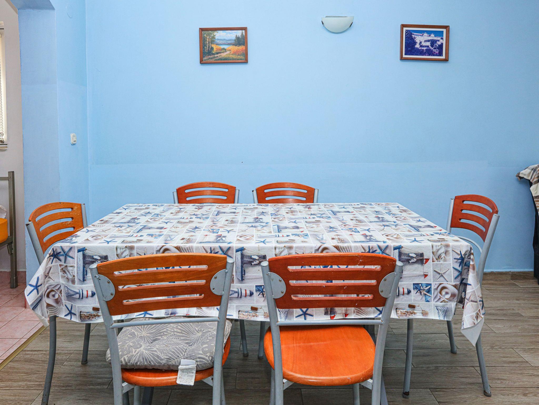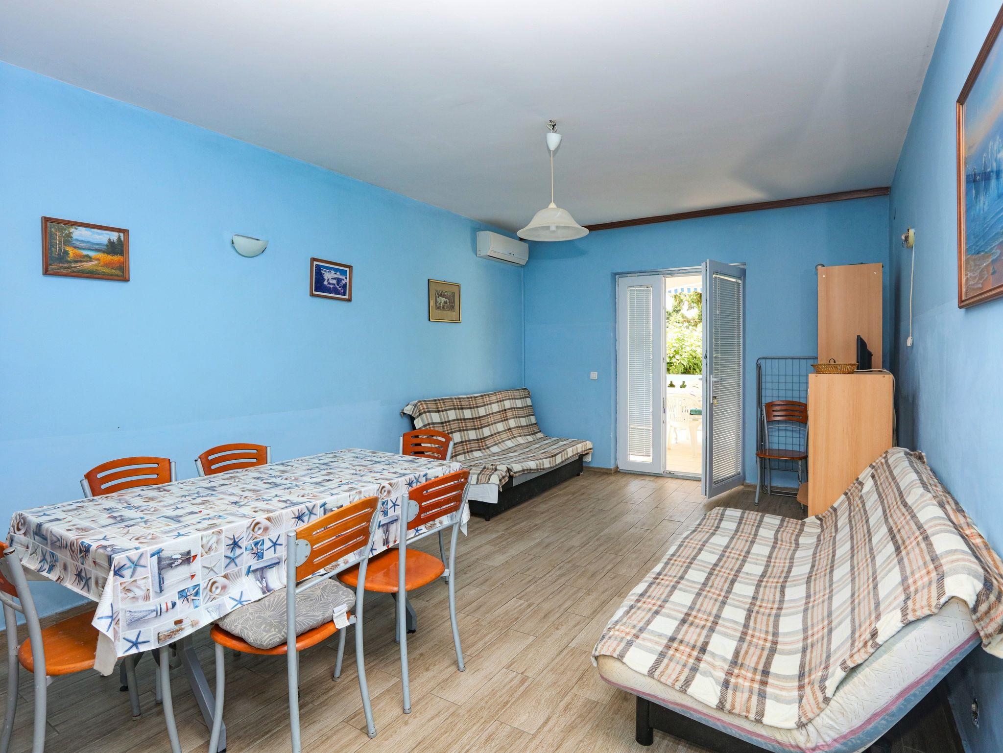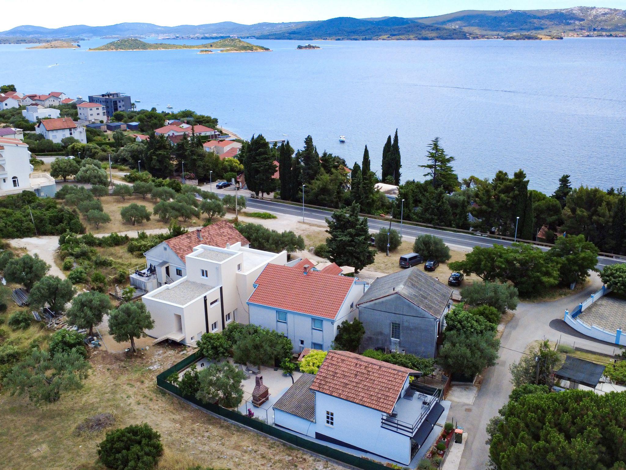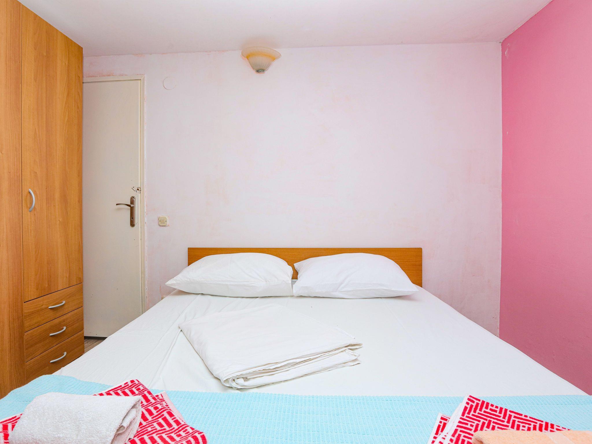 Ferienwohnung bietet Platz für 8 Gäste. Die Betten sind in Schlafzimmern, die es 2 gibt, und in Wohnzimmer, innerhalb einer Gesamtfläche von 63m2, angeordnet. Die Gäste haben eine eigene Terrasse zur Verfügung, auf der sie in warmen Sommernächten genießen können. Das Apartment bietet Meerblick. Es ist erlaubt, Speisen auf dem Gemeinschafts-Grill vorzubereiten. In der Unterkunftseinheit besteht die Möglichkeit des Mitbringens von Haustieren gegen Aufpreis. IM PREIS INBEGRIFFEN: Kurtaxe, Endreinigung, Klimatisierung, Parkplatz, Internet, Wäschewaschen, Zusatzbett, Bügeleisen, Bügelbrett, Föhn. VERBINDLICHE ZUSÄTZLICHE KOSTEN: Aufzahlung für Kurzaufenthalte (prozentualer Zuschlag pro Nächtigungsanzahl: 30% - 1, 20% - 2, 10% - 3). UNVERBINDLICHE ZUSÄTZLICHE KOSTEN: Bootsanlegeplatz (7,00 € pro Nacht), Haustiere (7,00 € pro Nacht). Die Verfügbarkeit zusätzlicher Dienstleistungen in Ihrem reservierten Termin und die Preise derselben (falls nicht aufgeführt) müssen im Voraus überprüft werden. Zusätzliche Dienstleistungen die in der Zahlungsaufforderung nicht aufgeführt sind werden direkt beim Vermieter bezahlt, angenommen der Gast nutzt auch diese. Ermäßigung auf den Grundpreis: Gratistag 14=13 (bei einem Aufenthalt von 14 Tagen oder mehr erhalten Sie einen Gratistag für den Aufenthalt bis 31.12.26).