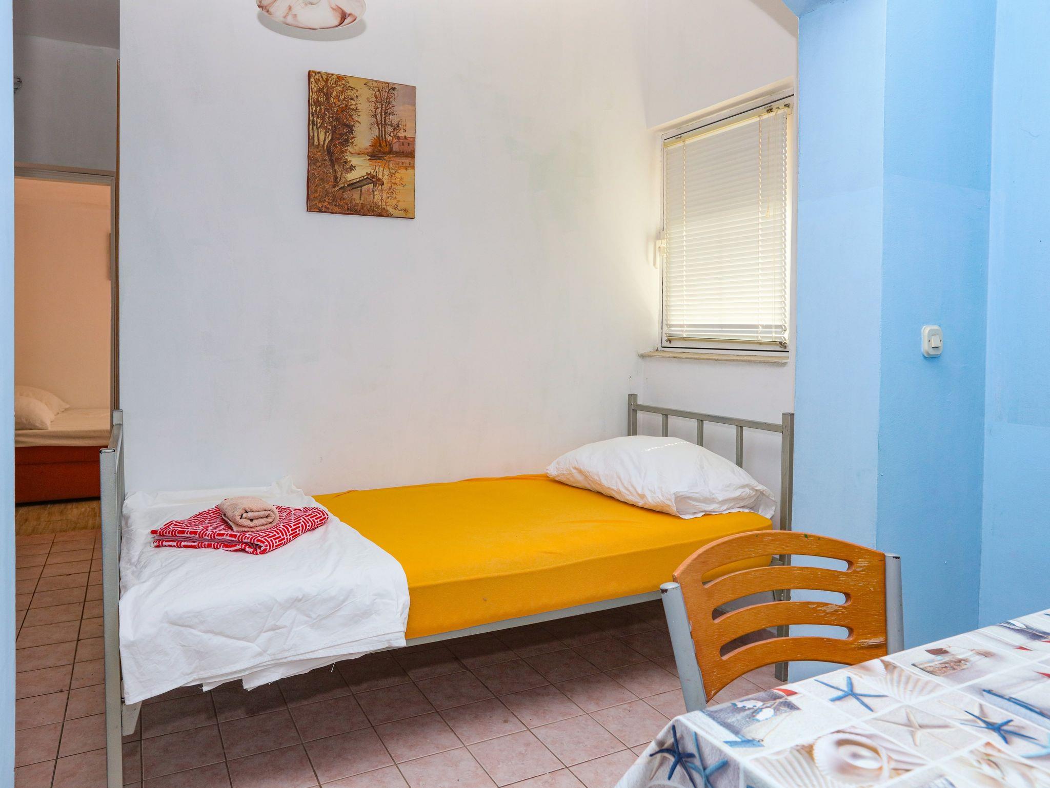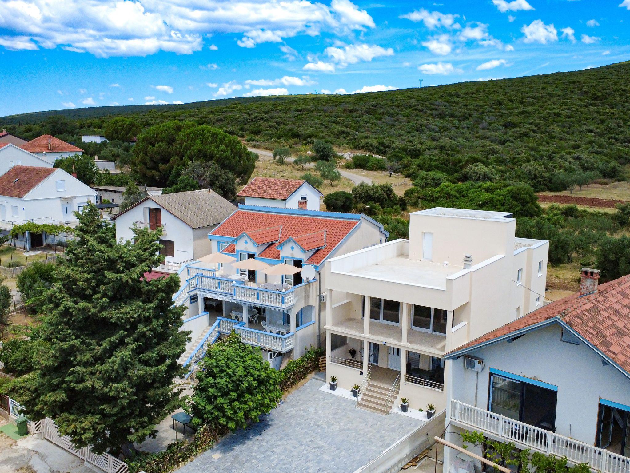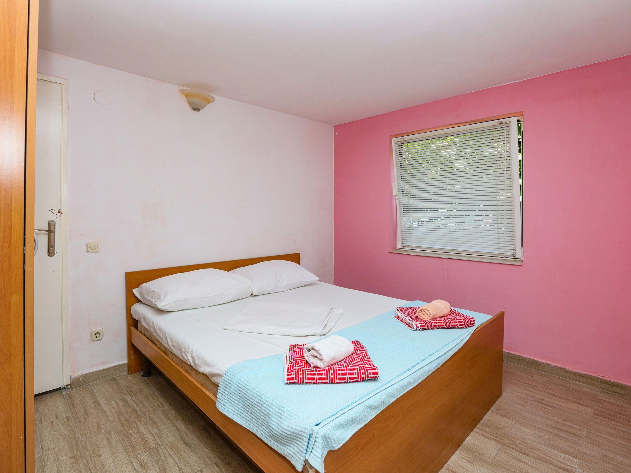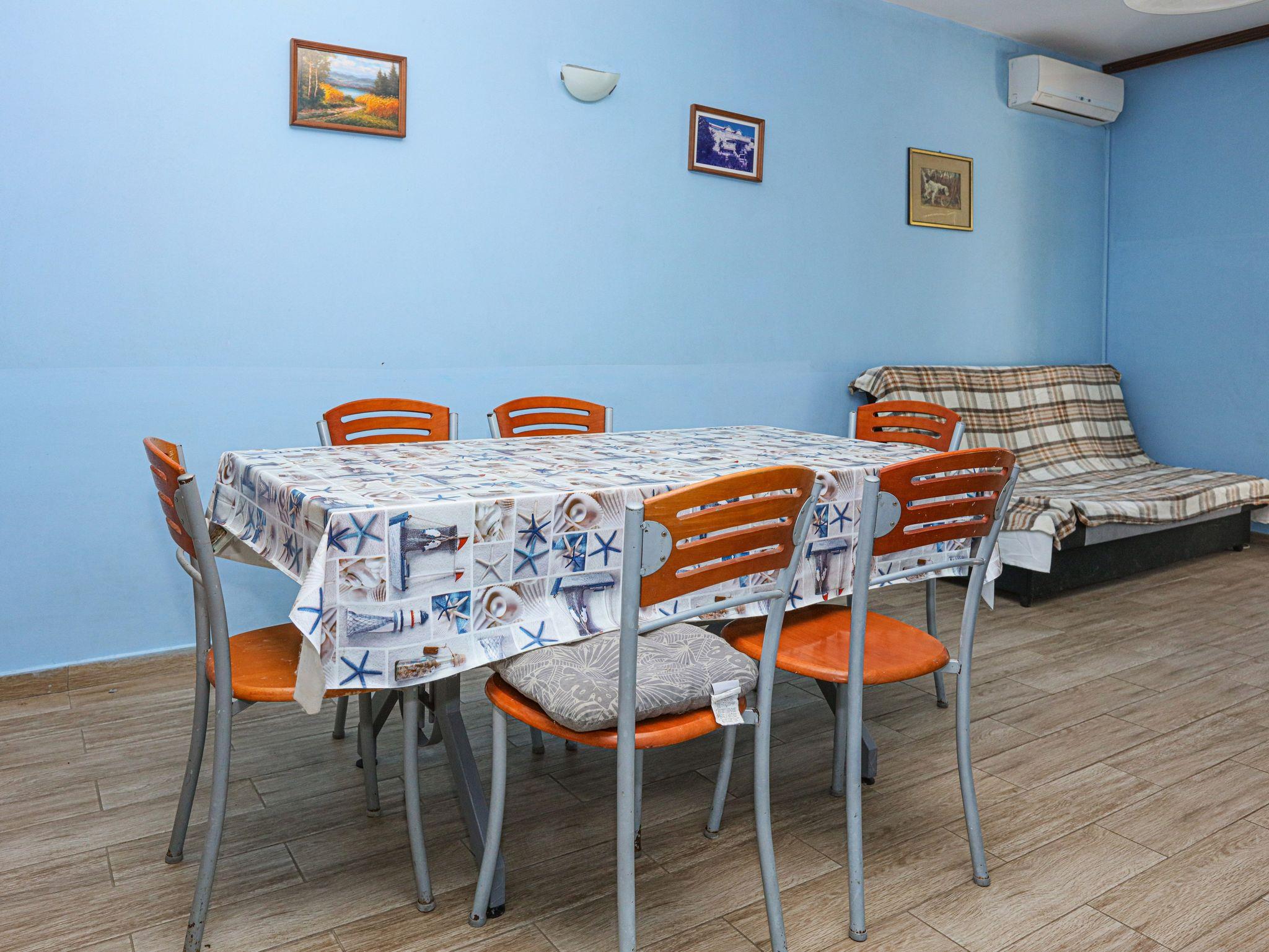 Ferienwohnung bietet Platz für 8 Gäste. Die Betten sind in Schlafzimmern, die es 2 gibt, und in Wohnzimmer, innerhalb einer Gesamtfläche von 63m2, angeordnet. Die Gäste haben eine eigene Terrasse zur Verfügung, auf der sie in warmen Sommernächten genießen können. Das Apartment bietet Meerblick. Es ist erlaubt, Speisen auf dem Gemeinschafts-Grill vorzubereiten. In der Unterkunftseinheit besteht die Möglichkeit des Mitbringens von Haustieren gegen Aufpreis. IM PREIS INBEGRIFFEN: Kurtaxe, Endreinigung, Klimatisierung, Parkplatz, Internet, Wäschewaschen, Zusatzbett, Bügeleisen, Bügelbrett, Föhn. VERBINDLICHE ZUSÄTZLICHE KOSTEN: Aufzahlung für Kurzaufenthalte (prozentualer Zuschlag pro Nächtigungsanzahl: 30% - 1, 20% - 2, 10% - 3). UNVERBINDLICHE ZUSÄTZLICHE KOSTEN: Bootsanlegeplatz (7,00 € pro Nacht), Haustiere (7,00 € pro Nacht). Die Verfügbarkeit zusätzlicher Dienstleistungen in Ihrem reservierten Termin und die Preise derselben (falls nicht aufgeführt) müssen im Voraus überprüft werden. Zusätzliche Dienstleistungen die in der Zahlungsaufforderung nicht aufgeführt sind werden direkt beim Vermieter bezahlt, angenommen der Gast nutzt auch diese. Ermäßigung auf den Grundpreis: Gratistag 14=13 (bei einem Aufenthalt von 14 Tagen oder mehr erhalten Sie einen Gratistag für den Aufenthalt bis 31.12.26).