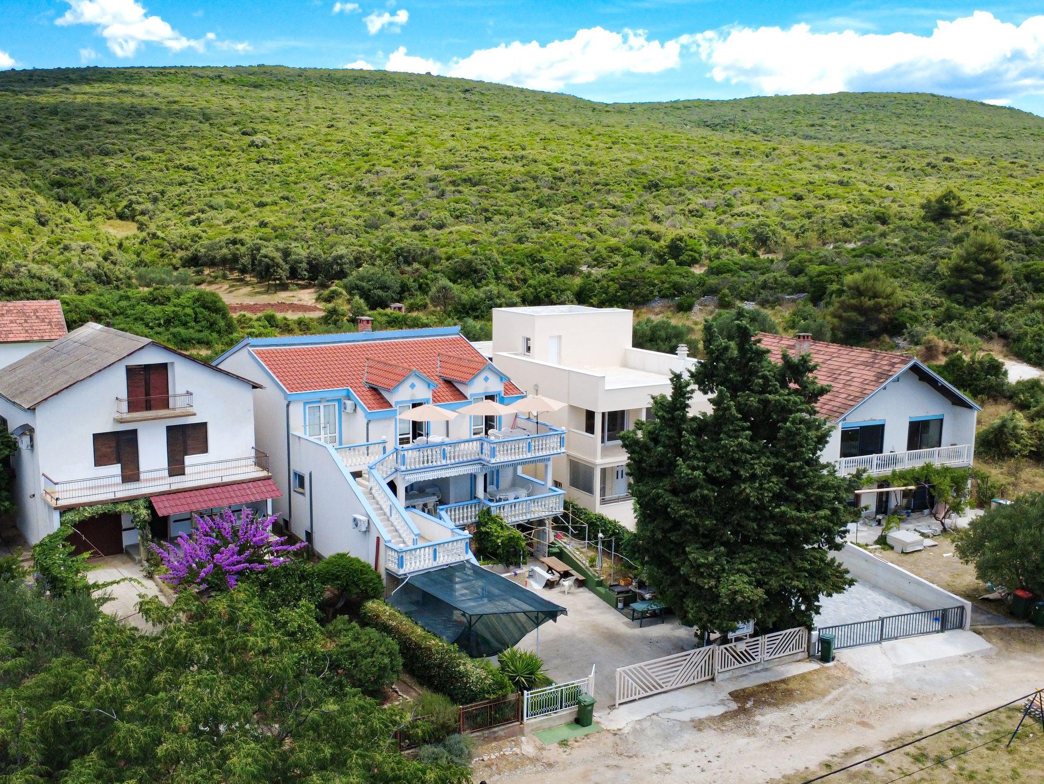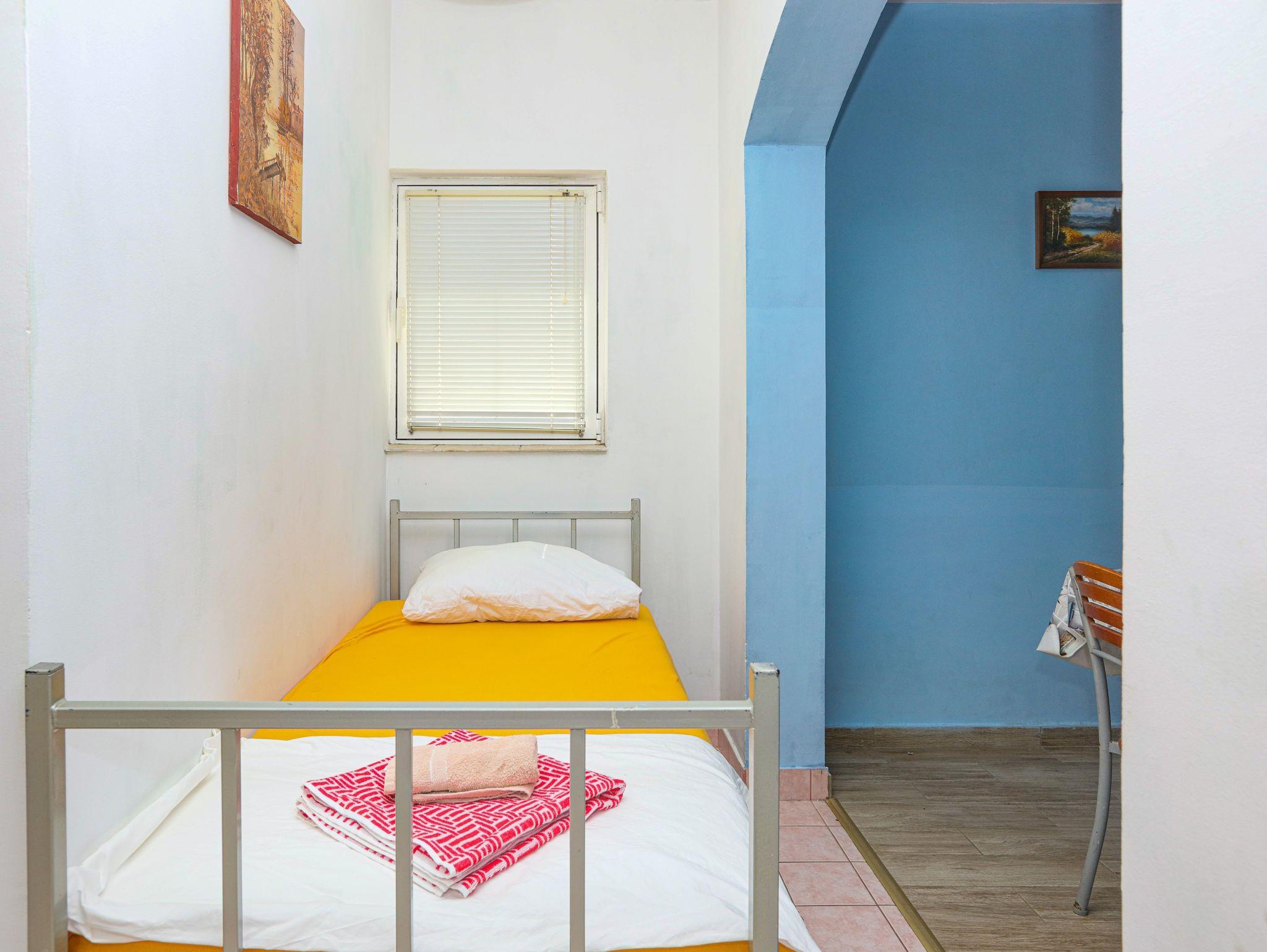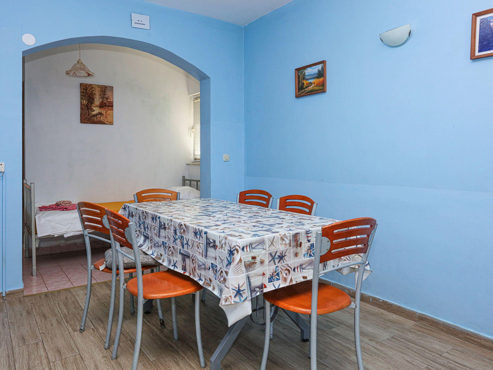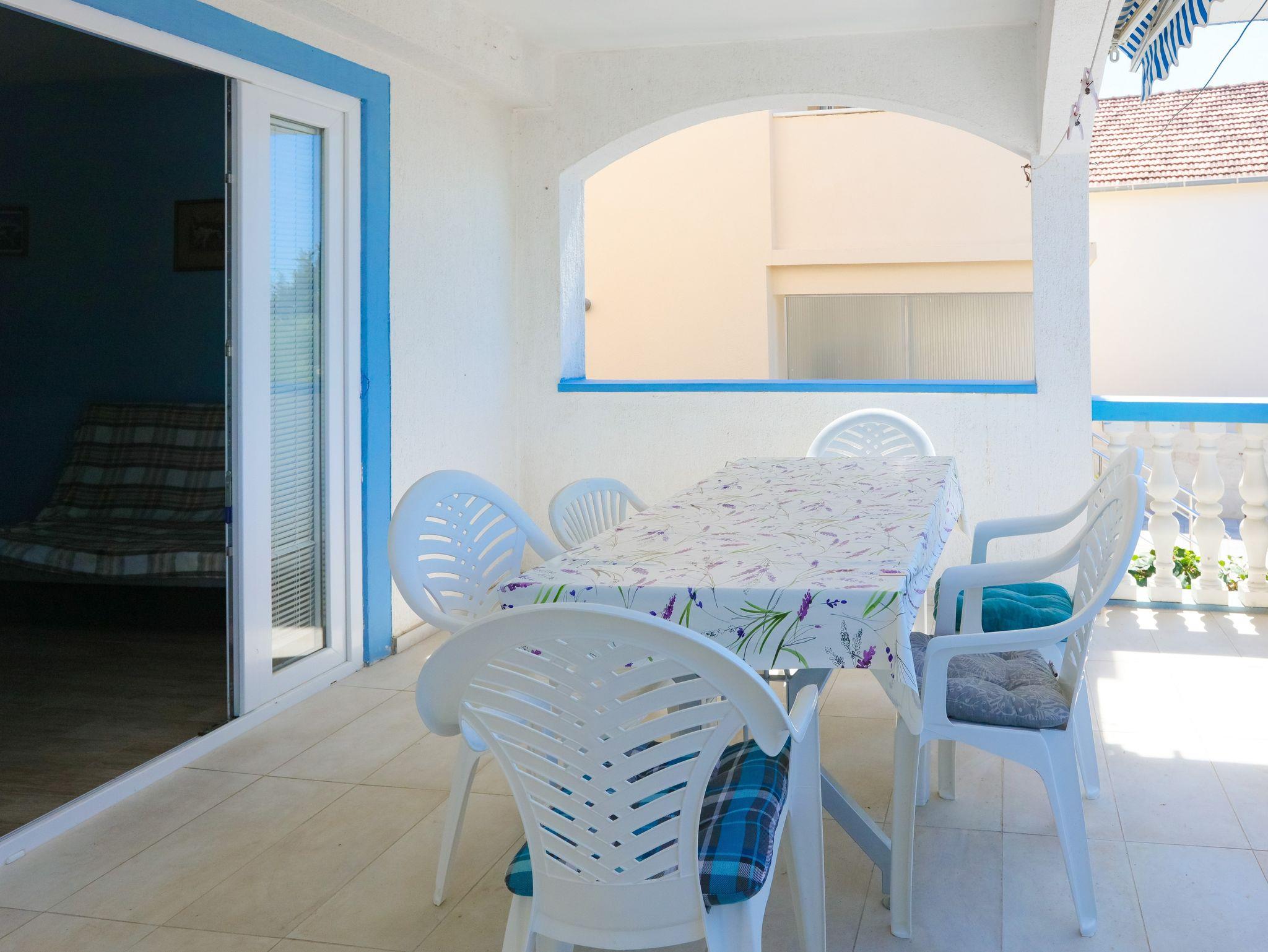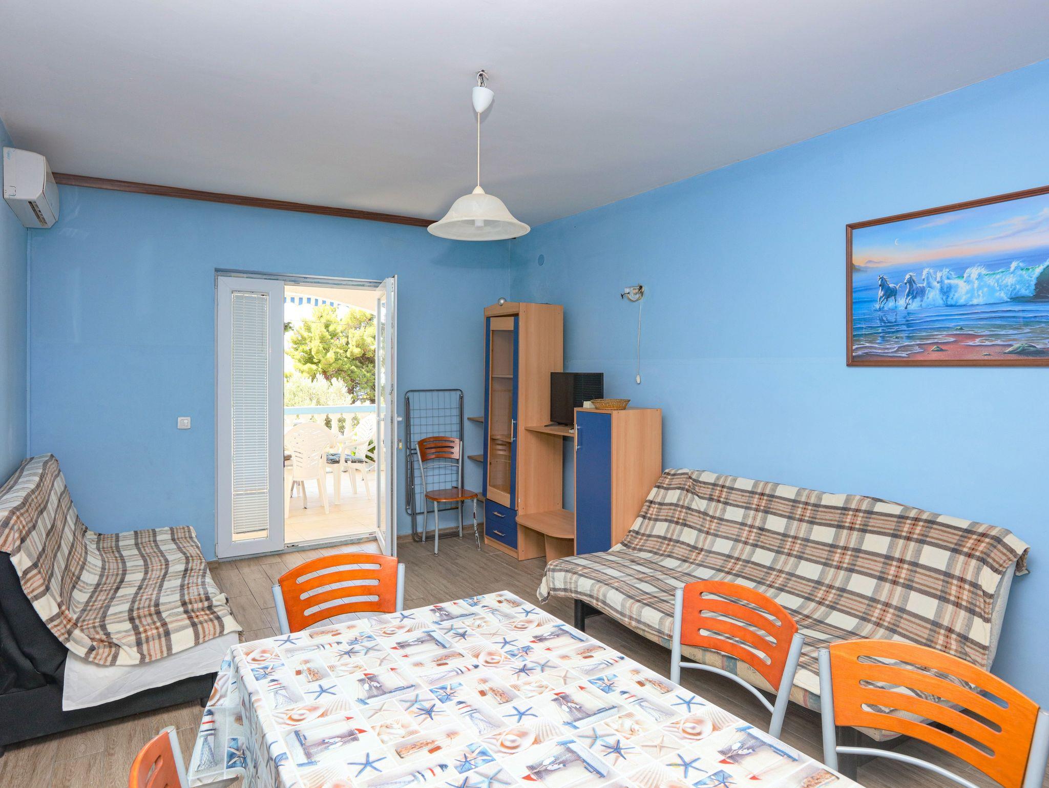 Ferienwohnung bietet Platz für 8 Gäste. Die Betten sind in Schlafzimmern, die es 2 gibt, und in Wohnzimmer, innerhalb einer Gesamtfläche von 63m2, angeordnet. Die Gäste haben eine eigene Terrasse zur Verfügung, auf der sie in warmen Sommernächten genießen können. Das Apartment bietet Meerblick. Es ist erlaubt, Speisen auf dem Gemeinschafts-Grill vorzubereiten. In der Unterkunftseinheit besteht die Möglichkeit des Mitbringens von Haustieren gegen Aufpreis. IM PREIS INBEGRIFFEN: Kurtaxe, Endreinigung, Klimatisierung, Parkplatz, Internet, Wäschewaschen, Zusatzbett, Bügeleisen, Bügelbrett, Föhn. VERBINDLICHE ZUSÄTZLICHE KOSTEN: Aufzahlung für Kurzaufenthalte (prozentualer Zuschlag pro Nächtigungsanzahl: 30% - 1, 20% - 2, 10% - 3). UNVERBINDLICHE ZUSÄTZLICHE KOSTEN: Bootsanlegeplatz (7,00 € pro Nacht), Haustiere (7,00 € pro Nacht). Die Verfügbarkeit zusätzlicher Dienstleistungen in Ihrem reservierten Termin und die Preise derselben (falls nicht aufgeführt) müssen im Voraus überprüft werden. Zusätzliche Dienstleistungen die in der Zahlungsaufforderung nicht aufgeführt sind werden direkt beim Vermieter bezahlt, angenommen der Gast nutzt auch diese. Ermäßigung auf den Grundpreis: Gratistag 14=13 (bei einem Aufenthalt von 14 Tagen oder mehr erhalten Sie einen Gratistag für den Aufenthalt bis 31.12.26).