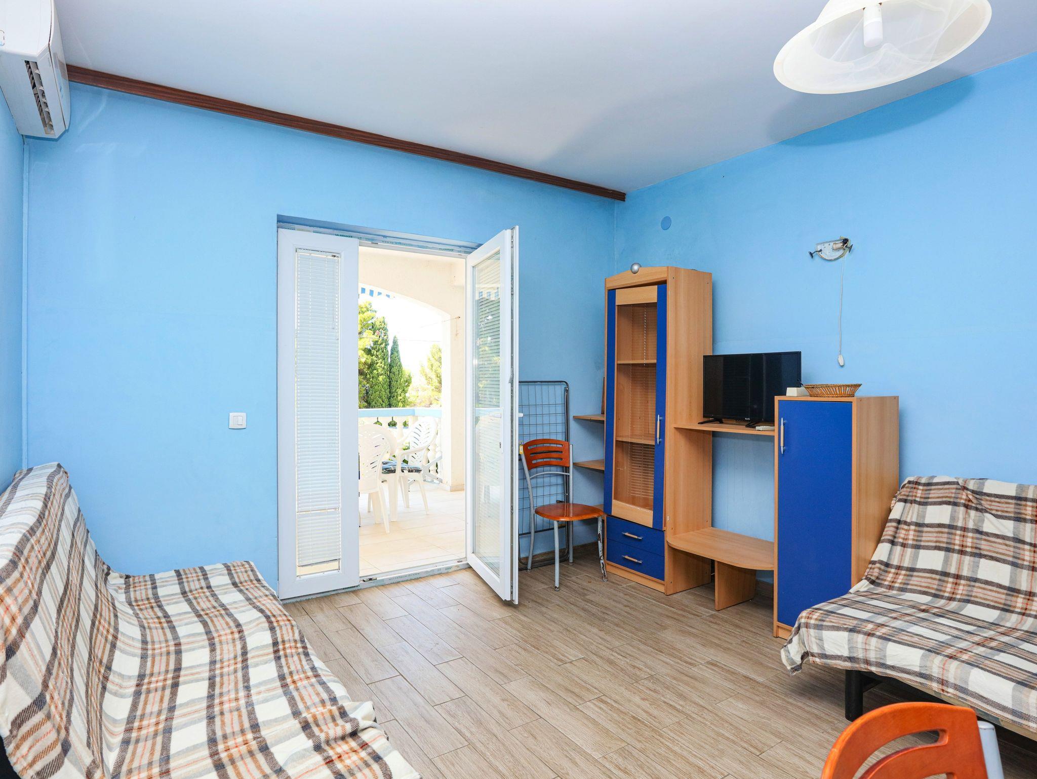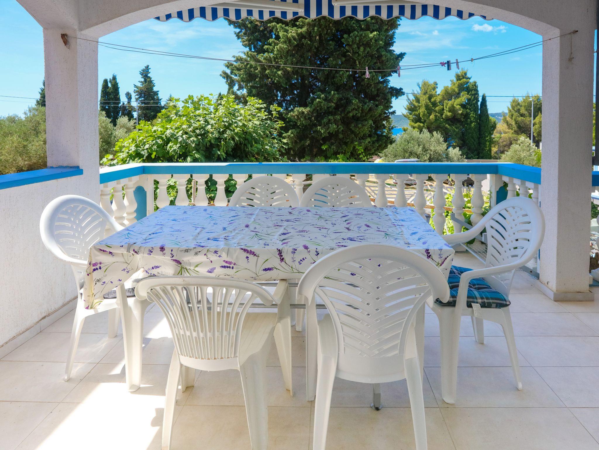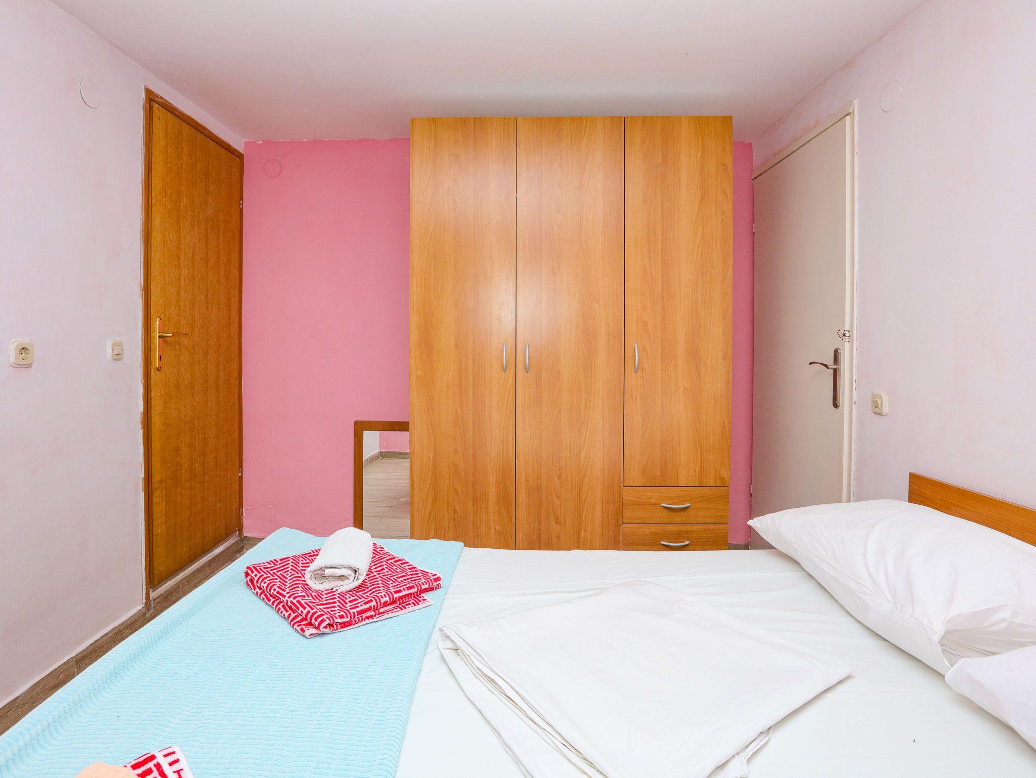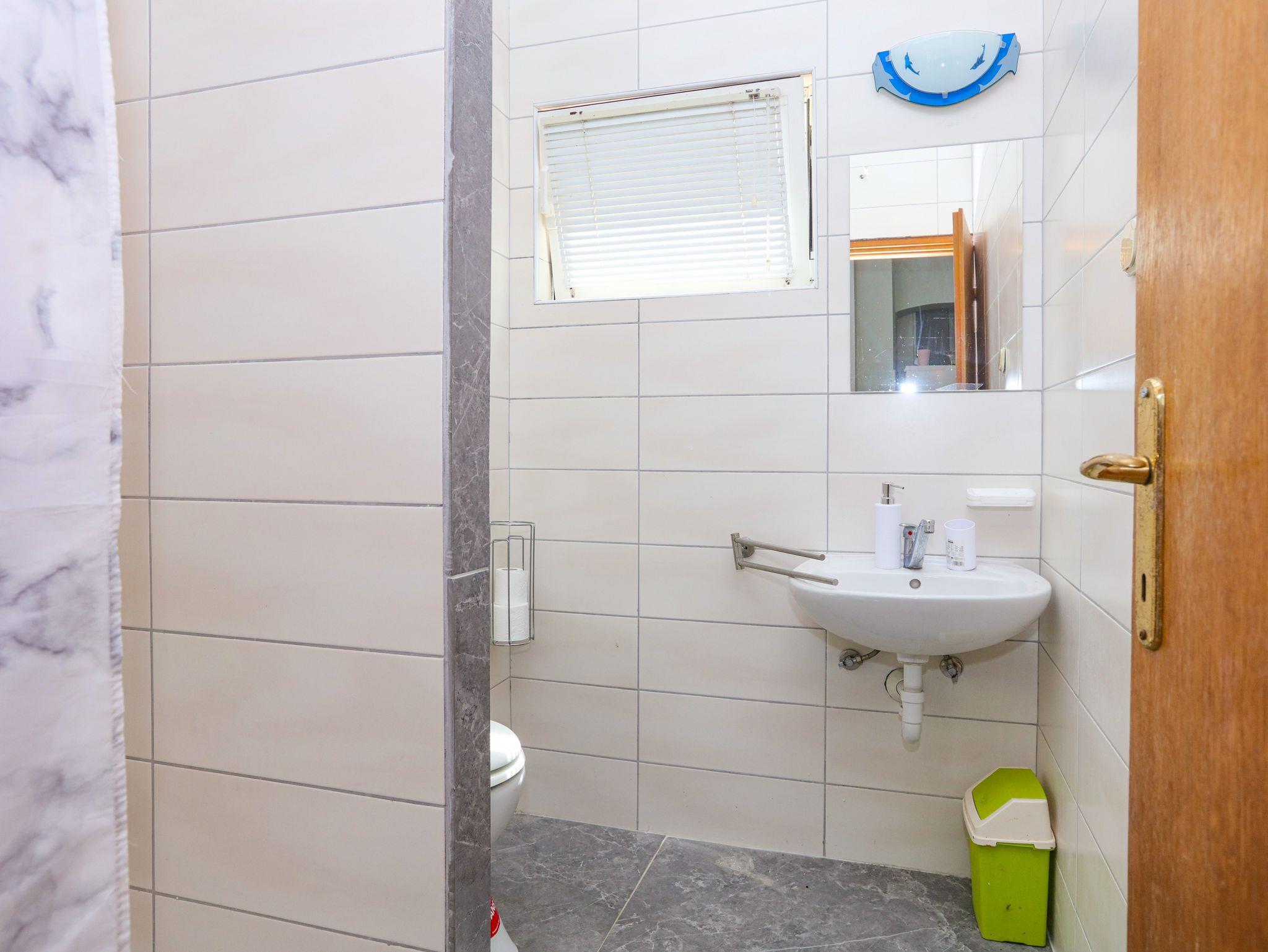 Ferienwohnung bietet Platz für 8 Gäste. Die Betten sind in Schlafzimmern, die es 2 gibt, und in Wohnzimmer, innerhalb einer Gesamtfläche von 63m2, angeordnet. Die Gäste haben eine eigene Terrasse zur Verfügung, auf der sie in warmen Sommernächten genießen können. Das Apartment bietet Meerblick. Es ist erlaubt, Speisen auf dem Gemeinschafts-Grill vorzubereiten. In der Unterkunftseinheit besteht die Möglichkeit des Mitbringens von Haustieren gegen Aufpreis. IM PREIS INBEGRIFFEN: Kurtaxe, Endreinigung, Klimatisierung, Parkplatz, Internet, Wäschewaschen, Zusatzbett, Bügeleisen, Bügelbrett, Föhn. VERBINDLICHE ZUSÄTZLICHE KOSTEN: Aufzahlung für Kurzaufenthalte (prozentualer Zuschlag pro Nächtigungsanzahl: 30% - 1, 20% - 2, 10% - 3). UNVERBINDLICHE ZUSÄTZLICHE KOSTEN: Bootsanlegeplatz (7,00 € pro Nacht), Haustiere (7,00 € pro Nacht). Die Verfügbarkeit zusätzlicher Dienstleistungen in Ihrem reservierten Termin und die Preise derselben (falls nicht aufgeführt) müssen im Voraus überprüft werden. Zusätzliche Dienstleistungen die in der Zahlungsaufforderung nicht aufgeführt sind werden direkt beim Vermieter bezahlt, angenommen der Gast nutzt auch diese. Ermäßigung auf den Grundpreis: Gratistag 14=13 (bei einem Aufenthalt von 14 Tagen oder mehr erhalten Sie einen Gratistag für den Aufenthalt bis 31.12.26).