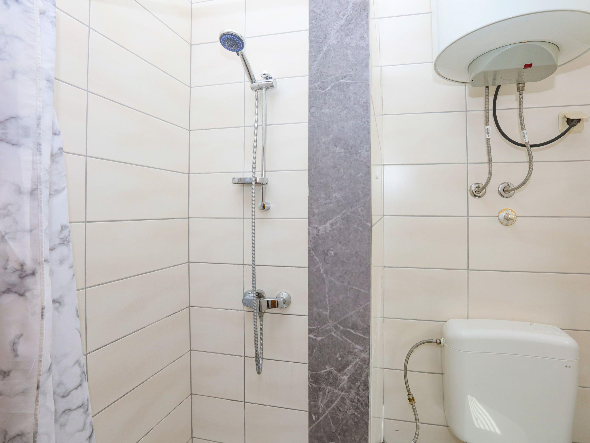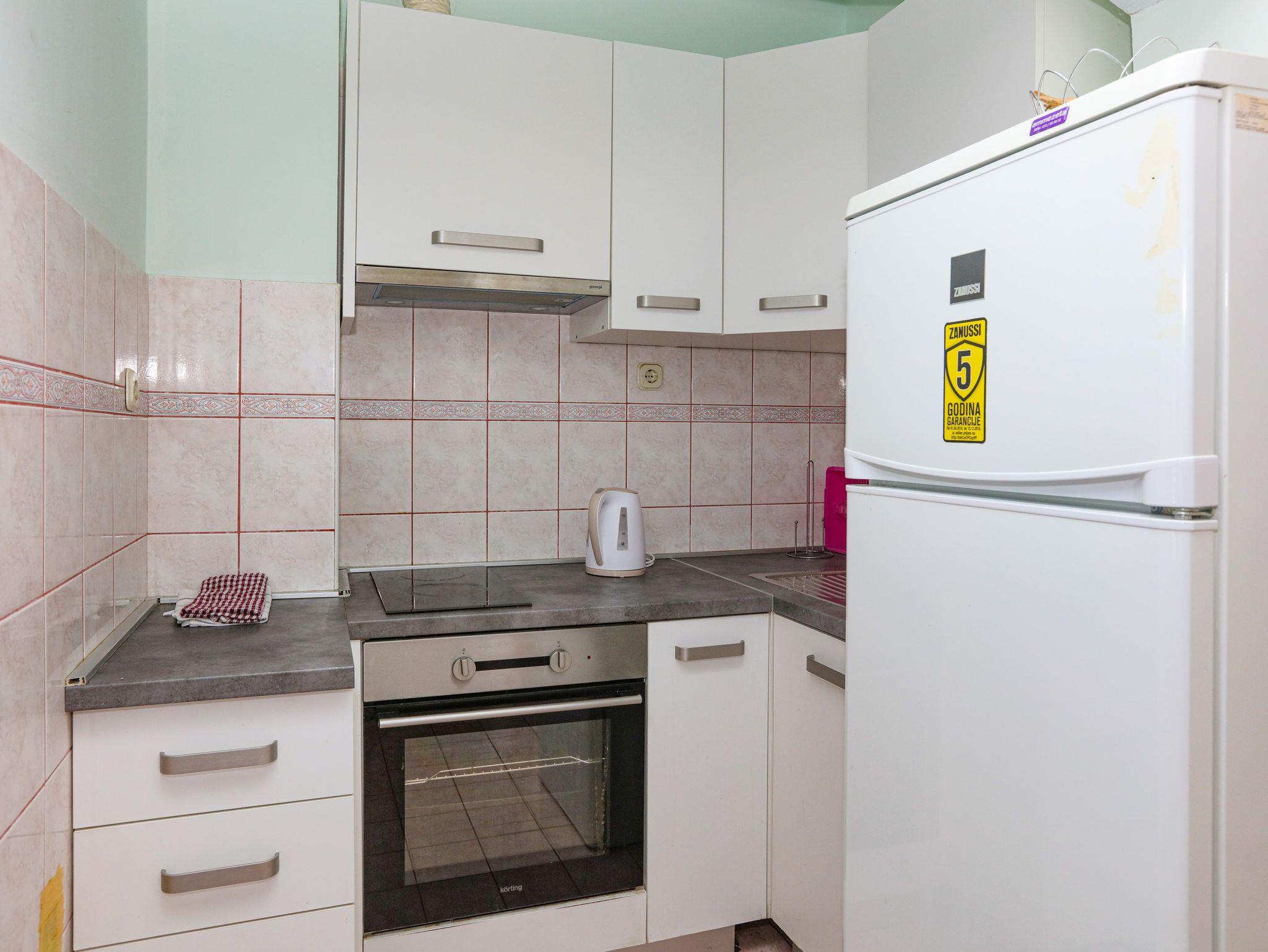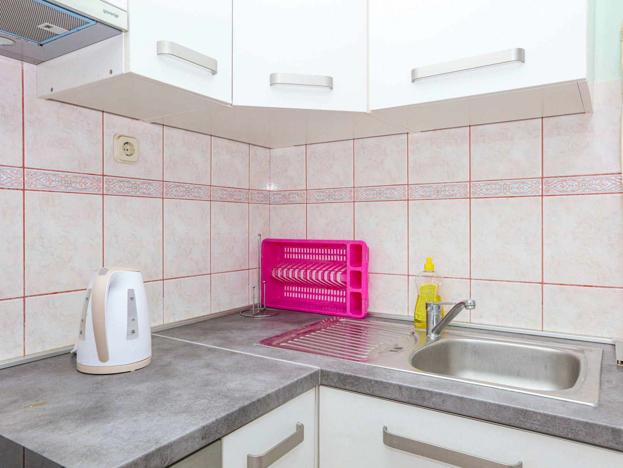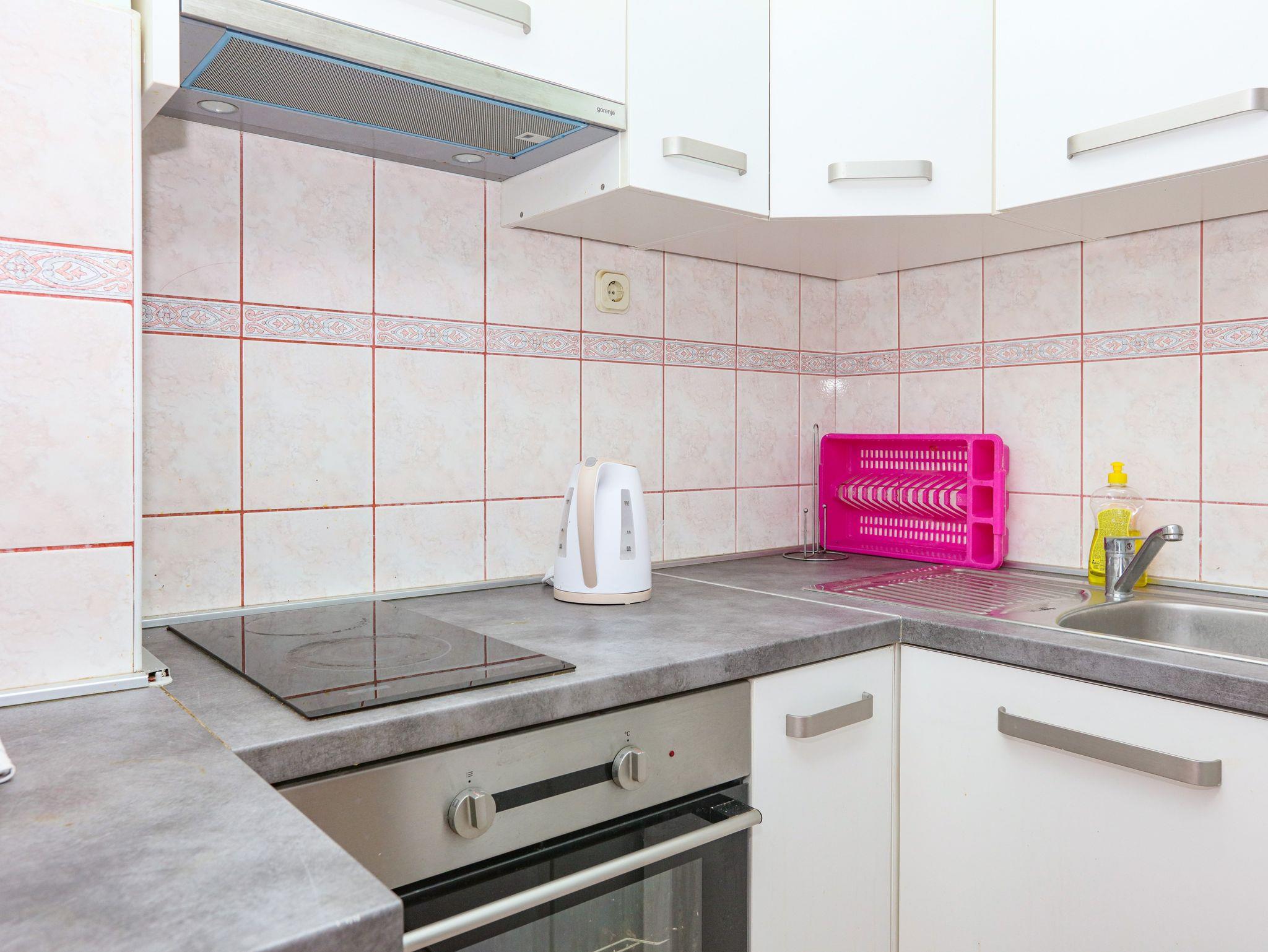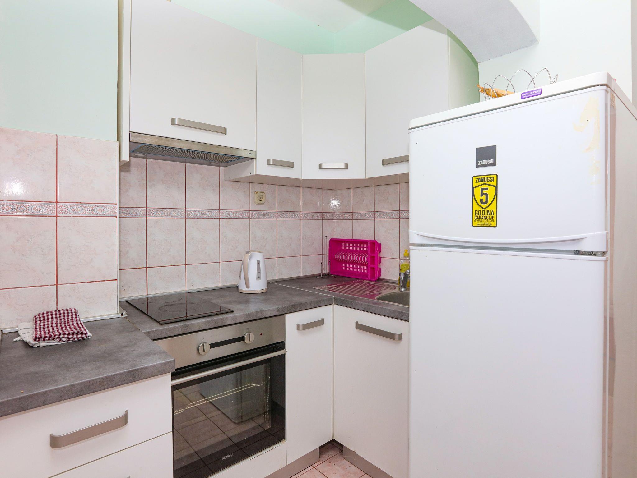 Ferienwohnung bietet Platz für 8 Gäste. Die Betten sind in Schlafzimmern, die es 2 gibt, und in Wohnzimmer, innerhalb einer Gesamtfläche von 63m2, angeordnet. Die Gäste haben eine eigene Terrasse zur Verfügung, auf der sie in warmen Sommernächten genießen können. Das Apartment bietet Meerblick. Es ist erlaubt, Speisen auf dem Gemeinschafts-Grill vorzubereiten. In der Unterkunftseinheit besteht die Möglichkeit des Mitbringens von Haustieren gegen Aufpreis. IM PREIS INBEGRIFFEN: Kurtaxe, Endreinigung, Klimatisierung, Parkplatz, Internet, Wäschewaschen, Zusatzbett, Bügeleisen, Bügelbrett, Föhn. VERBINDLICHE ZUSÄTZLICHE KOSTEN: Aufzahlung für Kurzaufenthalte (prozentualer Zuschlag pro Nächtigungsanzahl: 30% - 1, 20% - 2, 10% - 3). UNVERBINDLICHE ZUSÄTZLICHE KOSTEN: Bootsanlegeplatz (7,00 € pro Nacht), Haustiere (7,00 € pro Nacht). Die Verfügbarkeit zusätzlicher Dienstleistungen in Ihrem reservierten Termin und die Preise derselben (falls nicht aufgeführt) müssen im Voraus überprüft werden. Zusätzliche Dienstleistungen die in der Zahlungsaufforderung nicht aufgeführt sind werden direkt beim Vermieter bezahlt, angenommen der Gast nutzt auch diese. Ermäßigung auf den Grundpreis: Gratistag 14=13 (bei einem Aufenthalt von 14 Tagen oder mehr erhalten Sie einen Gratistag für den Aufenthalt bis 31.12.26).