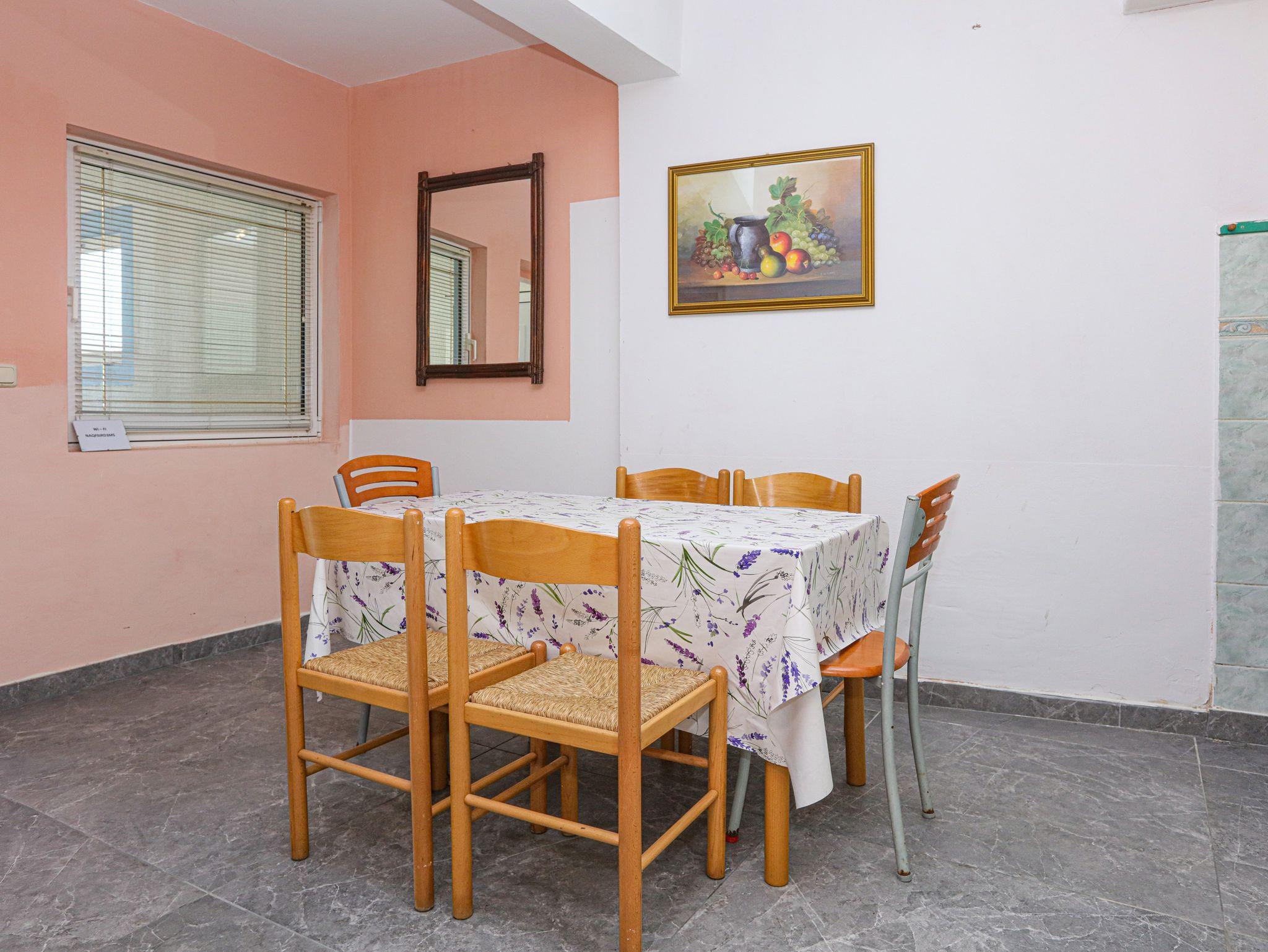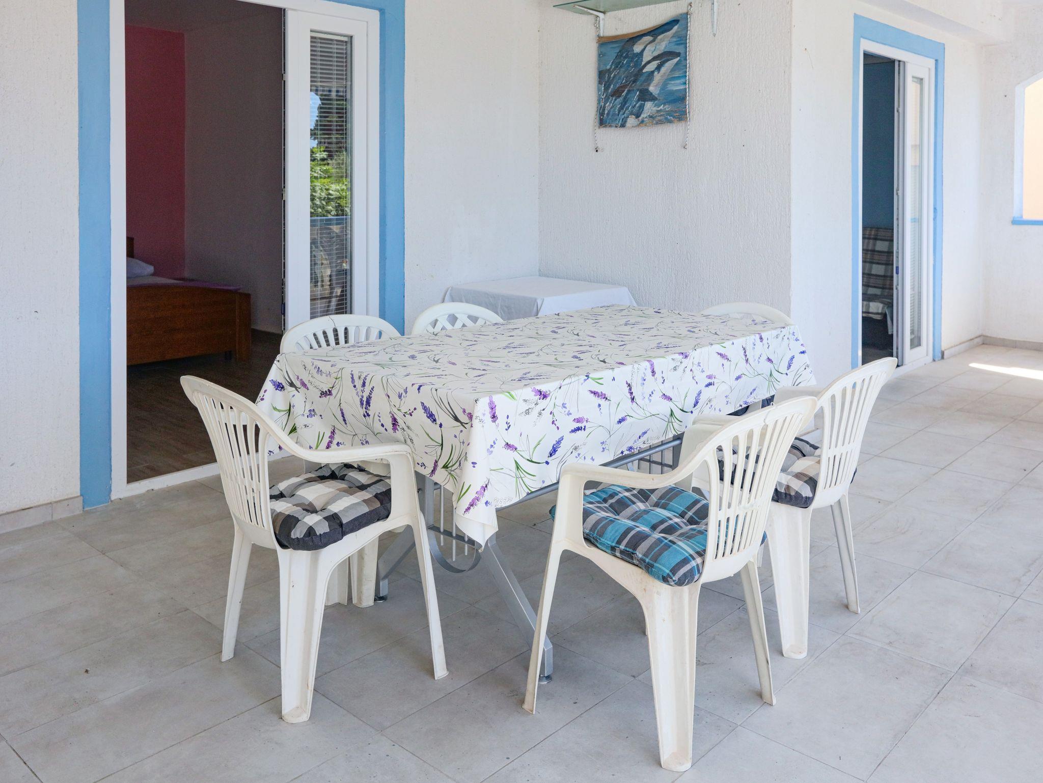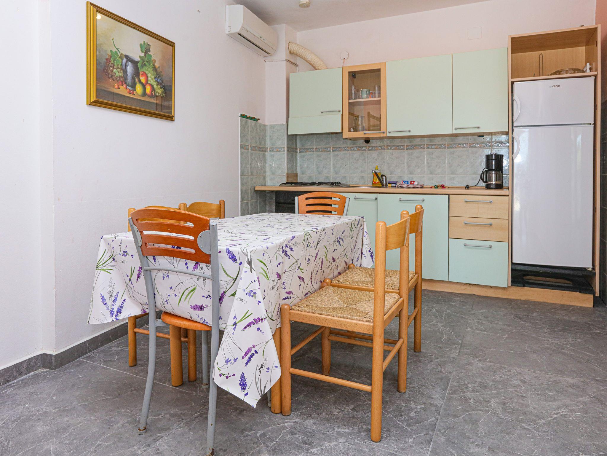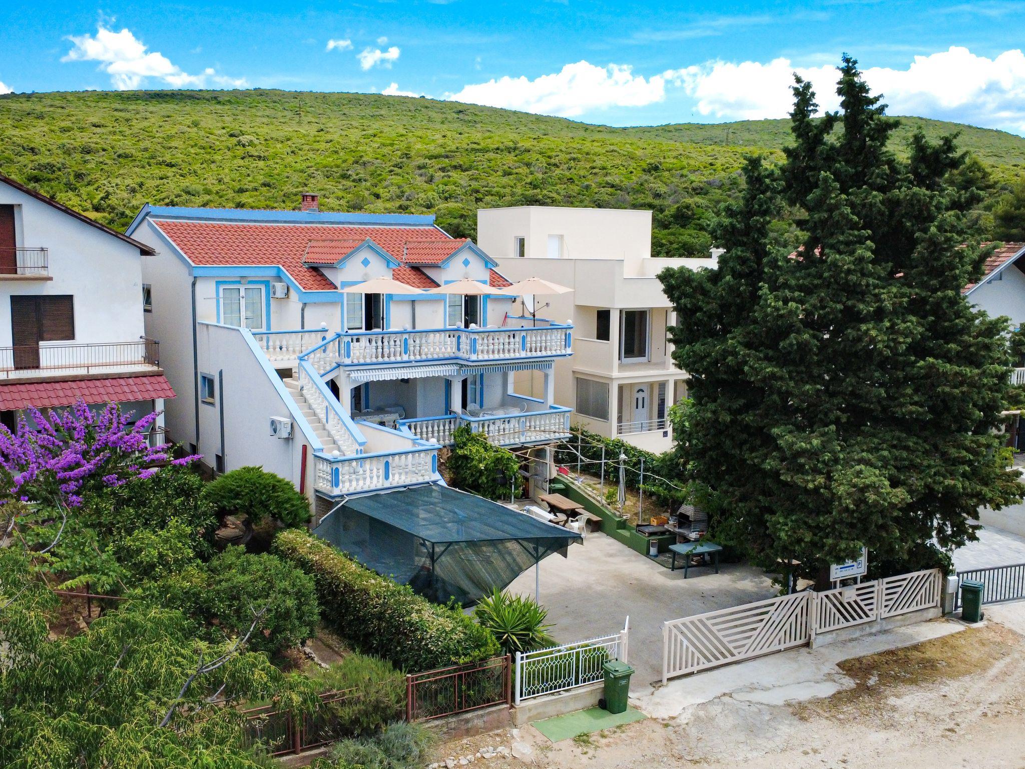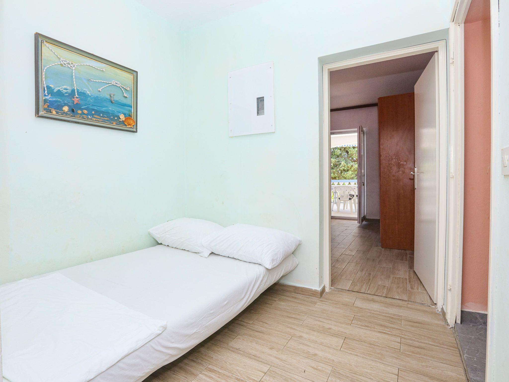 Ferienwohnung bietet Platz für 6 Gäste. Die Betten sind in Schlafzimmern, die es 2 gibt, und in Wohnzimmer, innerhalb einer Gesamtfläche von 60m2, angeordnet. Die Gäste haben eine eigene Terrasse zur Verfügung, auf der sie in warmen Sommernächten genießen können. Das Apartment bietet Meerblick. Es ist erlaubt, Speisen auf dem Gemeinschafts-Grill vorzubereiten. In der Unterkunftseinheit besteht die Möglichkeit des Mitbringens von Haustieren gegen Aufpreis. IM PREIS INBEGRIFFEN: Kurtaxe, Endreinigung, Klimatisierung, Parkplatz, Internet, Wäschewaschen, Zusatzbett, Bügeleisen, Bügelbrett, Föhn. VERBINDLICHE ZUSÄTZLICHE KOSTEN: Aufzahlung für Kurzaufenthalte (prozentualer Zuschlag pro Nächtigungsanzahl: 30% - 1, 20% - 2, 10% - 3). UNVERBINDLICHE ZUSÄTZLICHE KOSTEN: Bootsanlegeplatz (7,00 € pro Nacht), Haustiere (7,00 € pro Nacht). Die Verfügbarkeit zusätzlicher Dienstleistungen in Ihrem reservierten Termin und die Preise derselben (falls nicht aufgeführt) müssen im Voraus überprüft werden. Zusätzliche Dienstleistungen die in der Zahlungsaufforderung nicht aufgeführt sind werden direkt beim Vermieter bezahlt, angenommen der Gast nutzt auch diese. Ermäßigung auf den Grundpreis: Gratistag 14=13 (bei einem Aufenthalt von 14 Tagen oder mehr erhalten Sie einen Gratistag für den Aufenthalt bis 31.12.26).