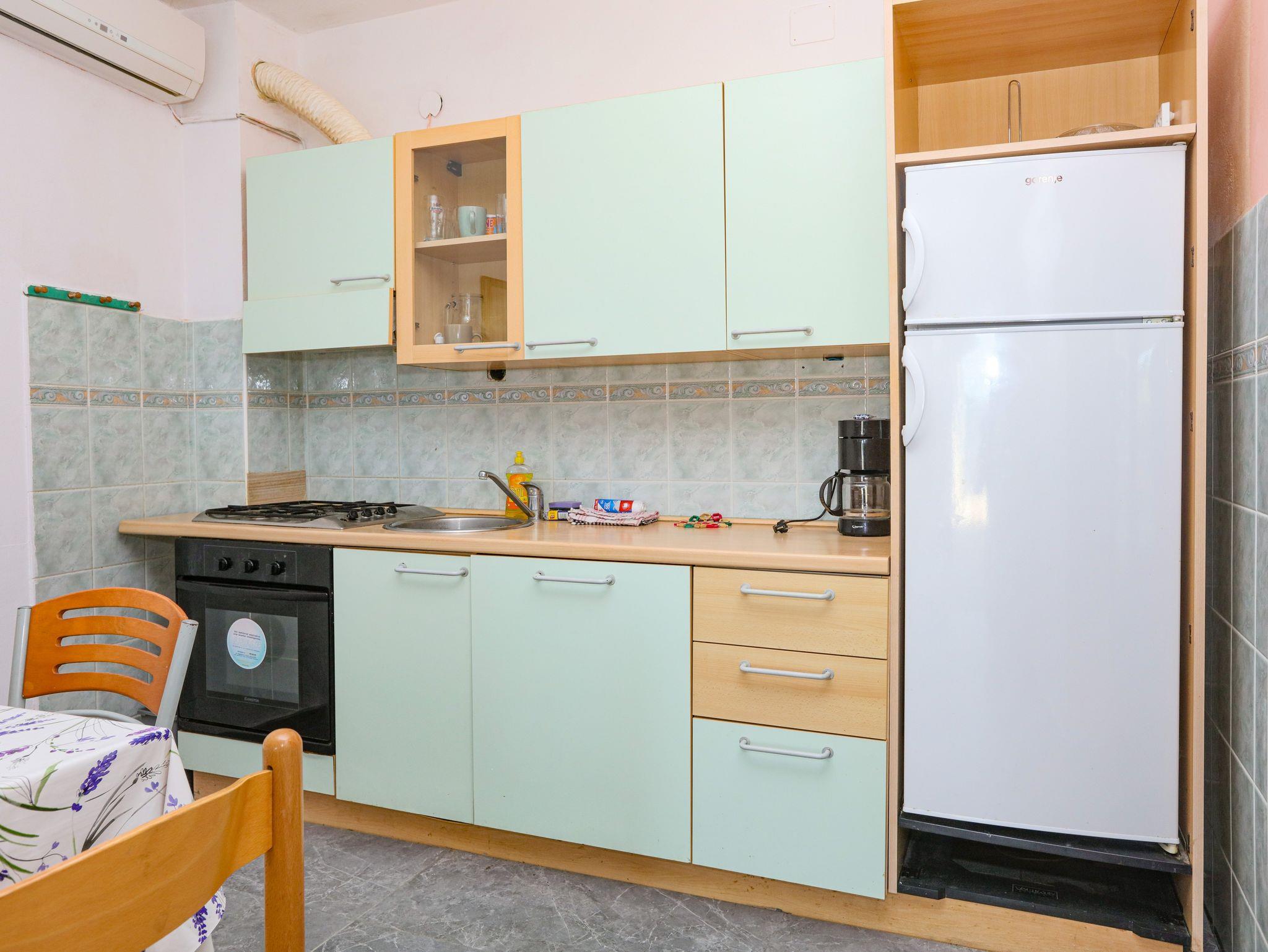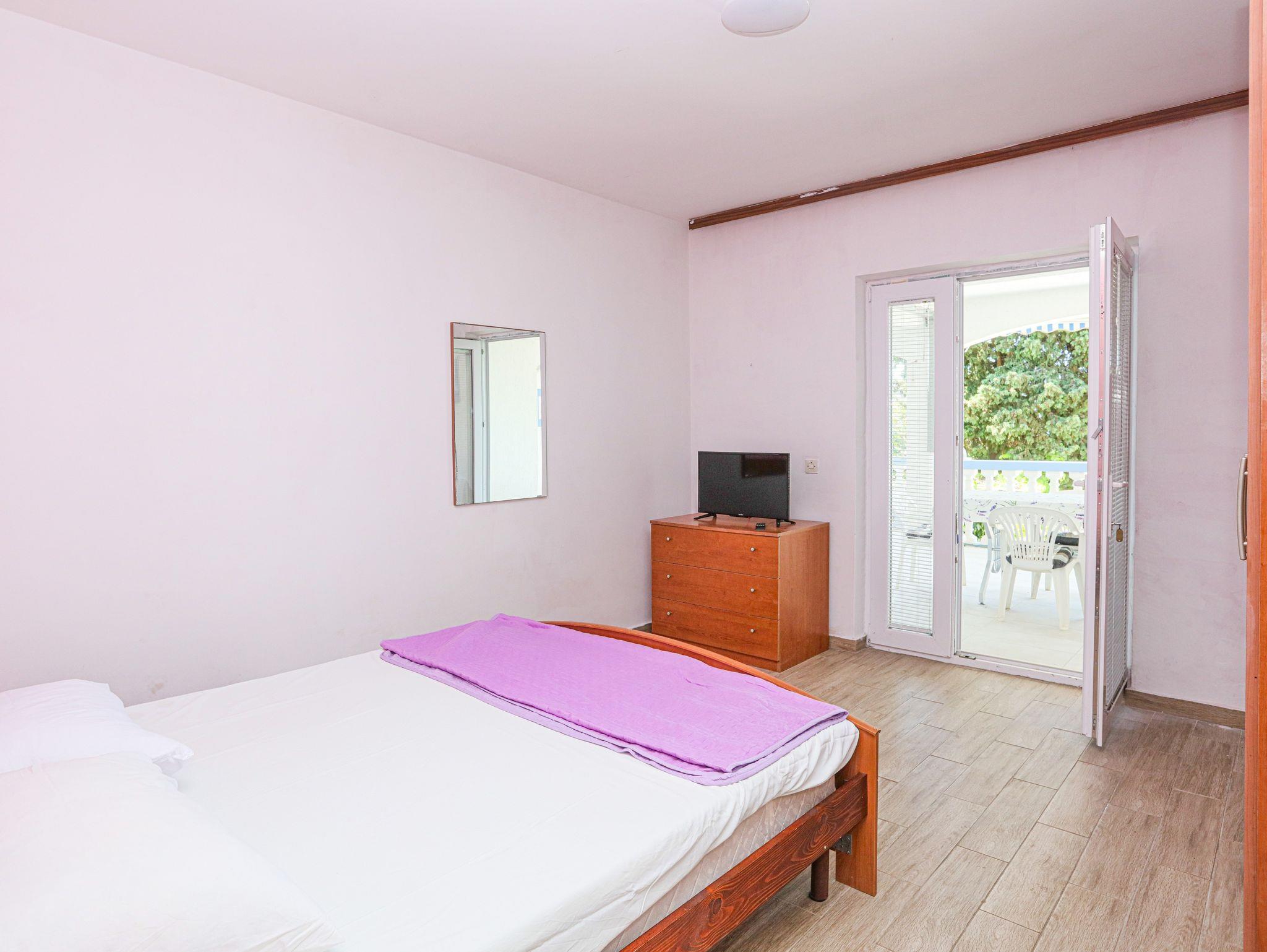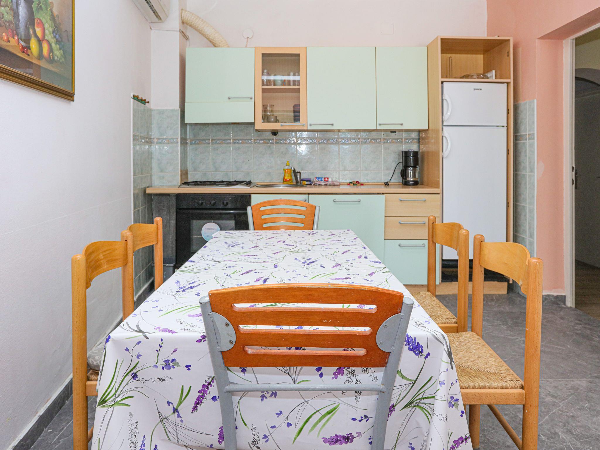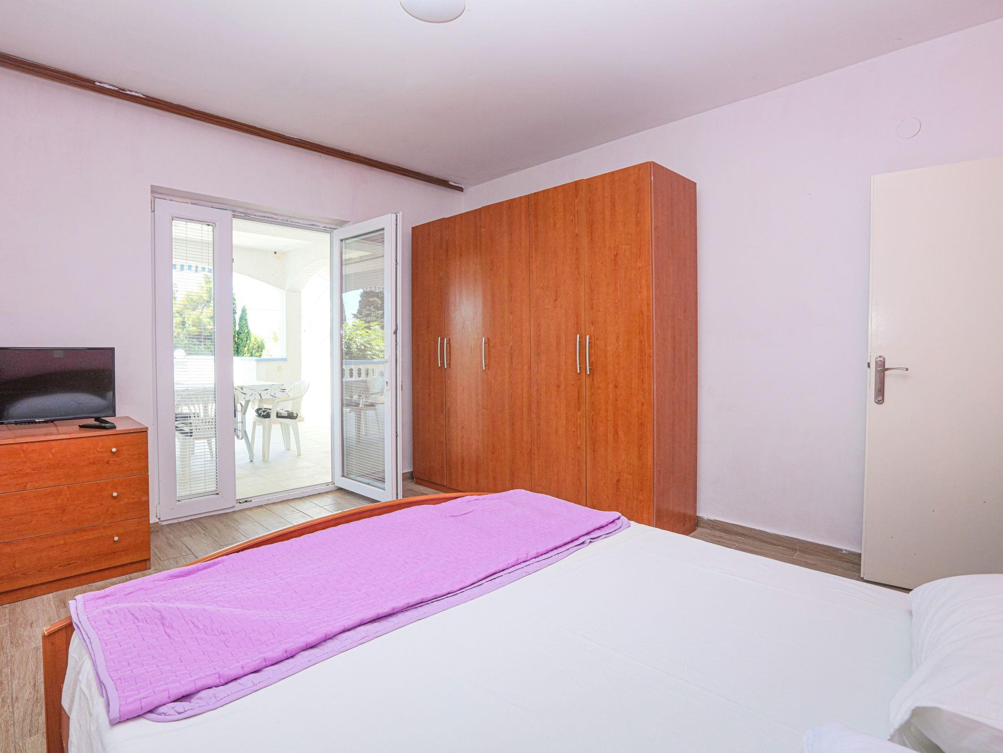 Ferienwohnung bietet Platz für 6 Gäste. Die Betten sind in Schlafzimmern, die es 2 gibt, und in Wohnzimmer, innerhalb einer Gesamtfläche von 60m2, angeordnet. Die Gäste haben eine eigene Terrasse zur Verfügung, auf der sie in warmen Sommernächten genießen können. Das Apartment bietet Meerblick. Es ist erlaubt, Speisen auf dem Gemeinschafts-Grill vorzubereiten. In der Unterkunftseinheit besteht die Möglichkeit des Mitbringens von Haustieren gegen Aufpreis. IM PREIS INBEGRIFFEN: Kurtaxe, Endreinigung, Klimatisierung, Parkplatz, Internet, Wäschewaschen, Zusatzbett, Bügeleisen, Bügelbrett, Föhn. VERBINDLICHE ZUSÄTZLICHE KOSTEN: Aufzahlung für Kurzaufenthalte (prozentualer Zuschlag pro Nächtigungsanzahl: 30% - 1, 20% - 2, 10% - 3). UNVERBINDLICHE ZUSÄTZLICHE KOSTEN: Bootsanlegeplatz (7,00 € pro Nacht), Haustiere (7,00 € pro Nacht). Die Verfügbarkeit zusätzlicher Dienstleistungen in Ihrem reservierten Termin und die Preise derselben (falls nicht aufgeführt) müssen im Voraus überprüft werden. Zusätzliche Dienstleistungen die in der Zahlungsaufforderung nicht aufgeführt sind werden direkt beim Vermieter bezahlt, angenommen der Gast nutzt auch diese. Ermäßigung auf den Grundpreis: Gratistag 14=13 (bei einem Aufenthalt von 14 Tagen oder mehr erhalten Sie einen Gratistag für den Aufenthalt bis 31.12.26).