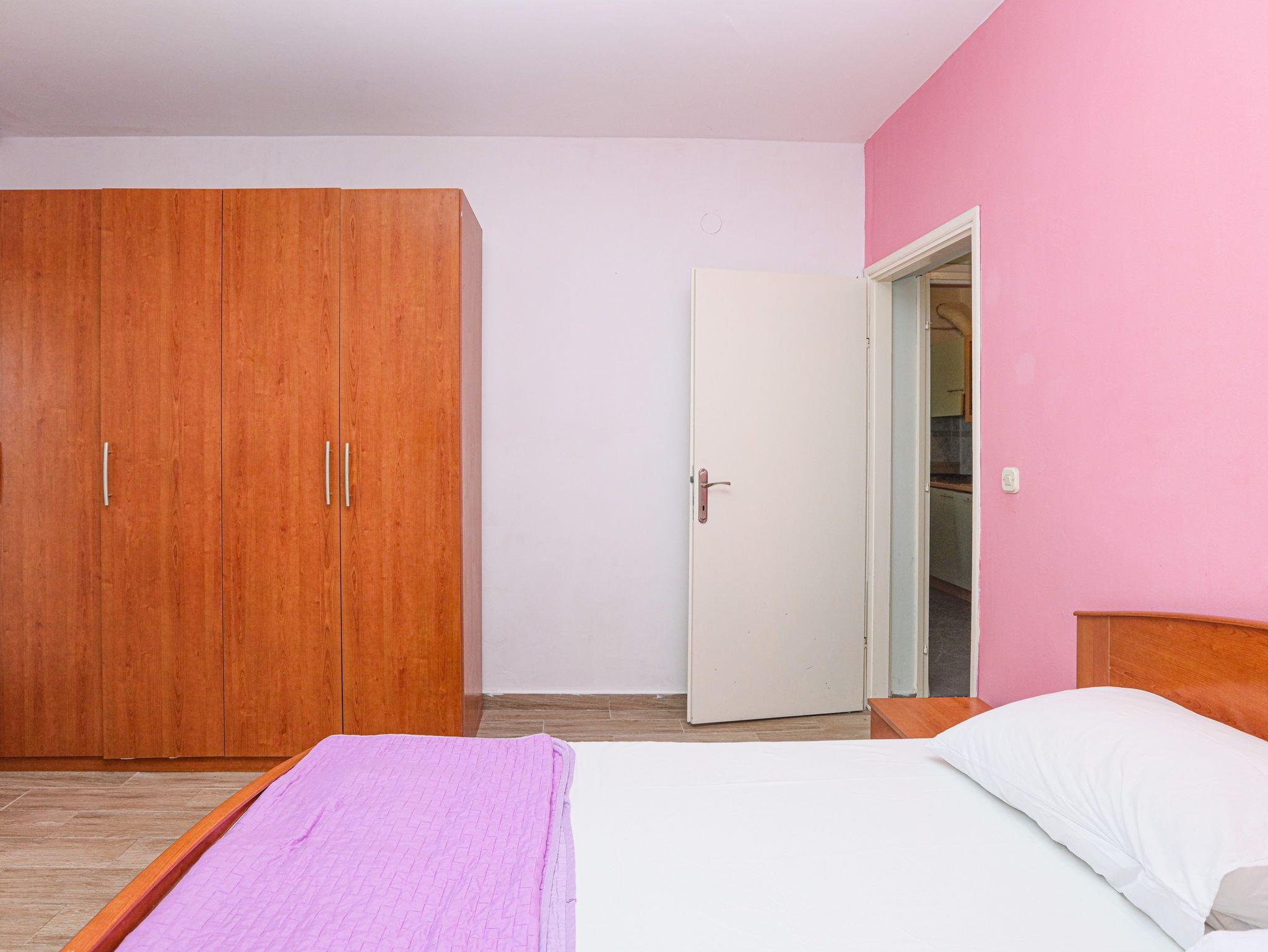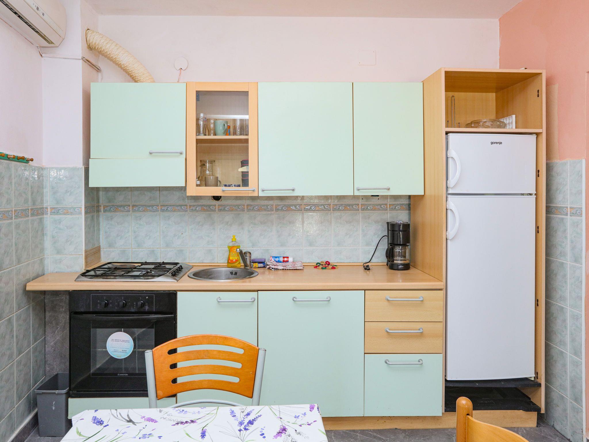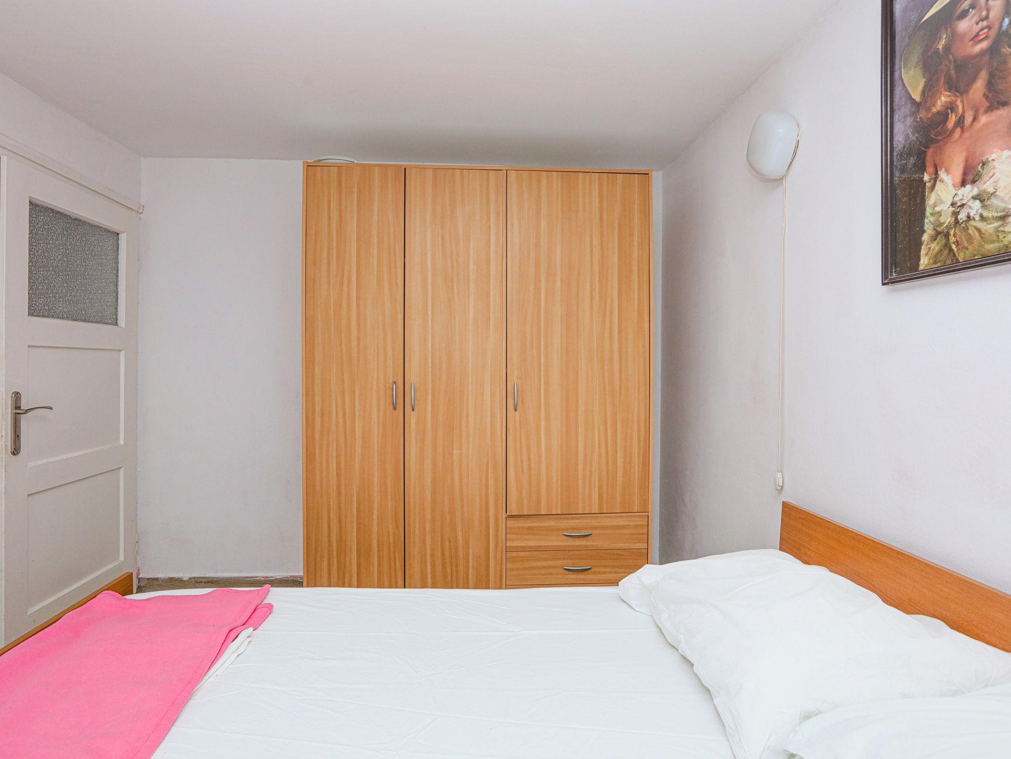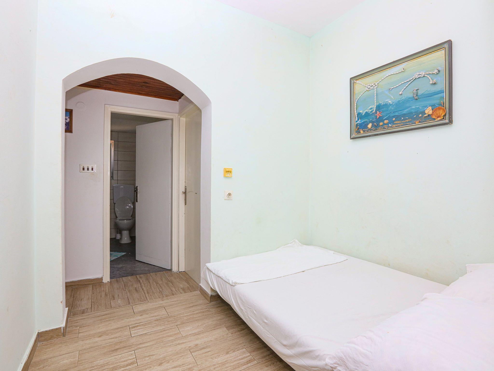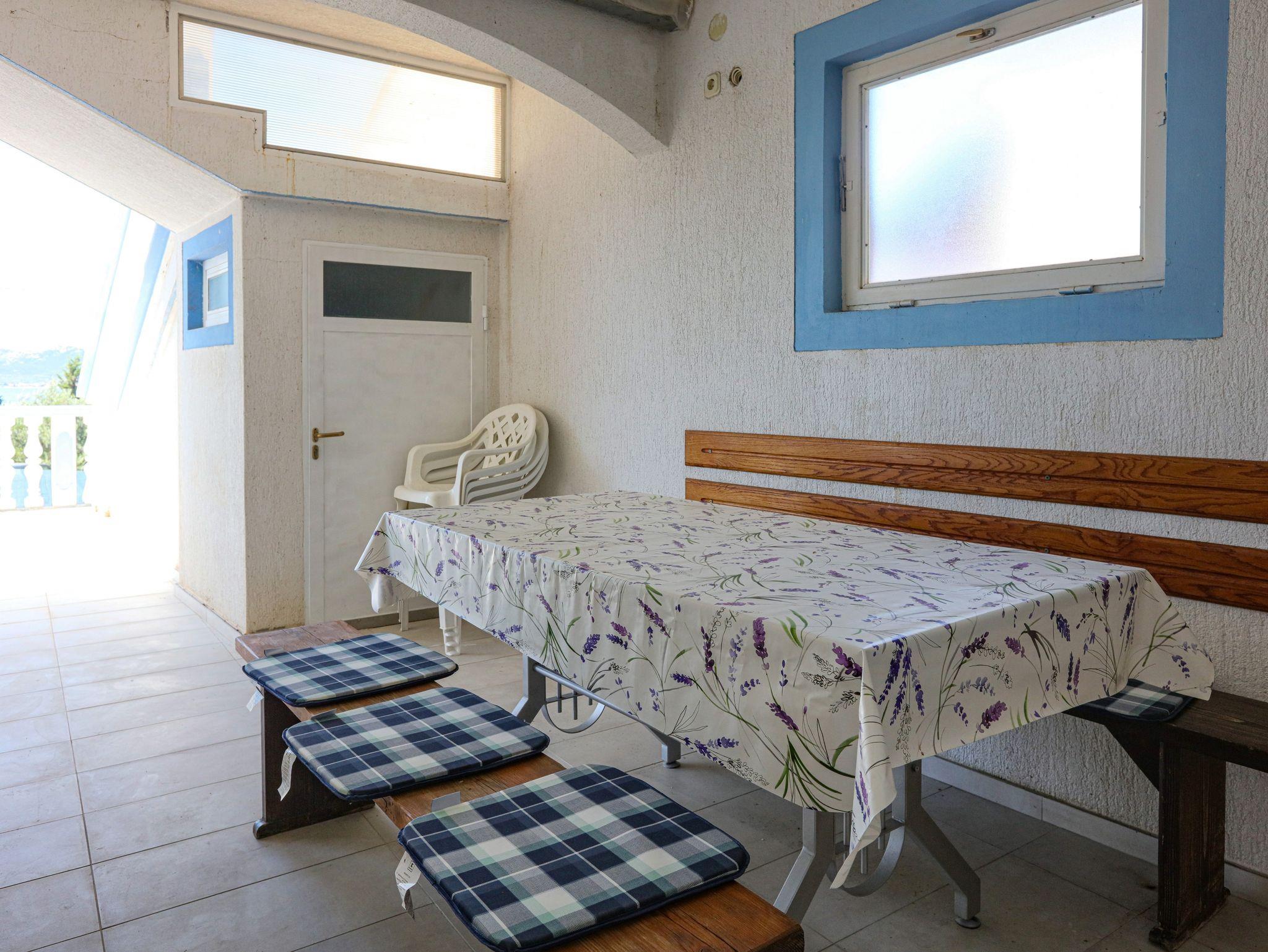 Ferienwohnung bietet Platz für 6 Gäste. Die Betten sind in Schlafzimmern, die es 2 gibt, und in Wohnzimmer, innerhalb einer Gesamtfläche von 60m2, angeordnet. Die Gäste haben eine eigene Terrasse zur Verfügung, auf der sie in warmen Sommernächten genießen können. Das Apartment bietet Meerblick. Es ist erlaubt, Speisen auf dem Gemeinschafts-Grill vorzubereiten. In der Unterkunftseinheit besteht die Möglichkeit des Mitbringens von Haustieren gegen Aufpreis. IM PREIS INBEGRIFFEN: Kurtaxe, Endreinigung, Klimatisierung, Parkplatz, Internet, Wäschewaschen, Zusatzbett, Bügeleisen, Bügelbrett, Föhn. VERBINDLICHE ZUSÄTZLICHE KOSTEN: Aufzahlung für Kurzaufenthalte (prozentualer Zuschlag pro Nächtigungsanzahl: 30% - 1, 20% - 2, 10% - 3). UNVERBINDLICHE ZUSÄTZLICHE KOSTEN: Bootsanlegeplatz (7,00 € pro Nacht), Haustiere (7,00 € pro Nacht). Die Verfügbarkeit zusätzlicher Dienstleistungen in Ihrem reservierten Termin und die Preise derselben (falls nicht aufgeführt) müssen im Voraus überprüft werden. Zusätzliche Dienstleistungen die in der Zahlungsaufforderung nicht aufgeführt sind werden direkt beim Vermieter bezahlt, angenommen der Gast nutzt auch diese. Ermäßigung auf den Grundpreis: Gratistag 14=13 (bei einem Aufenthalt von 14 Tagen oder mehr erhalten Sie einen Gratistag für den Aufenthalt bis 31.12.26).