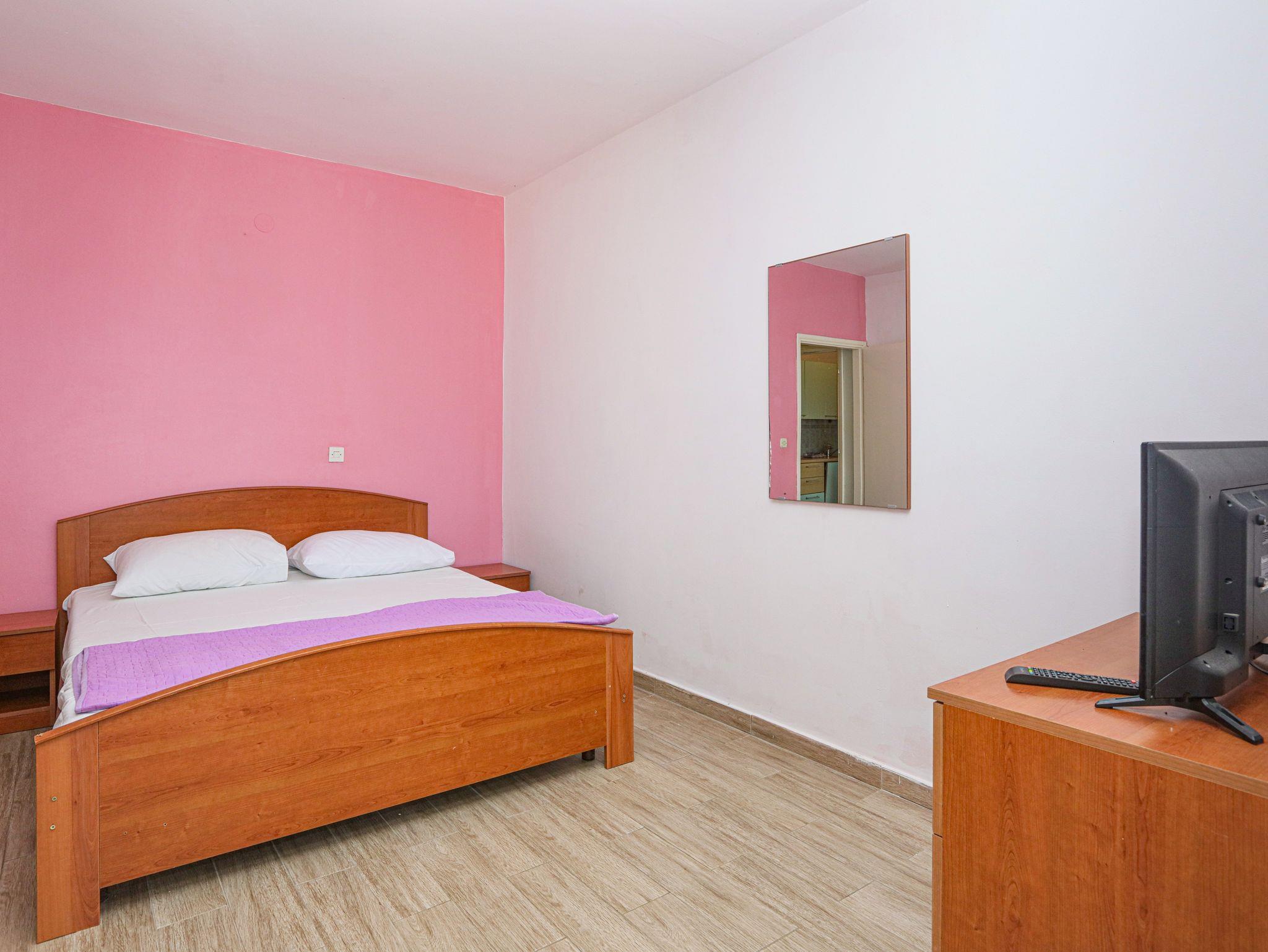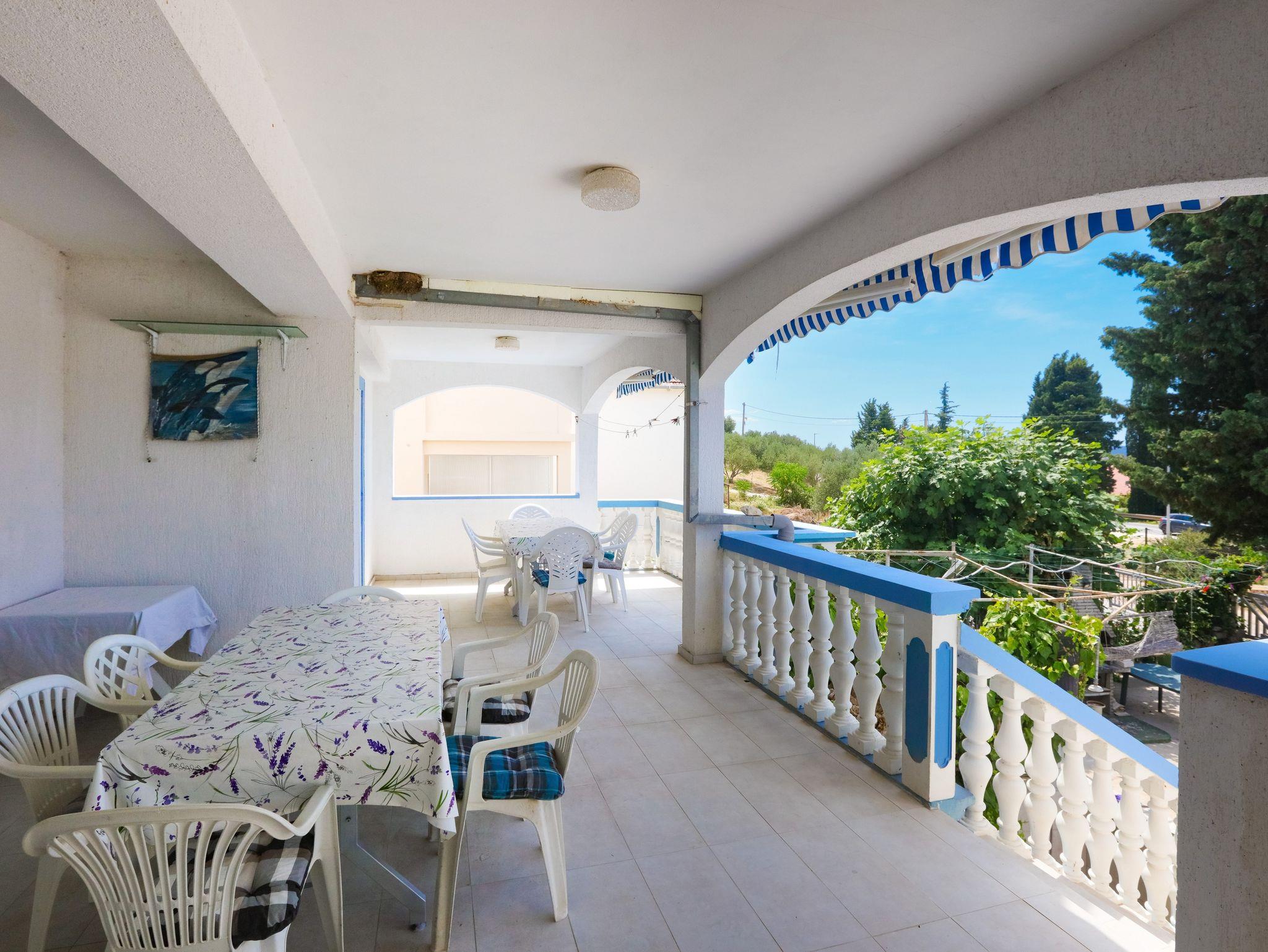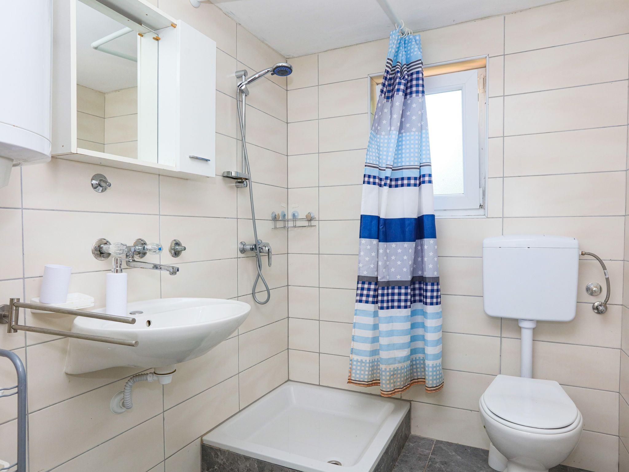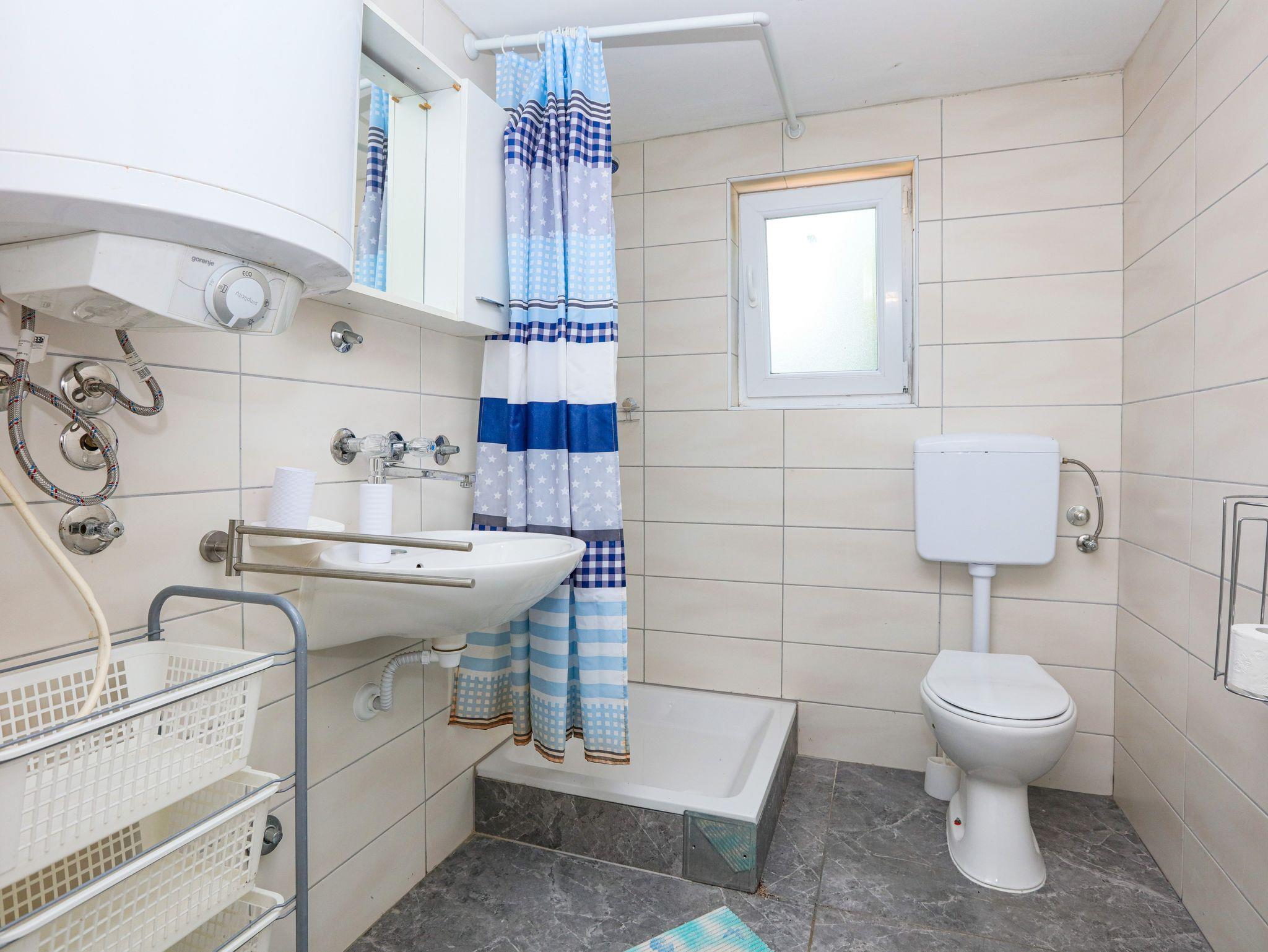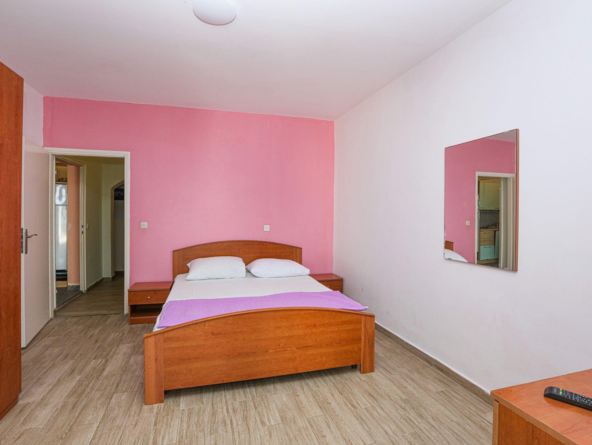 Ferienwohnung bietet Platz für 6 Gäste. Die Betten sind in Schlafzimmern, die es 2 gibt, und in Wohnzimmer, innerhalb einer Gesamtfläche von 60m2, angeordnet. Die Gäste haben eine eigene Terrasse zur Verfügung, auf der sie in warmen Sommernächten genießen können. Das Apartment bietet Meerblick. Es ist erlaubt, Speisen auf dem Gemeinschafts-Grill vorzubereiten. In der Unterkunftseinheit besteht die Möglichkeit des Mitbringens von Haustieren gegen Aufpreis. IM PREIS INBEGRIFFEN: Kurtaxe, Endreinigung, Klimatisierung, Parkplatz, Internet, Wäschewaschen, Zusatzbett, Bügeleisen, Bügelbrett, Föhn. VERBINDLICHE ZUSÄTZLICHE KOSTEN: Aufzahlung für Kurzaufenthalte (prozentualer Zuschlag pro Nächtigungsanzahl: 30% - 1, 20% - 2, 10% - 3). UNVERBINDLICHE ZUSÄTZLICHE KOSTEN: Bootsanlegeplatz (7,00 € pro Nacht), Haustiere (7,00 € pro Nacht). Die Verfügbarkeit zusätzlicher Dienstleistungen in Ihrem reservierten Termin und die Preise derselben (falls nicht aufgeführt) müssen im Voraus überprüft werden. Zusätzliche Dienstleistungen die in der Zahlungsaufforderung nicht aufgeführt sind werden direkt beim Vermieter bezahlt, angenommen der Gast nutzt auch diese. Ermäßigung auf den Grundpreis: Gratistag 14=13 (bei einem Aufenthalt von 14 Tagen oder mehr erhalten Sie einen Gratistag für den Aufenthalt bis 31.12.26).