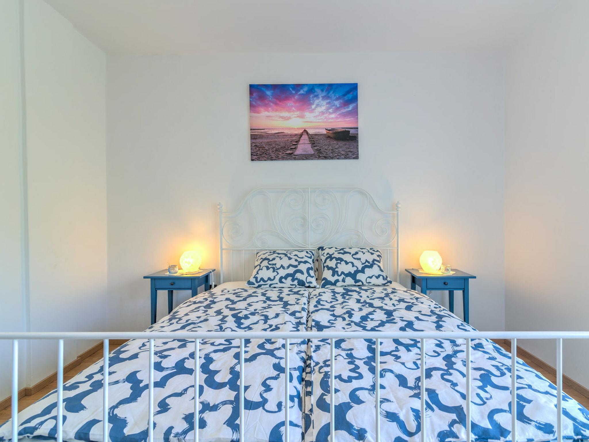 2-room apartment 40 m2 on 1st floor. Living/dining room with TV and air conditioning. 1 room with 1 french bed (160 cm, length 200 cm). Exit to the balcony. Open kitchen (oven, dishwasher, 4 induction hot plates, toaster, kettle, freezer). Shower/WC. Forced-air heating. Balcony 50 m2. Balcony furniture. View of the sea. Facilities: washing machine. Internet (WiFi, free). Please note: non-smoking house.