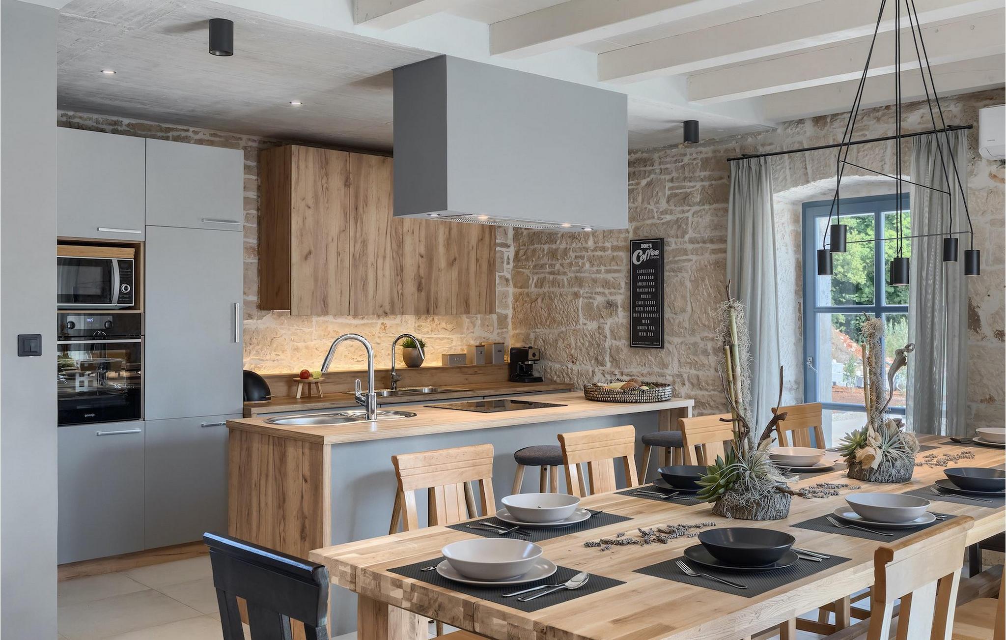 Villa Pi er en charmerende stenvilla beliggende lige uden for den maleriske landsby Tinjan i det centrale Istrien. Dette er et gammelt stenhus, der går 70 år tilbage, som blev totalrenoveret i 2019. Villaen har i alt 4 soveværelser og kan rumme op til 10 gæster, hvilket gør den perfekt til en familieferie. Interiøret er moderne, udstyret med hvidevarer af høj kvalitet, dog har villaen stadig sin oprindelige charme, karakteristisk for gamle istriske huse - farverige trævinduer og stenvægge er blot et eksempel.