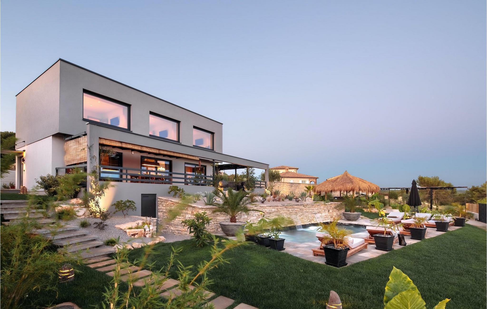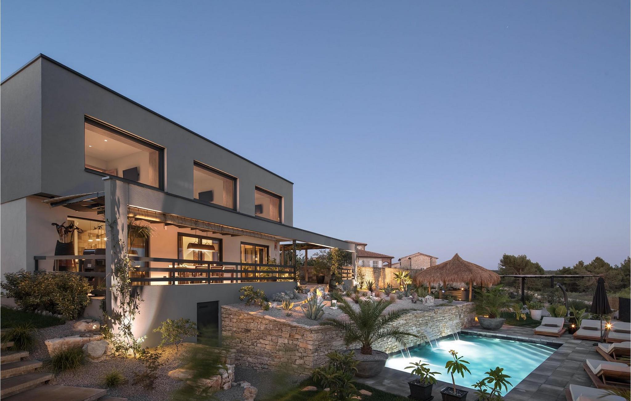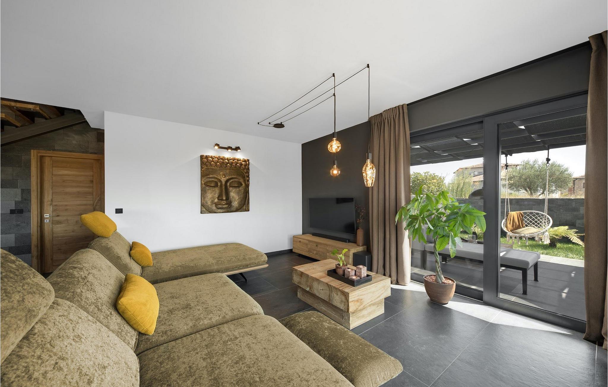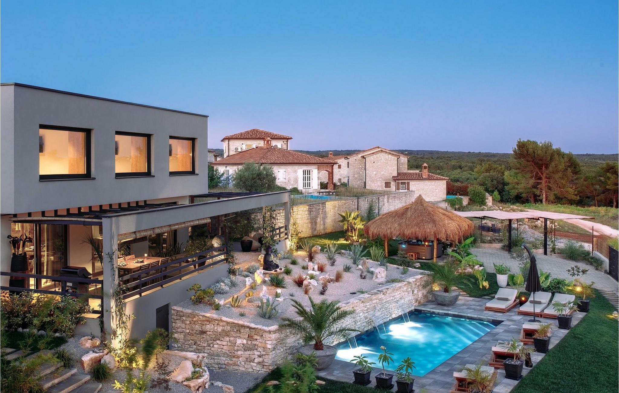 Villa Merapi er en blanding af moderne design, natur og spiritualitet. Den sorte vulkanske sten kendt for sine helbredende og afslappende egenskaber er blevet brugt i det moderne design af denne villa såvel som i pooldesignet. Håndlavede træmøbler pryder denne villa med naturlige elementer. Forskellige plantearter omgiver villaen og skaber en smuk oase til en afslappende ferie. Villaen er opdelt i stueetagen og første sal. I stueetagen er der et åbent rum med stue, køkken og spisestue, og på første sal er der tre soveværelser og to badeværelser, hvoraf det ene er eget badeværelse. Interiøret i denne smukke villa er dekoreret med en masse naturlige detaljer. Kombinationen af træ og sten giver denne villa et naturligt, men også moderne udtryk, der vil give dig en følelse af fred. Hvis du er en af dem, der ønsker at vågne op hver morgen med en smuk udsigt over naturen fra sengen, så er Villa Merapi det ideelle sted for dig. De store glasflader i soveværelserne giver et sted at sidde og ligge med en bog og nyde den smukke udsigt. Villaens smukt indrettede gårdhave med forskellige planter pryder villaen og skaber en lille oase. Forfrisk dig selv i den private pool med massagevandfald, og hvis du er en jacuzzi elsker, tilbyder villaen en udendørs jacuzzi under et bambuspavillon. For ekstra stemning er der en stor gynge til to personer, hvor man kan nyde en forfriskende drink og se stjernerne på himlen. Dyk ned i et eksotisk sted midt i Istrien med idylliske omgivelser, slap af og slap af fra hverdagens stress i Villa Merapi. Udover en smuk stemning med et moderne interiør ligger Villa Merapi i idylliske omgivelser med en smuk landskabshave. Beliggende i landsbyen Sv. Lovrec, villa Merapi ligger 15 km fra havet, hvor der er fine stenstrande nær byen Porec. Besøg den berømte Limfjord kun 30 minutters kørsel væk og udforsk dette vidunderlige naturområde. Restauranter og caféer ligger i Sveti Lovrec, 200 m fra villaen. Skal du købe dagligvarer, ligger lokale butikker kun 500 m fra villaen, så de er let tilgængelige til fods. Den idylliske beliggenhed af Villa Merapi vil glæde enhver besøgende. Book denne fantastiske villa og nyd de betagende omgivelser i Istrien.