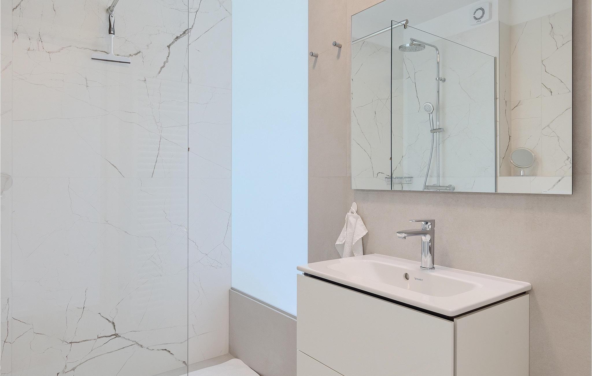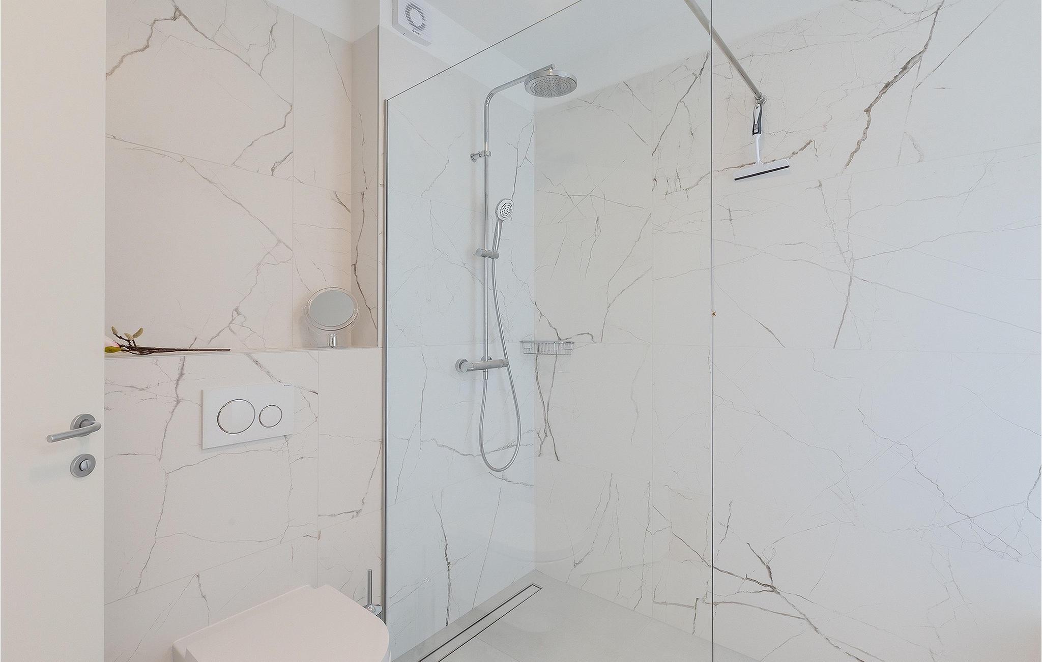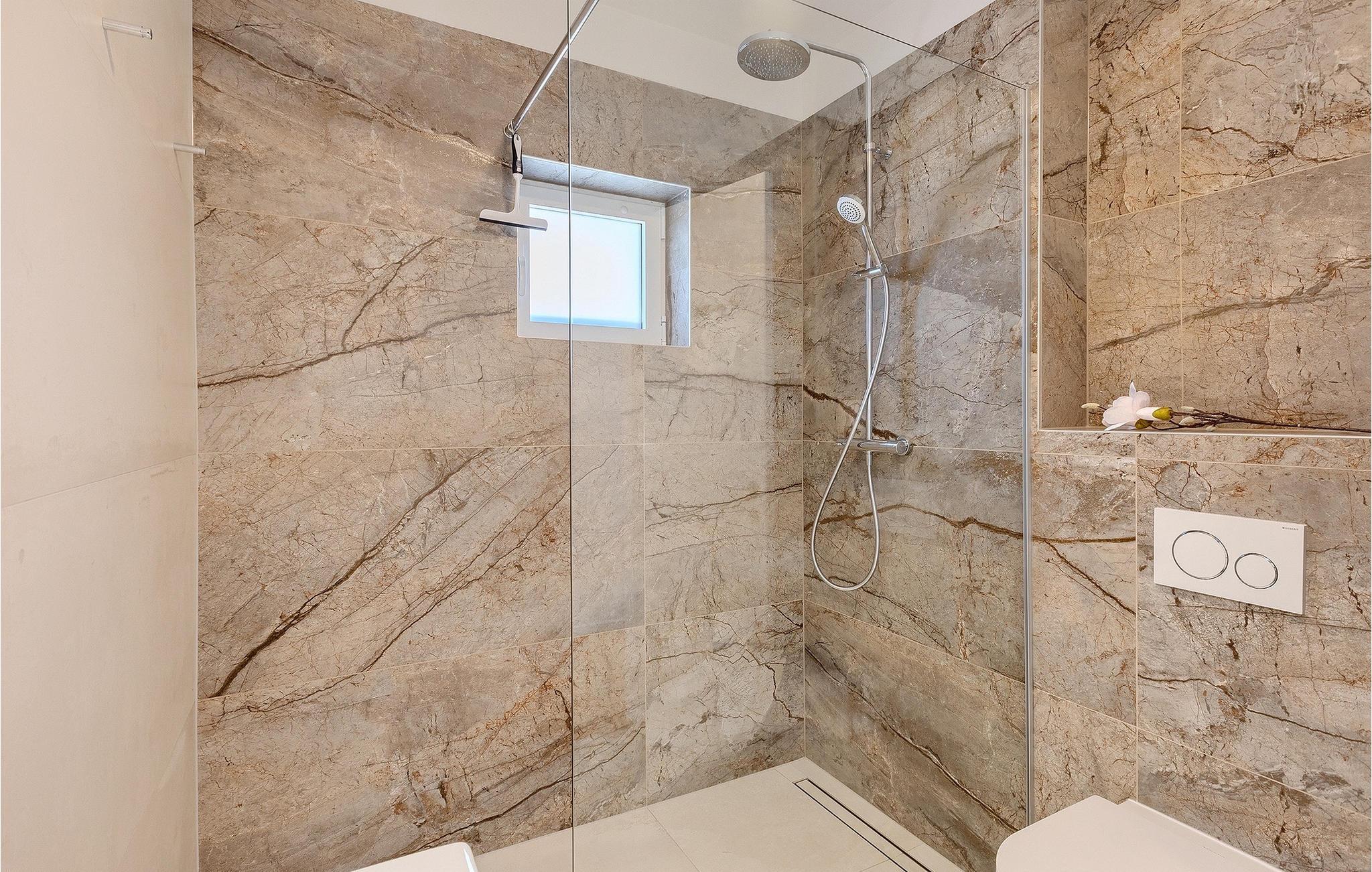 De øvrige tre soveværelser, hver med eget badeværelse med bruser, er på første sal. Et af dobbeltværelserne har udgang til den øverste terrasse, det andet dobbeltværelse har udgang til altanen og det tredje soveværelse har fransk dør. Alle tre værelser har en smuk panoramaudsigt over den charmerende by Sveti Lovrec og dens storslåede omgivelser. Et veludstyret vaskerum er ligeledes placeret på denne etage.