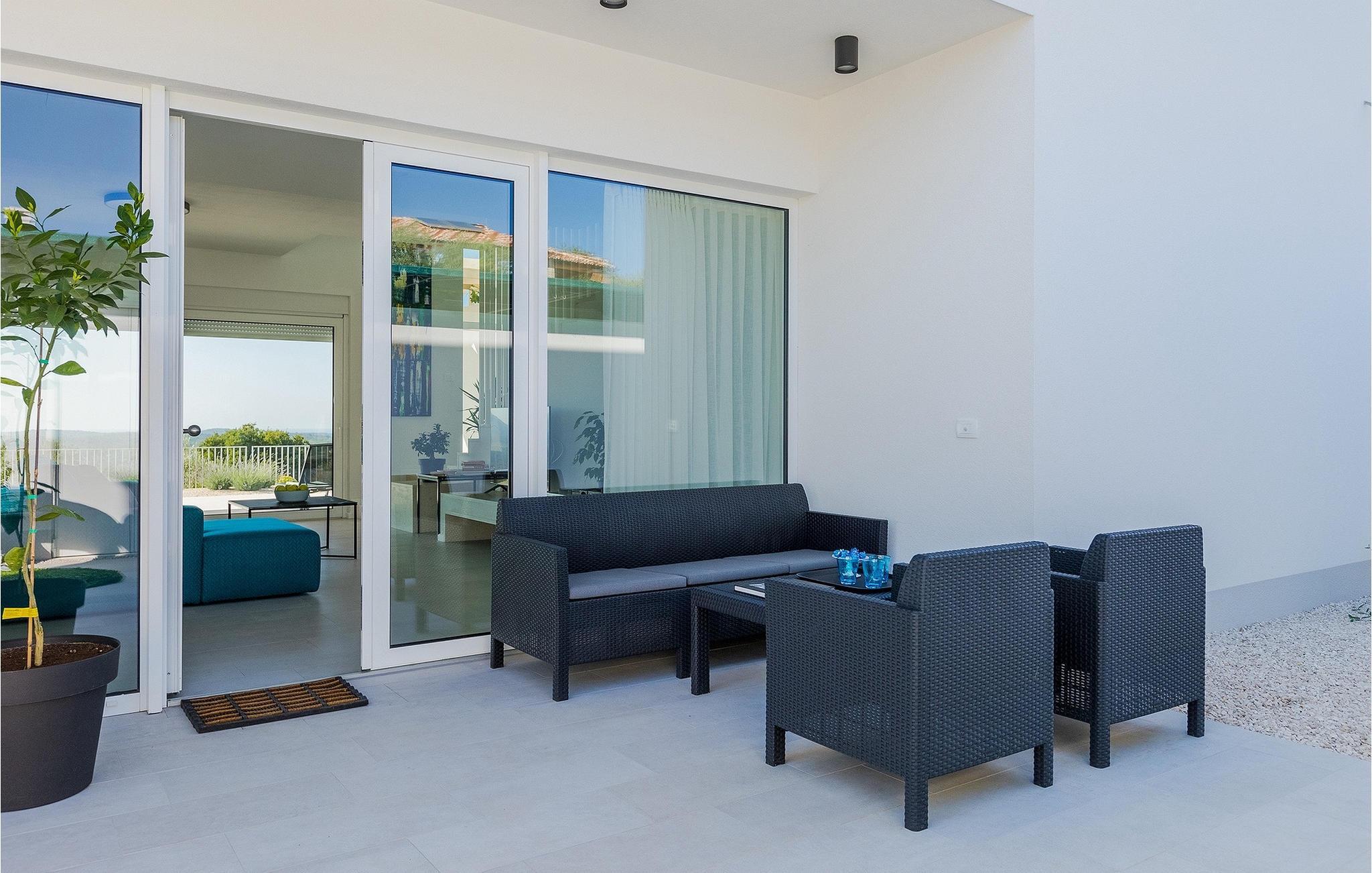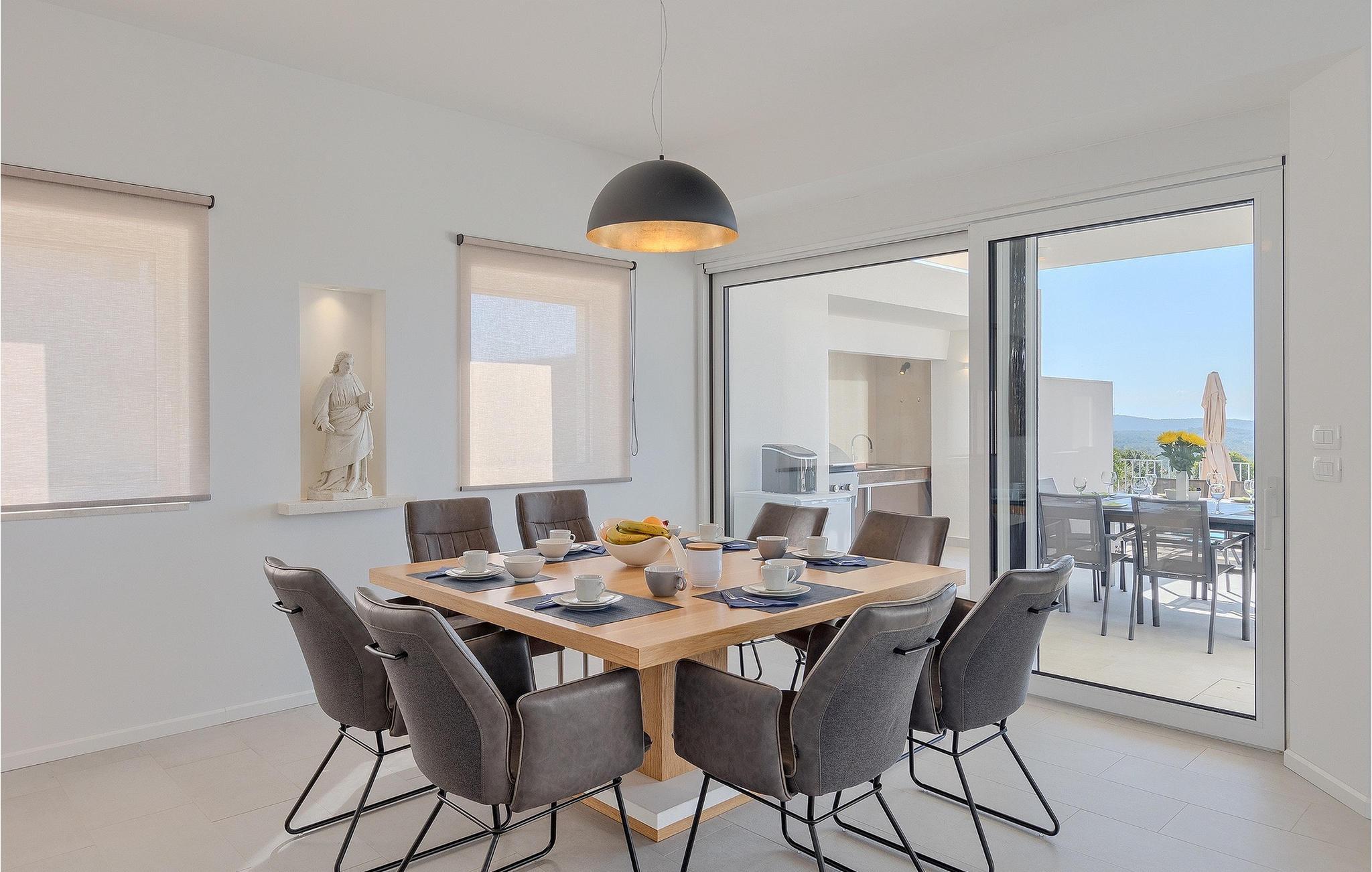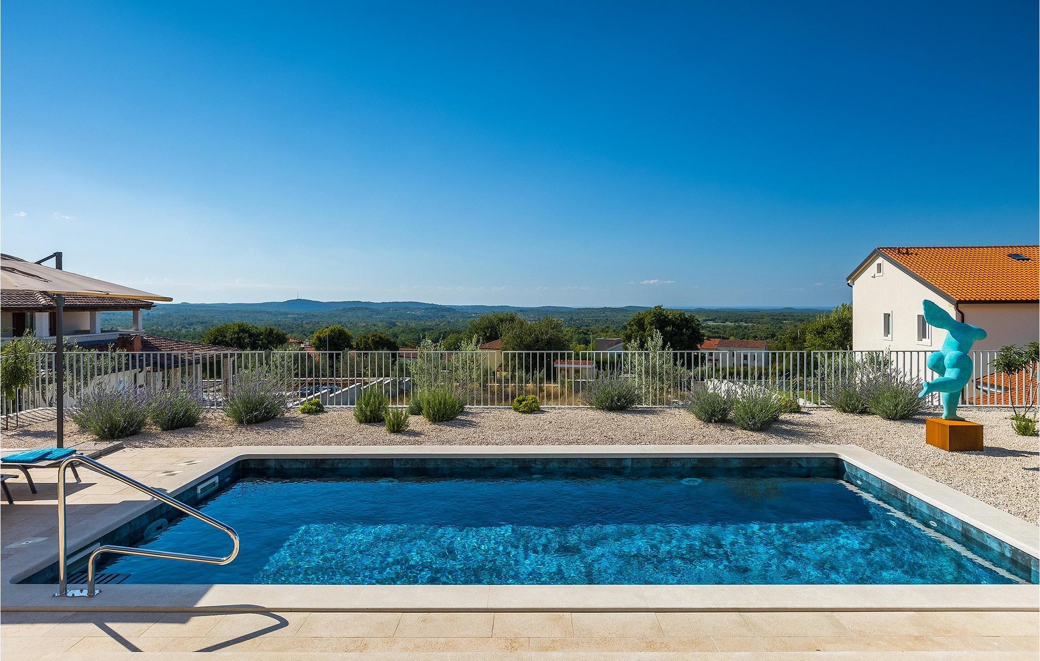 Den smukke terrasse har en pool med modstrømsanlæg. Det er det perfekte sted at bade, slappe af i en liggestol eller ligge i skyggen af ??parasollerne. Det veludstyrede udendørs køkkenområde er velegnet til familiegrill om aftenen. Terrassen er også kendetegnet ved en fantastisk skulptur, der forestiller kvindefiguren, et kunstværk af en af ??de vigtigste kroatiske billedhuggere i dag. Villaen ligger i middelalderbyen Sveti Lovrec i det centrale Istrien. Den maleriske lille by er kendetegnet ved sine smalle, snoede gader og stenhuse, hvor man kan spise i den lokale restaurant om aftenen og så gå en tur.