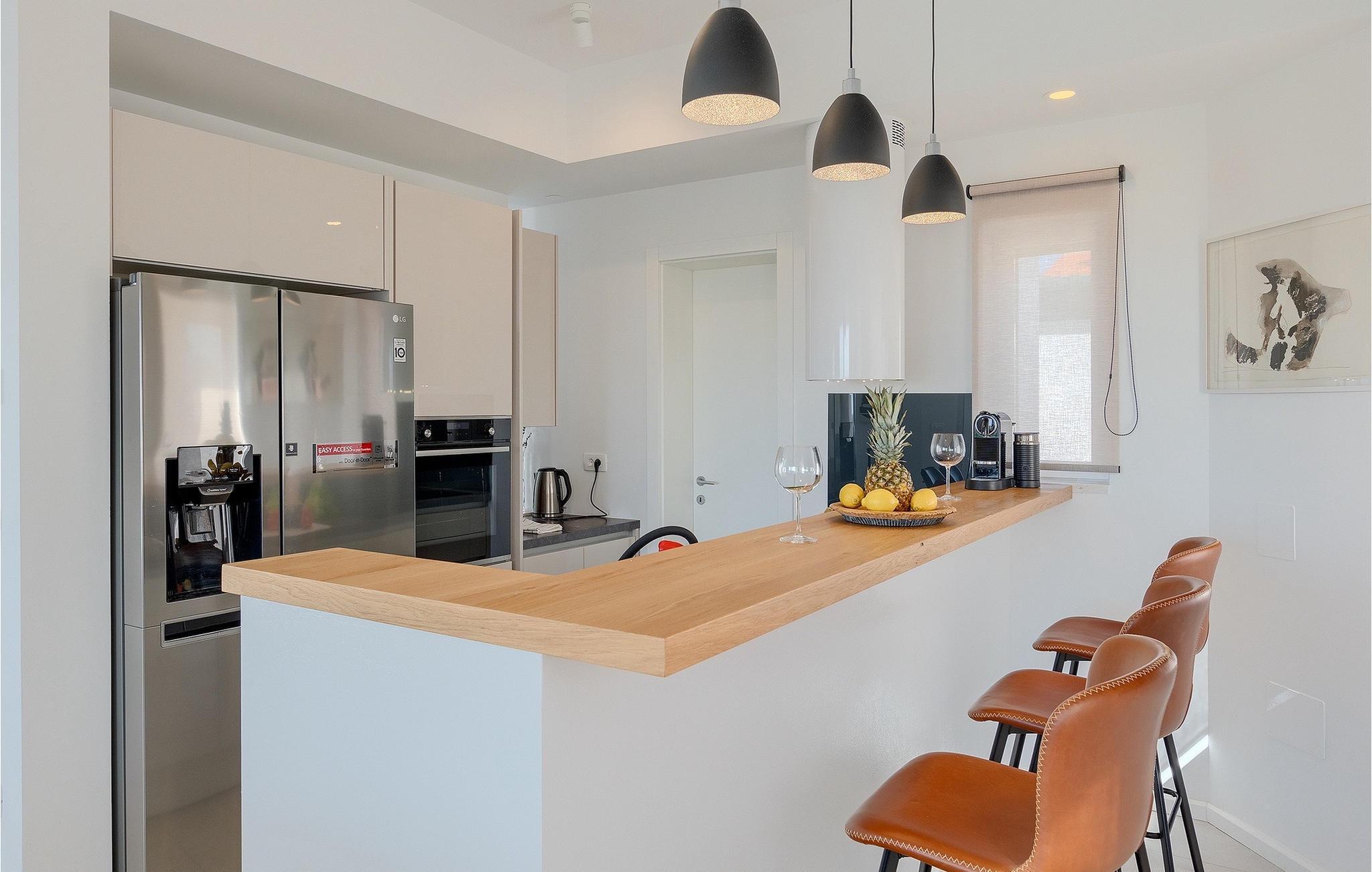 I stueetagen kan I slappe af i den smukke sofa eller nyde måltider sammen i den charmerende spiseplads. Et fuldt udstyret køkken er placeret i stueetagen. Her kan I også finde et af soveværelserne med eget badeværelse med bruser, samt gæstetoilet.
