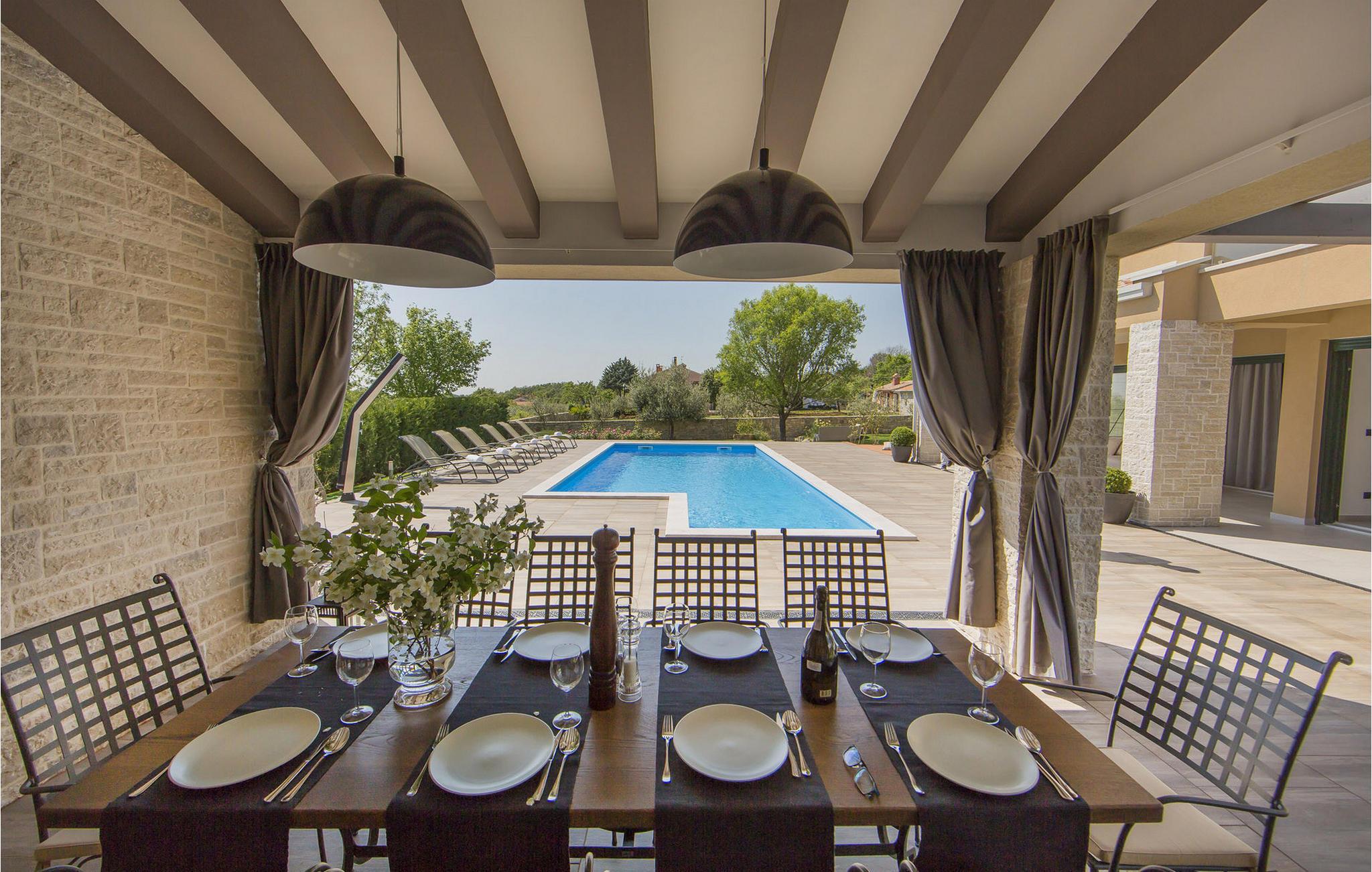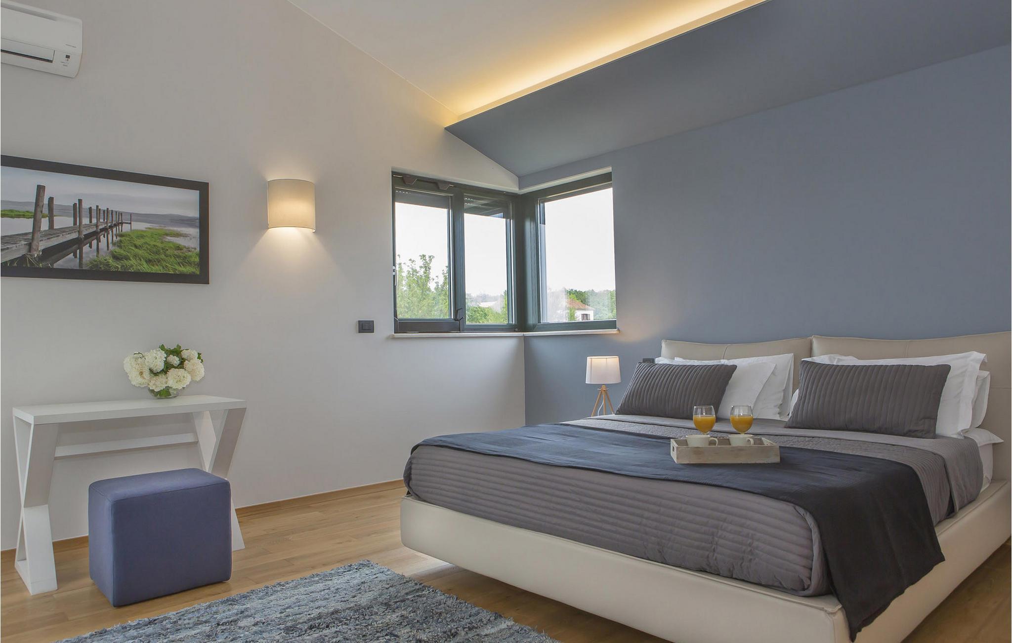 Villa Verde, en moderne villa, ligger i en af de smukkeste regioner i Kroatien. Istrien er en smuk, turistorienteret region i Kroatien med mange interessante steder. Denne villa ligger i Sv. Lovrec, som ligger nær byen Porec. Villa Verde falder godt ind i lokalmiljøet, både udvendigt og indvendigt, samtidig med at alle regler for nutidigt byggeri respekteres. På første sal finder gæsterne køkkenet, indrettet i hvide og sandfarver. Enhver madelsker vil sætte pris på charmen ved det istriske køkken og sund mad, købt lokalt og tilberedt i dette veludstyrede køkken. Den rummelige spisestue på første sal suppleres af en stue indrettet i lyse toner med et beroligende touch. Husets første sal er fuldt udstyret til handicappede. Villaen har fem komfortable soveværelser indrettet til en afslappende ferie. Gennem vinduet kan du nyde udsigten over omgivelsernes gavnlige natur. Badeværelserne er udstyret med brusekabine og dobbelt håndvask. Med en overdækket udendørs grill, som valgfrit kan bruges i dårligt vejr, er der et ekstra toilet. En særlig komfort ved dette hus er jacuzzien nær poolen. Især i de varme sommermåneder kan poolen bruges til hurtig forfriskning og sjov for de mindste. En gynge er også tilgængelig. Besøg St. Lovrec og lær mere om små romanske og gotiske kirker. Ud over de velduftende lavendelmarker byder denne lille by på adskillige attraktive seværdigheder, herunder fund af de ældste fresker i Istrien. De stammer fra det 11. århundrede og findes, når man besøger St. Martins Basilica. Besøg Istrien, bo i en komfortabel villa og start din ferie med at udforske omgivelserne. Kæledyr er tilladt på denne ejendom efter ejerens skøn eller mod et gebyr. Bemærk venligst, at denne ejendom ikke accepterer ungdomsgrupper eller polterabends. En ungdomsgruppe i denne ejendom består af personer under 30 år. Book ikke denne ejendom, hvis du er en ungdomsgruppe eller polterabend, da din reservation vil blive afvist efter reservationen, hvilket også kan være tilfældet ved ankomst til overnatningsstedet eller under dit ophold, og du vil ikke modtage en refusion.