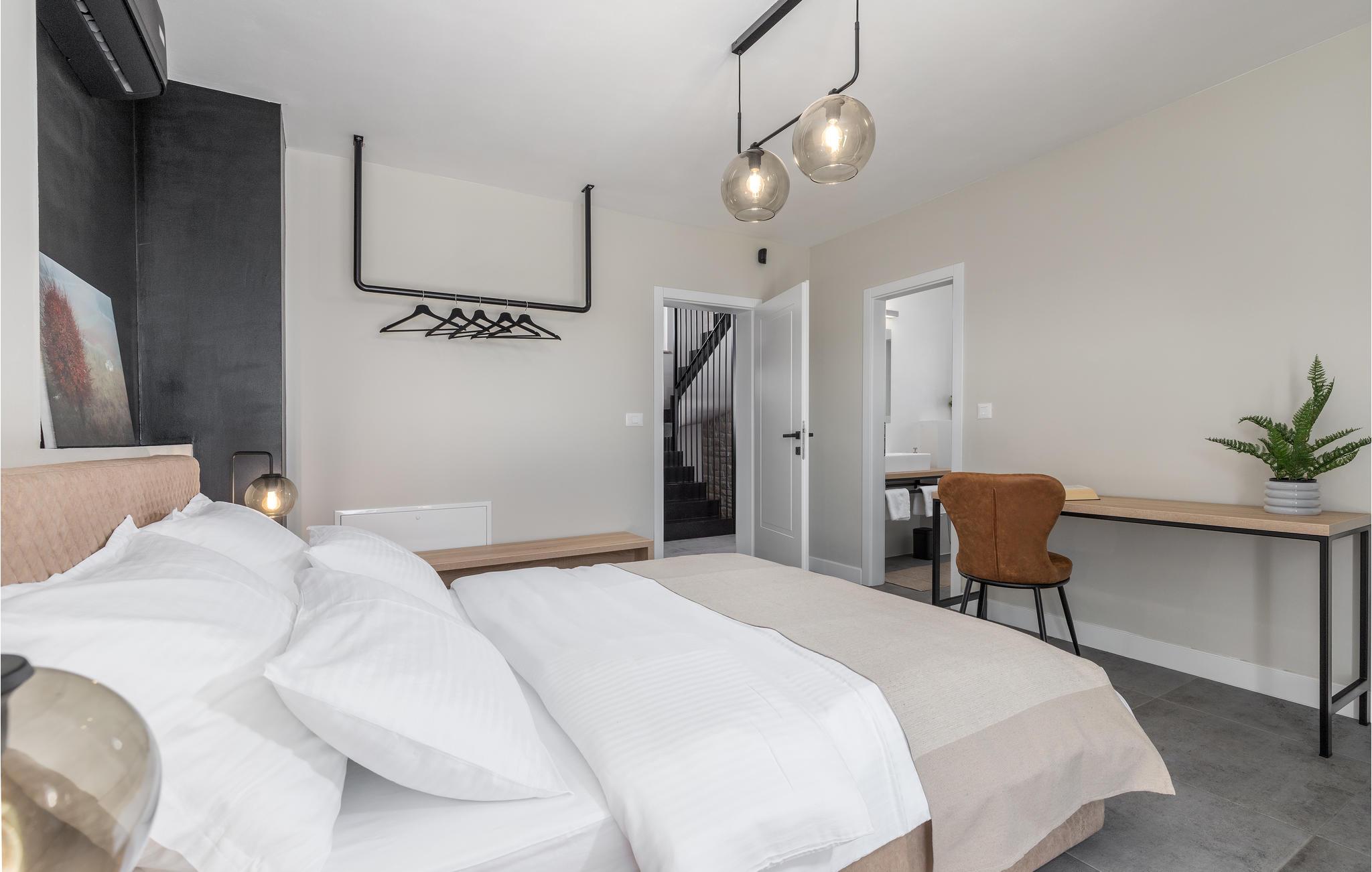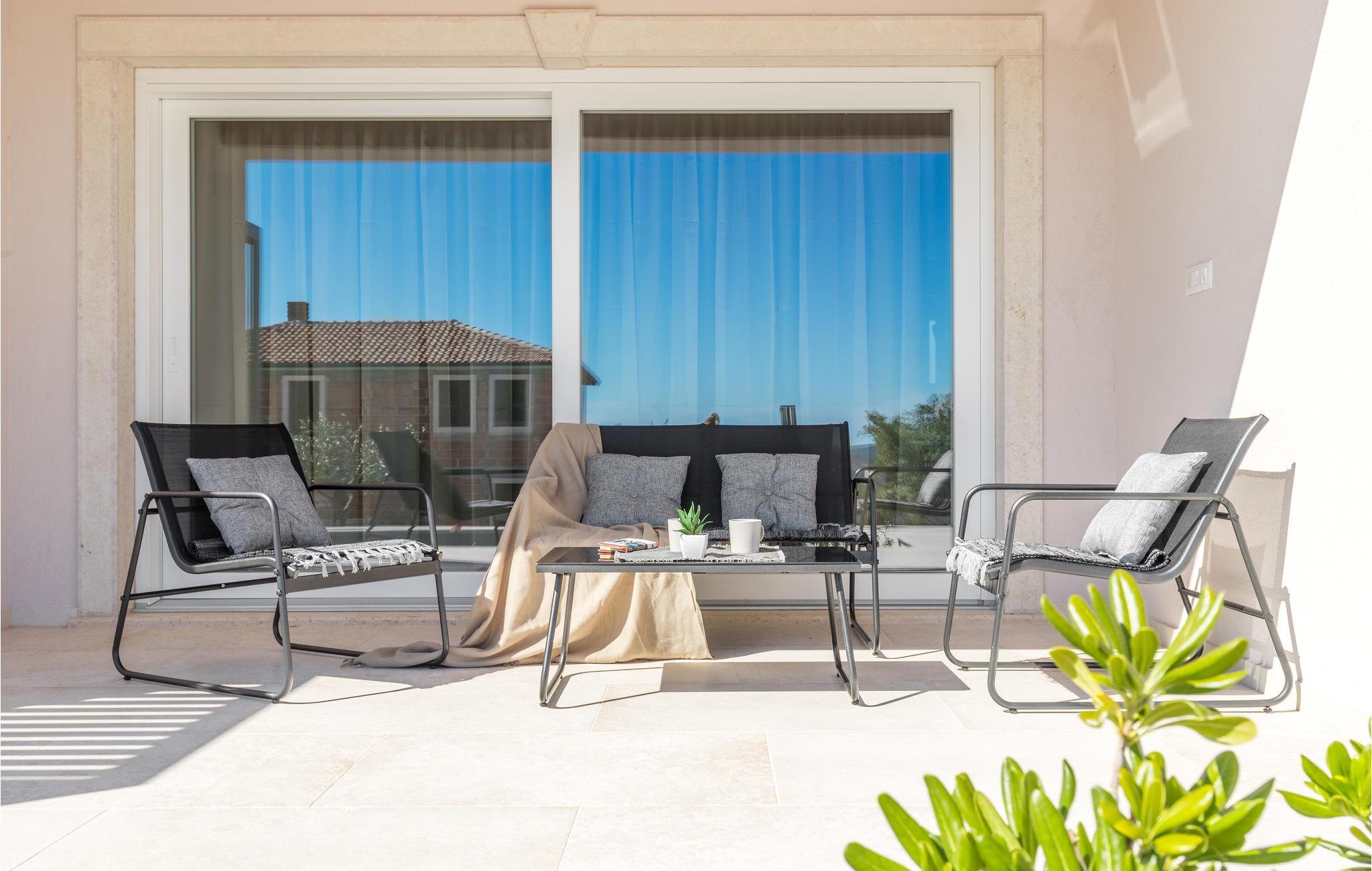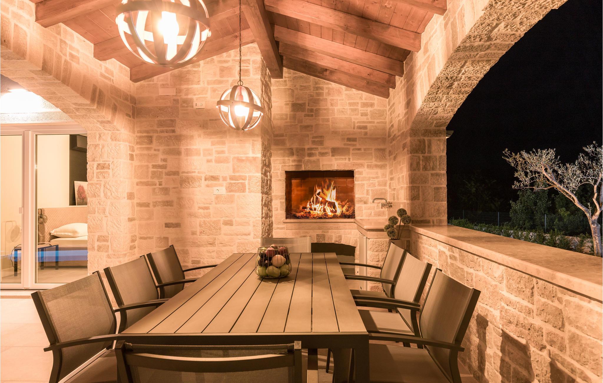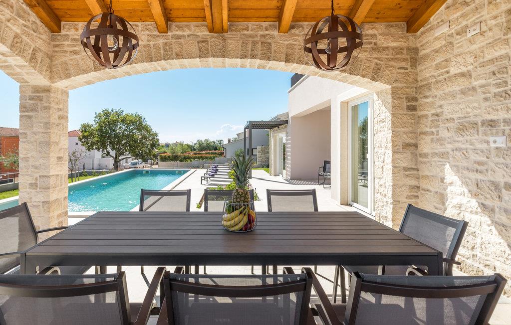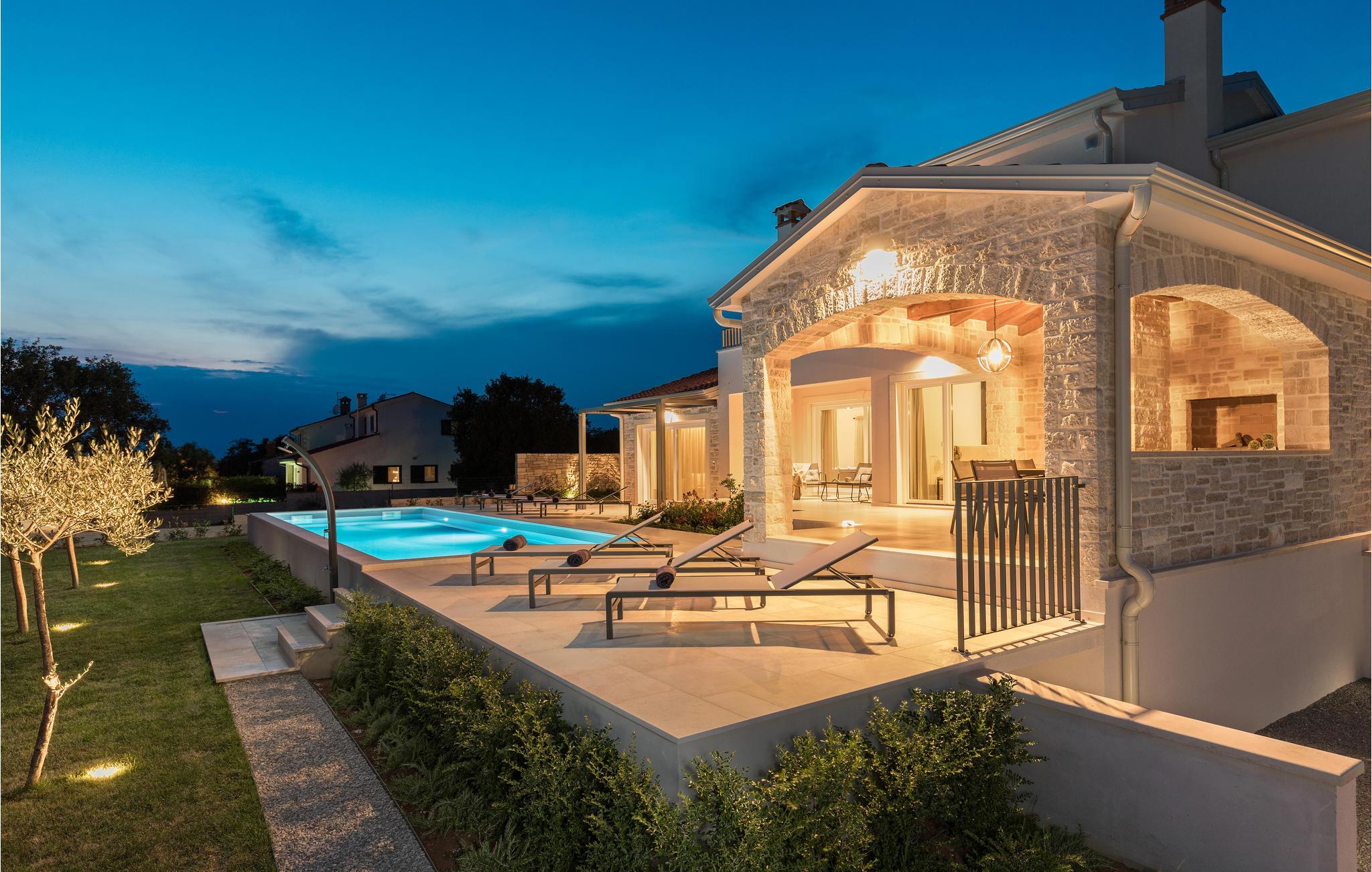 Den velholdte, indhegnede have har også en overdækket terrasse med grill og hyggelige havemøbler, der inviterer jer til at hygge og slappe af. Udforsk de idylliske omgivelser og de omkringliggende byer med velbevarede fæstninger og besøg populære byer som Rovinj, Porec og Pula.