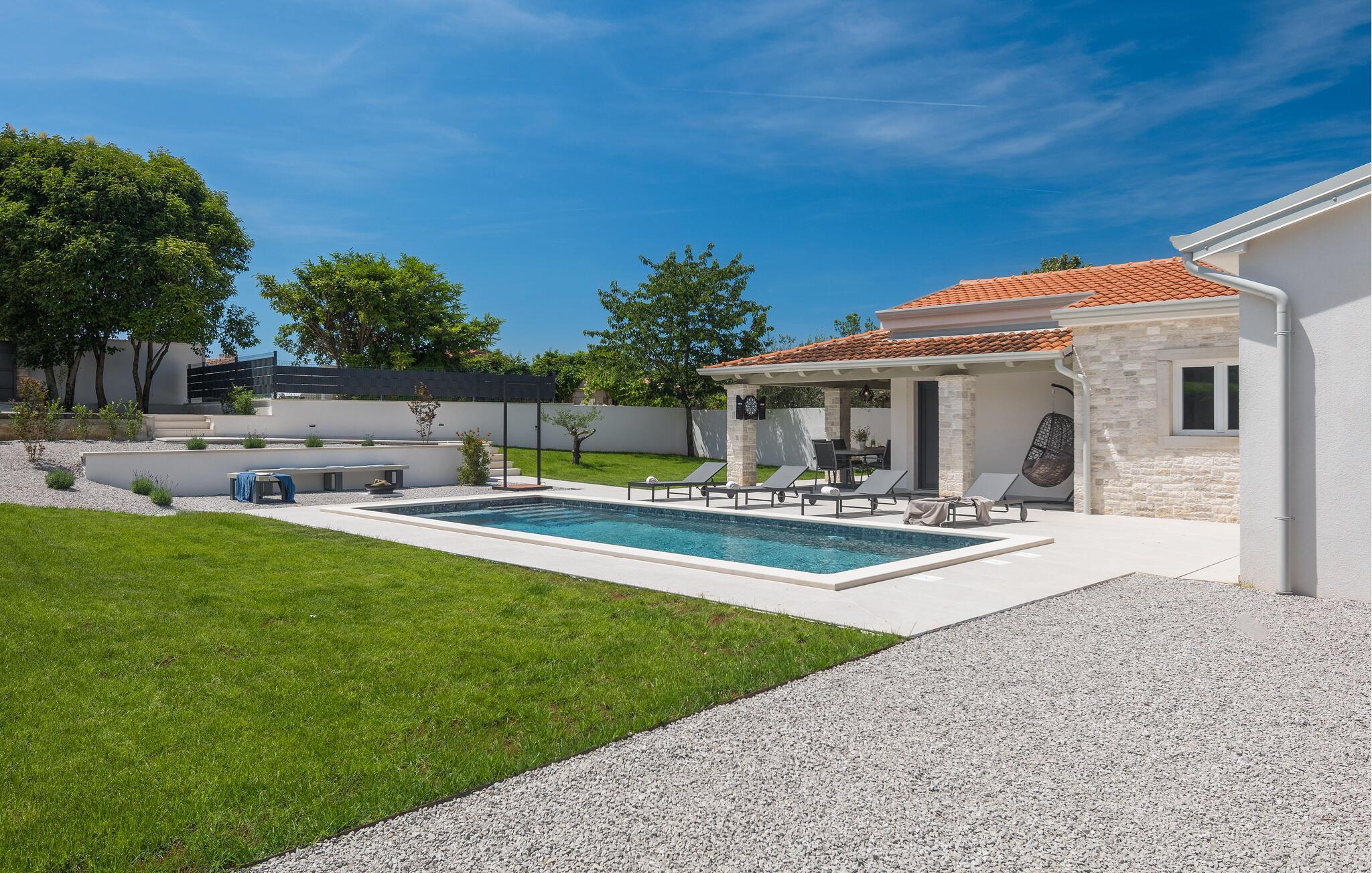 Se frem til en vidunderlig ferie i dette moderne og komfortable stenhus med pool.