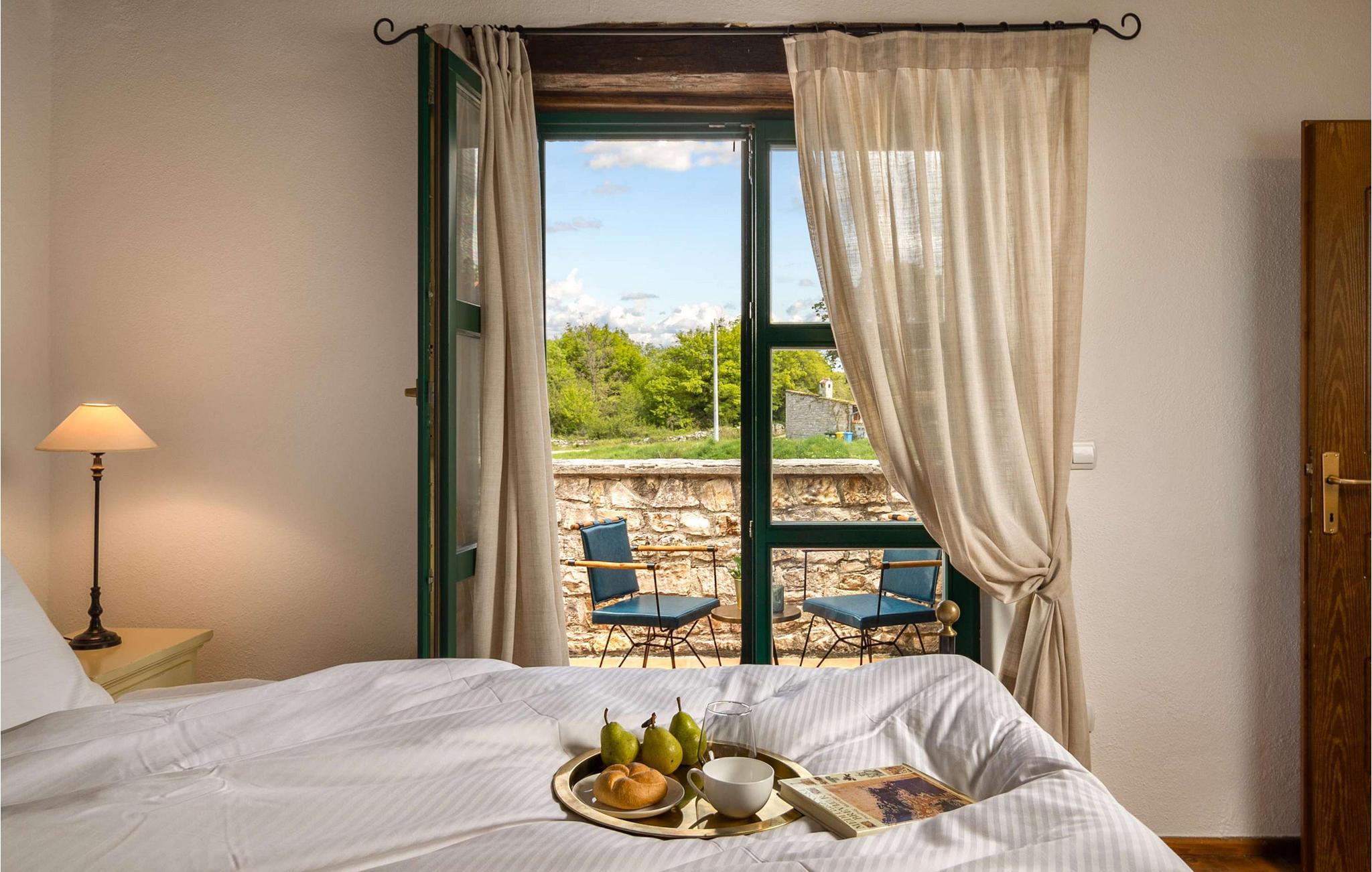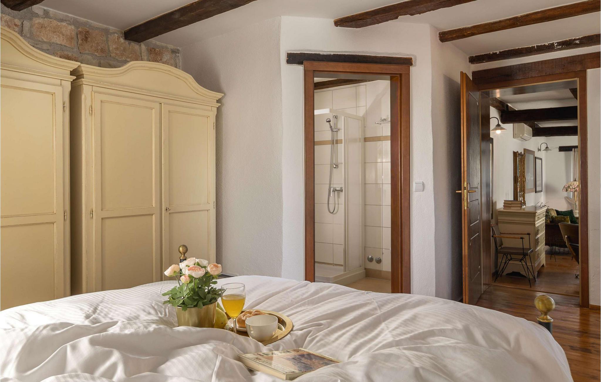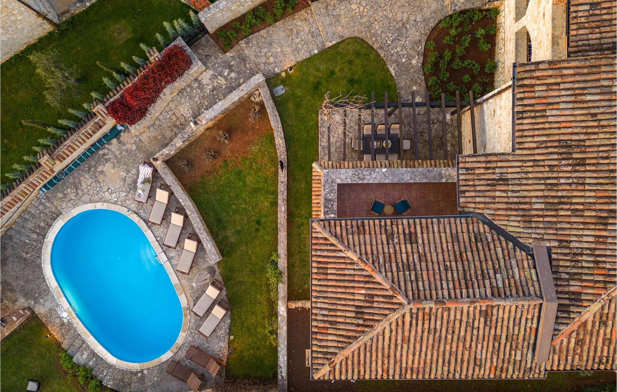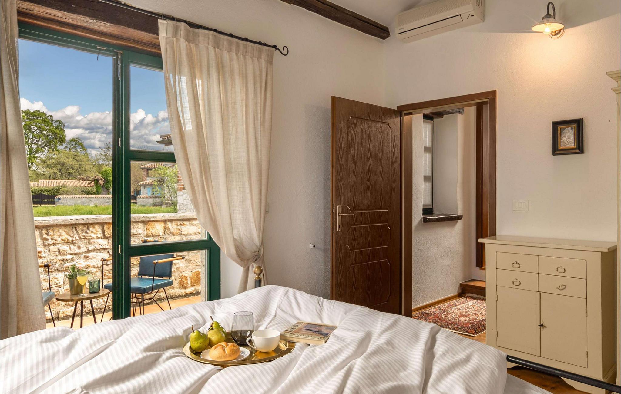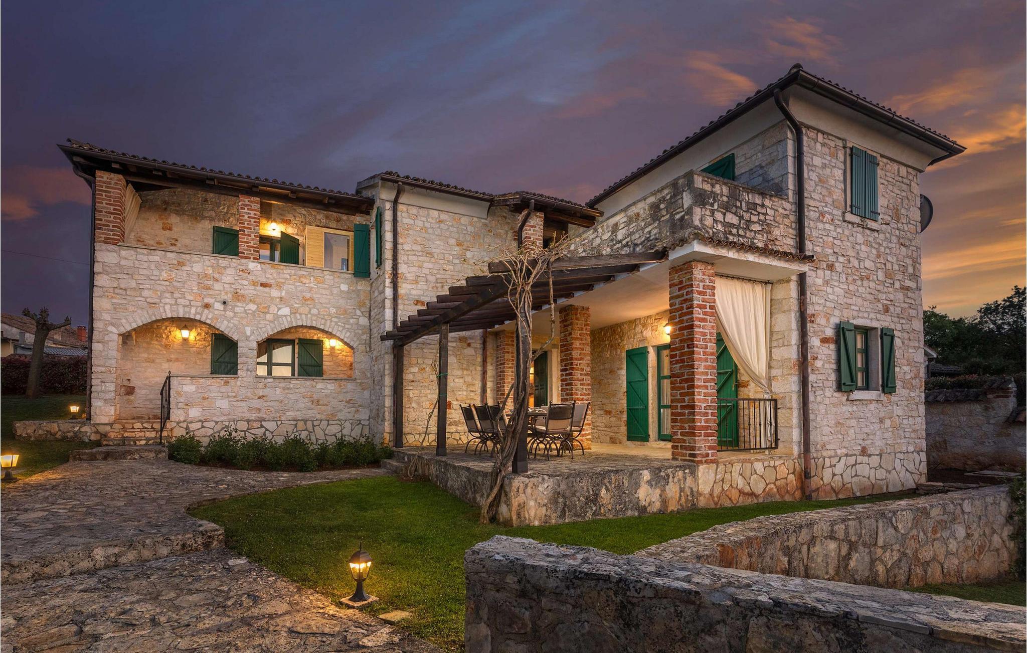 Den rustikke villa Adea ligger i Istrien, i den smukke by Sv. Lovrec, som ligger på den vestlige del af halvøen Istrien. Denne lille by er en skjult perle og en af de bedst bevarede middelalderlige befæstede byer i Istrien. Hvis du leder efter en fredelig ferie i selskab med venner og familie, så er Villa Adea det rigtige valg for dig! Villa Adea tilbyder overnatning til max 8 personer, der råder over 200 m2, og ejendommens samlede areal er på 768 m2. På øverste etage er der 3 soveværelser med dobbeltsenge (180x200), mens der i stueetagen er et fjerde soveværelse med 2 enkeltsenge (90x200), som om nødvendigt kan slås sammen. To soveværelser har eget badeværelse med bruser, og villaen har endnu et badeværelse med badekar, som er placeret mellem de to værelser. I stueetagen af denne fuldt klimatiserede villa er der desuden køkken, hvor I kan tilberede lækre måltider til hele familien, samt spisestue med spisebord med 8 siddepladser og stue. Der vil du hvile på to sofaer og to lænestole, hygge dig og se tv. Der er udendørs spisebord på den udendørs terrasse, og der er desuden en pool på 32 m2 og 1,5 meter dyb. På solbadningsområdet, ved siden af poolen, er der 8 liggestole til solbadning, som vil være ideelle til at nyde din yndlingsbog. Du vil være i stand til at tilberede lækre måltider efter eget valg på den udendørs kul- eller trægrill. Under dit ophold kan du bruge foderautomat, barneseng, vaskemaskine og strygejern i villaen. Der er også en infrarød sauna på terrassen, takket være hvilken du vil have mulighed for at nyde fred og ro og få råd til dig selv! Gården til Villa Adea er helt indhegnet og byder på 1 parkeringsplads, mens der er yderligere 2 pladser udenfor gården. Istrien vil tilbyde dig smukke solnedgange, mange valgmuligheder til dagsture og nærheden af byer, hvor du kan gå eller cykle. Ligeledes vil du i forskellige taverner eller restauranter være i stand til at prøve det perfekte gastronomiske udbud af fremragende delikatesser, der vil glæde enhver smag! Velkommen til Villa Adea! Denne ejendom kan tillade kæledyr efter ejerens skøn eller mod et gebyr.