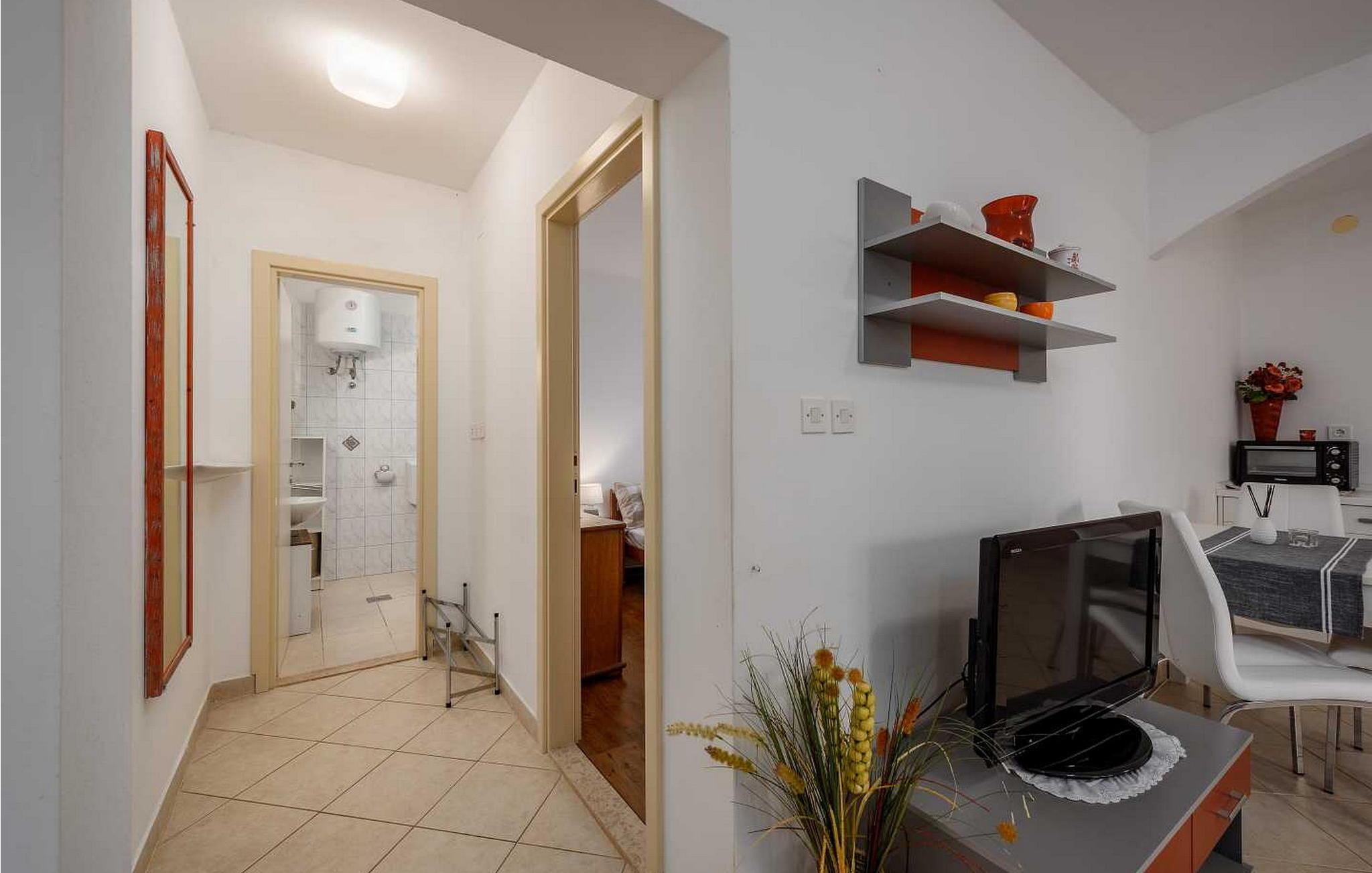 Petra-lejlighederne ligger i stueetagen af et familiehus i landsbyen Susnjici, 10,5 km fra Porec og 3,5 km fra den nærmeste restaurant og butik. Beliggende på denne store, delvist lukkede ejendom har gæsterne brug af en fælles pool, 44 kvm stor, og et skovområde, hvor børnene vil elske at lege ubekymret og bruge tid på gynger og rutsjebane. Der er også parkering til flere køretøjer på stedet. Ejerne af lejlighederne bor på første sal og ejendommen ligger ud til en ret trafikeret vej. Lejlighed Petra 2 ligger i husets stueetage og har et samlet boligareal på 40 kvm. Den er møbleret og udstyret til 2-4 gæster med stue med køkkenalrum, spisebord, udtrækssofa med plads til 2 personer og udgang til overdækket terrasse med bord og stole til udendørs spisning. Der er et soveværelse med dobbeltseng og et badeværelse med bruser. Bemærk venligst, at denne ejendom ikke accepterer ungdomsgrupper eller polterabends. En ungdomsgruppe på denne ejendom er en gruppe bestående af personer på 26 år eller derunder. Book ikke denne ejendom, hvis du er en ungdomsgruppe eller et polterabend, da din reservation vil blive afvist efter booking, hvilket kan omfatte ved ankomst til ejendommen eller under dit ophold, og du vil ikke blive refunderet.