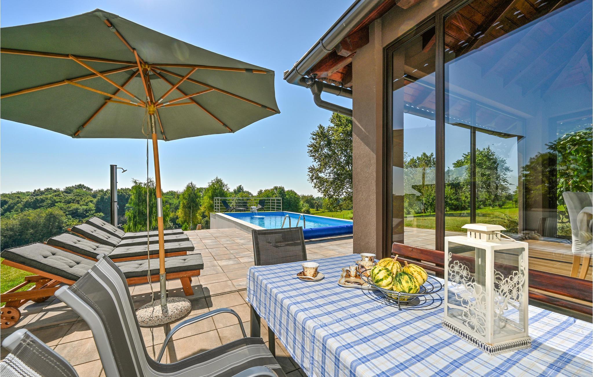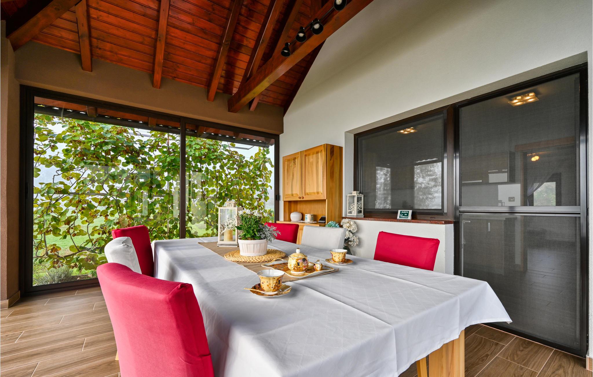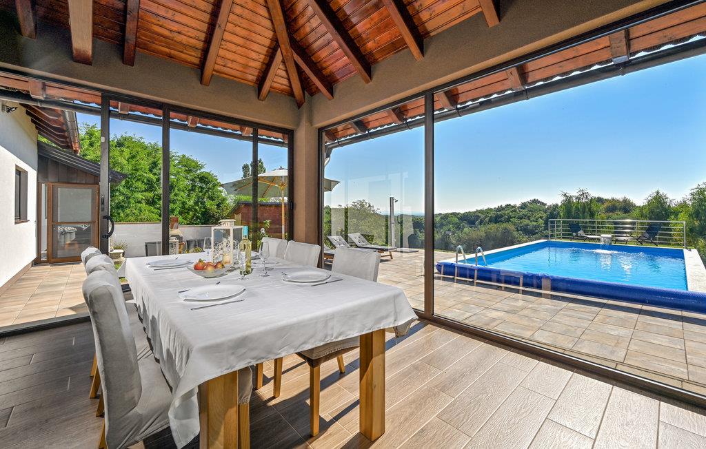 Ikke langt fra den nordlige grænse mellem Kroatien og Slovenien ligger dette rummelige feriehus, som giver jer en god og hyggelig base. Her kan I se frem til et ophold uden bekymringer på alle tider af året, for I kan både samles i stuen og nyde jeres måltider i vinterhaven med udsigt til haven og landskabet. Hvis I bor her i vinterhalvåret, kan I få varmen i det indendørs spabad, og om sommeren kan I køle ned i poolen udenfor.