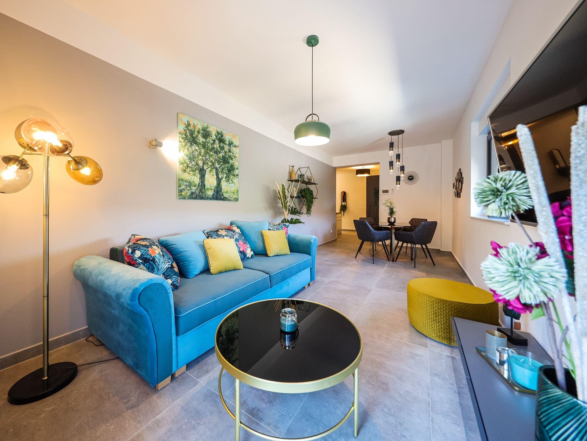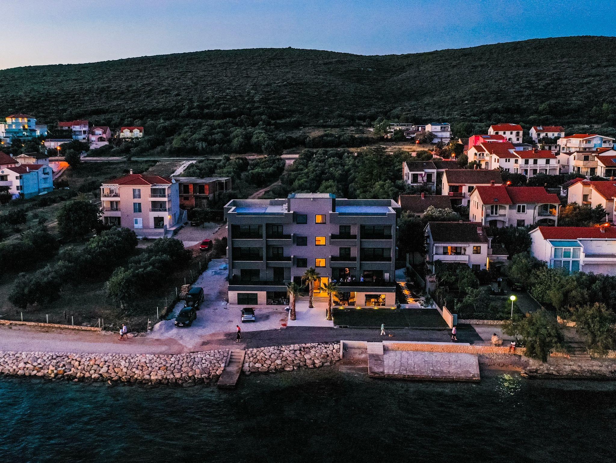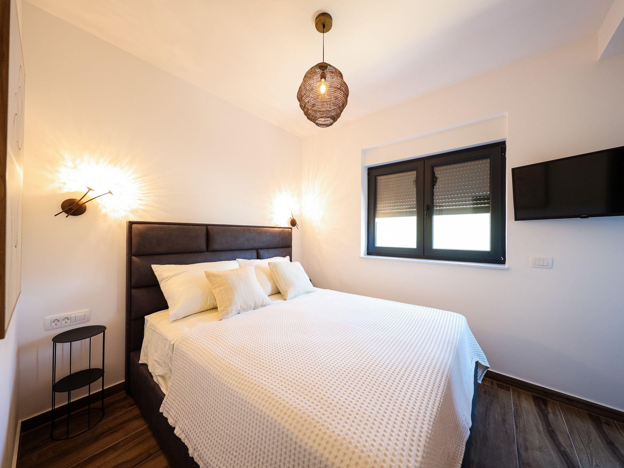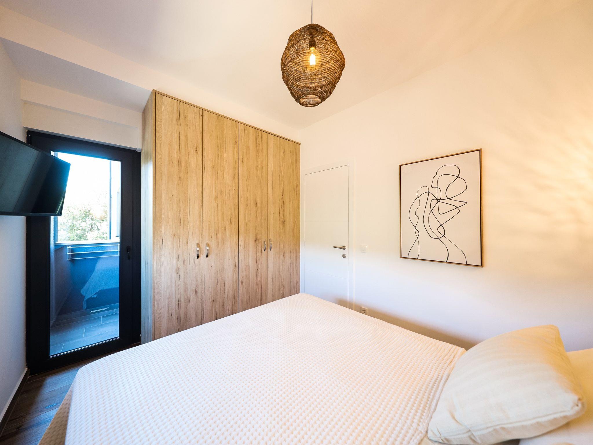 Ferienwohnung bietet Platz für 4 Gäste. Die Betten sind in Schlafzimmern, die es 1 gibt, und in Wohnzimmer, innerhalb einer Gesamtfläche von 48m2, angeordnet. Die Gäste haben einen eigenen Balkon zur Verfügung, auf der sie in warmen Sommernächten genießen können. Das Apartment bietet Meerblick. Es ist erlaubt, Speisen auf dem Gemeinschafts-Grill vorzubereiten. IM PREIS INBEGRIFFEN: Kurtaxe, Endreinigung, Klimatisierung, Parkplatz, Internet, Bootsanlegeplatz, Kinderbett, Zusatzbett, Bügeleisen, Bügelbrett, Föhn, tragbarer Grill, Sonnenschirm, Liegestühle. Die Verfügbarkeit zusätzlicher Dienstleistungen in Ihrem reservierten Termin und die Preise derselben (falls nicht aufgeführt) müssen im Voraus überprüft werden. Zusätzliche Dienstleistungen die in der Zahlungsaufforderung nicht aufgeführt sind werden direkt beim Vermieter bezahlt, angenommen der Gast nutzt auch diese. Ermäßigung auf den Grundpreis: Gratistag 14=13 (bei einem Aufenthalt von 14 Tagen oder mehr erhalten Sie einen Gratistag für den Aufenthalt bis 31.12.26).