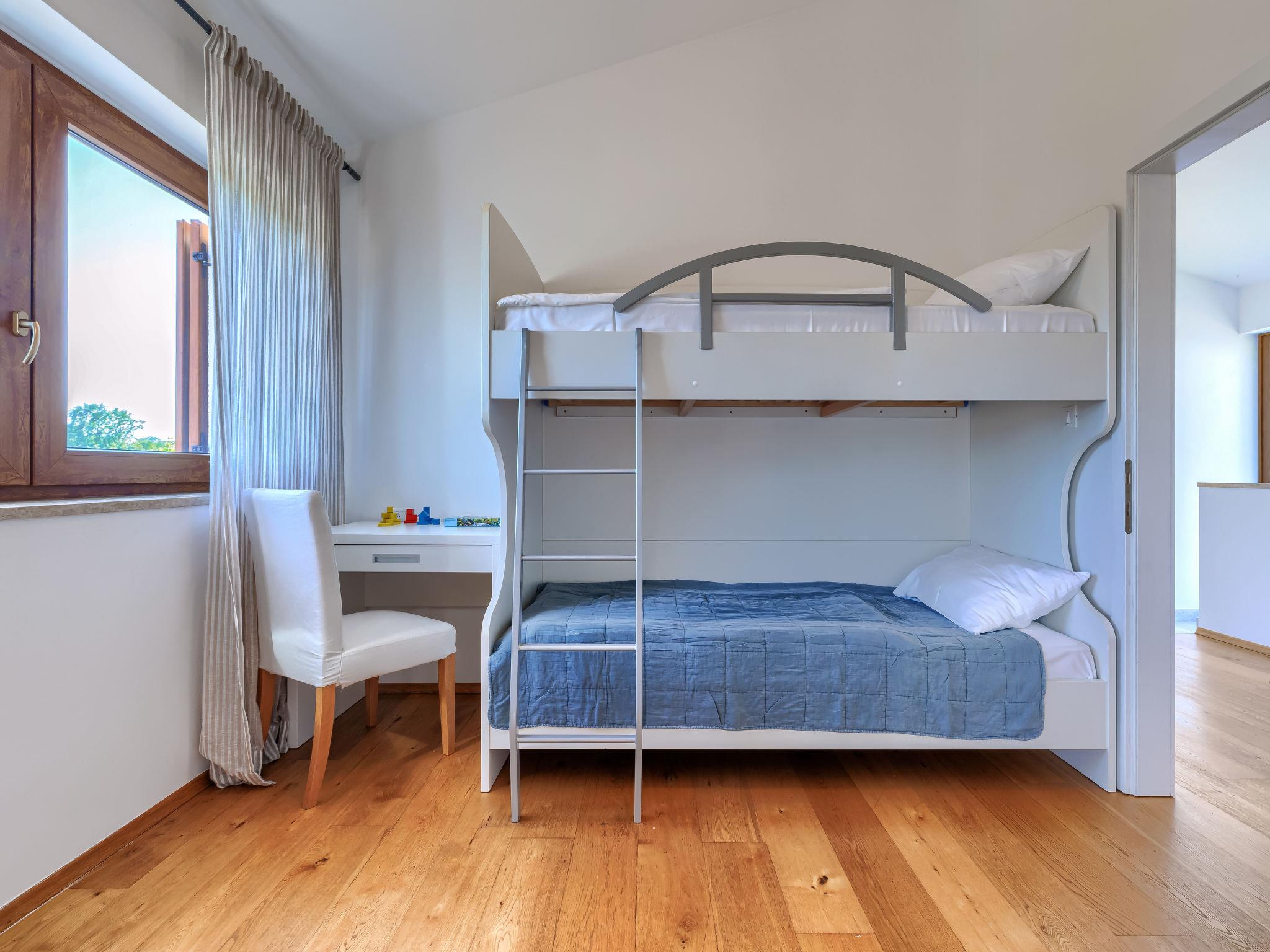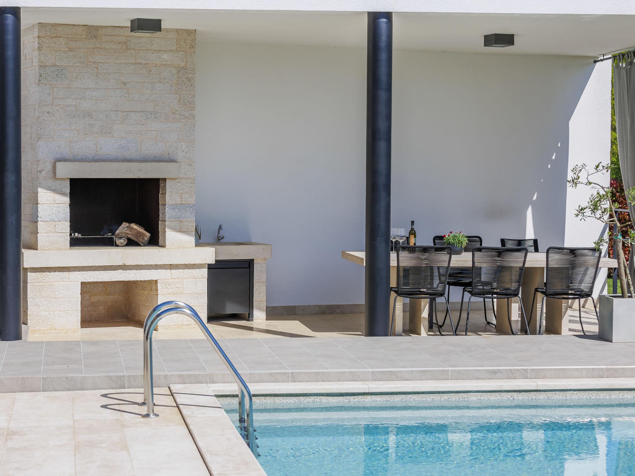 4-room villa 154 m2 on 2 levels. Beautiful furnishings: living/dining room with open-hearth fireplace (only for decoration), satellite TV (flat screen), hi-fi system, DVD and air conditioning. Exit to the terrace, to the swimming pool. Open kitchen (oven, dishwasher, 4 ceramic glass hob hotplates, microwave, freezer). Sep. WC. Upper floor: 1 room with 1 french bed (180 cm, length 200 cm), bath/bidet/WC and air conditioning. 1 room with 1 french bed (180 cm, length 190 cm), bath/bidet/WC. 1 room with 1 x 2 bunk beds (90 cm, length 200 cm). Heating. Deck chairs. Facilities: safe, children's high chair, baby cot. Internet (WiFi, free). Maximum 1 pet/ dog allowed. UP/I-335-02/14-01/41