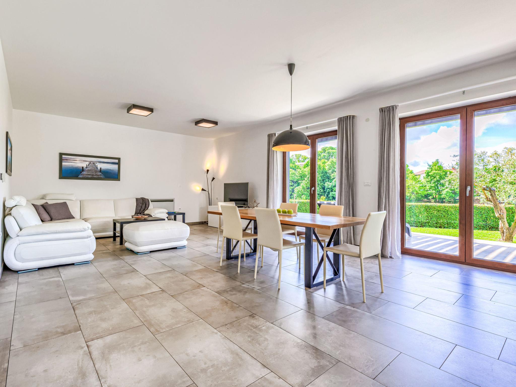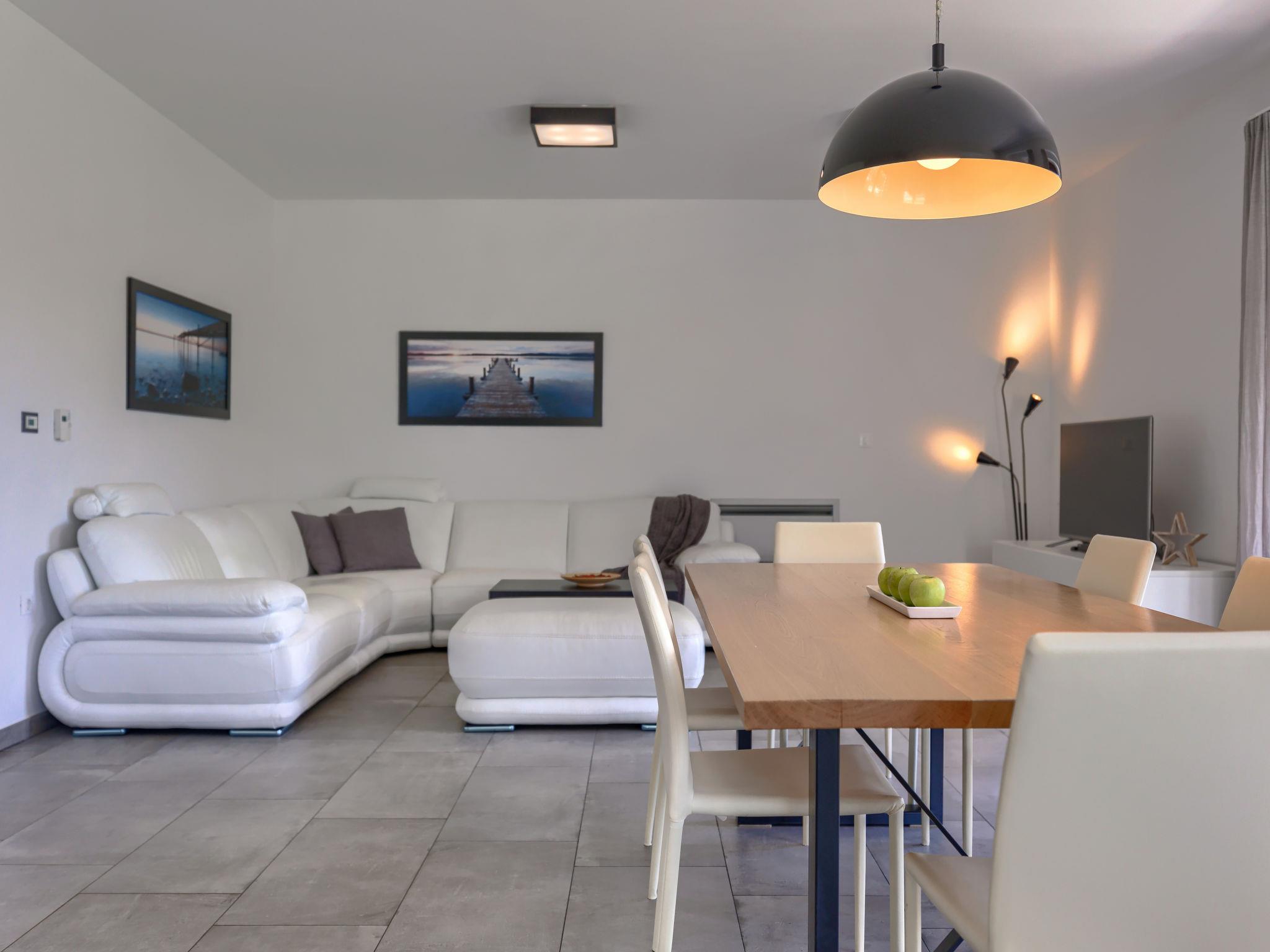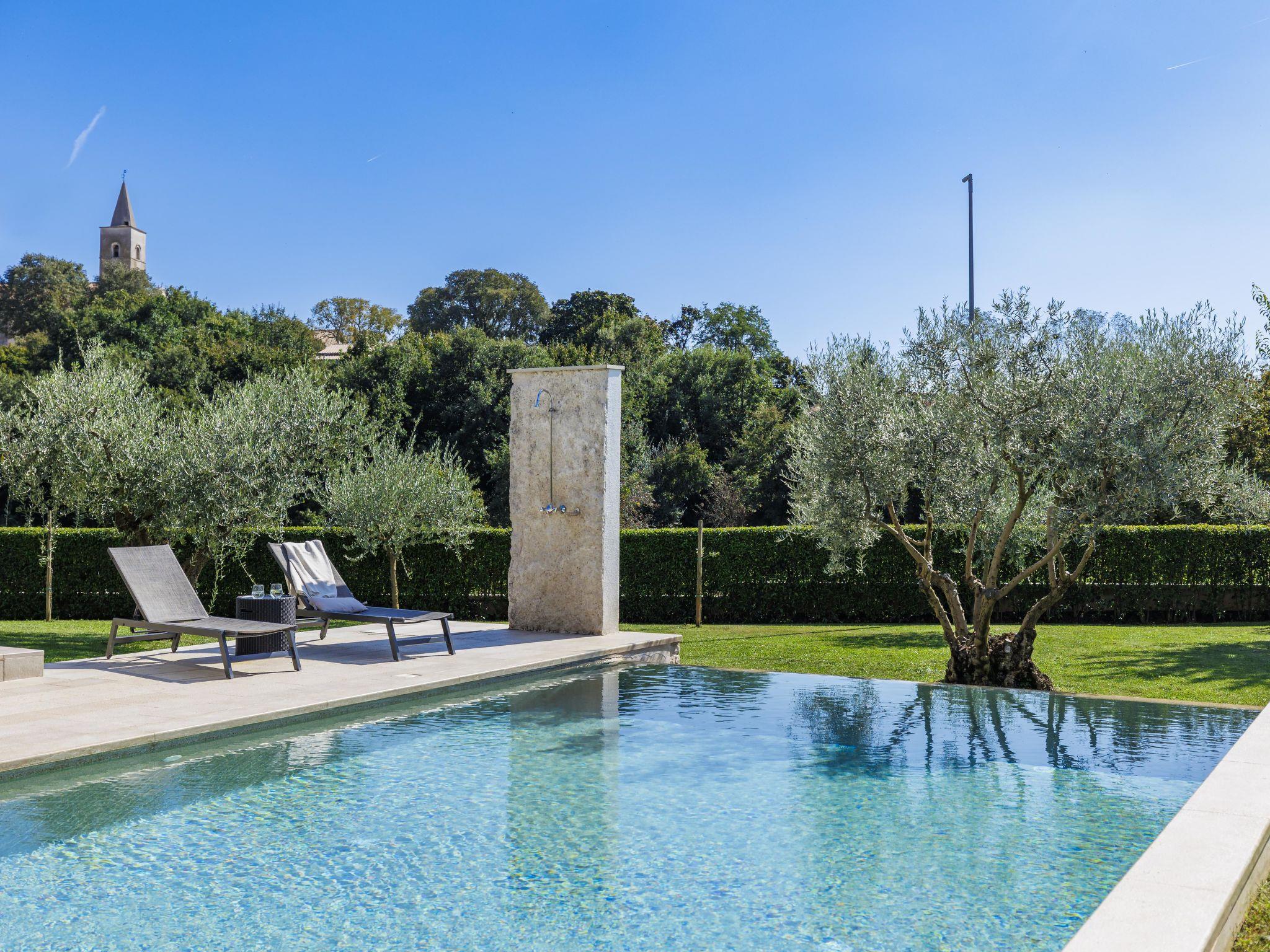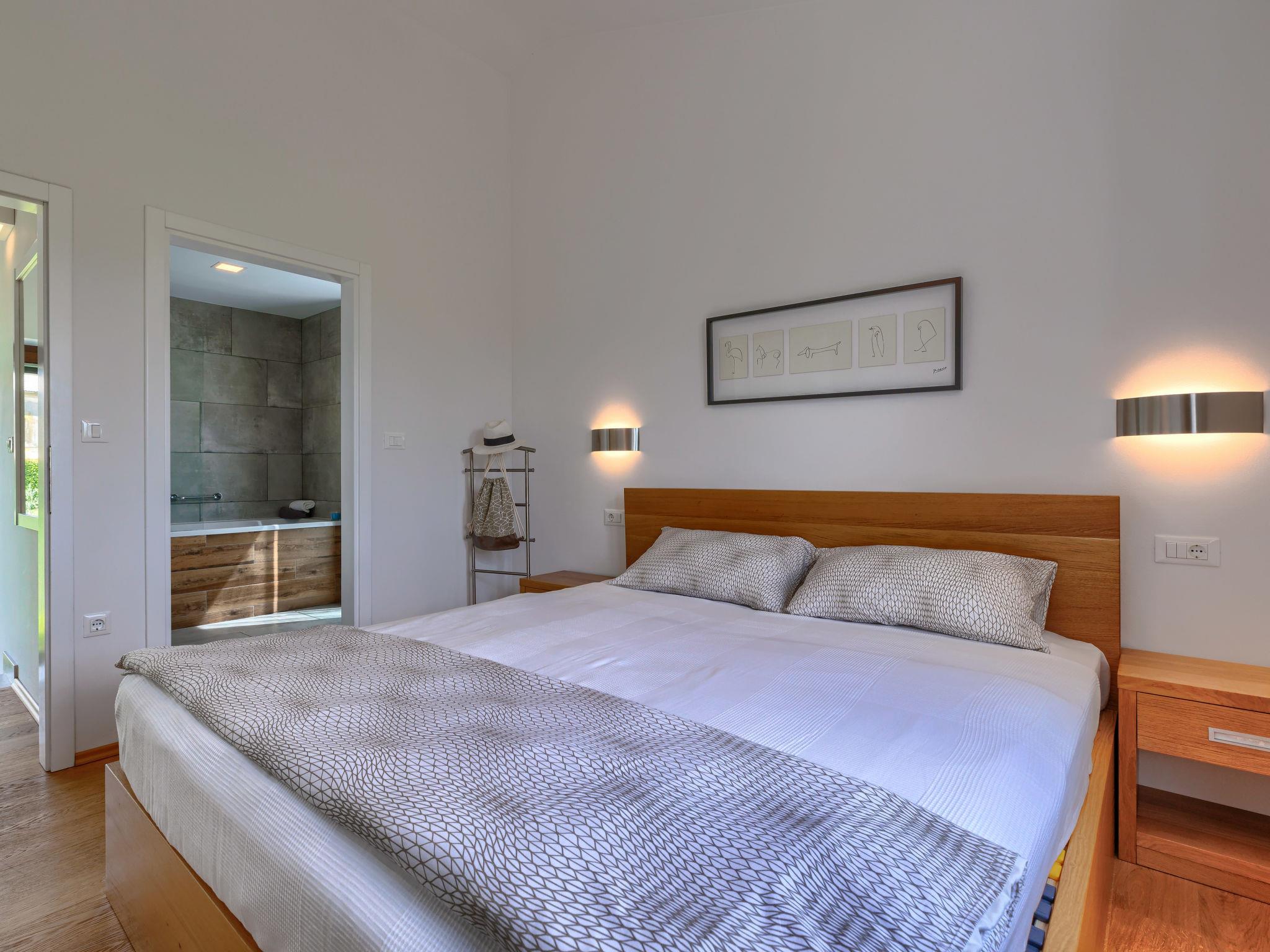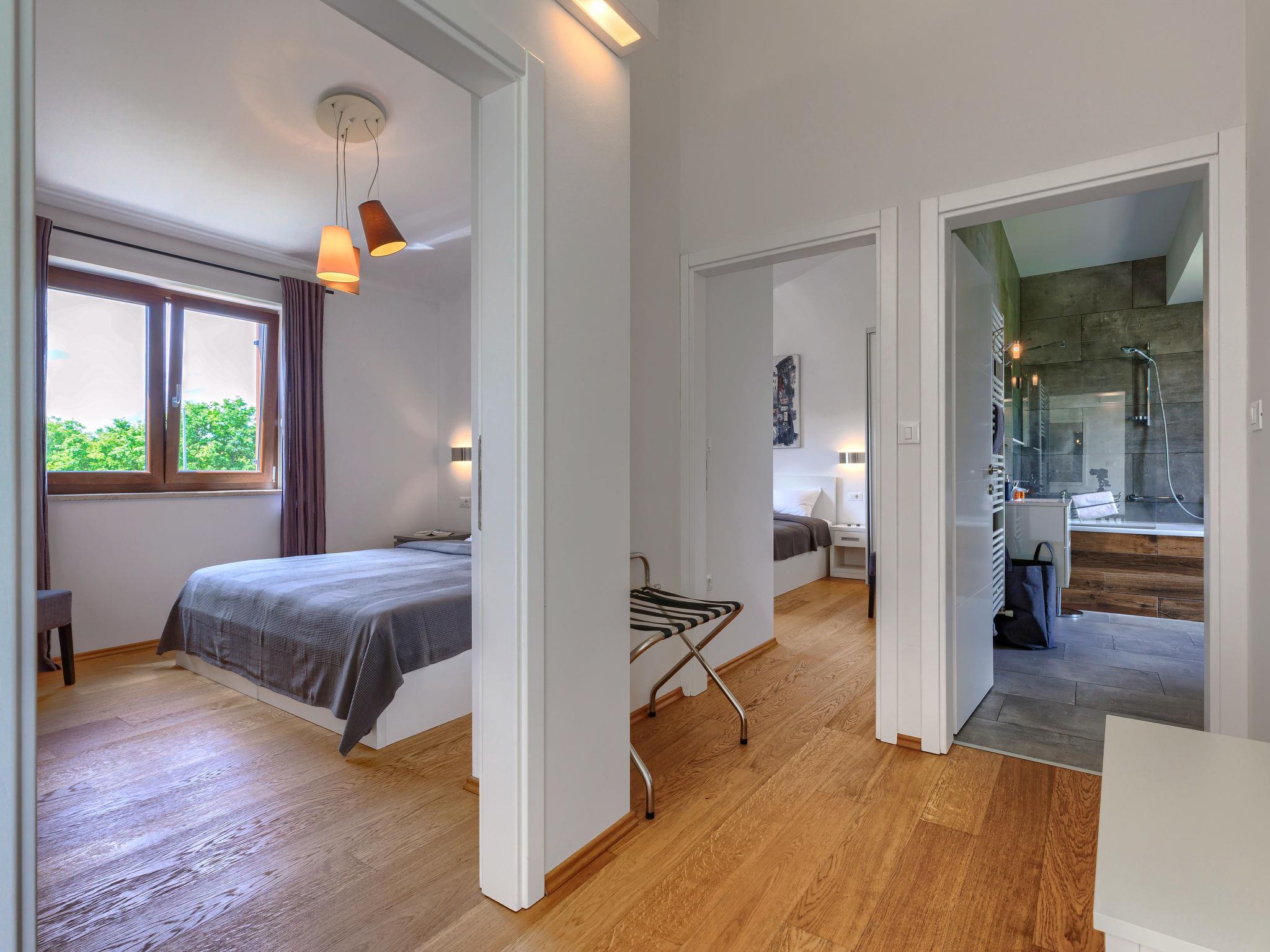 Modern villa "Luna Nera", 2 storeys. 6 km from the centre of Žminj, 13 km from the centre of Pazin, in a quiet, sunny position, 27 km from the sea. Private: property 1'000 m2, beautiful, well-kept garden with lawn and wildlife garden, swimming pool angular (10 x 5 m, depth 140 cm, seasonal availability: 01.Jan. - 31.Dec.) with internal staircase. Outdoor shower, pergola (30 m2), garden furniture, barbecue. In the house: internet access, washing machine, tumble dryer. Parking at the house on the premises. Shop 600 m, supermarket 6 km, restaurant 1 km, café 400 m, bus stop 6.6 km, railway station 500 m, pebble beach 27 km. Riding stable 7 km, walking paths from the house 1 km, cycle lane 1 km. Groups of teenagers on request only.