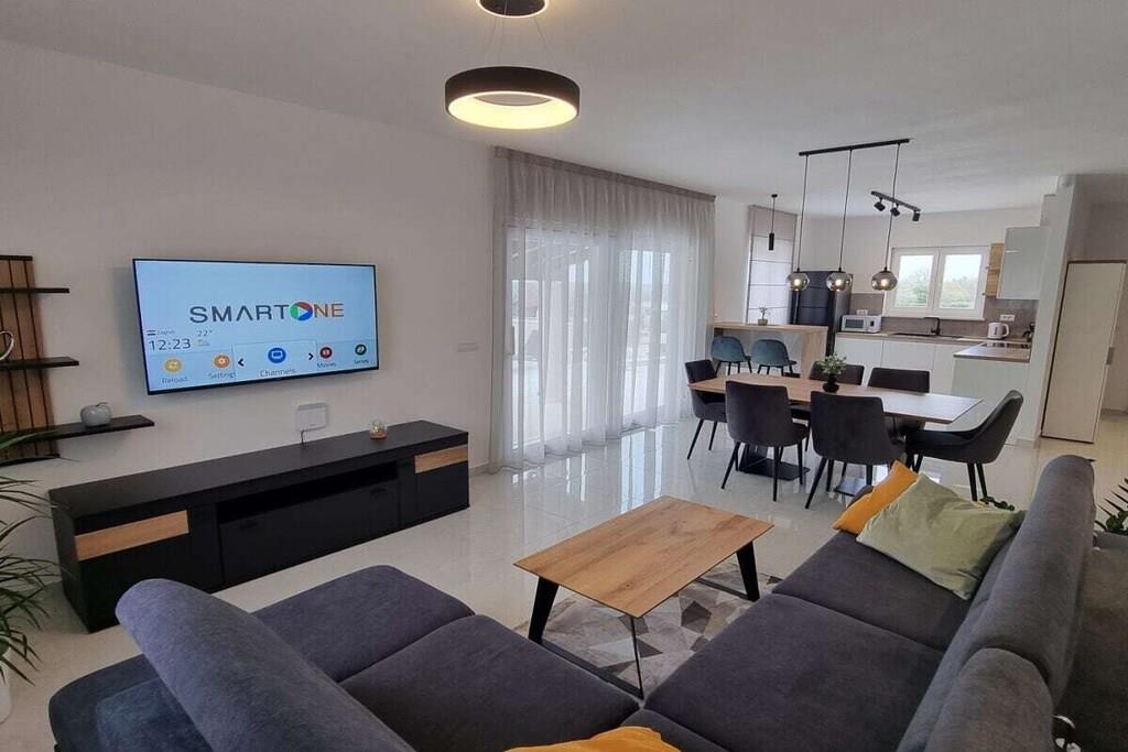 The house consists of three bedrooms and two bathrooms, a living room and a kitchen area. One bedroom has a double bed and two bedrooms have a single bed. There are 3 air conditioners in the house. This house is suitable for 5-6 people. The terrace by the pool has a large dining table. Private swimming pool is located in the middle of the garden, The house is surrounded by a fully fenced garden with private swimming pool and barbecue area. Ideal for a family holiday. 1,300sqm garden is also at your disposal Free parking and WiFi are available on site.