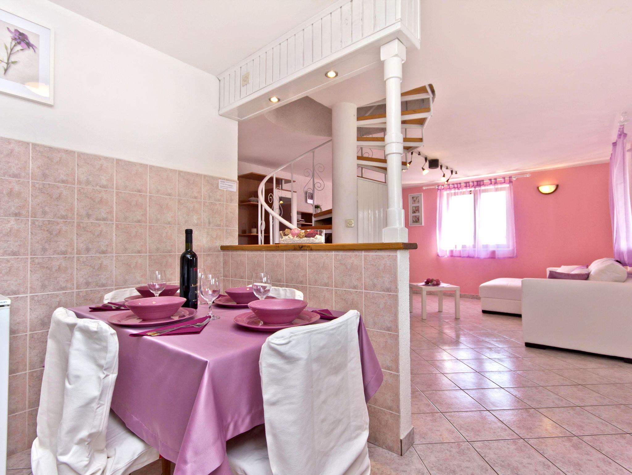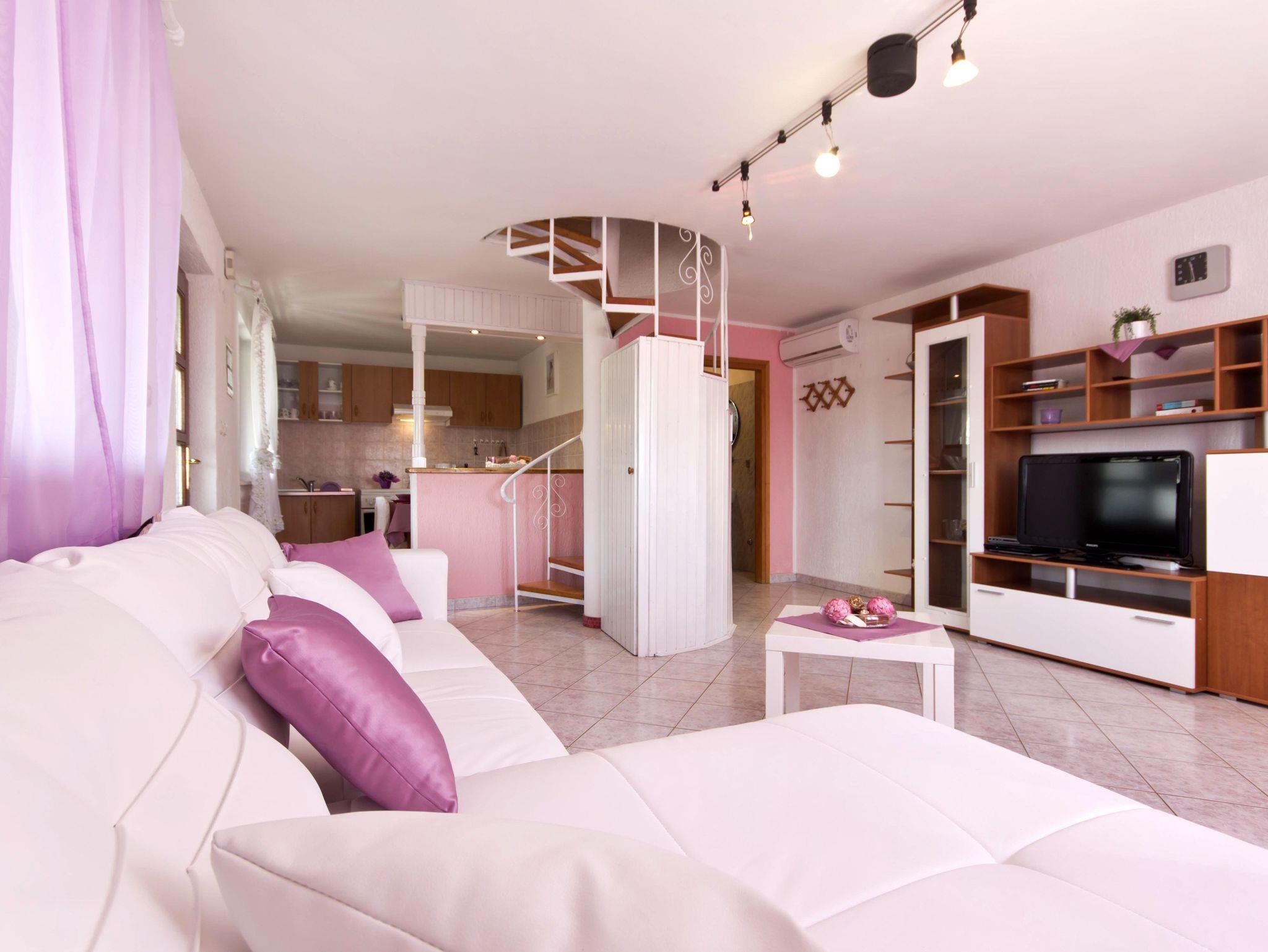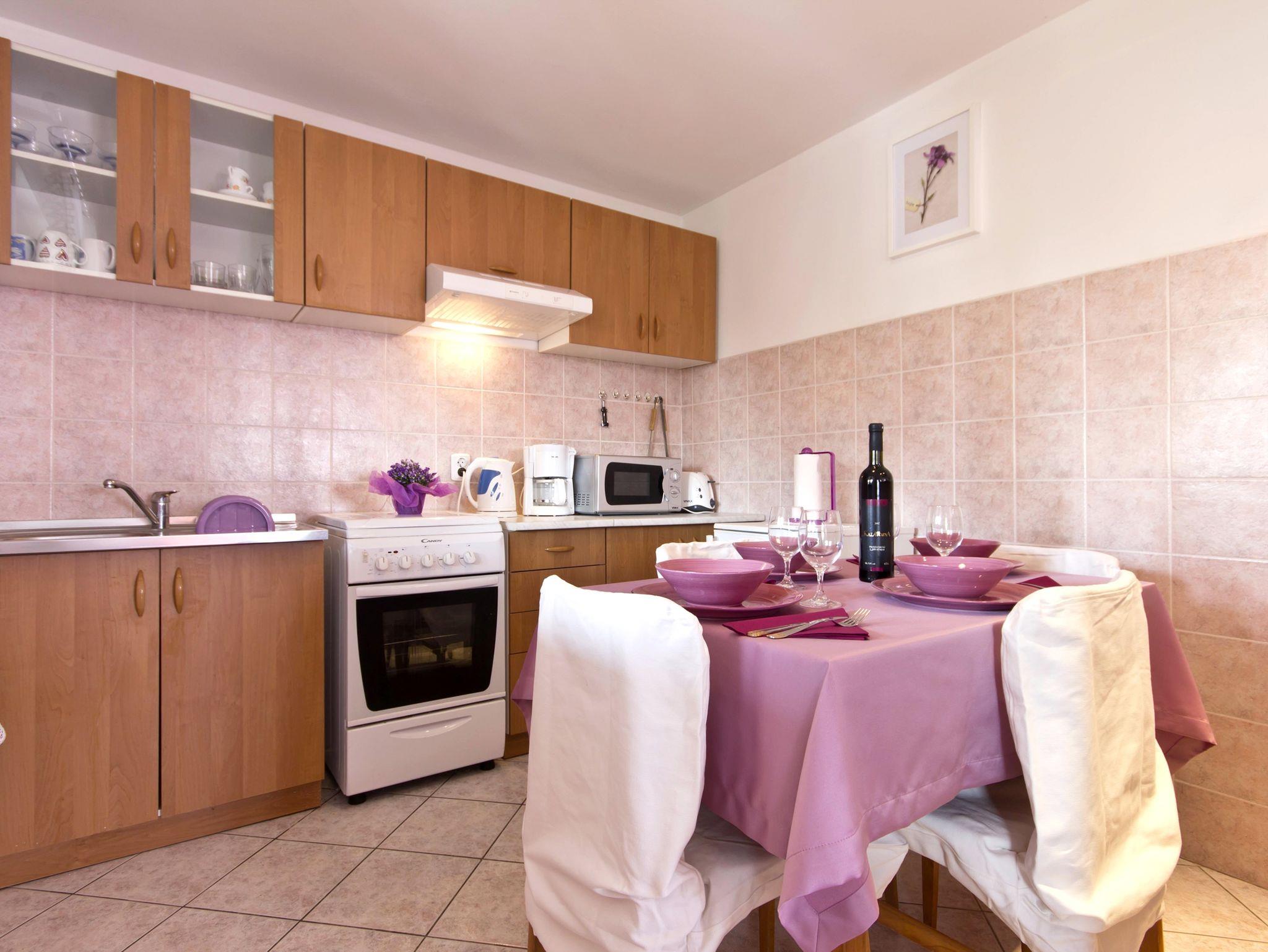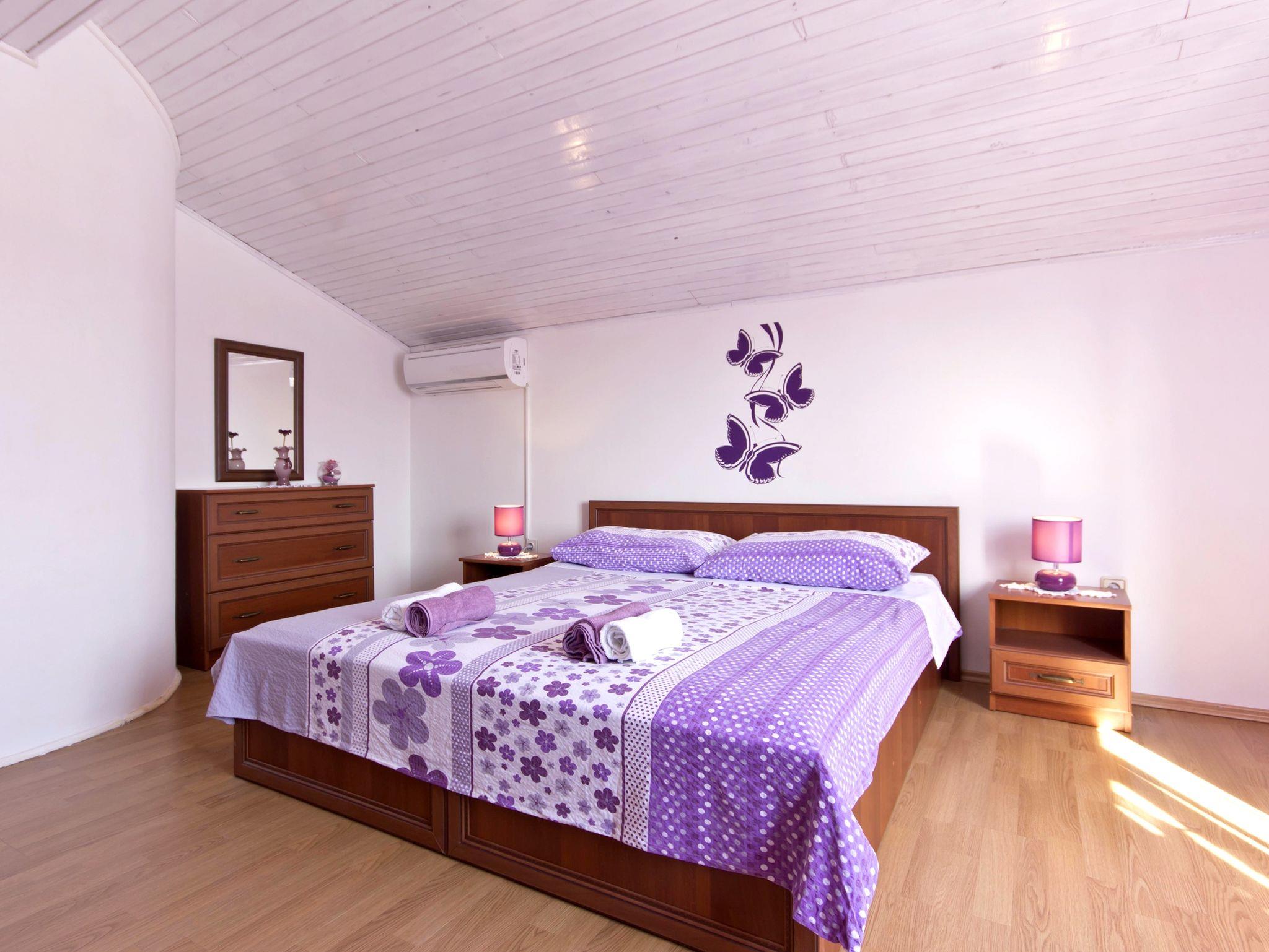Haus bietet Platz für 6 Gäste. Die Betten sind in Schlafzimmern, die es 2 gibt, und in Wohnzimmer, innerhalb einer Gesamtfläche von 75m2, angeordnet. Die Gäste haben eine eigene Terrasse zur Verfügung, auf der sie in warmen Sommernächten genießen können. Für vollen Genuss und Entspannung gibt es einen privaten Grill für Gäste dieser Unterkunft. Während ihres Aufenthalts können sich Gäste im privaten Schwimmbad entspannen. In der Unterkunftseinheit besteht die Möglichkeit des Mitbringens von Haustieren gegen Aufpreis. IM PREIS INBEGRIFFEN: Kurtaxe, Endreinigung, Klimatisierung, Pool, Parkplatz, Internet, Fahrrad, Kinderbett, Bügeleisen, Bügelbrett, Föhn, Sonnenschirm, Liegestühle. VERBINDLICHE ZUSÄTZLICHE KOSTEN: Aufzahlung für Kurzaufenthalte (prozentualer Zuschlag pro Nächtigungsanzahl: 30% - 1, 20% - 2, 10% - 3). UNVERBINDLICHE ZUSÄTZLICHE KOSTEN: Haustiere (9,00 € pro Nacht). Die Verfügbarkeit zusätzlicher Dienstleistungen in Ihrem reservierten Termin und die Preise derselben (falls nicht aufgeführt) müssen im Voraus überprüft werden. Zusätzliche Dienstleistungen die in der Zahlungsaufforderung nicht aufgeführt sind werden direkt beim Vermieter bezahlt, angenommen der Gast nutzt auch diese.