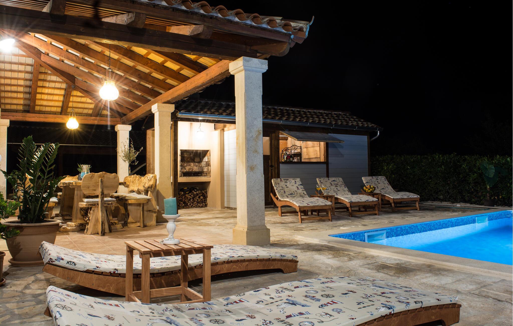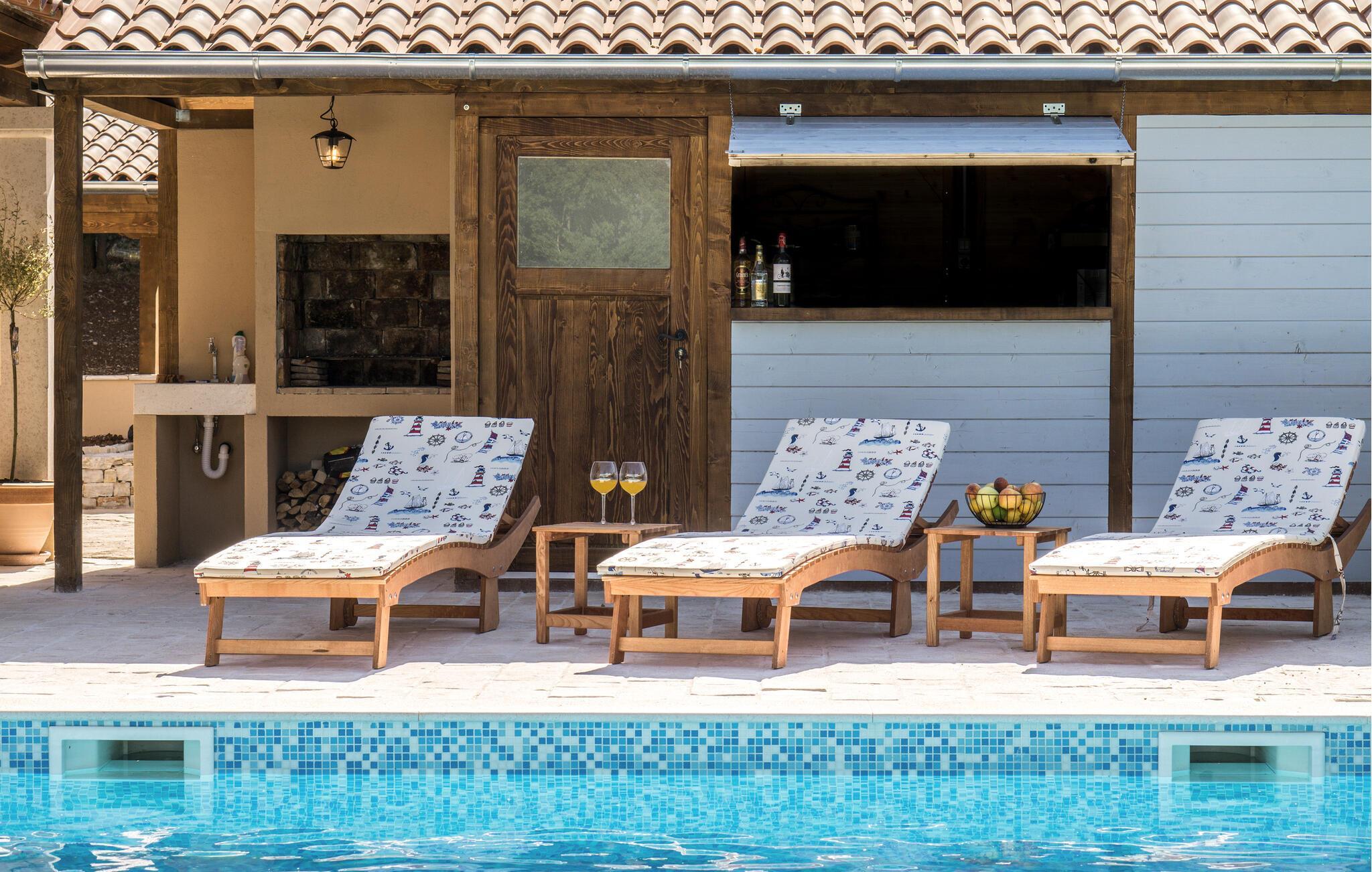 I kan også tilbringe dejlige timer udendørs. Nyd solen og et par kolde drinks på terrassen, I kan til enhver tid snuppe en frisk dukkert i den private pool og derefter slappe af på en liggestol eller snuppe et spil bordtennis. Afslut en skøn feriedag med lækre retter fra grillen.