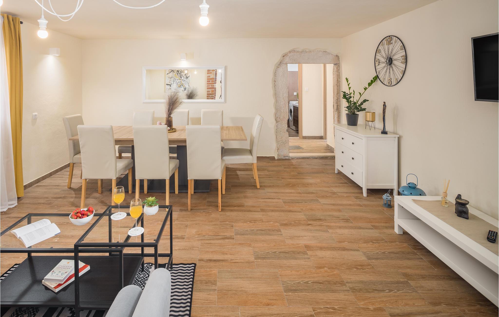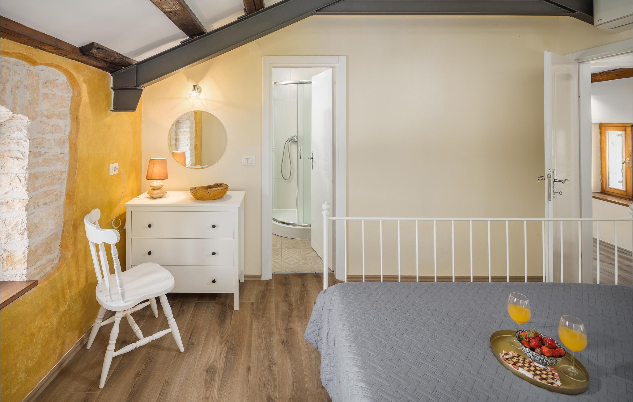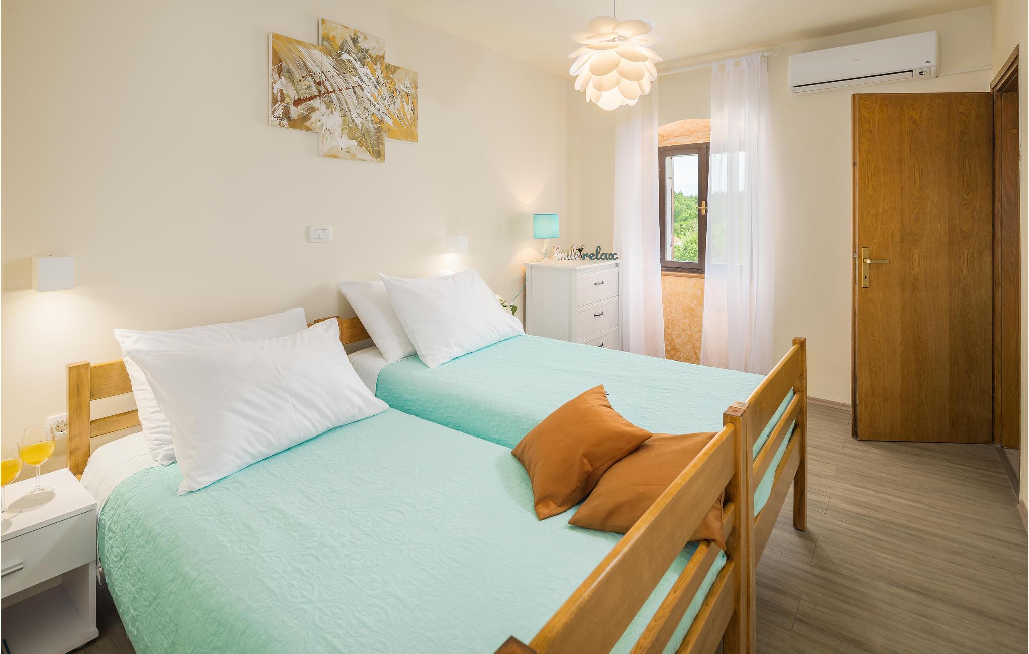 Dette skønne rækkehus ligger centralt i en lille landsby. Dets indre er præget af den traditionelle byggestil, men er kombineret med moderne stilelementer. Swimmingpoolen udenfor bliver feriens forfriskende samlingspunkt for familien, og også de mindste vil blive begejstrede for legeredskaberne på grunden. Landskabet er velegnet til en aktiv ferie på cykel eller på vandrestierne. den lille middelalderby Svetvicenat har et fint udbvud af arrangementer og de traditionelle konobaer, hvor lækkerierne fra det lokale køkken kan prøves.