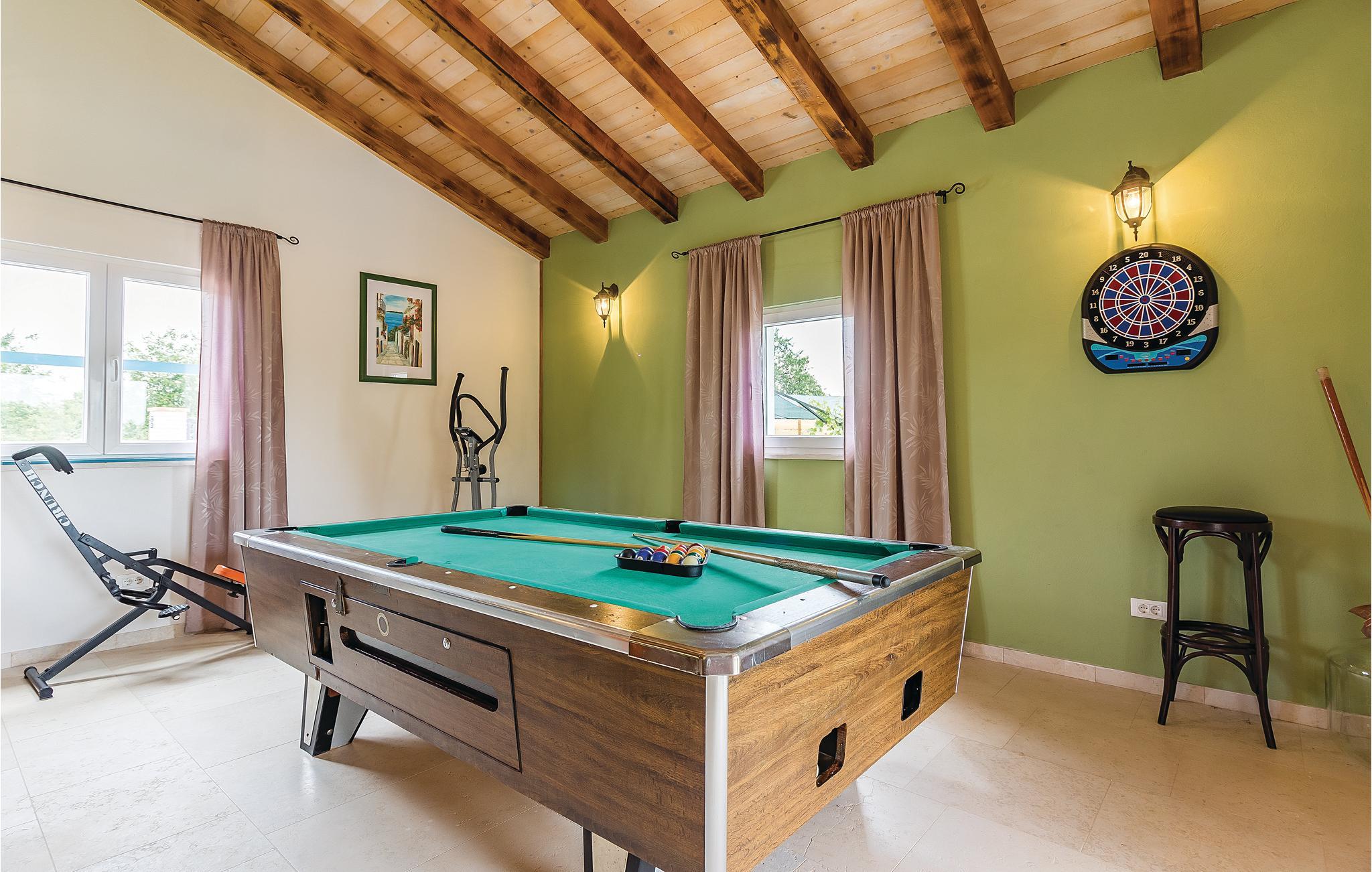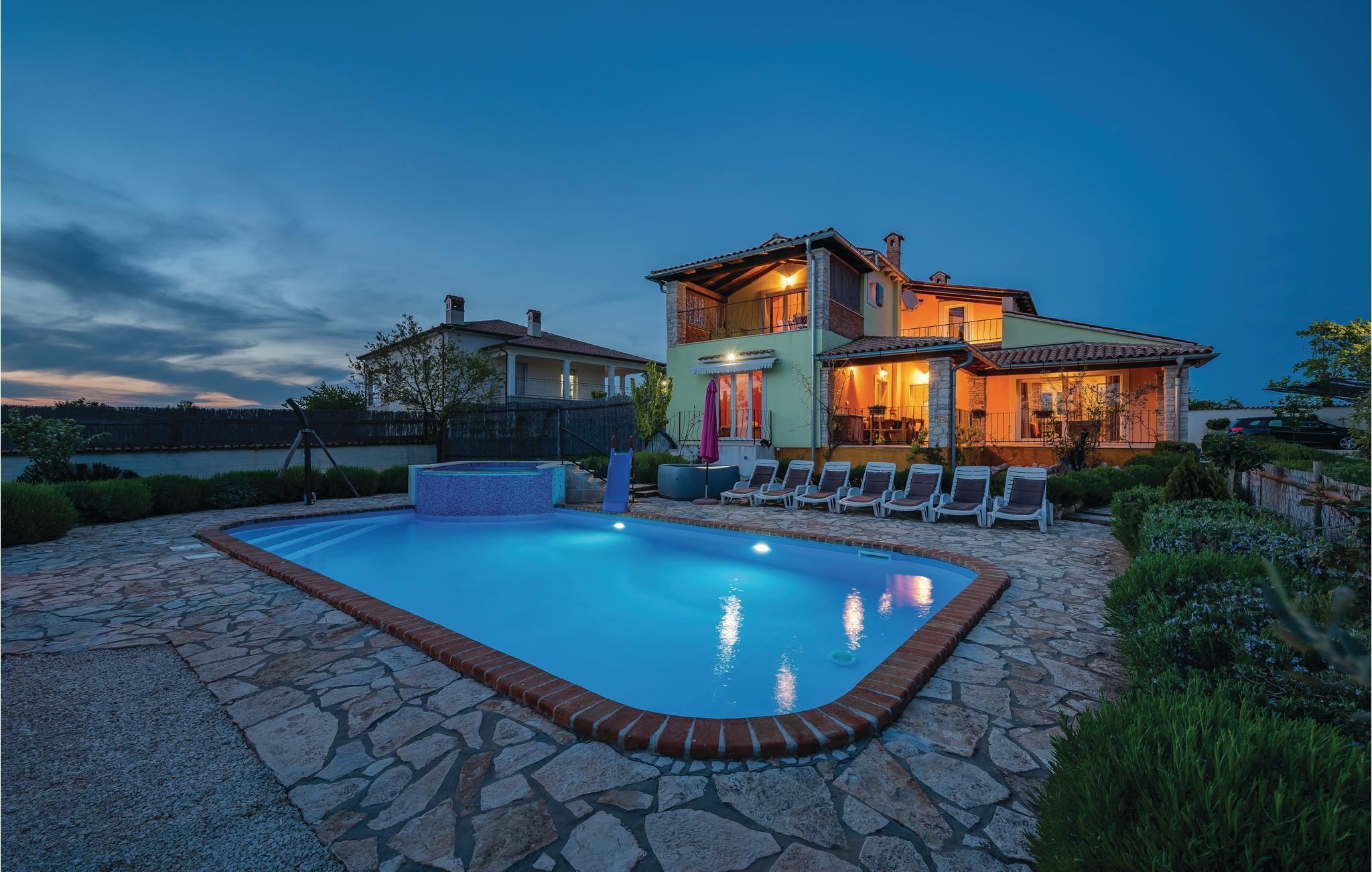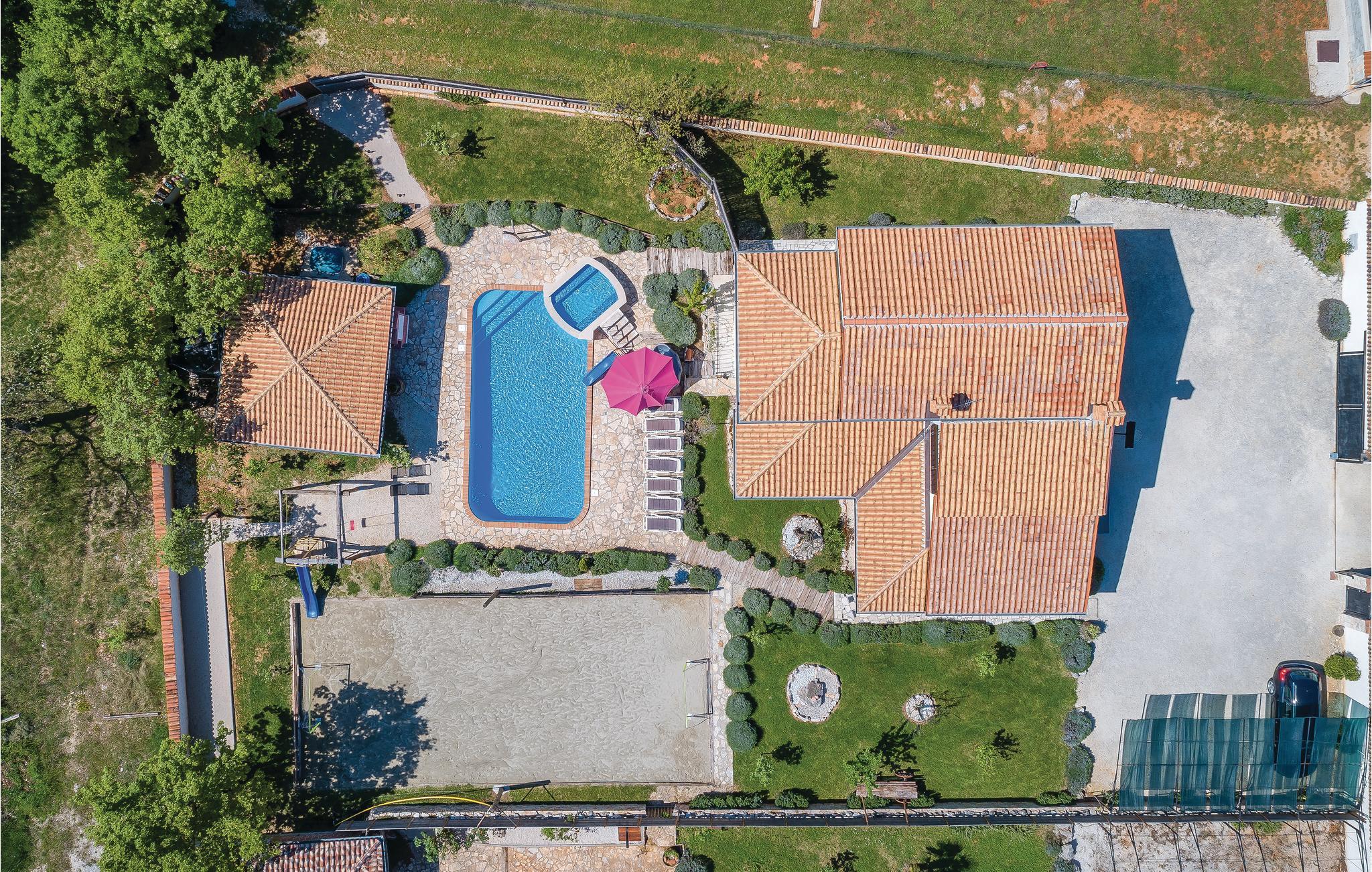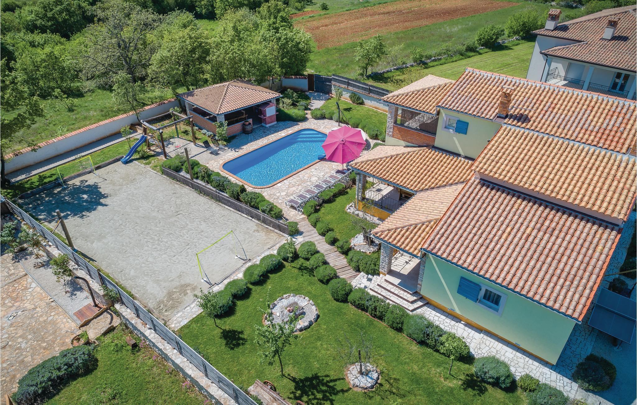 Dette rummelige feriehus er fremragende udstyret og ligge i den lille by Rezanci. I huset er der fem soveværelser, en stue, et køkken en spisestue og tre badeværelser. På den skønne terrasse kan I nyde solens første stråler med en kop morgenkaffe, eller sidde med et glas kølig vin om aftenen og lægge planer for den næste feriedag. Huset er ideelt for alle aldersklasser. Til de yngste er der gynge, rutsjebane samt trampolin, bordfodbold, bordtennis, en playstation 3, karaoke og meget andet. Til de voksne er der brusebad med hydromassage og en beachvolleybane og billard. Mon ikke alle uanset alder vil sætte pris på den skønne udendørs pool, hvor der både kan svømmes, plaskes og leges. Til yderligere underholdning er der minigolfbane og en sandbane til fod- og håndbold.