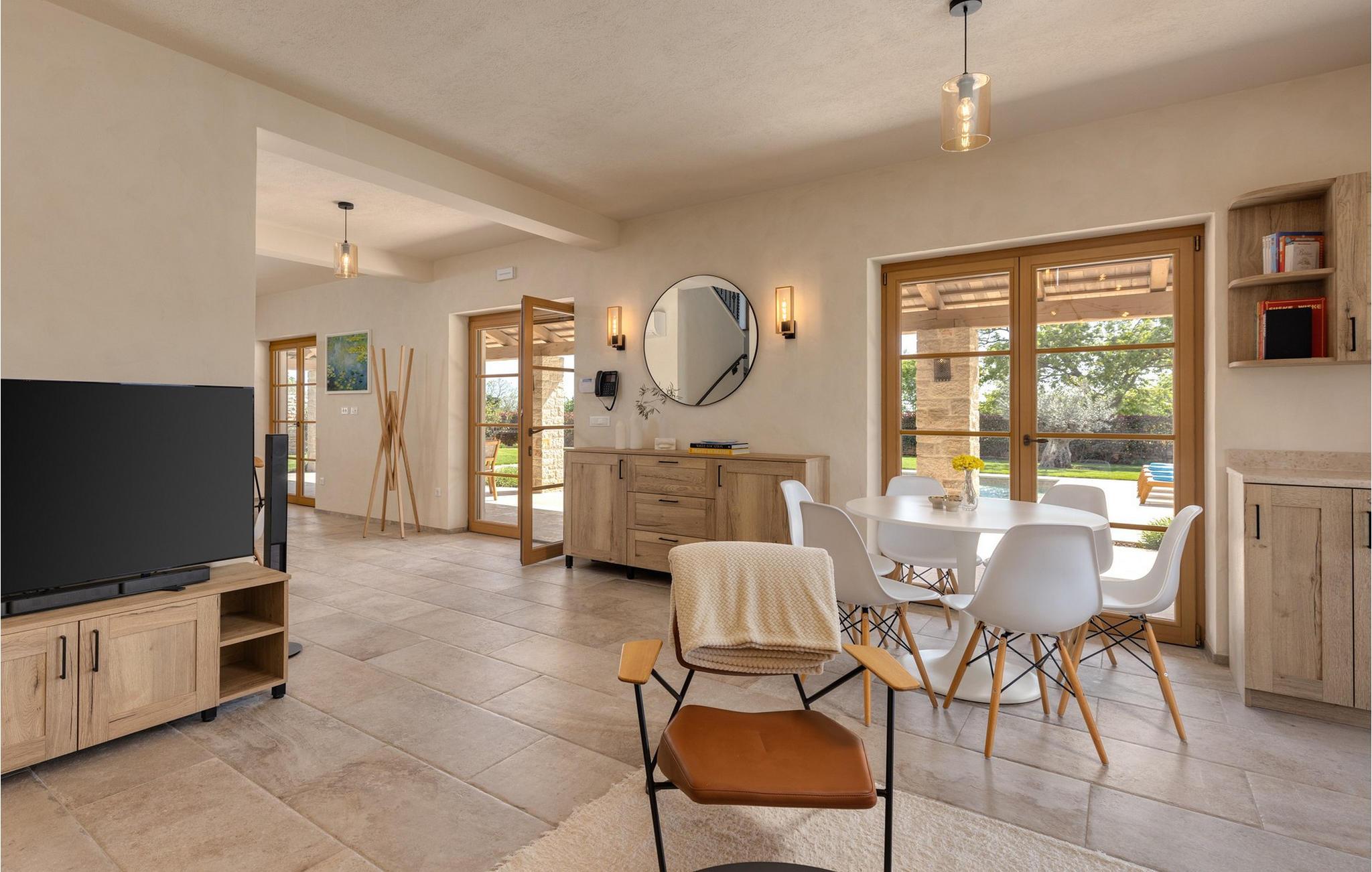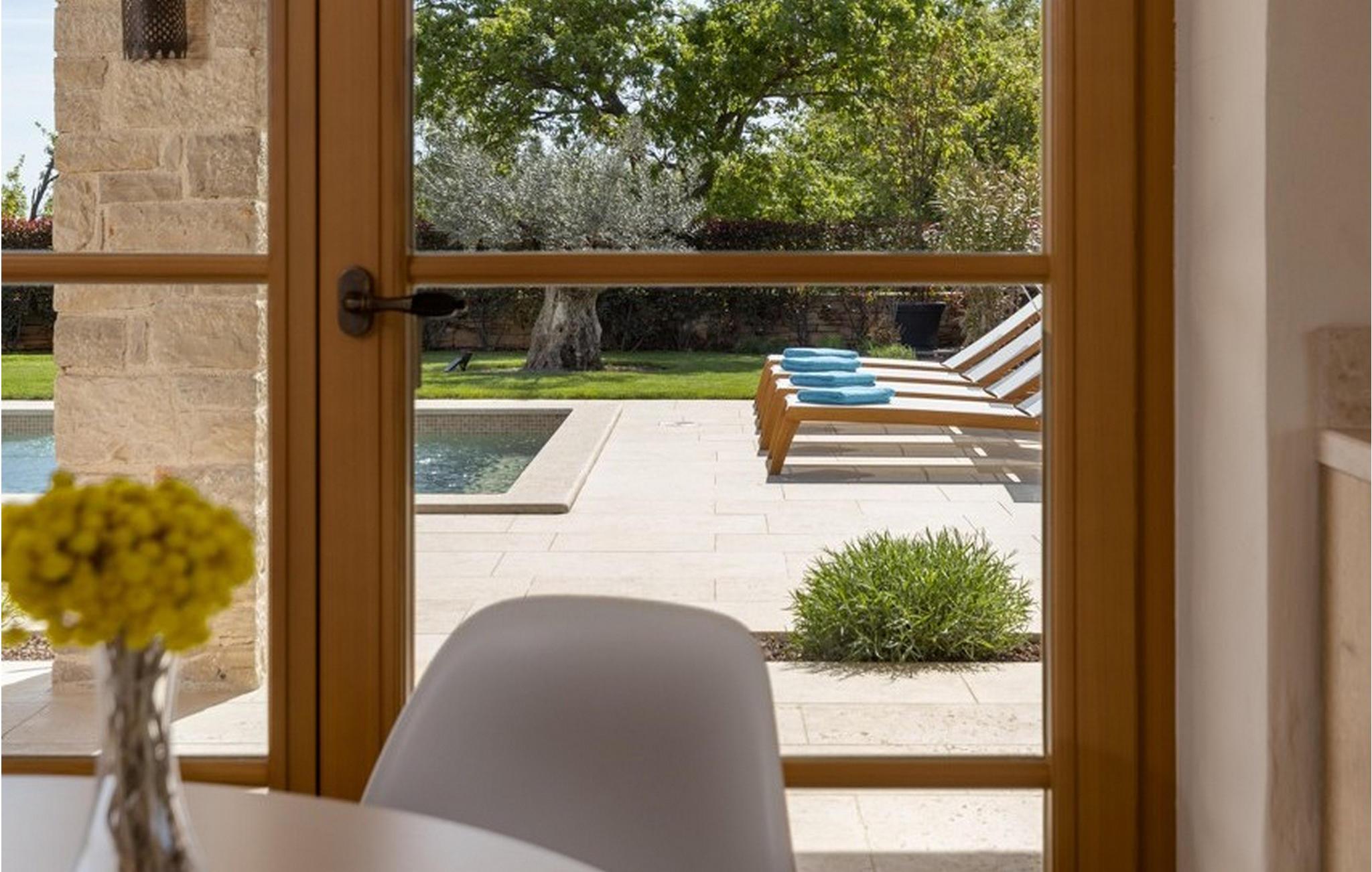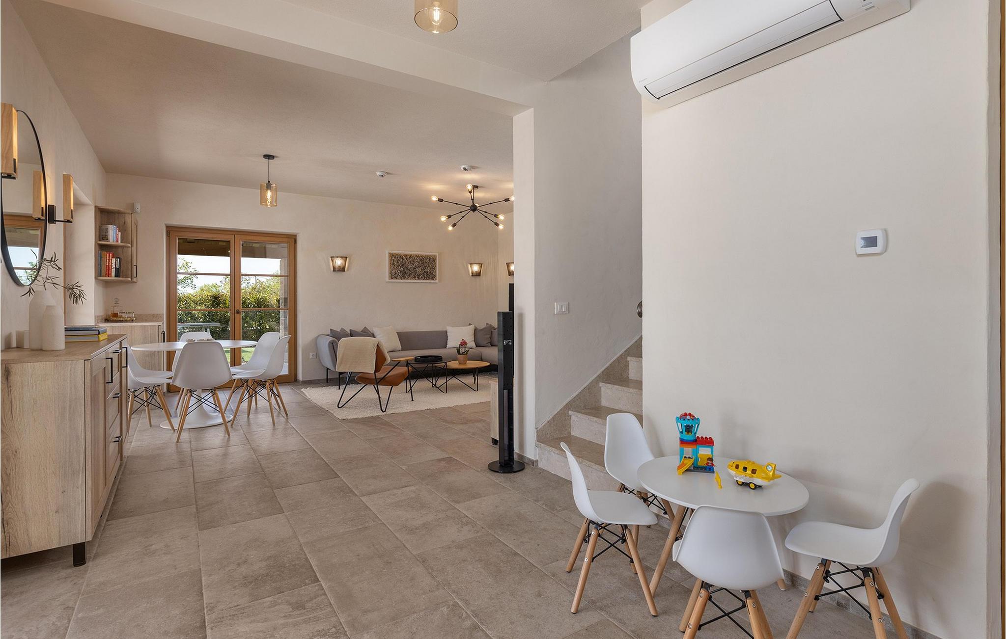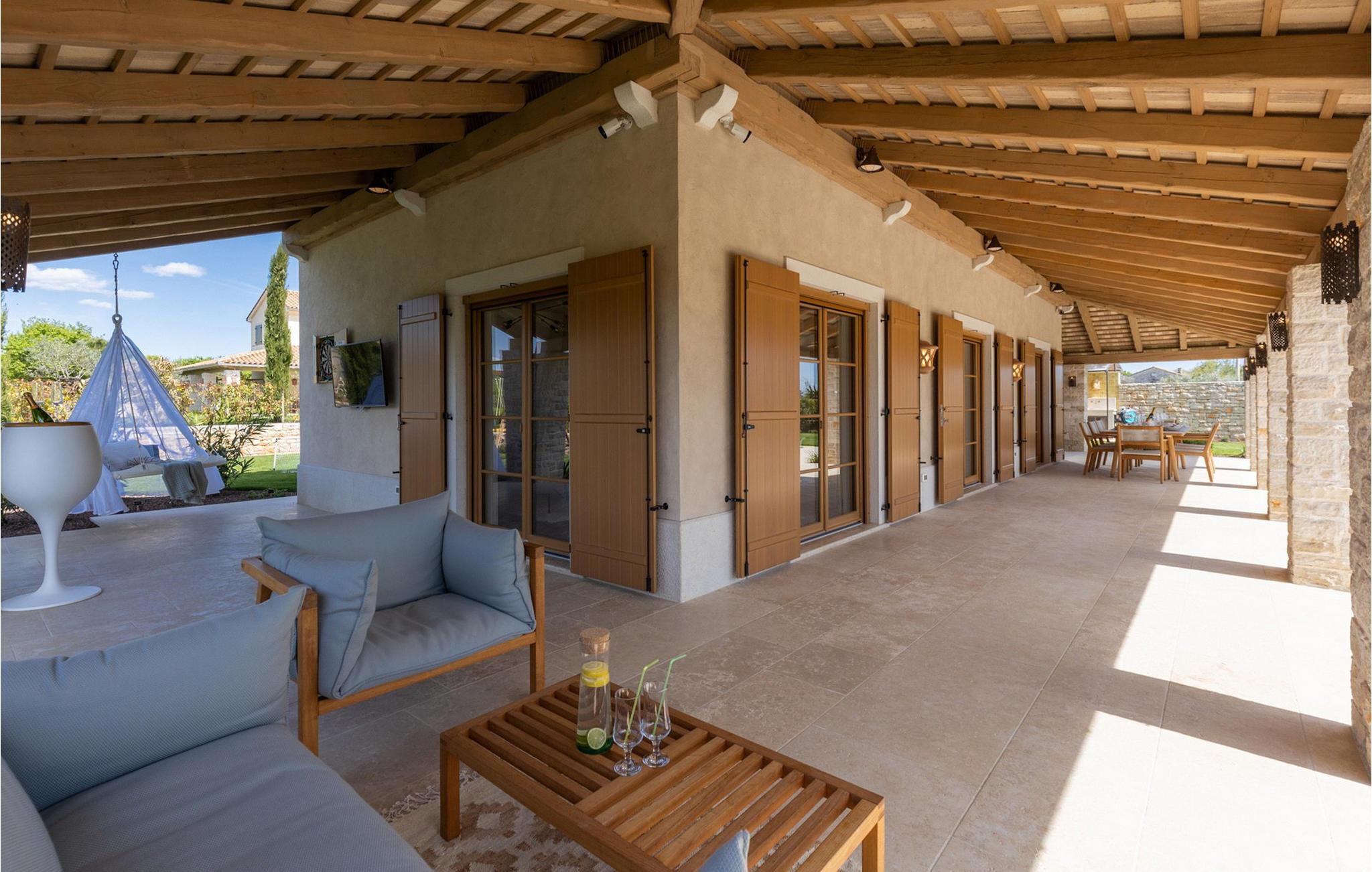 Smukke Villa Andrea ligger i den lille istriske by Smoljanci, i centrum af Istrien. De landlige omgivelser byder på absolut fred og privatliv, og den luksuriøse atmosfære i Villa Andrea tilbyder dig alt, hvad du behøver for en afslappende ferie. Villaen strækker sig over et samlet areal på 220 m2, som også omfatter en overdækket terrasse. Grundens størrelse er 800 m2. Villaen kan rumme i alt 6 personer og har 3 fuldt møblerede og airconditionerede værelser på øverste etage, hvoraf to har havudsigt. Der er to badeværelser ovenpå. Vaskemaskine og tørretumbler er også tilgængelige efter anmodning. Stueetagen af villaen har en rummelig stue, et moderne køkken og et ekstra toilet. På villaens skønne terrasse er der en 4x10 m pool med en dybde på 1,5 m. Omkring poolen er der 4 liggestole, en udendørs grill og et udendørs spisebord. Villaens gård er helt indhegnet og der er 2 parkeringspladser i gården. Området omkring villaen byder på mange interessante muligheder såsom cykling, ridning eller vinture og olivenolieture. Istrien er kendt for sit rige gastronomiske tilbud, og dyrkning og forarbejdning af vinstokke og olivenolie er blandt de mest berømte landbrugsgrene, der har været praktiseret i denne kroatiske region i århundreder. I dag er Istrien foran mange europæiske lande i produktionen af ekstra jomfru olivenolie, hvilket skyldes den enestående kvalitet af jorden i denne region. Sørg for at besøge nogle af de mange vinkældre, der producerer nogle af de fineste røde, hvide eller rosé-varianter såsom Merlot, Malvasia, Teran, Muscat eller Cabernet Sauvignon. Det centrale Istrien er også kendt for en særlig gourmet-delikatesse – trøfler, underjordiske juveler med en særlig bitter smag. Placeringen af denne dyre gastronomiske specialitet er i det centrale Istrien, især omkring Motovun-skoven. Et interessant tilbud i Istrien er trøffeljagt, en oplevelse, hvor du på egen hånd kan opleve, hvordan den traditionelle søgen efter denne delikatesse, der hovedsageligt er gemt i rødderne af eg, poppel, bøg, elmetræer og lignende træer, ser ud. Hvis du stadig nyder at se kulturelle og historiske monumenter, vil du helt sikkert nyde at udforske det indre af Istrien, som udover et eventyrlandskab også gemmer på monumenter fra forskellige epoker af historien. For eksempel er der i byen Motovun interessante middelaldermure, der giver denne by en særlig charme. Ifølge legenden sejlede de mytiske karakterer Jason og Argonauter på Mirna-floden ved foden af Motovun, og de første indbyggere boede her mellem 3.500 og 3.500 år. og 2.200 f.Kr. Chr. Kr. På Istriens kyst finder du mange andre interessante steder, der forbløffer med deres turisttilbud, men også smukke kulturelle og historiske monumenter, såsom Porec, Umag, Rovinj eller Pula. Nyd Istriens smukke landskab, vinruter og gastronomiske tilbud, og slap af i freden og privatlivet i Villa Andrea og den luksus, du fortjener. Poolopvarmning er tilgængelig mod et ekstra gebyr, der skal betales lokalt. Kæledyr er tilladt på denne ejendom efter ejerens skøn eller mod et gebyr.