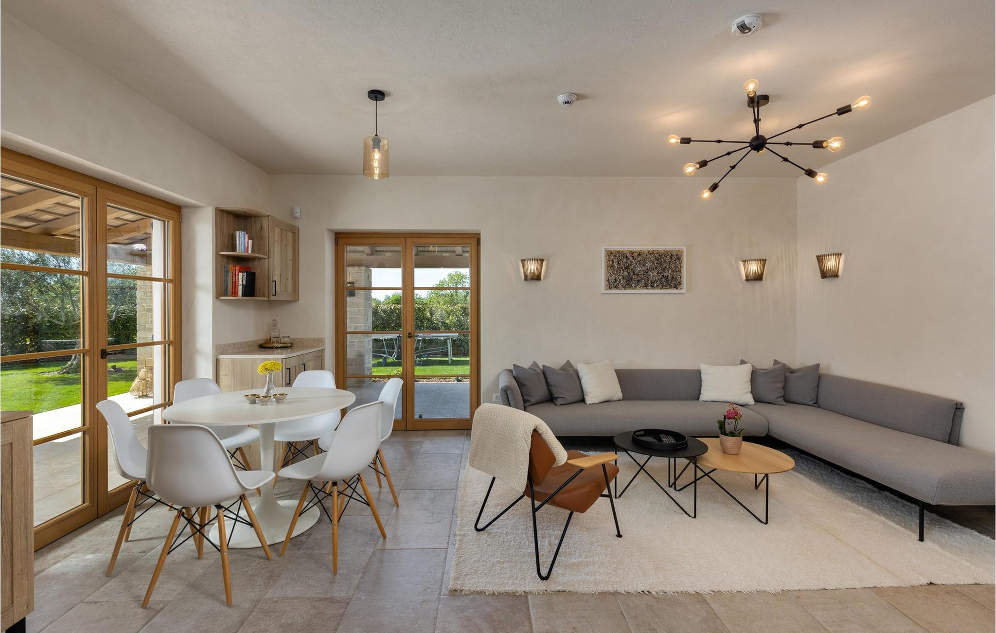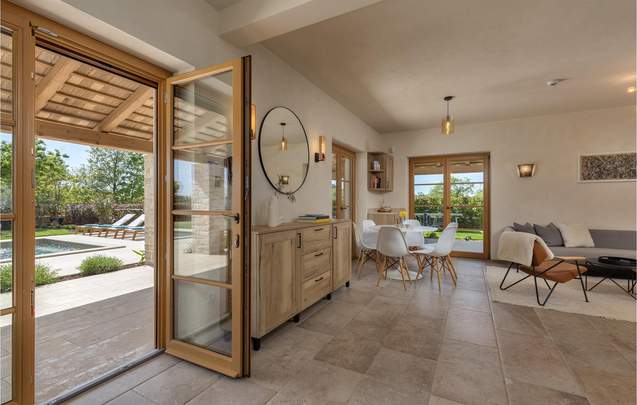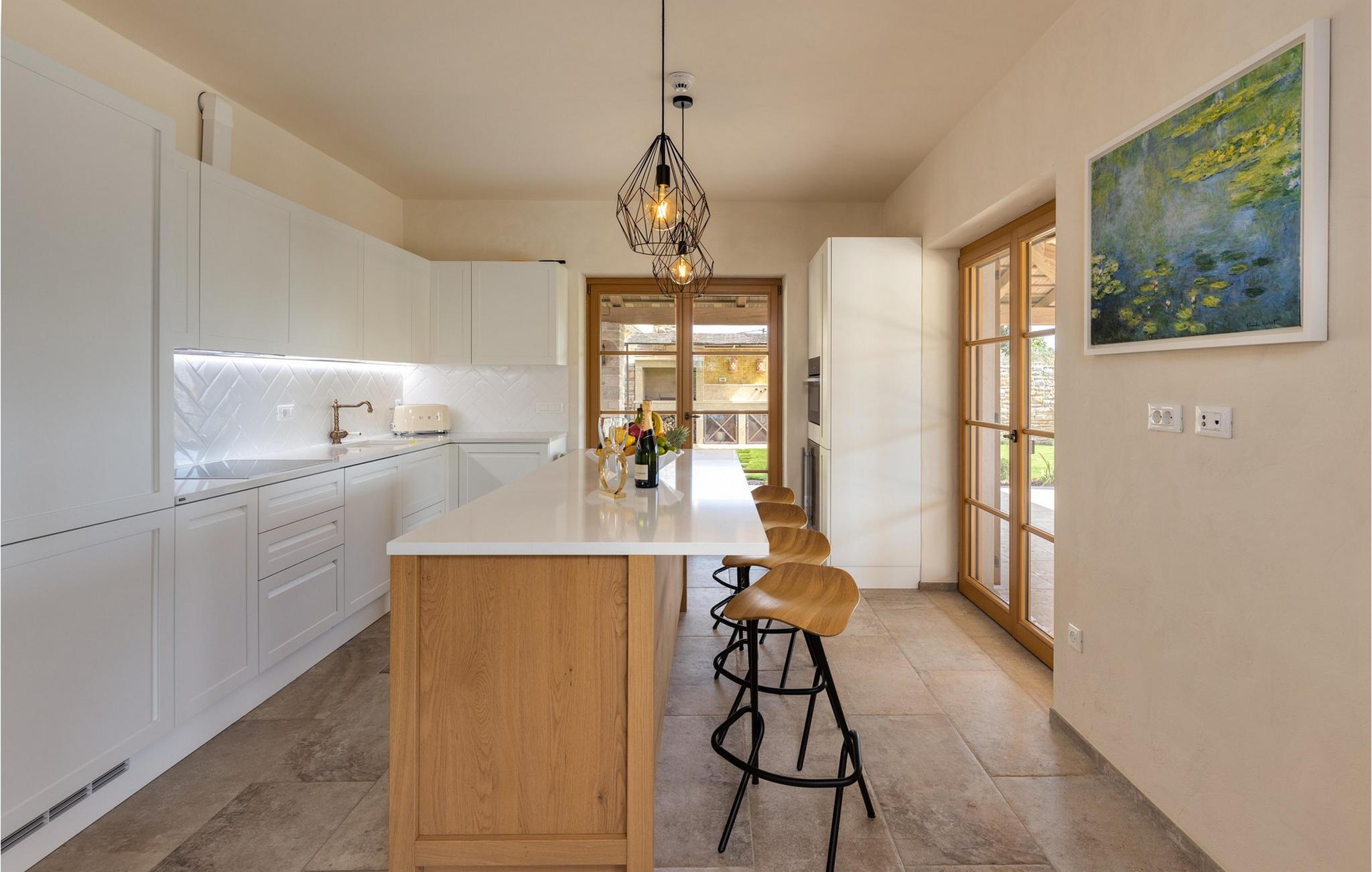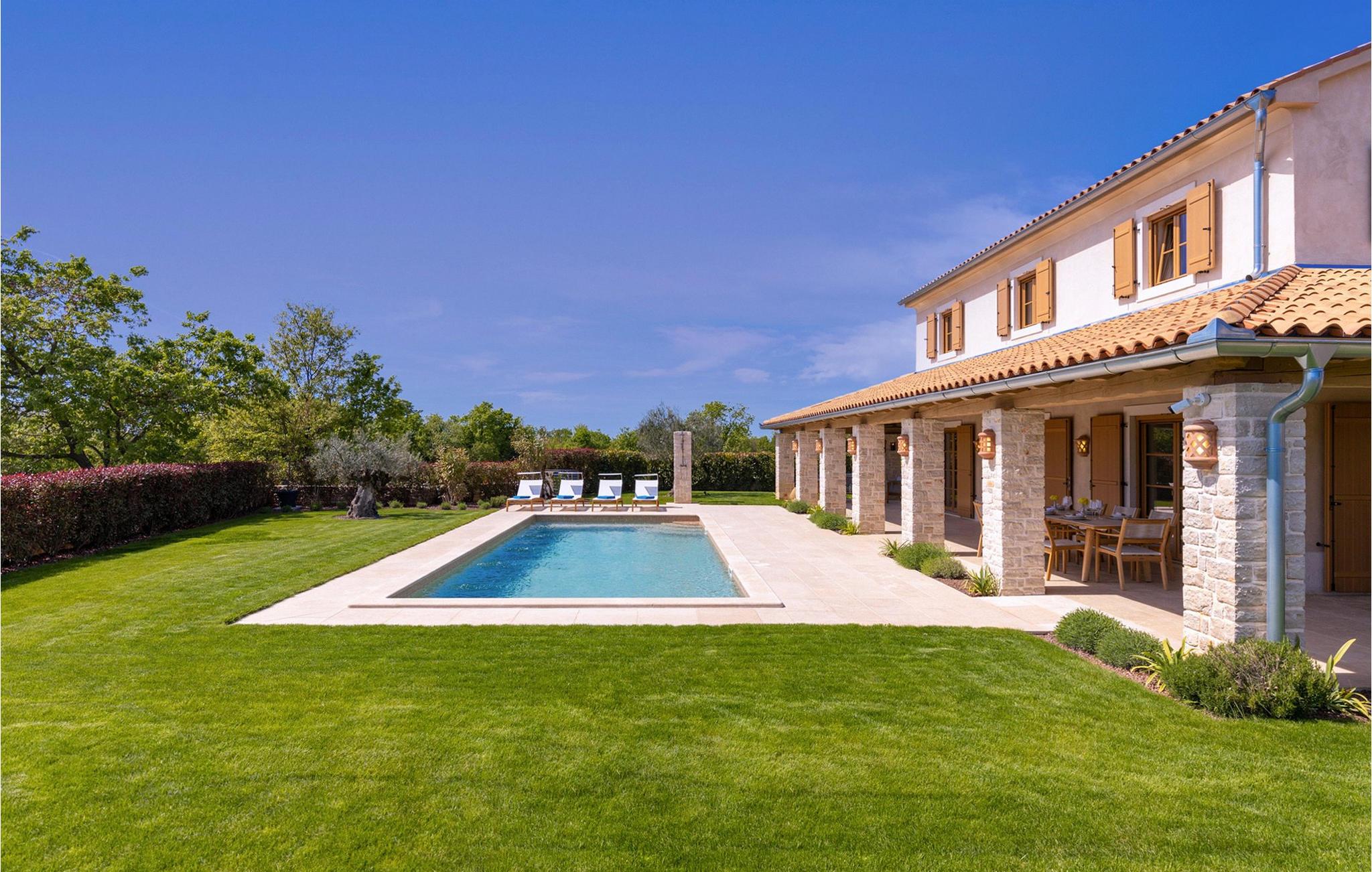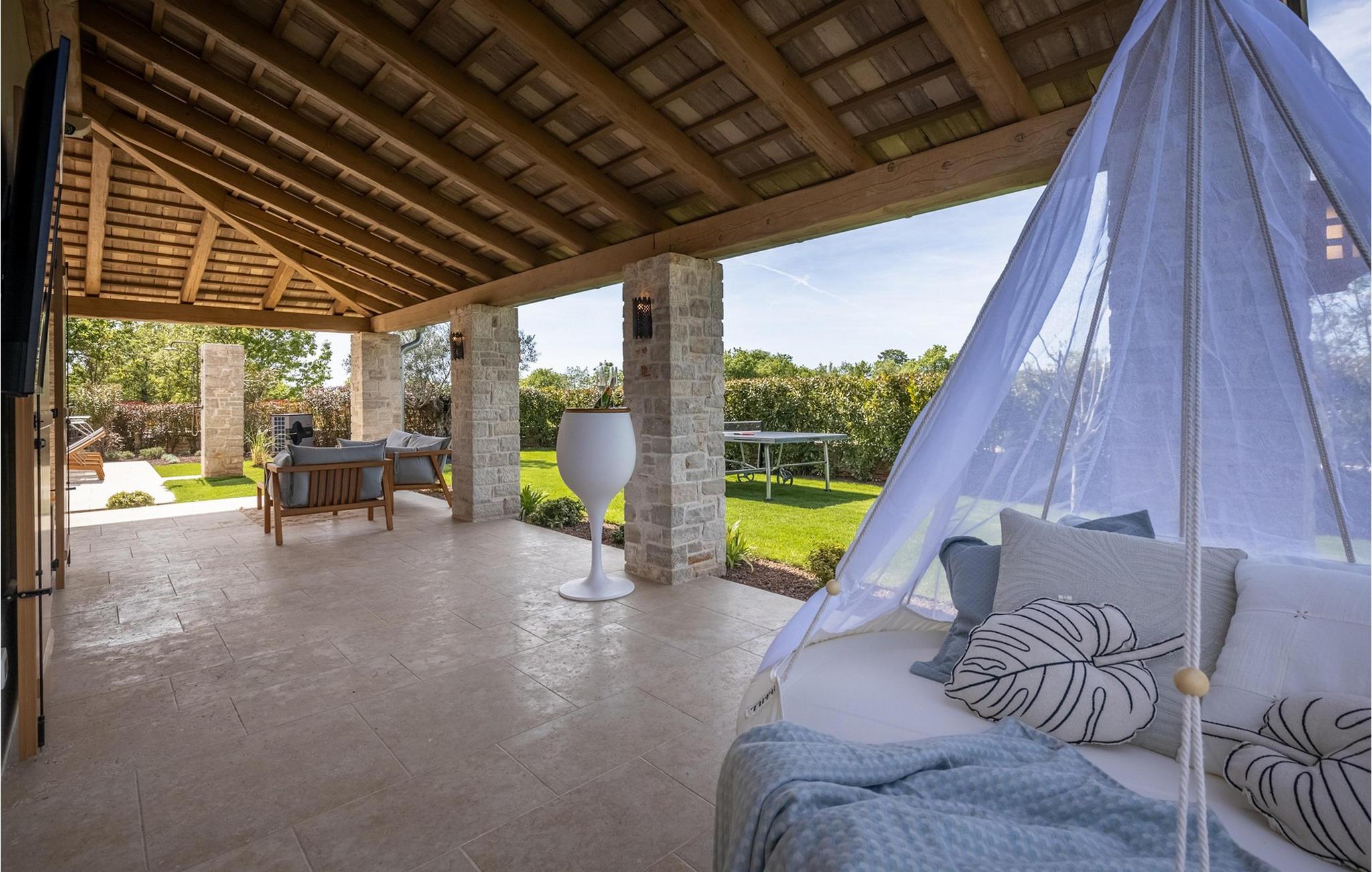 Smukke Villa Andrea ligger i den lille istriske by Smoljanci, i centrum af Istrien. De landlige omgivelser byder på absolut fred og privatliv, og den luksuriøse atmosfære i Villa Andrea tilbyder dig alt, hvad du behøver for en afslappende ferie. Villaen strækker sig over et samlet areal på 220 m2, som også omfatter en overdækket terrasse. Grundens størrelse er 800 m2. Villaen kan rumme i alt 6 personer og har 3 fuldt møblerede og airconditionerede værelser på øverste etage, hvoraf to har havudsigt. Der er to badeværelser ovenpå. Vaskemaskine og tørretumbler er også tilgængelige efter anmodning. Stueetagen af villaen har en rummelig stue, et moderne køkken og et ekstra toilet. På villaens skønne terrasse er der en 4x10 m pool med en dybde på 1,5 m. Omkring poolen er der 4 liggestole, en udendørs grill og et udendørs spisebord. Villaens gård er helt indhegnet og der er 2 parkeringspladser i gården. Området omkring villaen byder på mange interessante muligheder såsom cykling, ridning eller vinture og olivenolieture. Istrien er kendt for sit rige gastronomiske tilbud, og dyrkning og forarbejdning af vinstokke og olivenolie er blandt de mest berømte landbrugsgrene, der har været praktiseret i denne kroatiske region i århundreder. I dag er Istrien foran mange europæiske lande i produktionen af ekstra jomfru olivenolie, hvilket skyldes den enestående kvalitet af jorden i denne region. Sørg for at besøge nogle af de mange vinkældre, der producerer nogle af de fineste røde, hvide eller rosé-varianter såsom Merlot, Malvasia, Teran, Muscat eller Cabernet Sauvignon. Det centrale Istrien er også kendt for en særlig gourmet-delikatesse – trøfler, underjordiske juveler med en særlig bitter smag. Placeringen af denne dyre gastronomiske specialitet er i det centrale Istrien, især omkring Motovun-skoven. Et interessant tilbud i Istrien er trøffeljagt, en oplevelse, hvor du på egen hånd kan opleve, hvordan den traditionelle søgen efter denne delikatesse, der hovedsageligt er gemt i rødderne af eg, poppel, bøg, elmetræer og lignende træer, ser ud. Hvis du stadig nyder at se kulturelle og historiske monumenter, vil du helt sikkert nyde at udforske det indre af Istrien, som udover et eventyrlandskab også gemmer på monumenter fra forskellige epoker af historien. For eksempel er der i byen Motovun interessante middelaldermure, der giver denne by en særlig charme. Ifølge legenden sejlede de mytiske karakterer Jason og Argonauter på Mirna-floden ved foden af Motovun, og de første indbyggere boede her mellem 3.500 og 3.500 år. og 2.200 f.Kr. Chr. Kr. På Istriens kyst finder du mange andre interessante steder, der forbløffer med deres turisttilbud, men også smukke kulturelle og historiske monumenter, såsom Porec, Umag, Rovinj eller Pula. Nyd Istriens smukke landskab, vinruter og gastronomiske tilbud, og slap af i freden og privatlivet i Villa Andrea og den luksus, du fortjener. Poolopvarmning er tilgængelig mod et ekstra gebyr, der skal betales lokalt. Kæledyr er tilladt på denne ejendom efter ejerens skøn eller mod et gebyr.