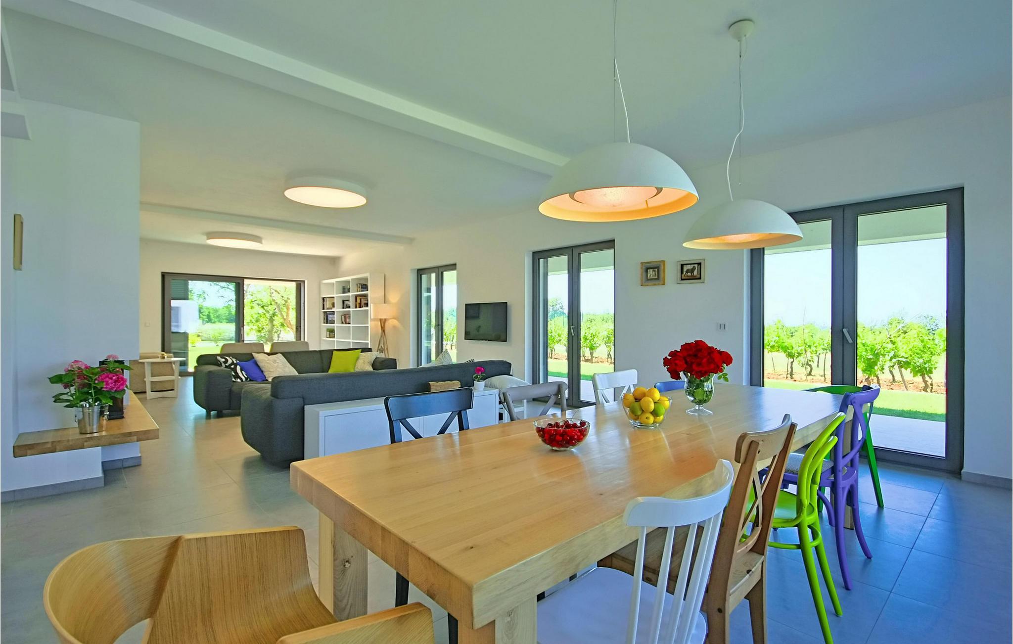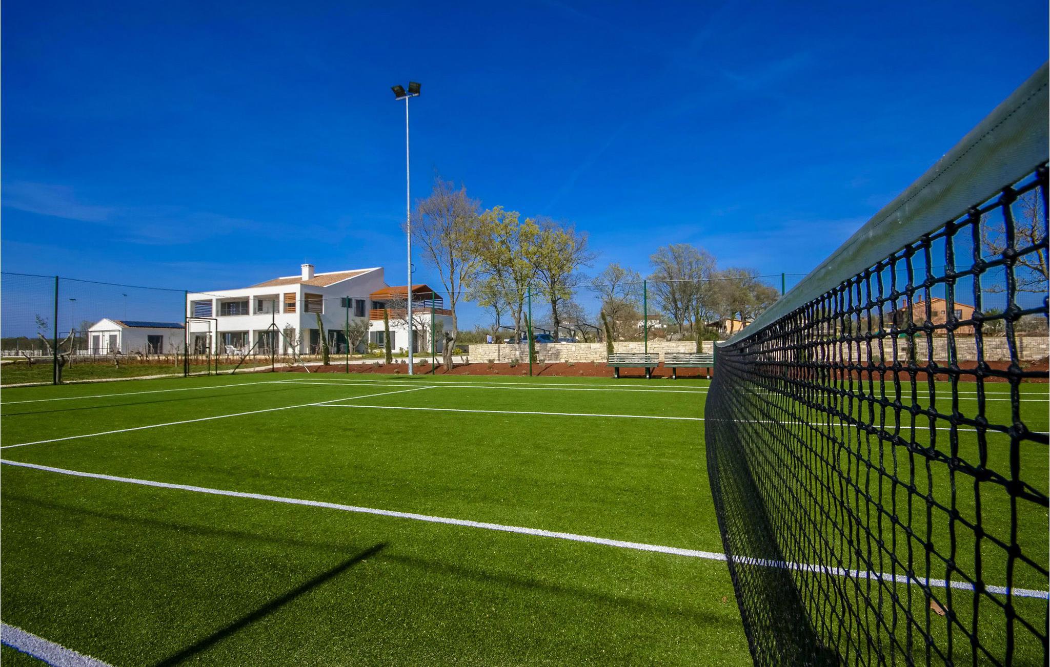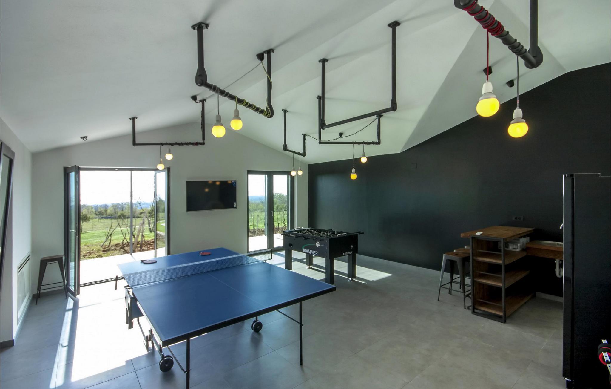 Smukke Villa Bianca ligger i den maleriske by Svetvincenat i den helt sydlige del af Istrien-halvøen, som helt sikkert vil forbløffe dig med sit rige turisttilbud, talrige gastronomiske lækkerier samt kulturelle og historiske monumenter og steder. Denne moderne og fuldt klimatiserede villa på 600 m² har 4 rummelige soveværelser, hvoraf 3 er på første sal og har en fælles terrasse, mens det ene også har et galleri med en dobbeltseng. Alle soveværelser er indrettet med dobbeltseng, mens kontorværelset har en klapseng. Derudover har hvert værelse eget badeværelse med gulvvarme og radiatorer. Et ekstra badeværelse er placeret i annekset nær poolen og saunaen. Villaen har også et fuldt udstyret moderne køkken med spisestue og opholdsstue med tv, PlayStation-konsol og pejs, samt endnu et separat toilet og en vinkælder med et rigt udvalg af kvalitetsvine fra Istrien. Villa Biancas fuldstændig indhegnede have på 7000 m2 har en swimmingpool (50 m2) med mulighed for opvarmning og massage, omgivet af liggestole. Ved siden af poolen er der et spillelokale med bordfodbold, billard, et bordtennisbord og en sauna, ved siden af er der en grill og en udendørs spiseplads. Der er også et stereoanlæg med eksterne højttalere til rådighed for gæster i bygningen nær grillpladsen. Villaens underholdningstilbud omfatter 8 cykler, en oplyst tennisbane, en indhegnet fodbold- og volleyballbane og en 4-personers jacuzzi. Villa Bianca gæster har også 3 private parkeringspladser til rådighed, hvor yderligere to køretøjer kan parkeres. Der opkræves et gebyr på 10 € i timen for at bruge tennisbanen om natten, der skal betales lokalt. Daglig brug er gratis. Poolen er lukket fra november til april. Kæledyr er tilladt på denne ejendom efter ejerens skøn eller mod et gebyr. Bemærk venligst, at denne ejendom kun accepterer ungdomsgrupper eller polterabender mod betaling af et refunderbart depositum. Er I en ungdomsgruppe eller polterabend, vil I blive bedt om at betale depositum ved ankomst. Ethvert beløb, der kræves for at reparere eventuelle skader på boligen forårsaget af dig under dit ophold, vil blive trukket fra depositumet og derefter returneret til dig.