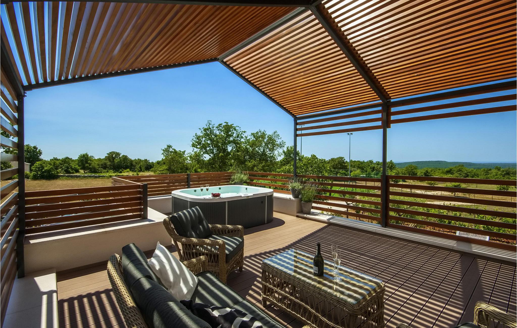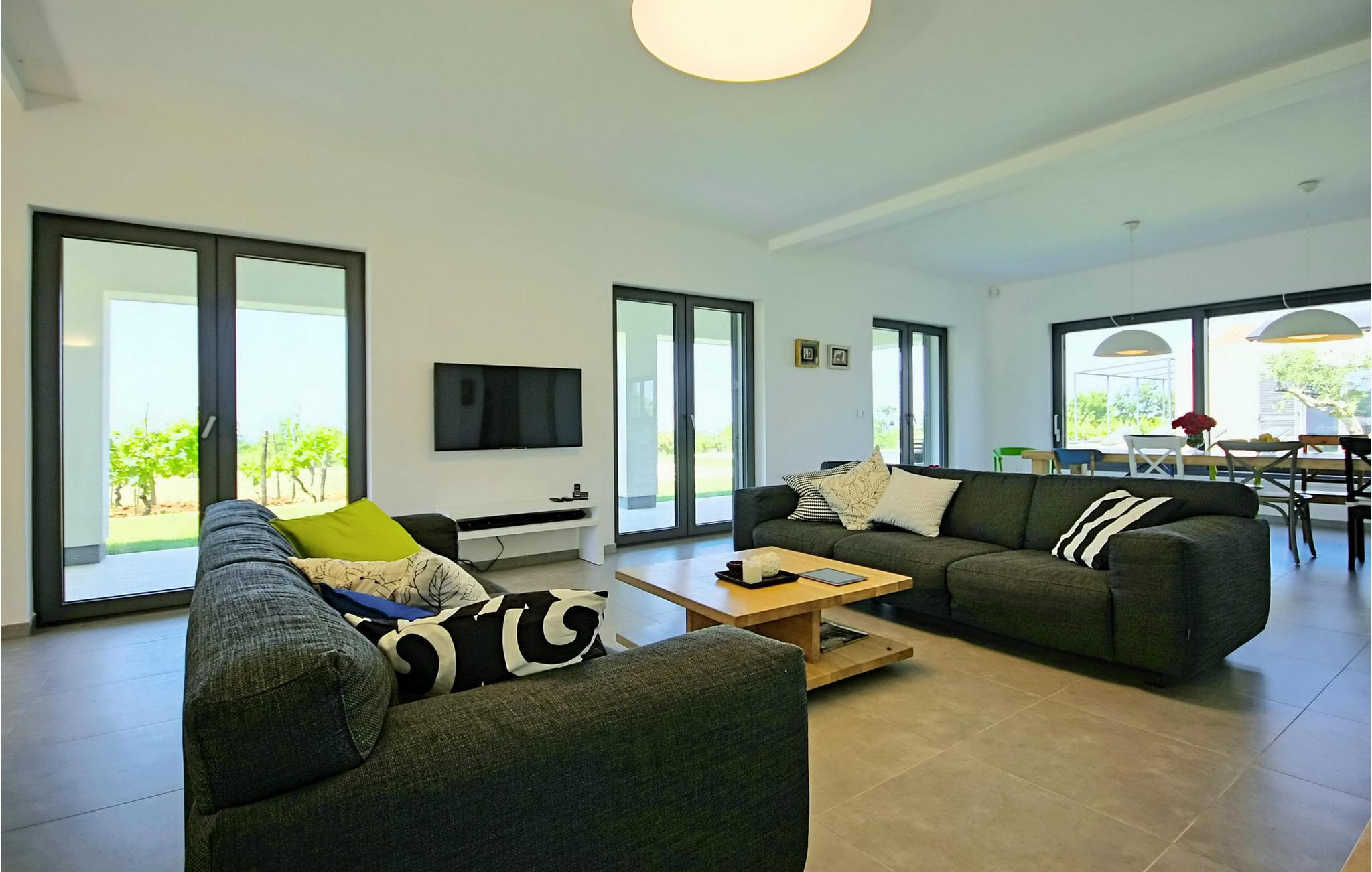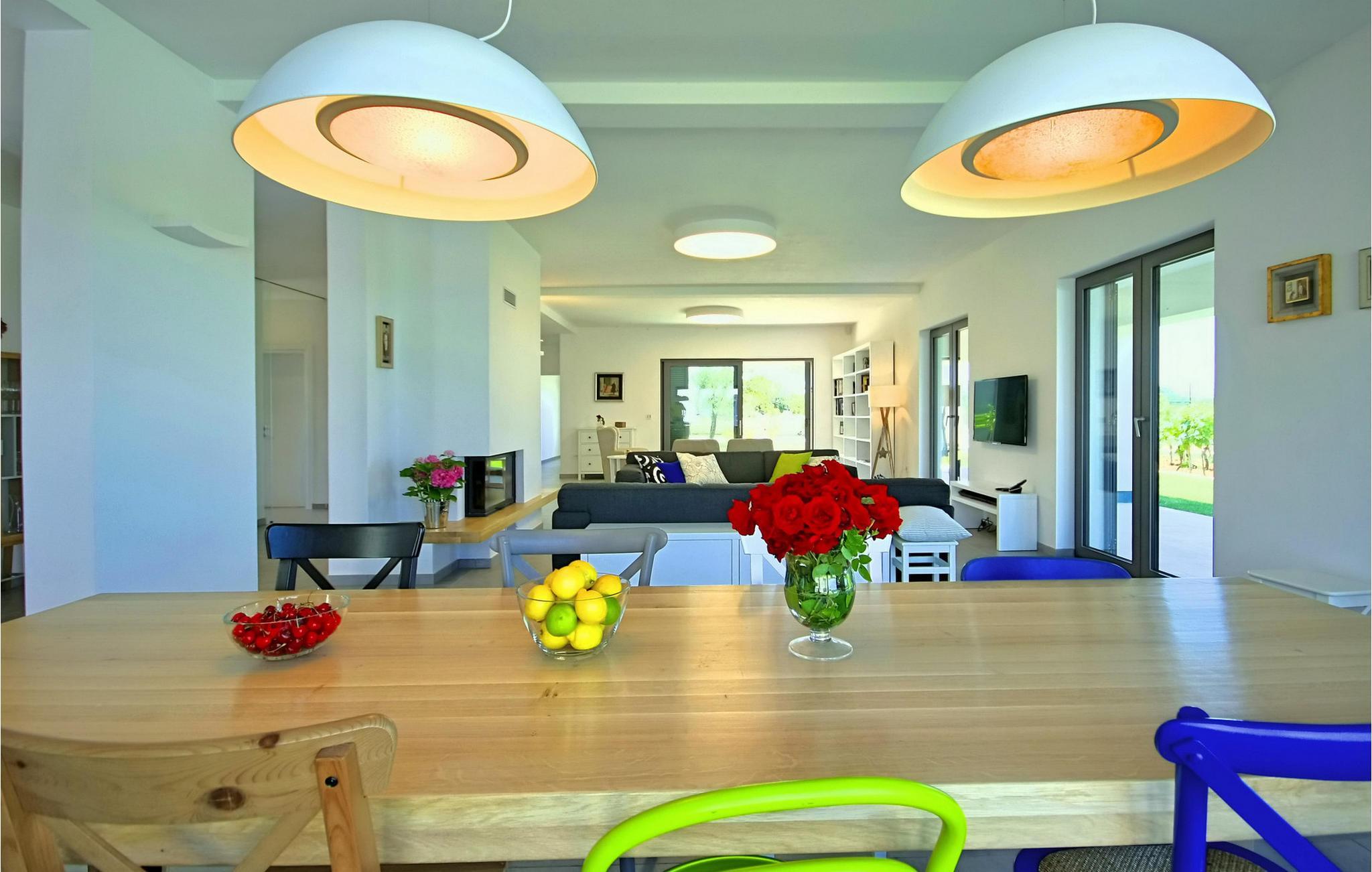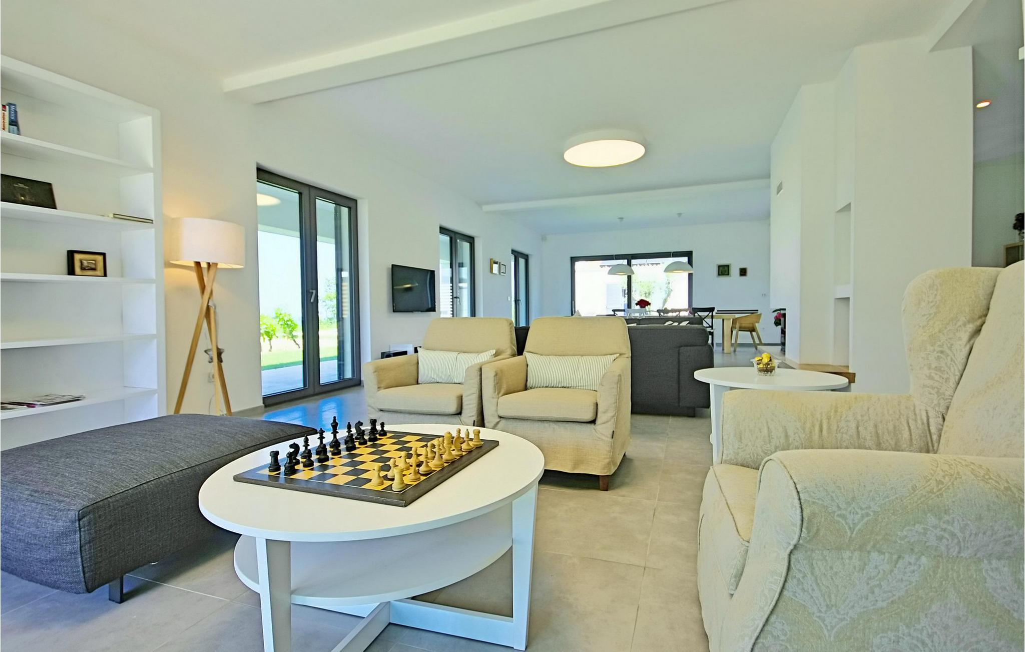Smukke Villa Bianca ligger i den maleriske by Svetvincenat i den helt sydlige del af Istrien-halvøen, som helt sikkert vil forbløffe dig med sit rige turisttilbud, talrige gastronomiske lækkerier samt kulturelle og historiske monumenter og steder. Denne moderne og fuldt klimatiserede villa på 600 m² har 4 rummelige soveværelser, hvoraf 3 er på første sal og har en fælles terrasse, mens det ene også har et galleri med en dobbeltseng. Alle soveværelser er indrettet med dobbeltseng, mens kontorværelset har en klapseng. Derudover har hvert værelse eget badeværelse med gulvvarme og radiatorer. Et ekstra badeværelse er placeret i annekset nær poolen og saunaen. Villaen har også et fuldt udstyret moderne køkken med spisestue og opholdsstue med tv, PlayStation-konsol og pejs, samt endnu et separat toilet og en vinkælder med et rigt udvalg af kvalitetsvine fra Istrien. Villa Biancas fuldstændig indhegnede have på 7000 m2 har en swimmingpool (50 m2) med mulighed for opvarmning og massage, omgivet af liggestole. Ved siden af poolen er der et spillelokale med bordfodbold, billard, et bordtennisbord og en sauna, ved siden af er der en grill og en udendørs spiseplads. Der er også et stereoanlæg med eksterne højttalere til rådighed for gæster i bygningen nær grillpladsen. Villaens underholdningstilbud omfatter 8 cykler, en oplyst tennisbane, en indhegnet fodbold- og volleyballbane og en 4-personers jacuzzi. Villa Bianca gæster har også 3 private parkeringspladser til rådighed, hvor yderligere to køretøjer kan parkeres. Der opkræves et gebyr på 10 € i timen for at bruge tennisbanen om natten, der skal betales lokalt. Daglig brug er gratis. Poolen er lukket fra november til april. Kæledyr er tilladt på denne ejendom efter ejerens skøn eller mod et gebyr. Bemærk venligst, at denne ejendom kun accepterer ungdomsgrupper eller polterabender mod betaling af et refunderbart depositum. Er I en ungdomsgruppe eller polterabend, vil I blive bedt om at betale depositum ved ankomst. Ethvert beløb, der kræves for at reparere eventuelle skader på boligen forårsaget af dig under dit ophold, vil blive trukket fra depositumet og derefter returneret til dig.